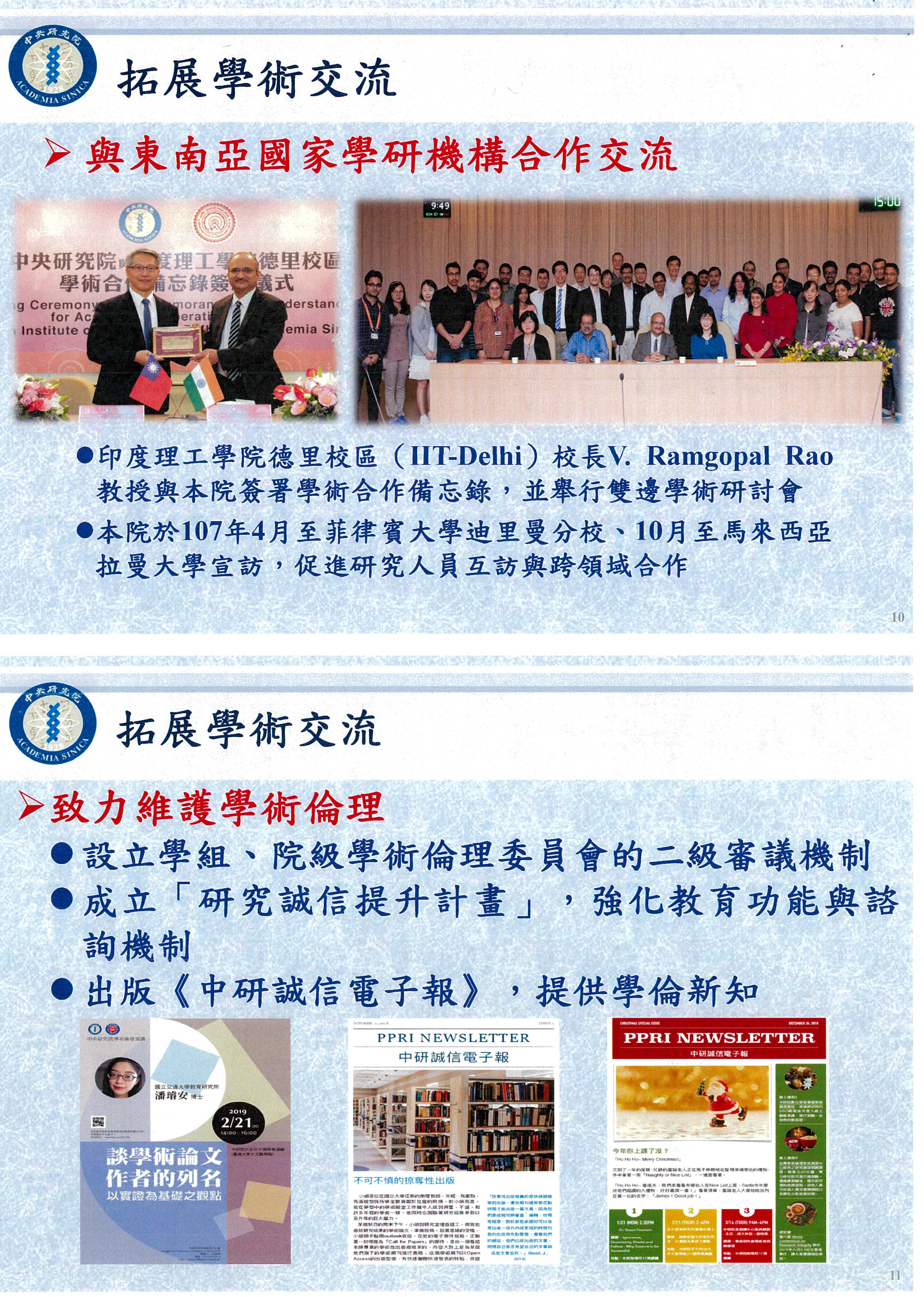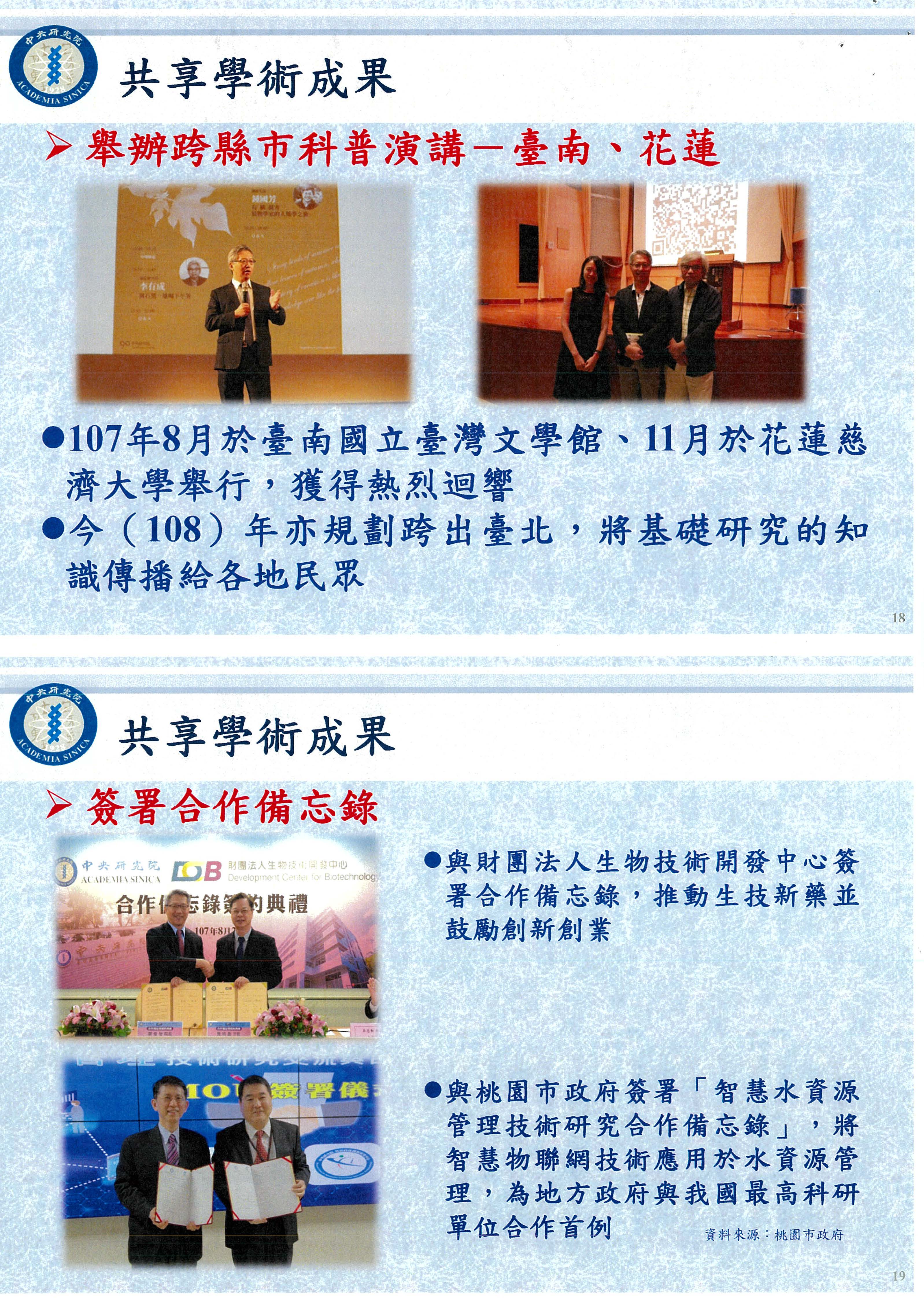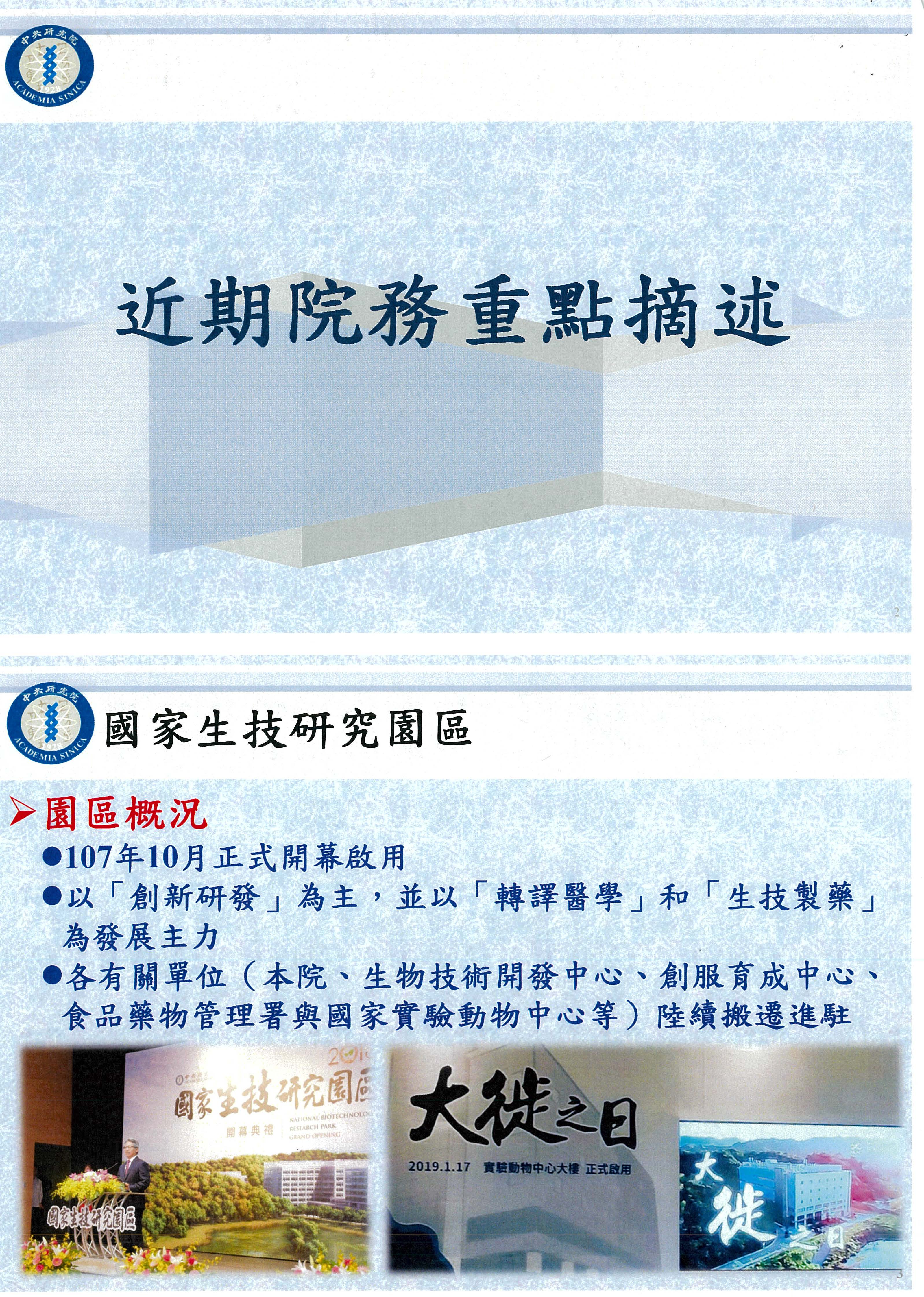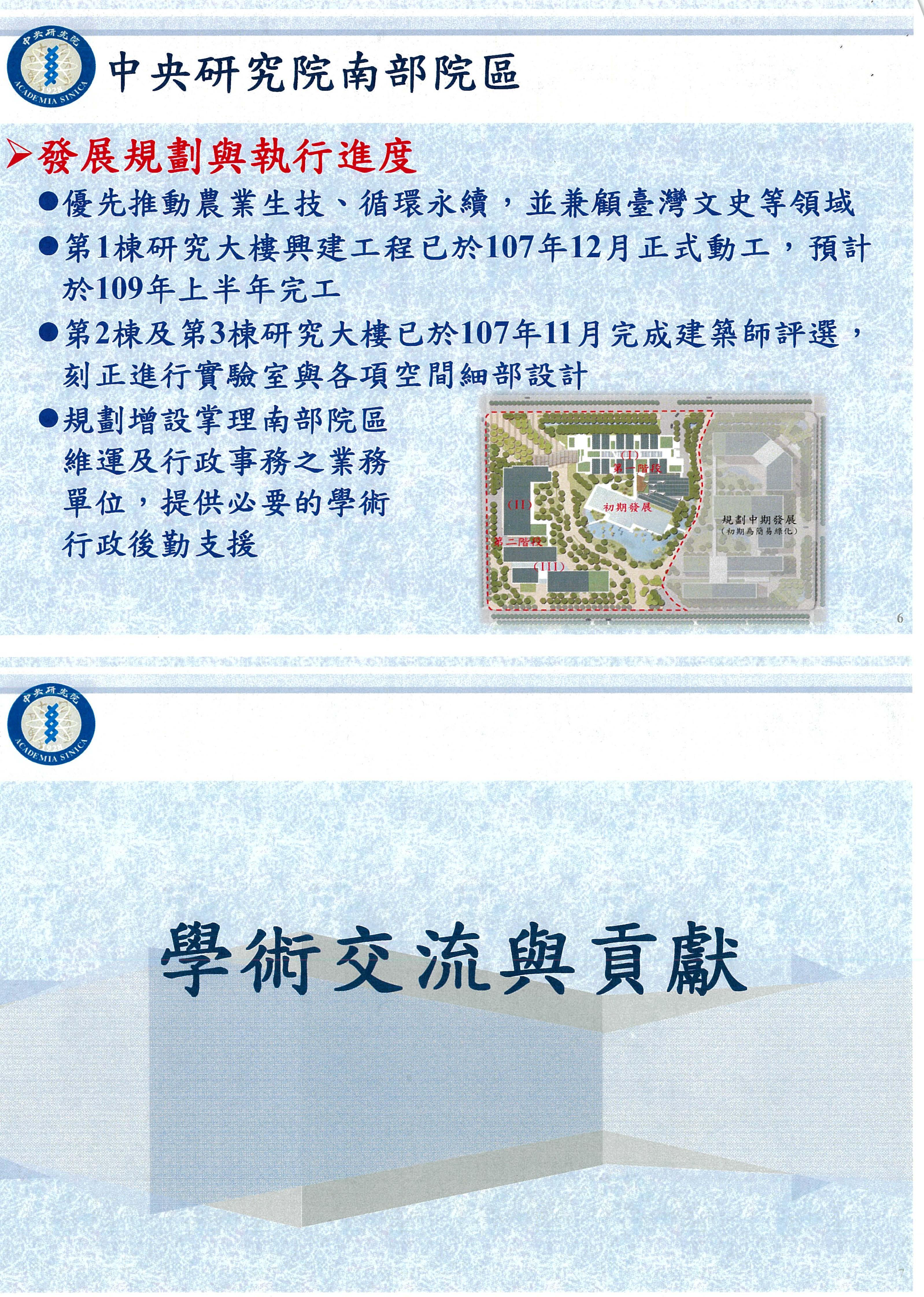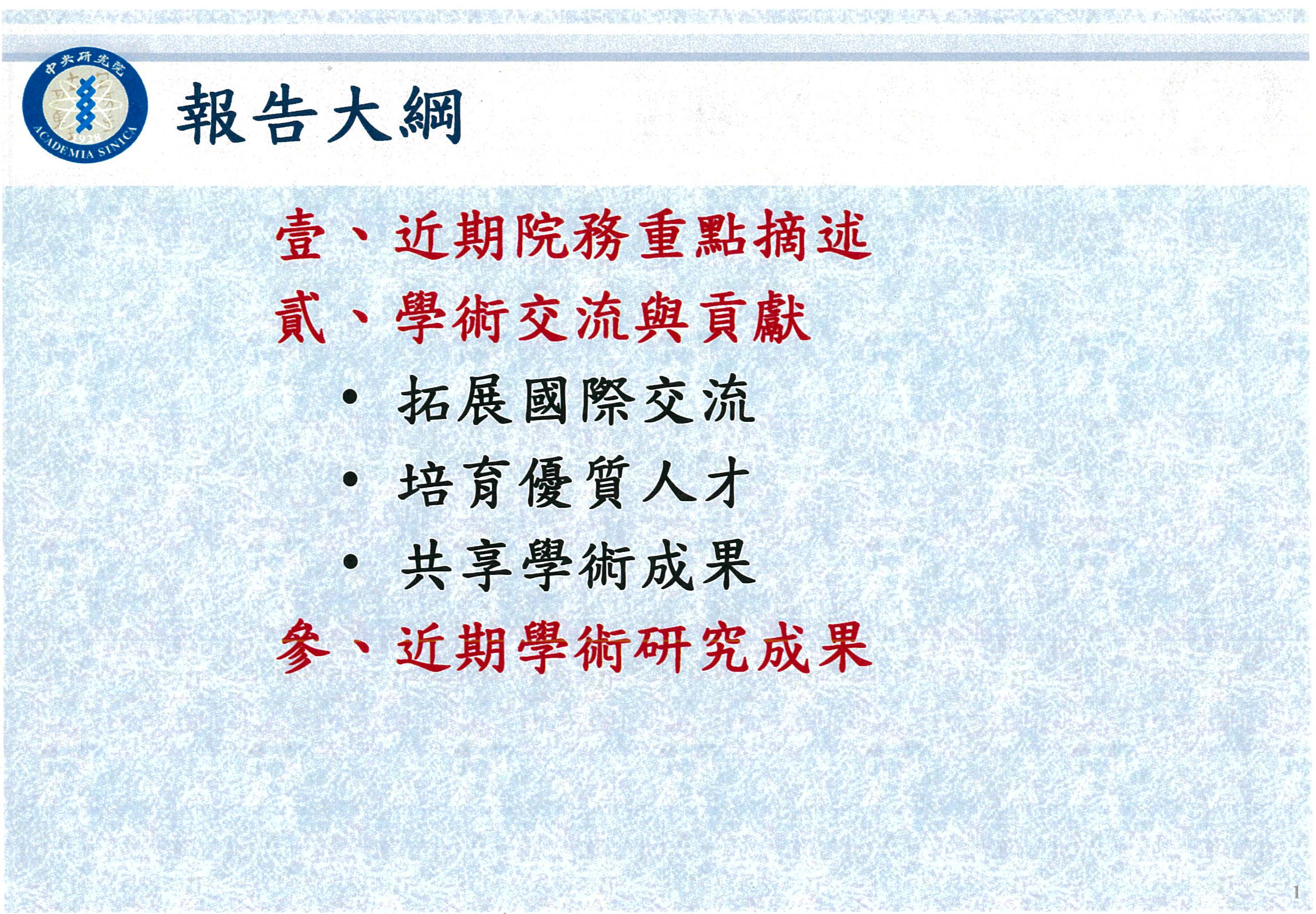 廖院長俊智:主席、各位委員。今天很高興代表中央研究院來大院報告108年度業務概況,今天業務報告以簡報方式提出。