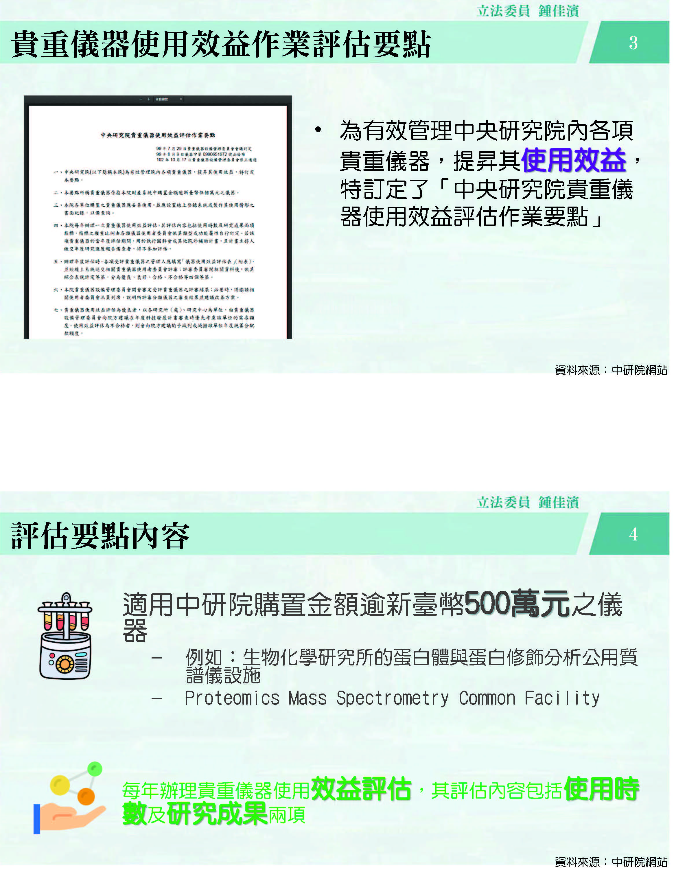 三、該筆預算之凍結以中研院提出書面報告後始得動支,然書面報告不應敷衍了事、保持「有交就好」的態度。且該筆預算的二十分之一仍高達640萬元;無論多寡,皆取自民脂民膏之公帑,點滴不容浪費。依中央研究院所提之書面報告,實難符合本委員會當初質疑與書面報告所要求說明之重點,有必要請中央研究院補充詳實說明。