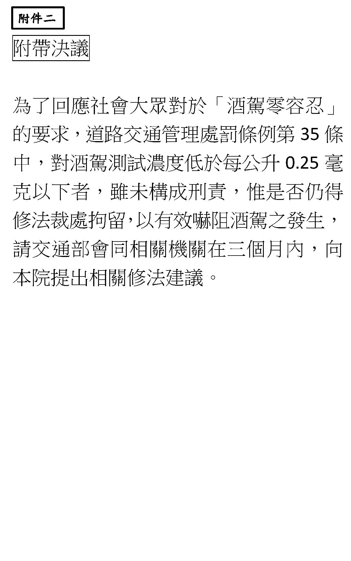 主席:就是增加「汽車駕駛人有前項第一款之情形者,其駕駛之車輛應加裝酒精氣敏點火自鎖裝置」,請問這是黨團的意見還是委員你的意見呢?