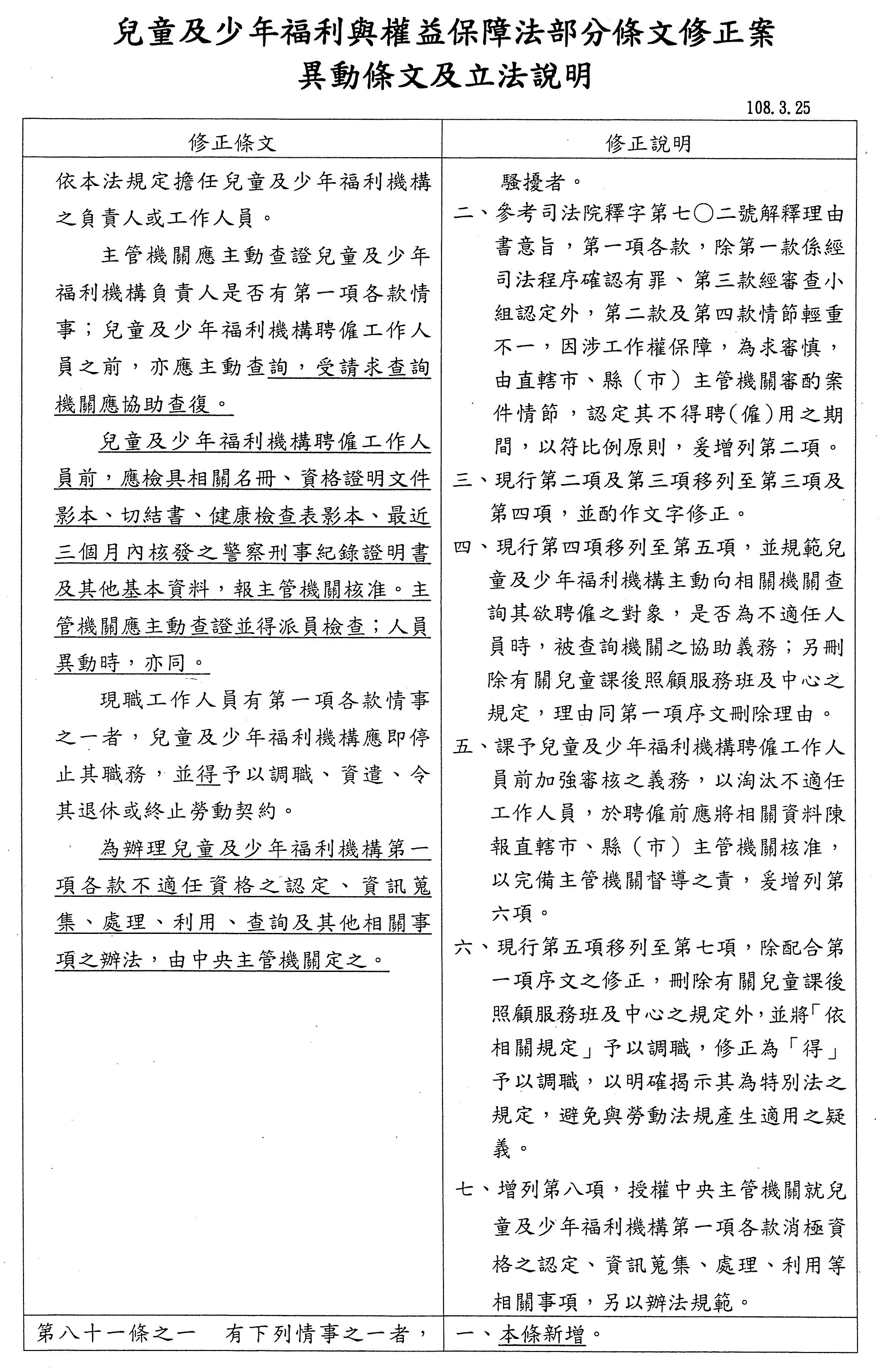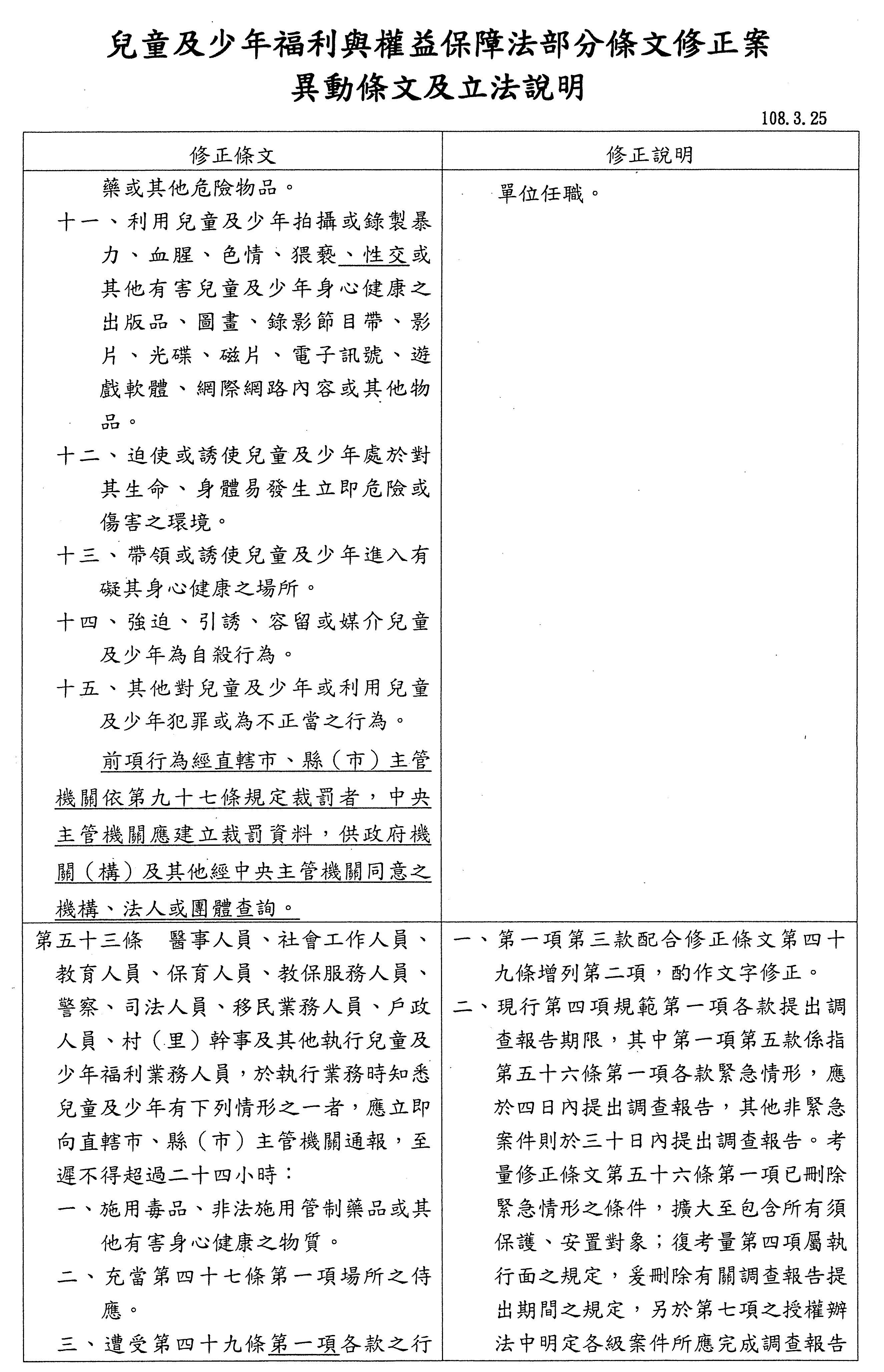 張次長斗輝:報告委員,從文字上看來,目前實際上是這麼做,但是以前沒有這個條文,社政和警政可能不是那麼理解這個部分,他們很可能繼續去找,如果以後有這些相關條文,讓他們非常清楚,會強化他們報請移送的意願……