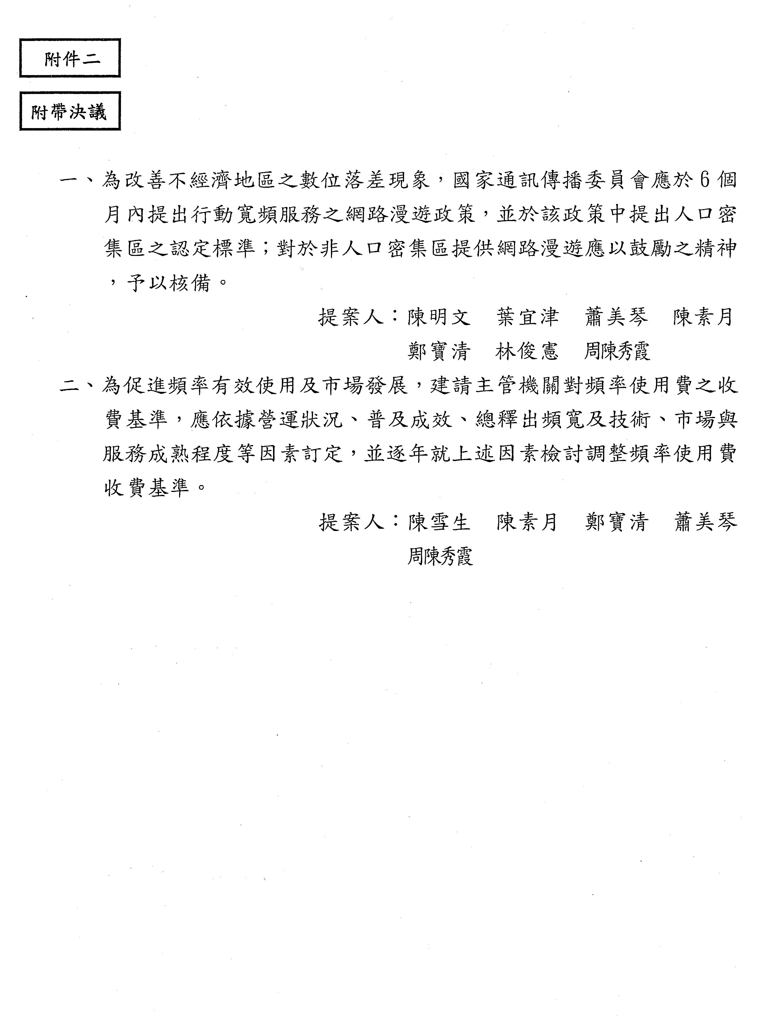 二、通過附帶決議2項(含審查會通過附帶決議1項),如附件二。