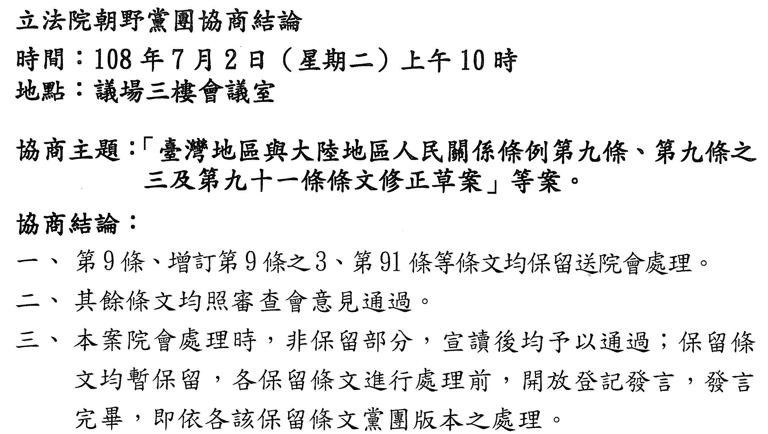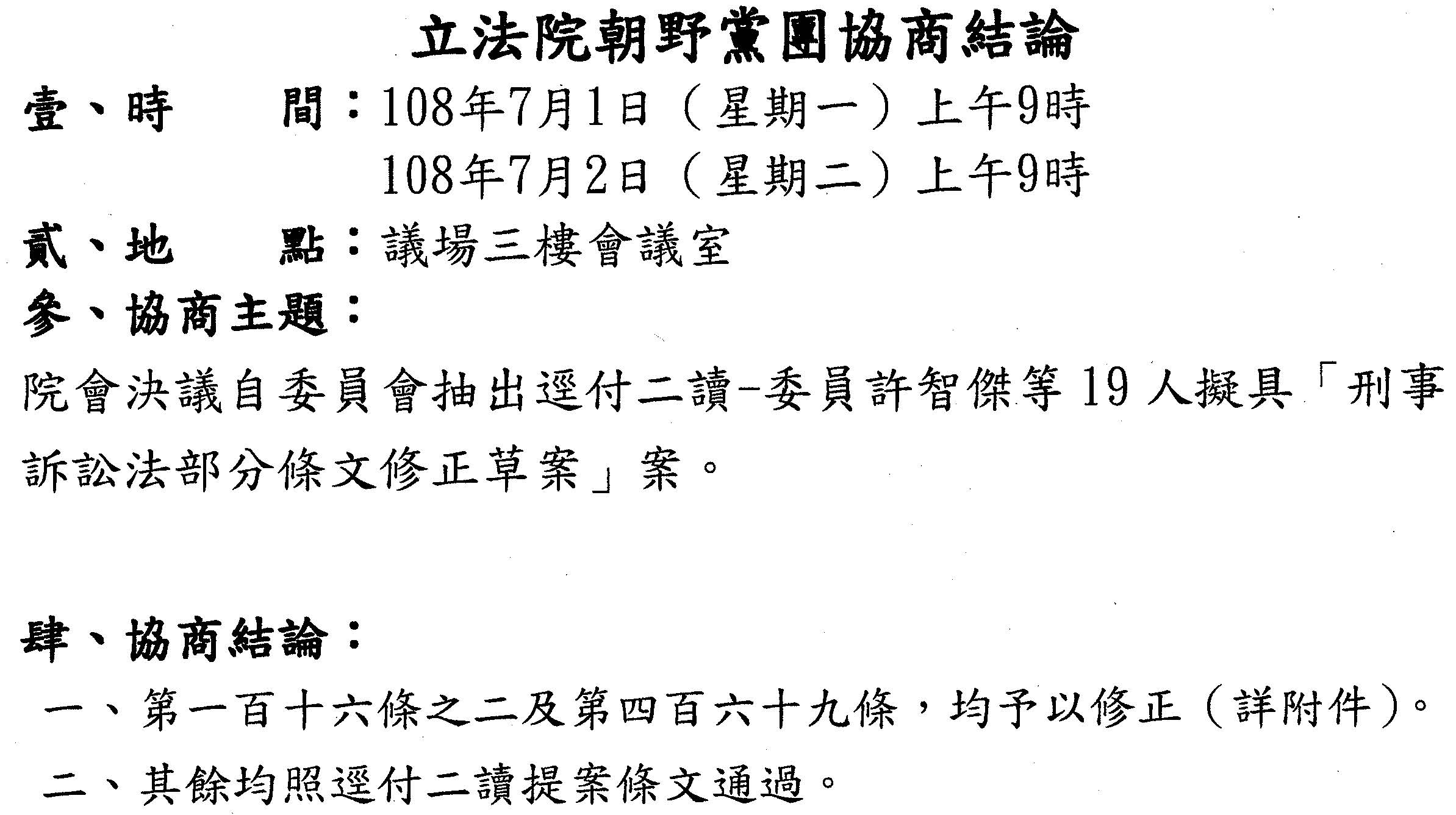 協商代表:柯建銘 鄭運鵬 管碧玲(代) 黃國昌 周陳秀霞 李鴻鈞(代) 曾銘宗 吳志揚(代) 陳宜民(代)