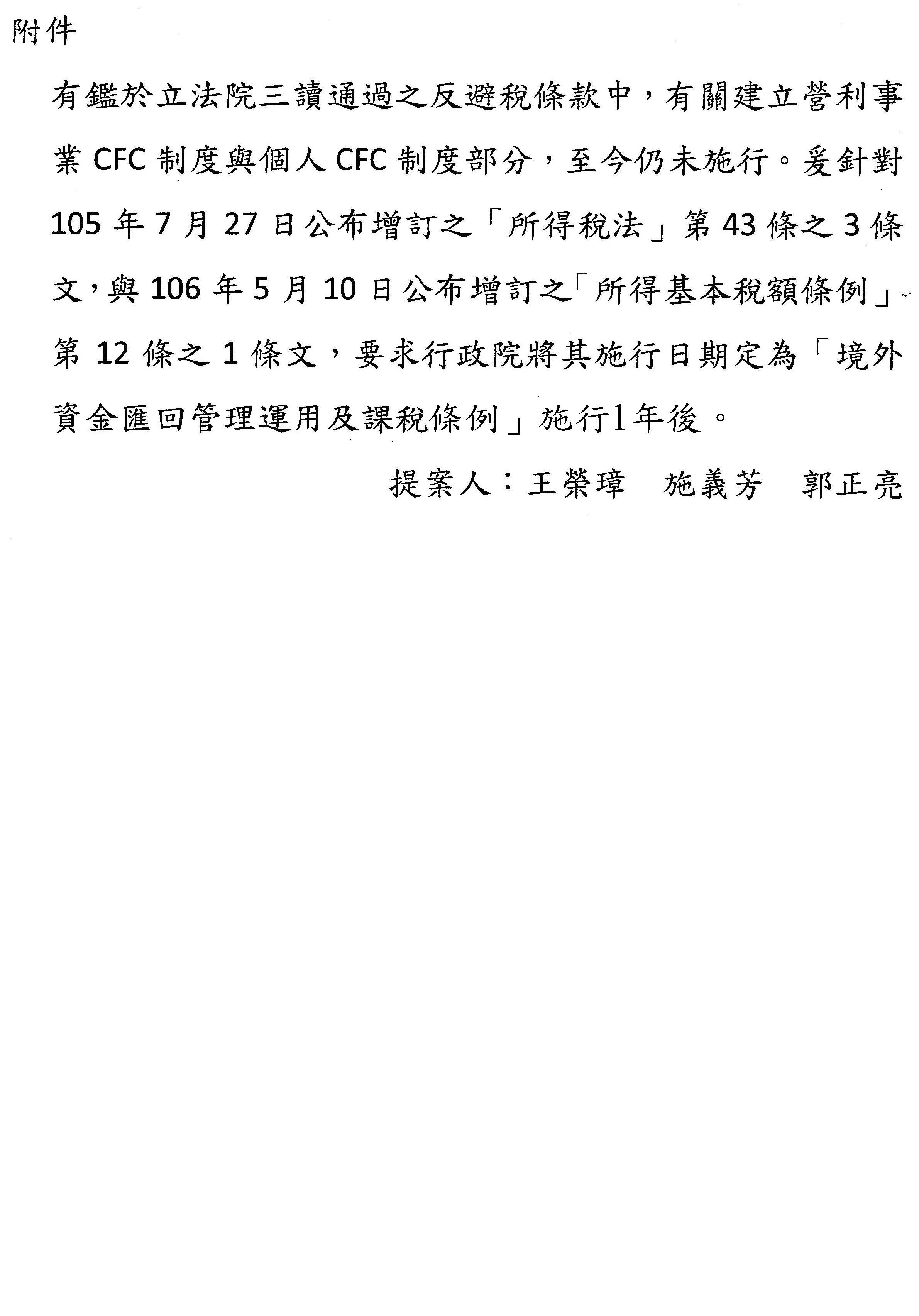 柯委員建銘:國民黨沒有提出版本吧?沒有修正案?時代力量黨團的部分有三項,我們來處理,好不好?