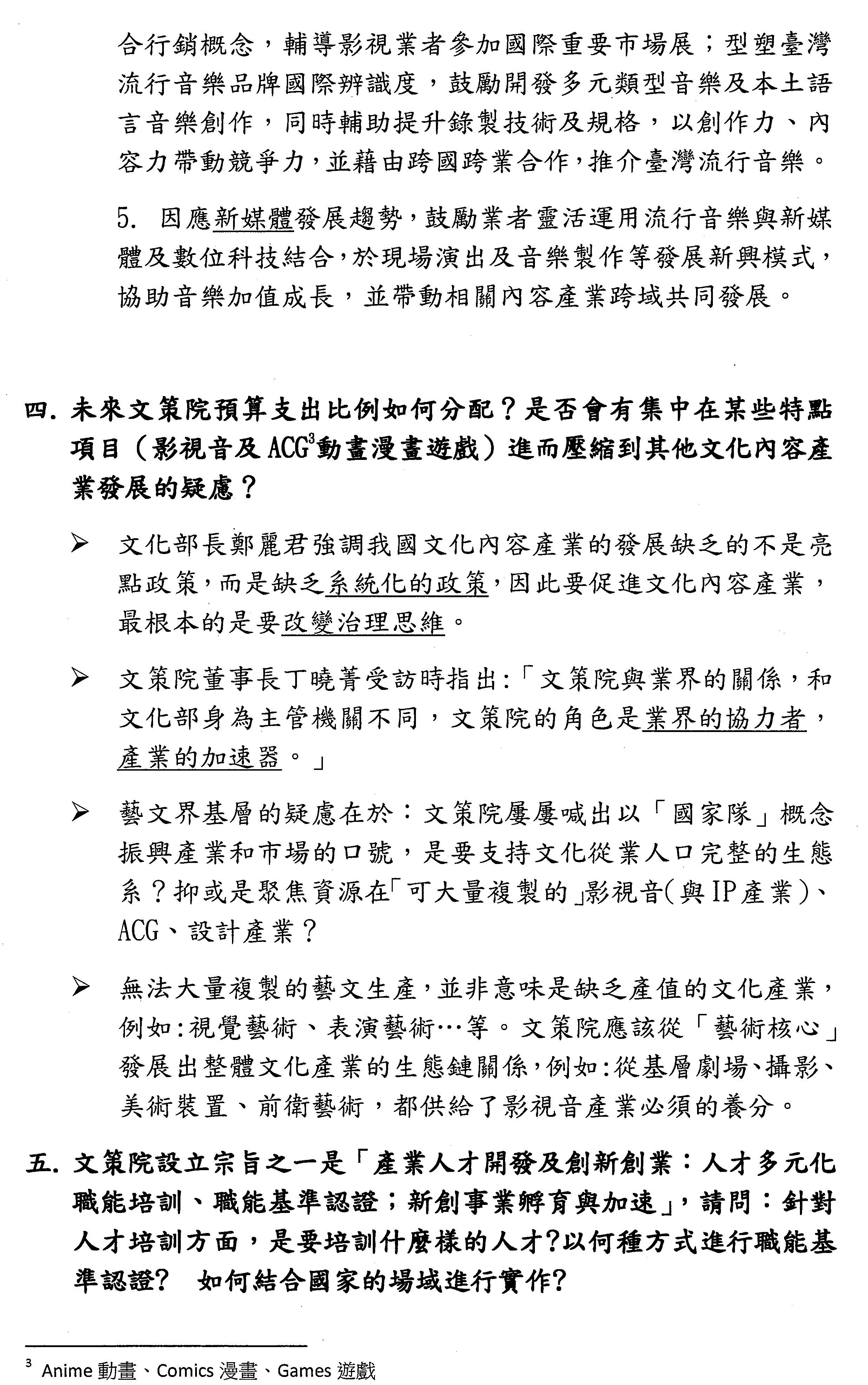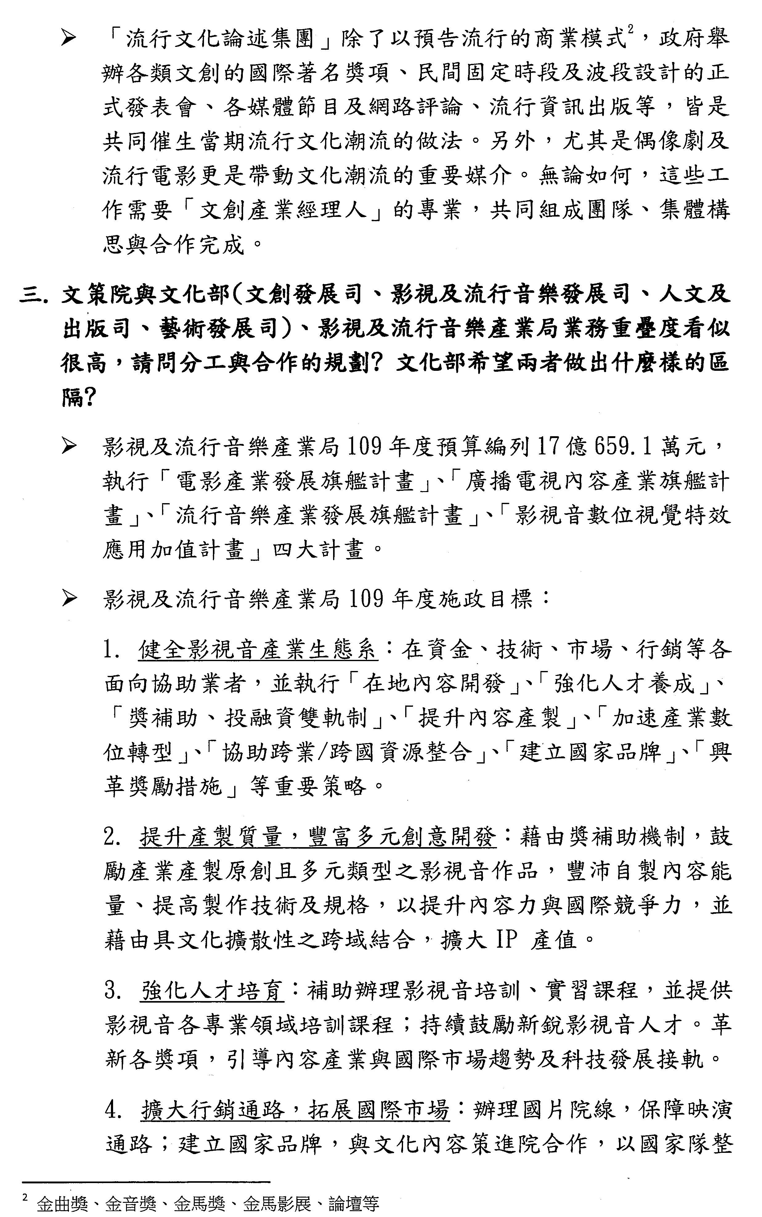 何委員欣純:在這個堅持之下,剛剛院長也提到了,中國用極權專制的方式控制了、甚至試圖影響了臺灣的經濟,那我們對經濟的這個區塊,又該如何來幫助過往在中國受到壓迫或是傷害的臺商?他們現在要回流了。其實剛才院長也回答其他委員這個問題。