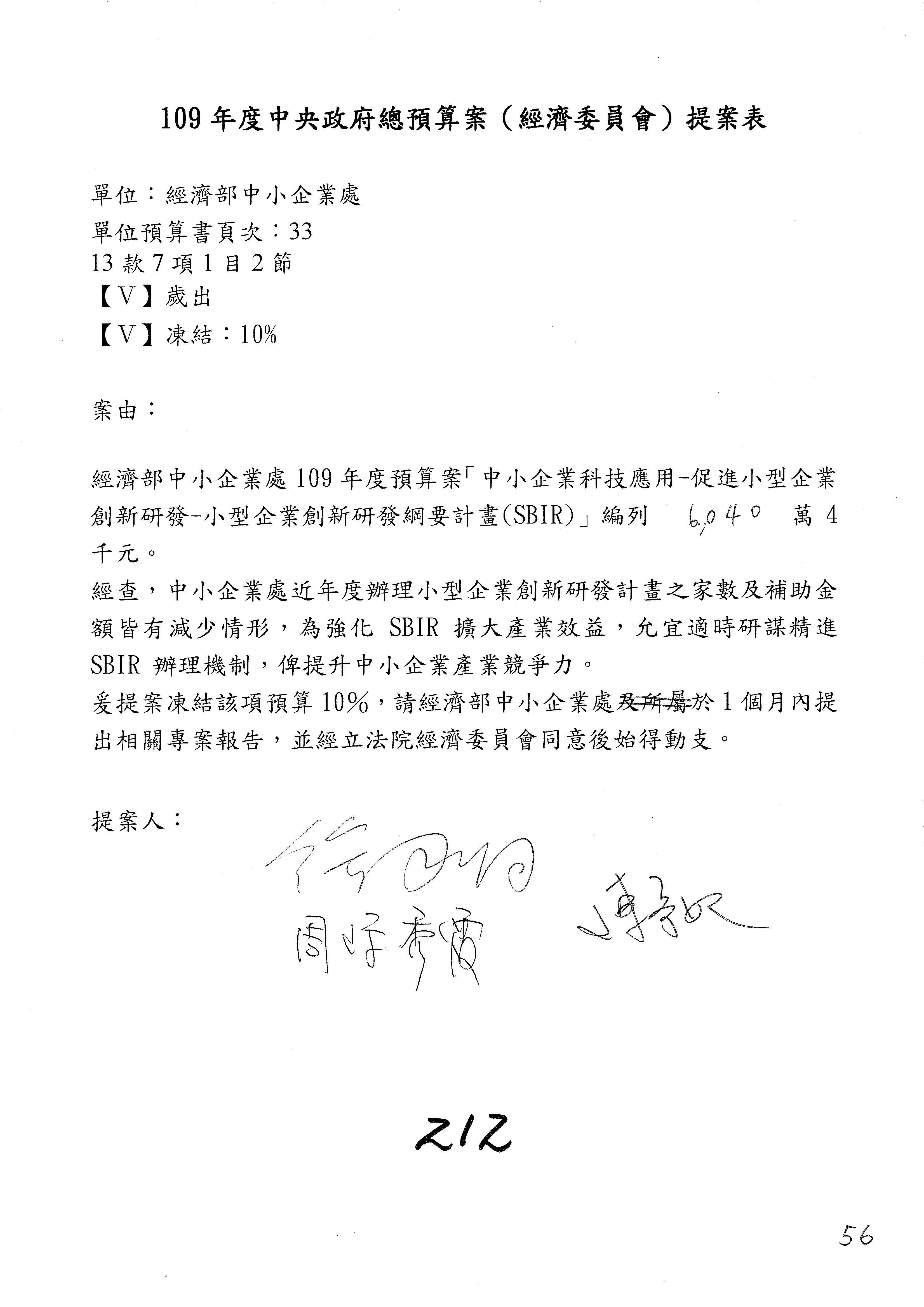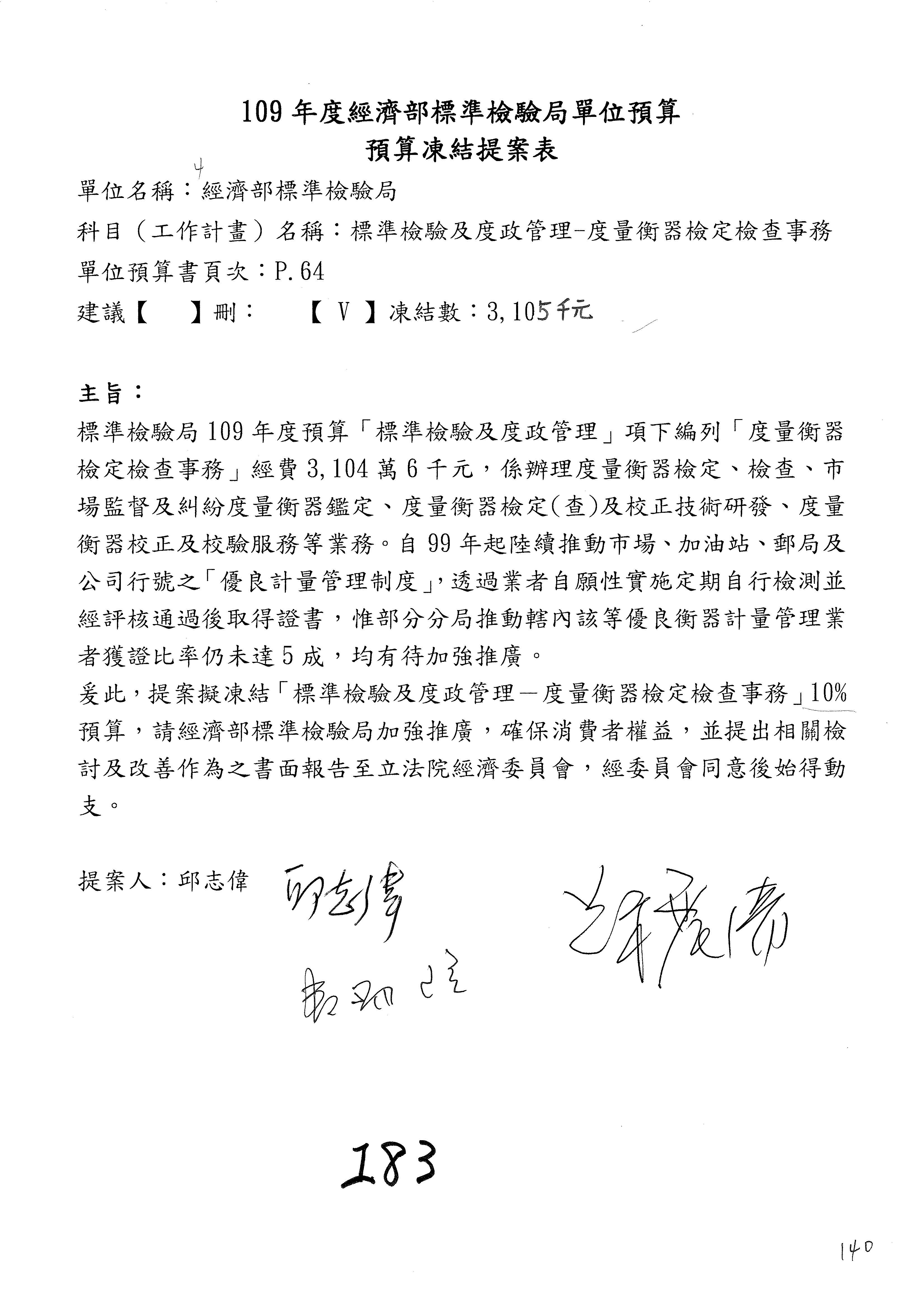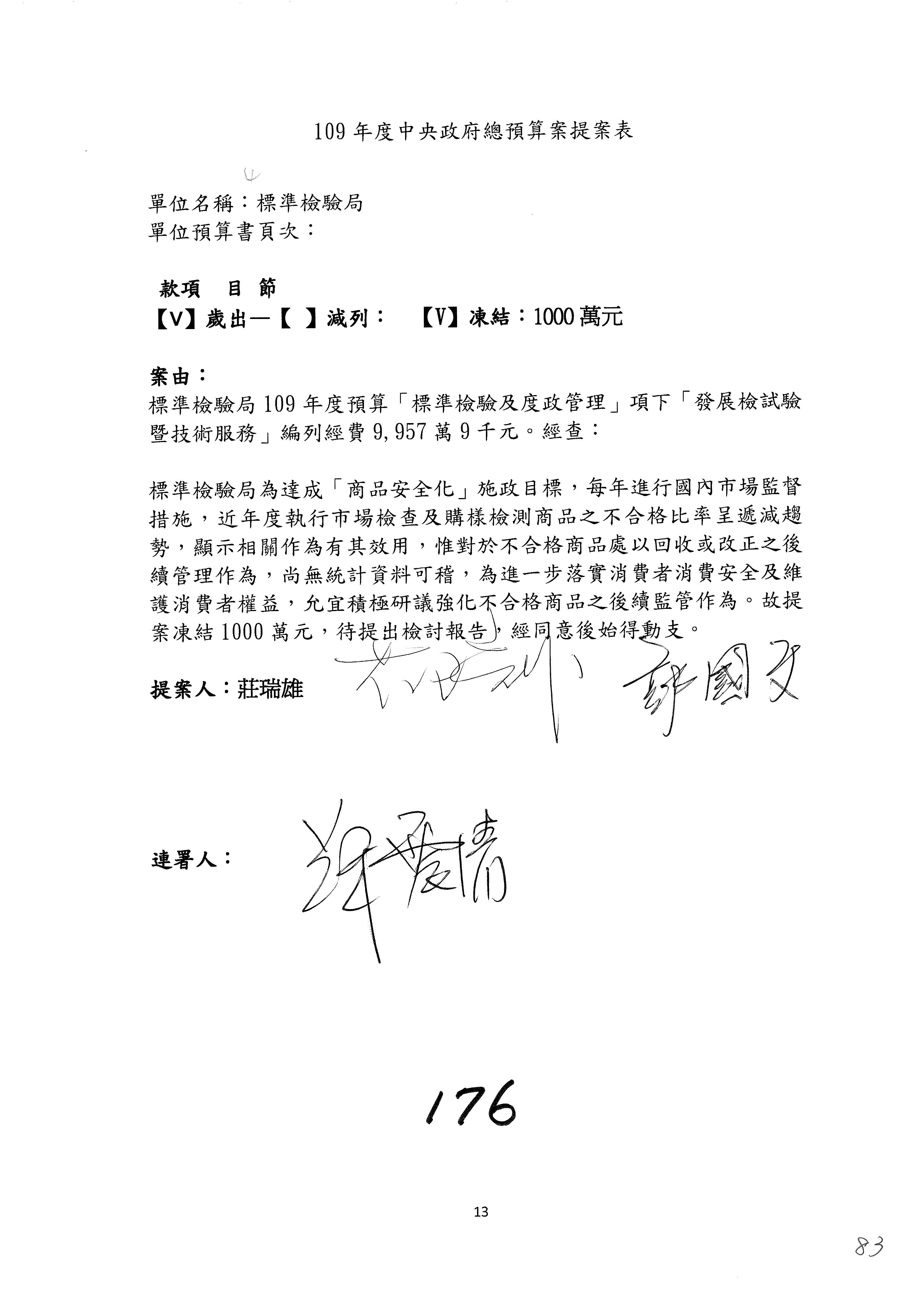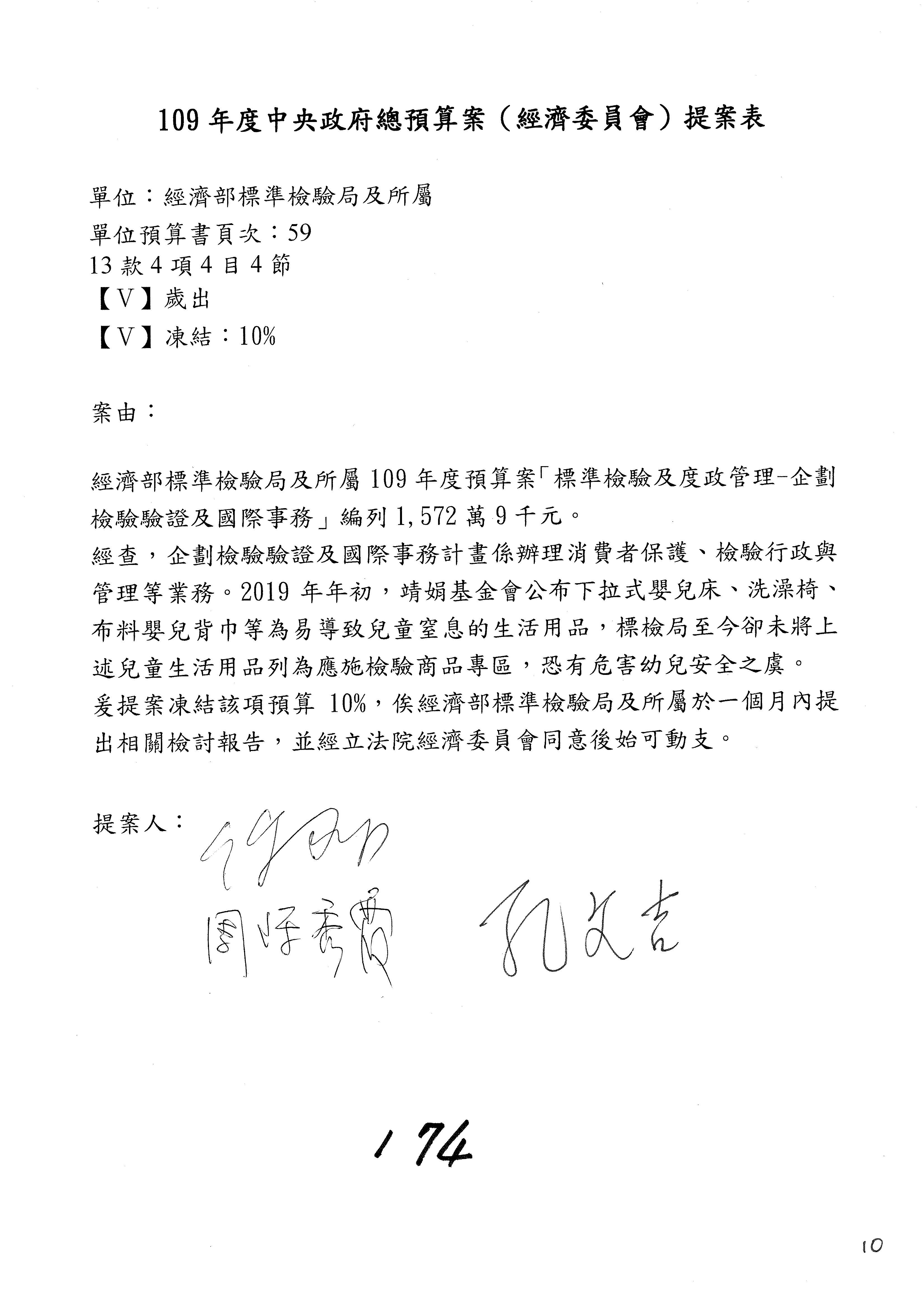 主席:我是很仁慈心的人,但是我也有任務,我就改成凍結10%,提書面報告,好不好?拜託給我通過。這樣你們也不行?