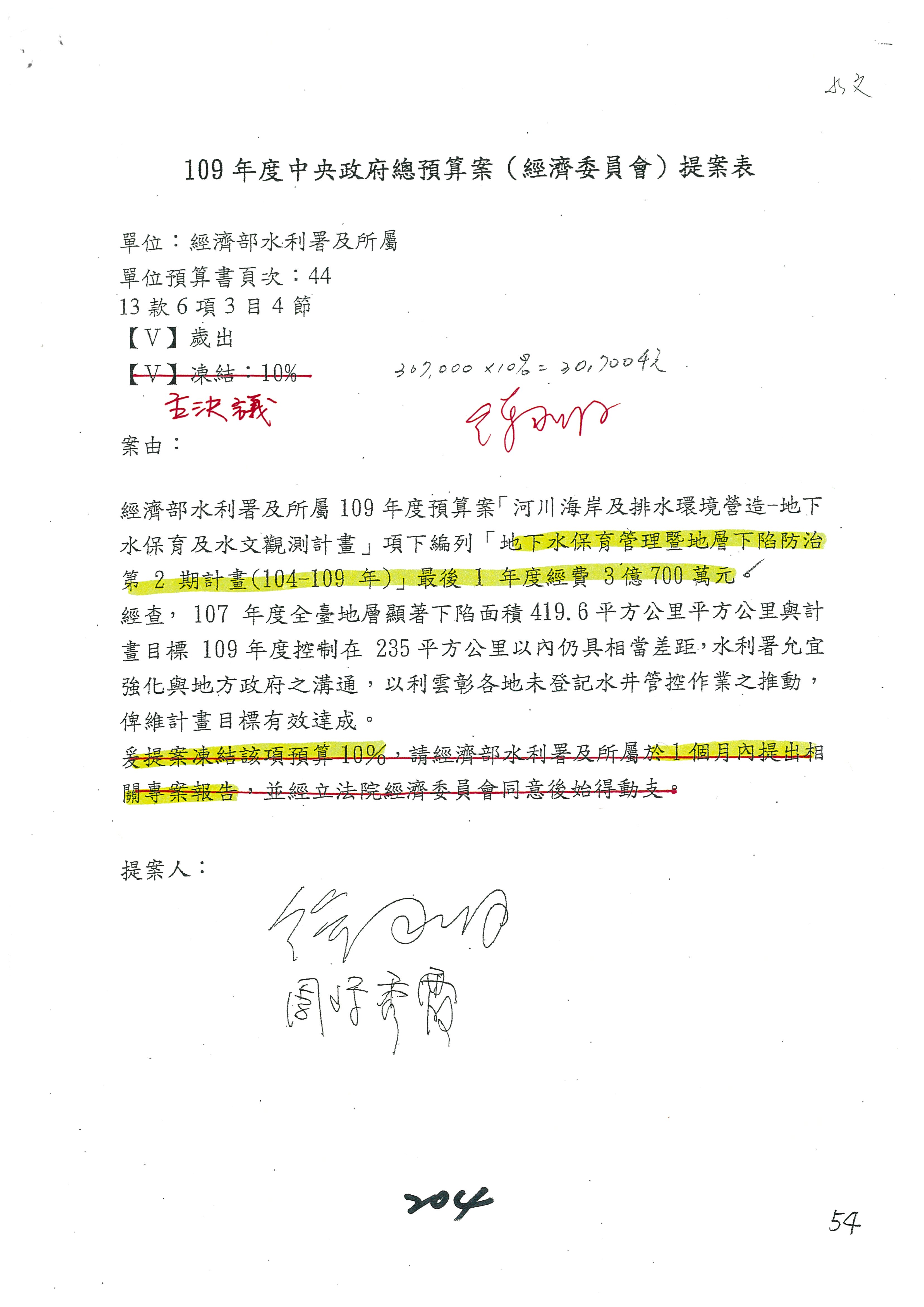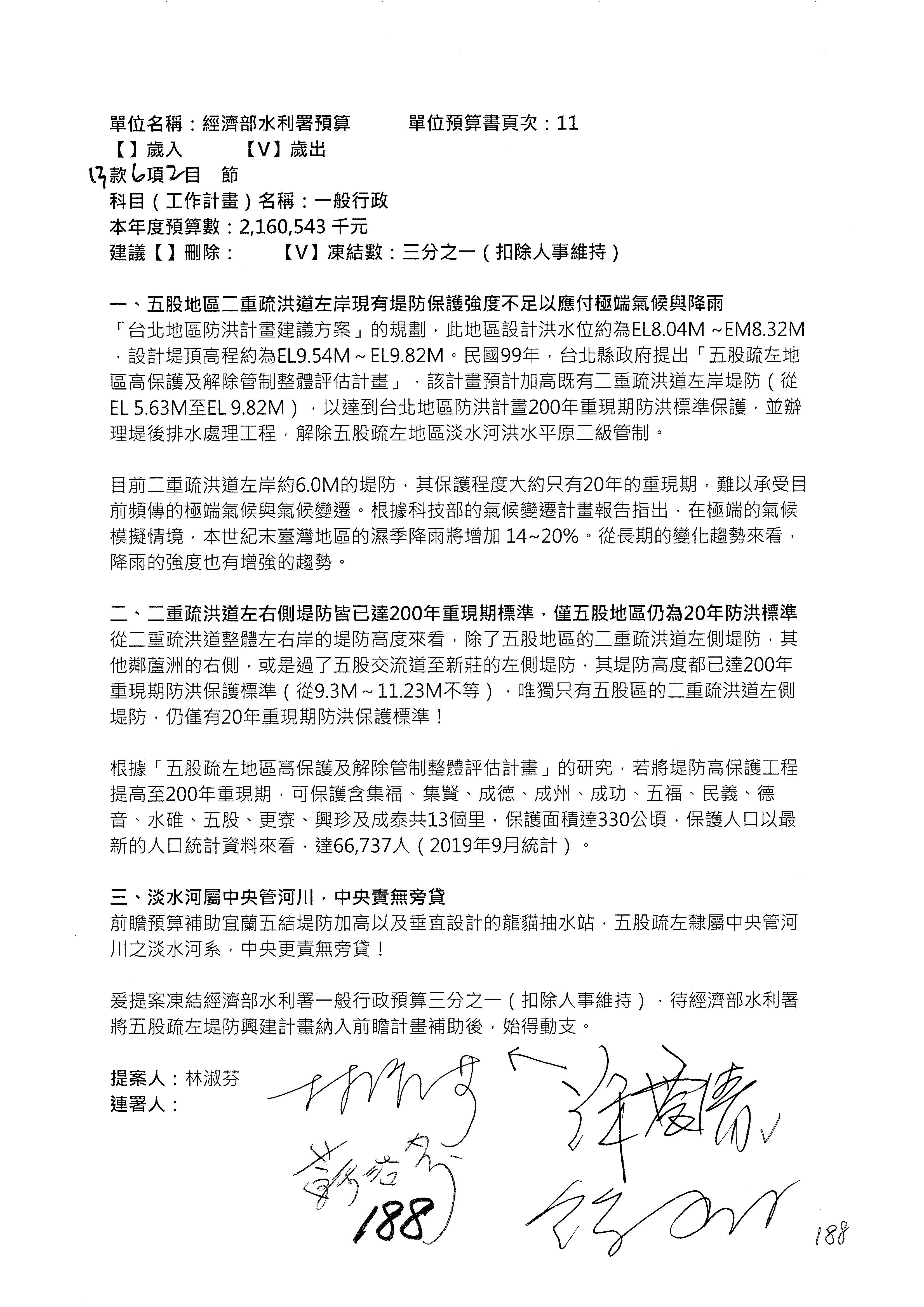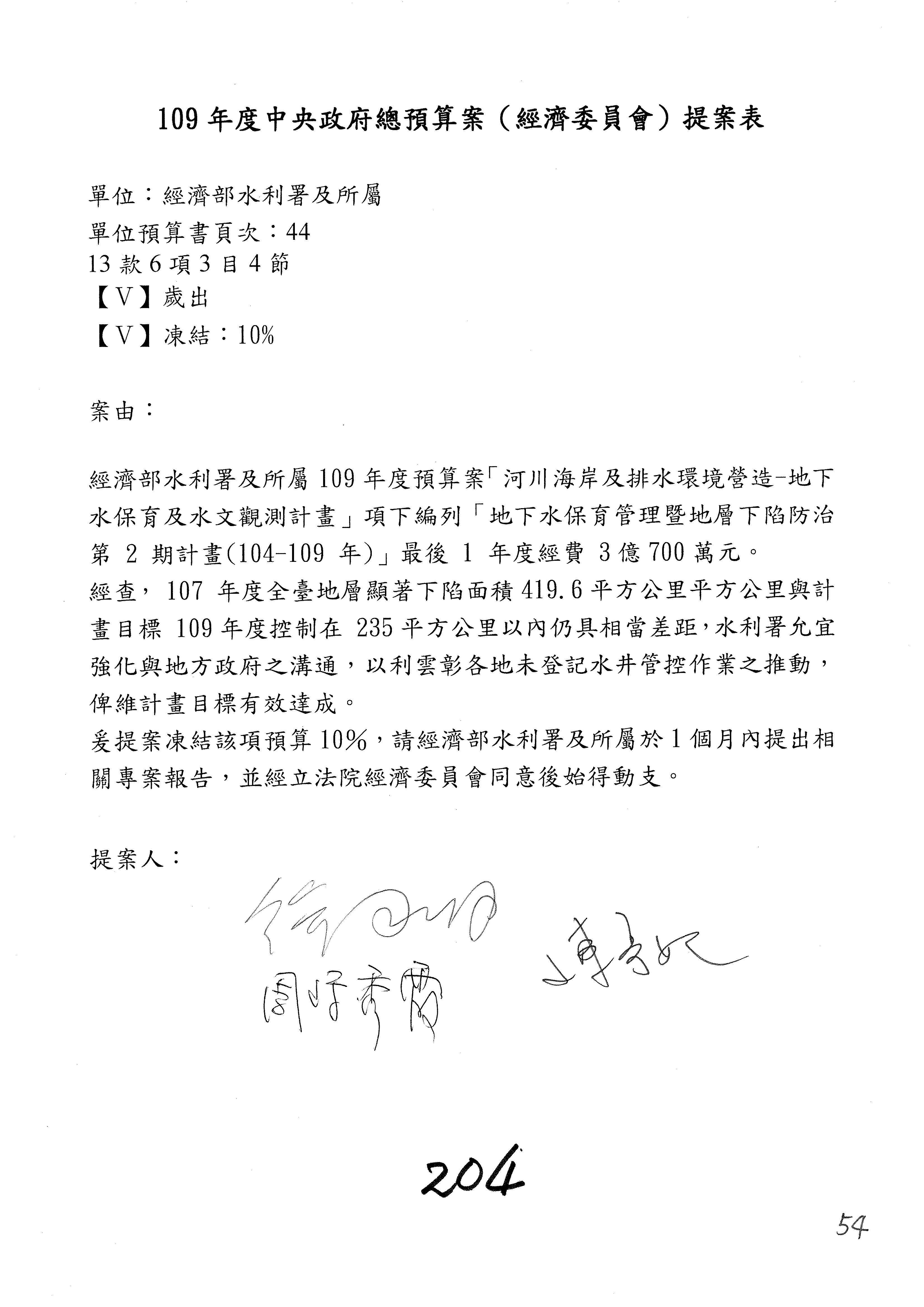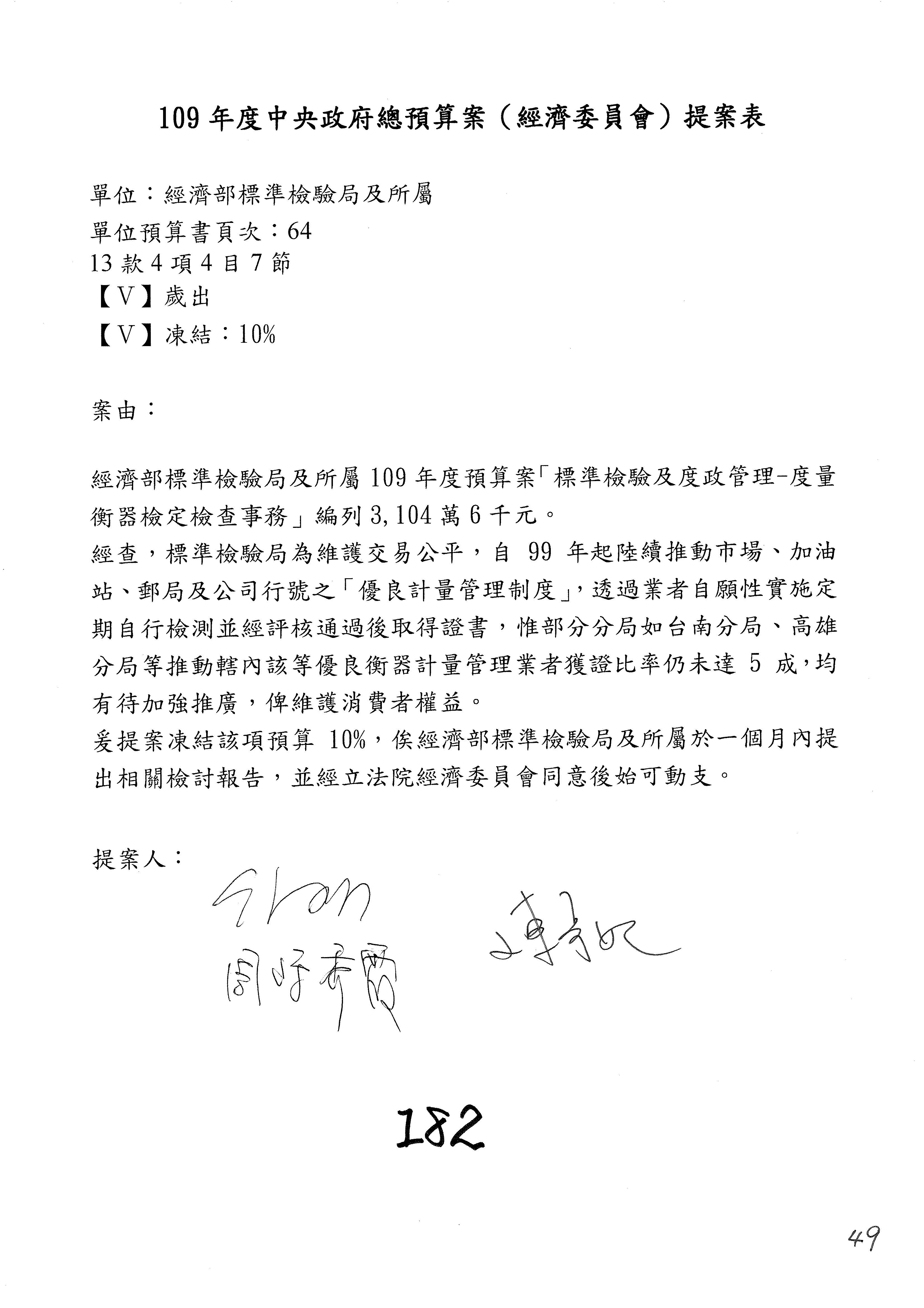 主席:我是很仁慈心的人,但是我也有任務,我就改成凍結10%,提書面報告,好不好?拜託給我通過。這樣你們也不行?