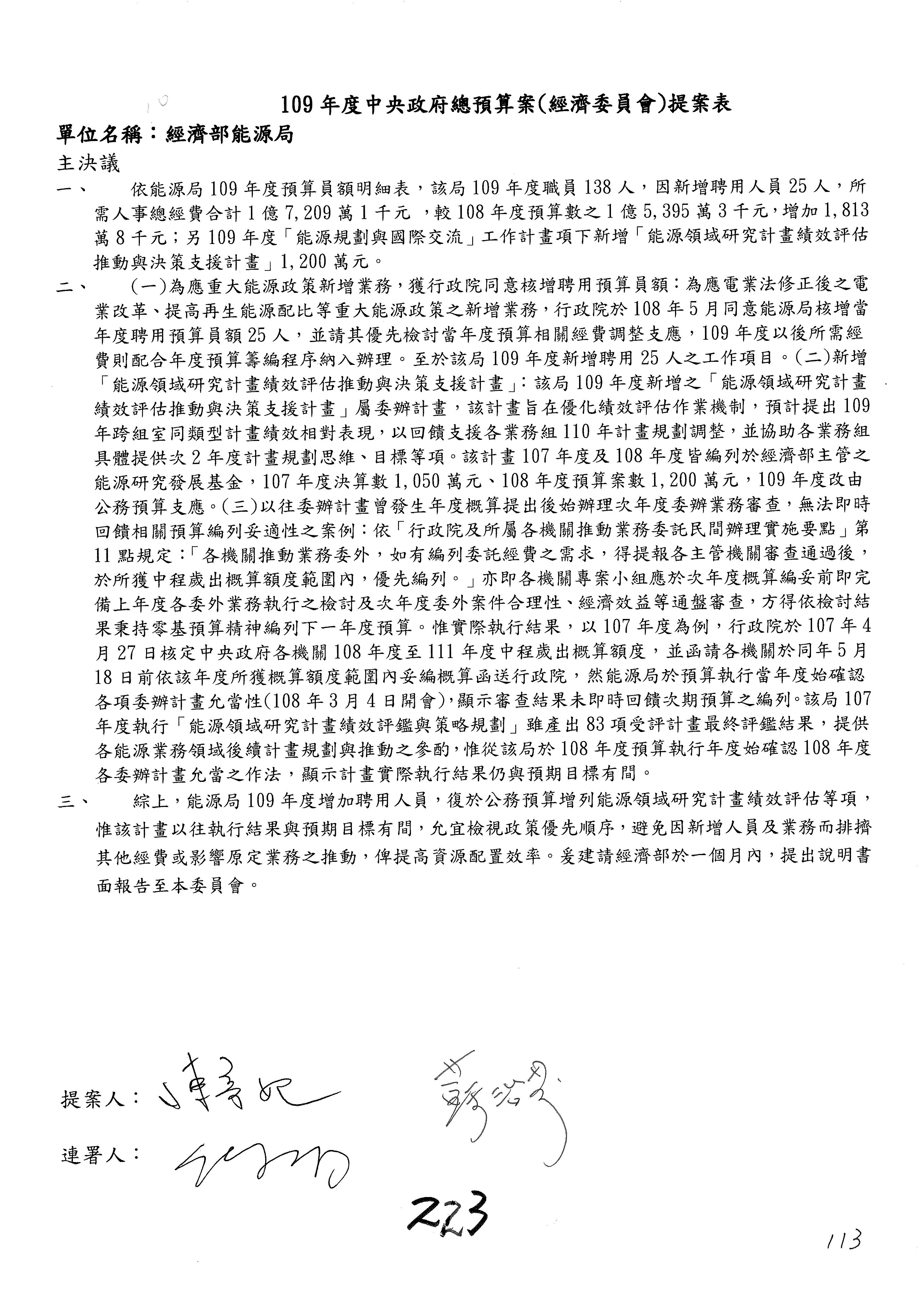 現在處理協商主決議第223案。