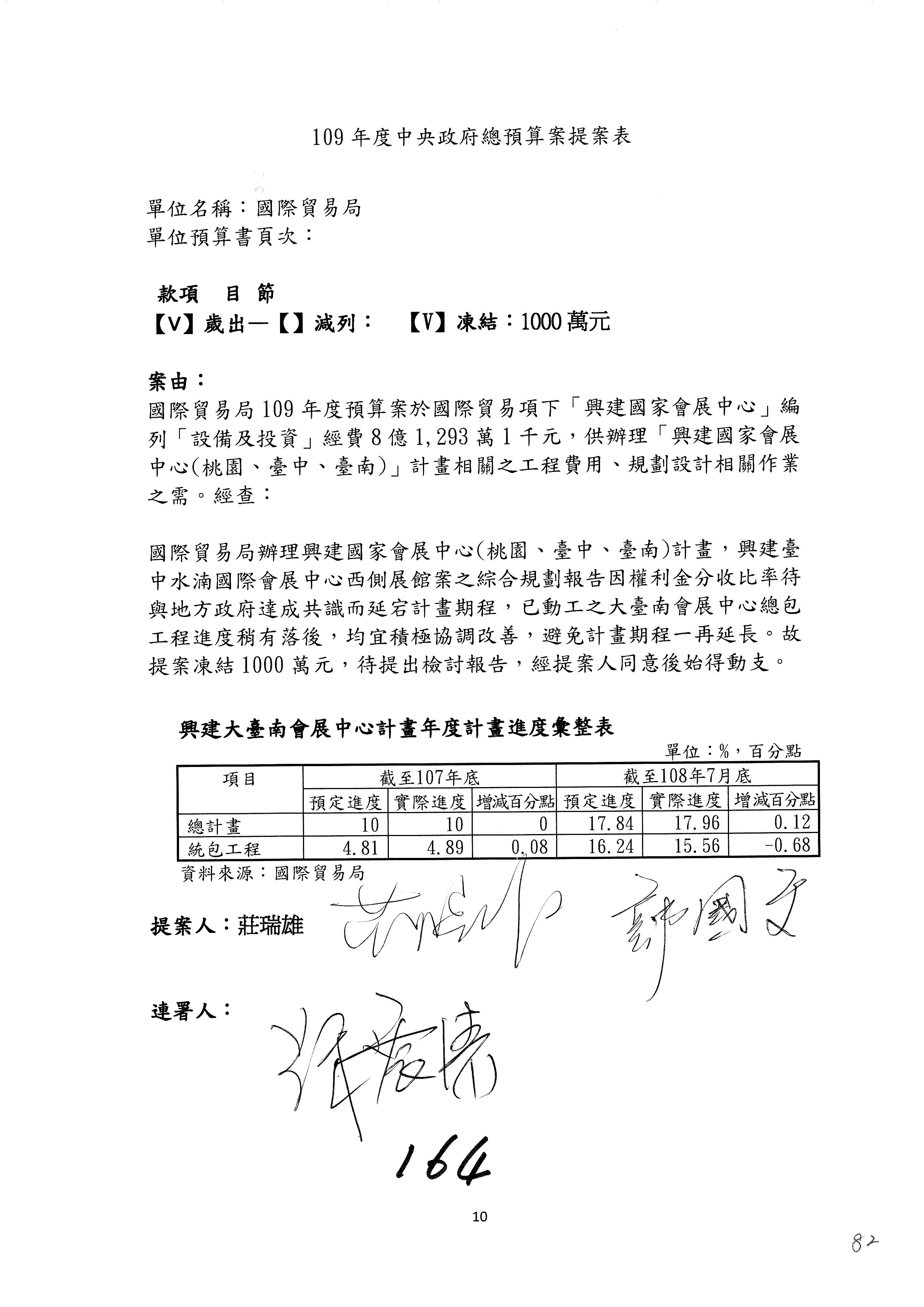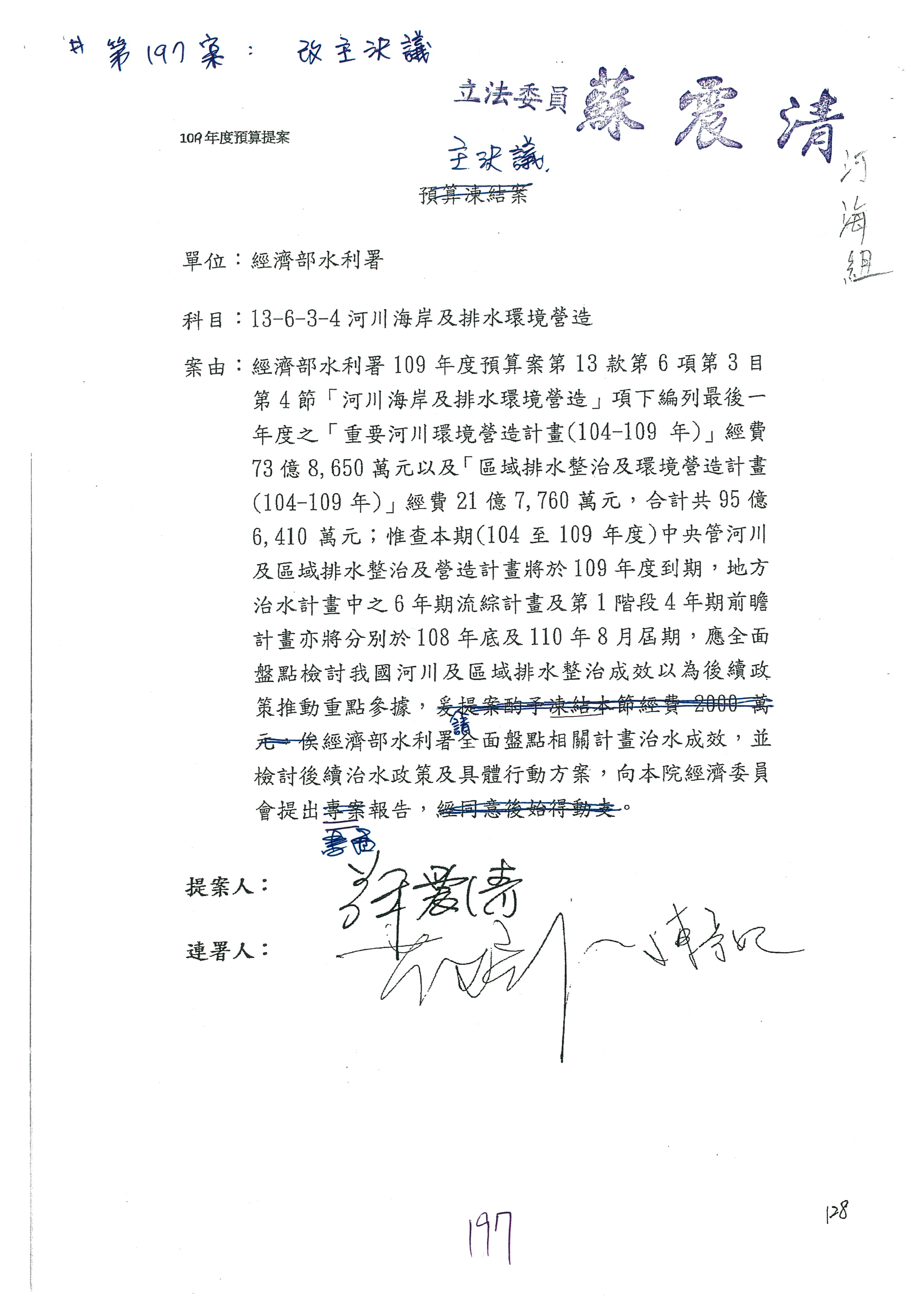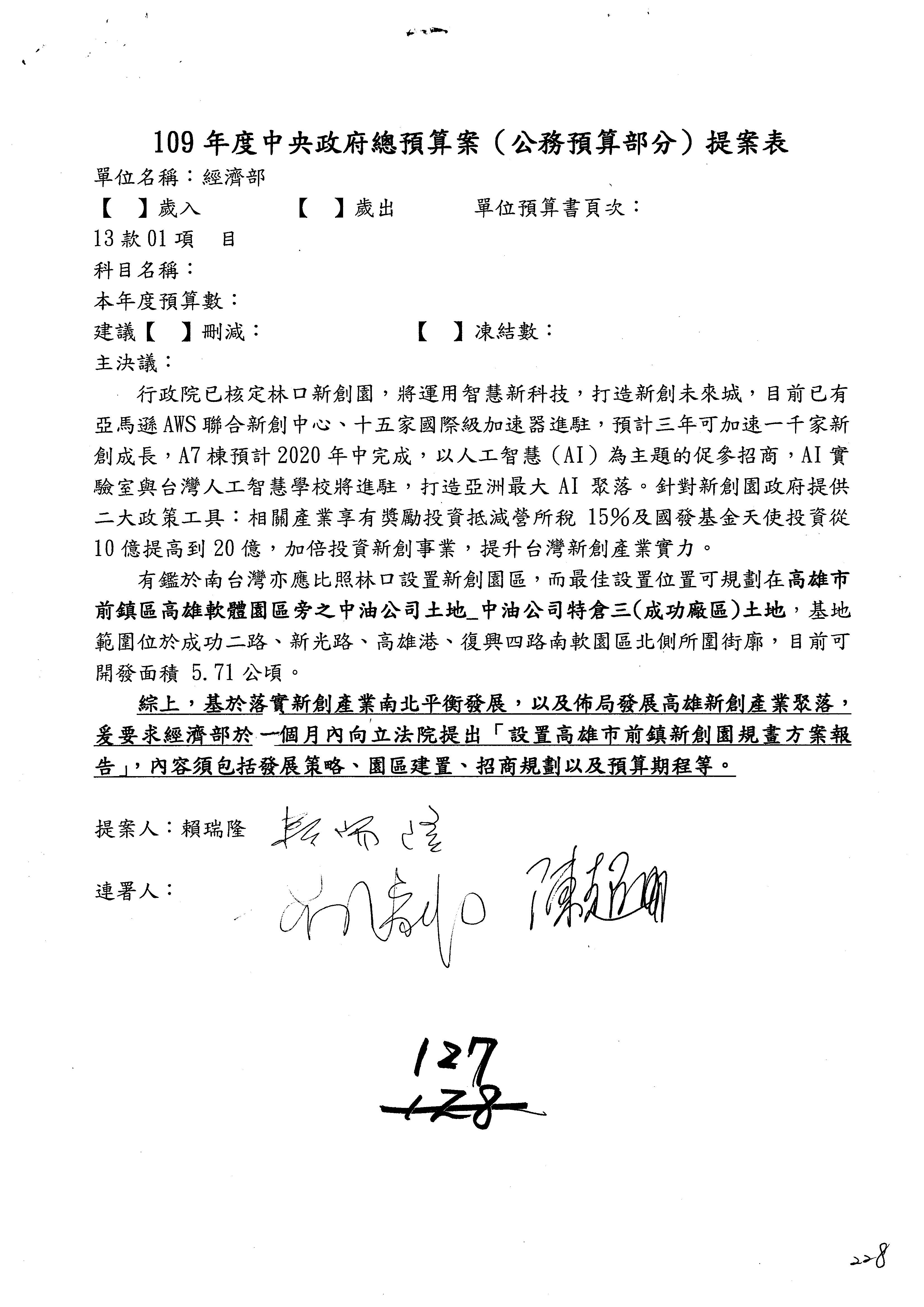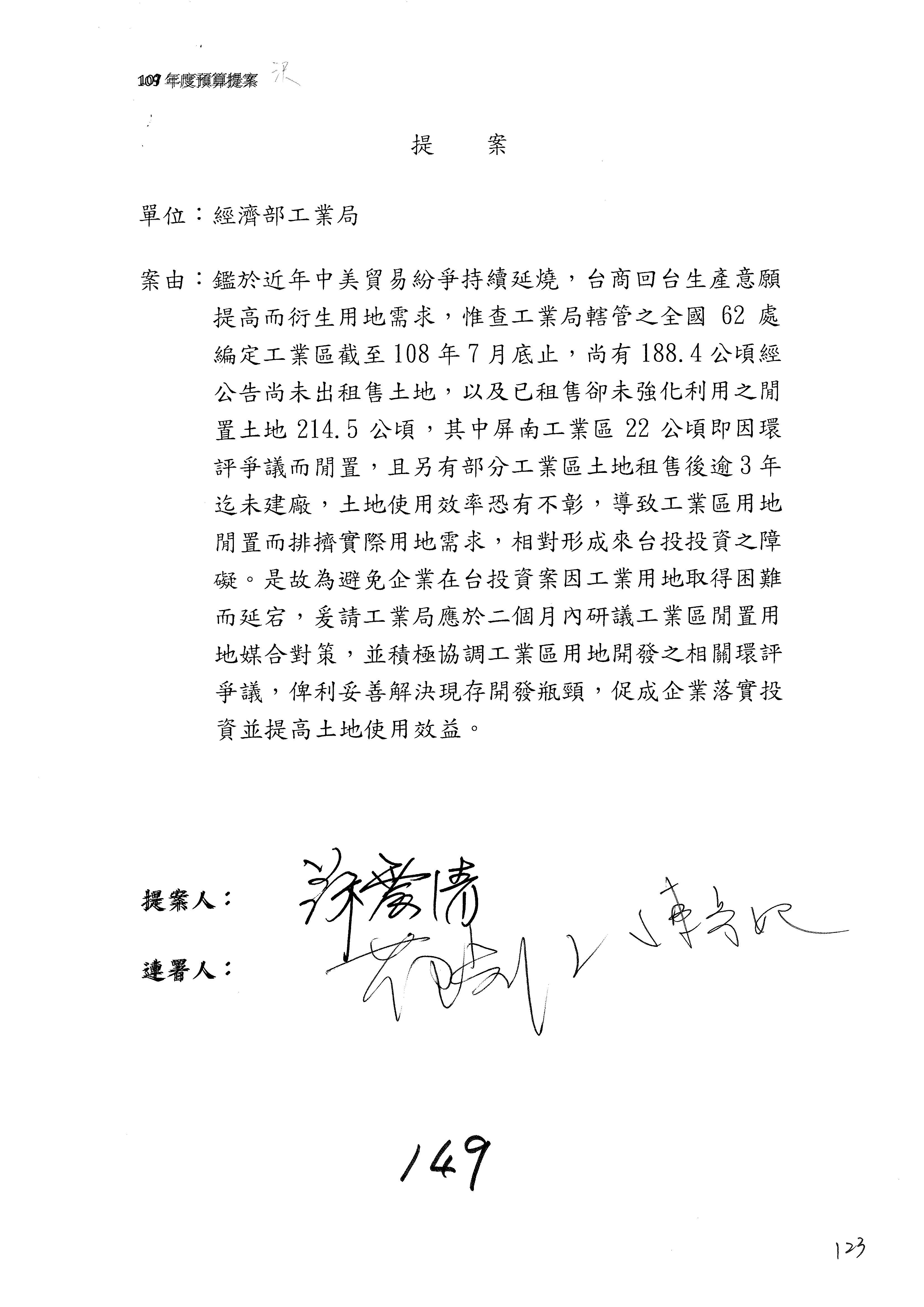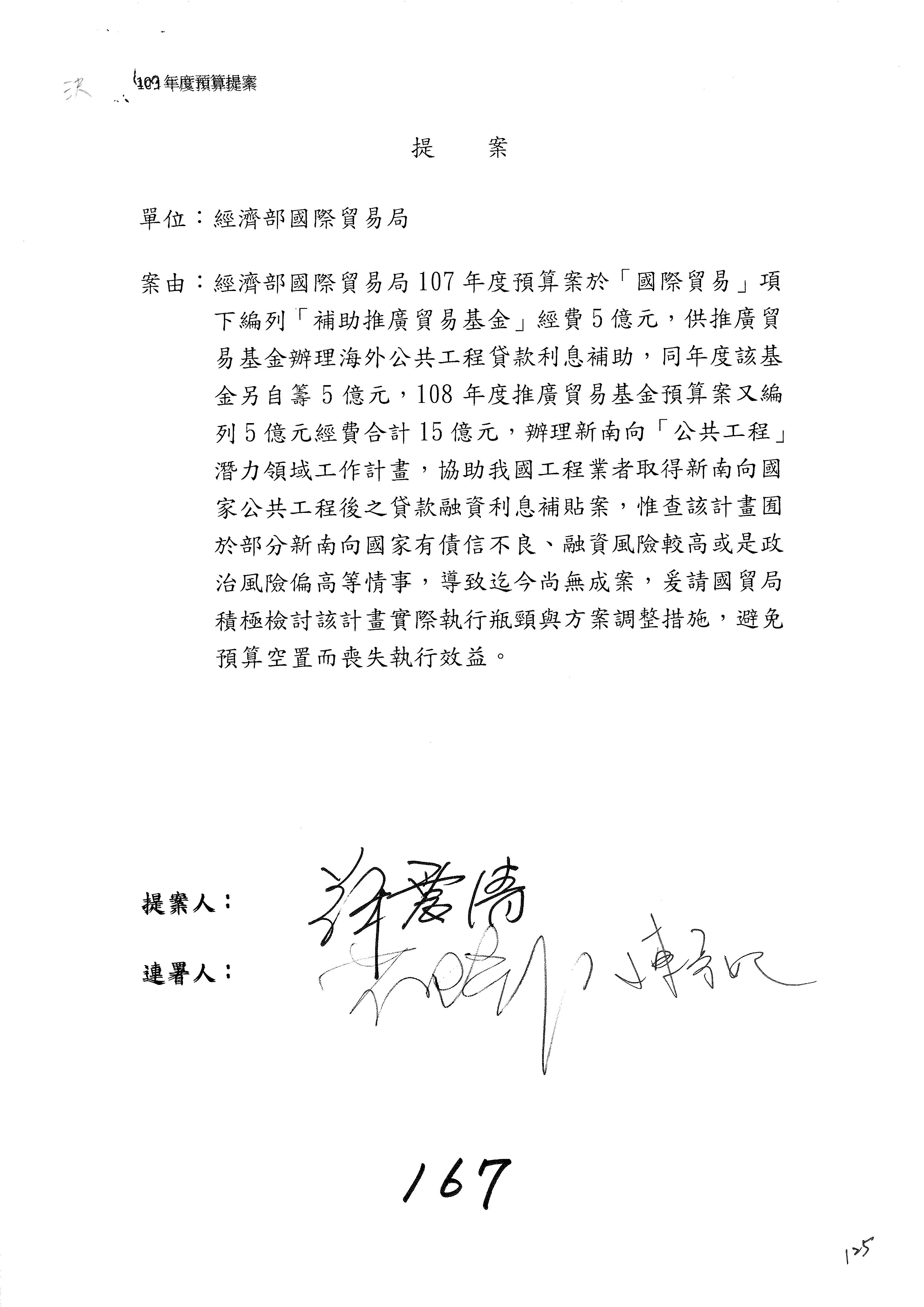 提案人:蘇震清 陳亭妃 邱議瑩 莊瑞雄 徐永明 周陳秀霞 賴瑞隆 陳超明 廖國棟 孔文吉 邱志偉 連署人:郭國文