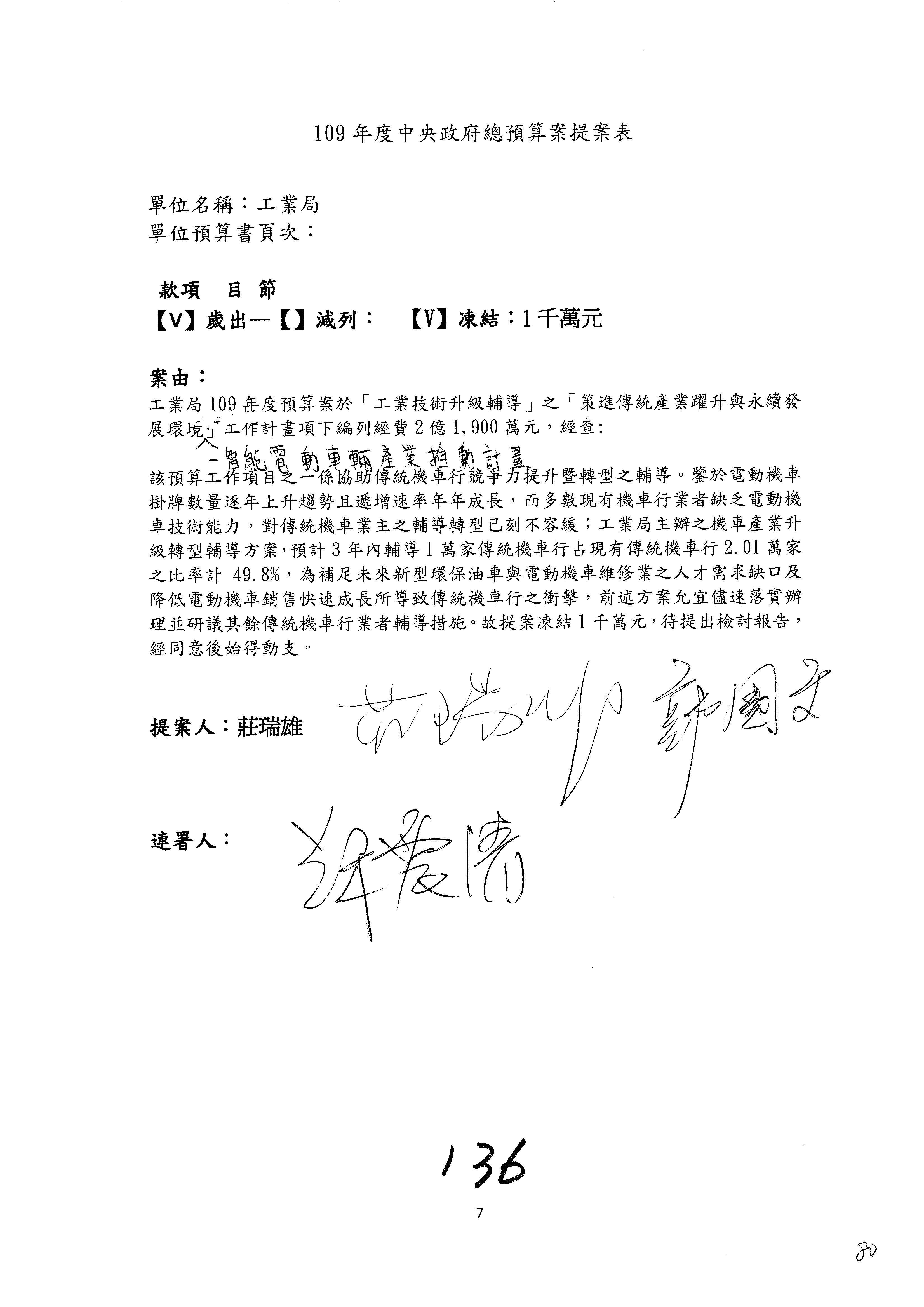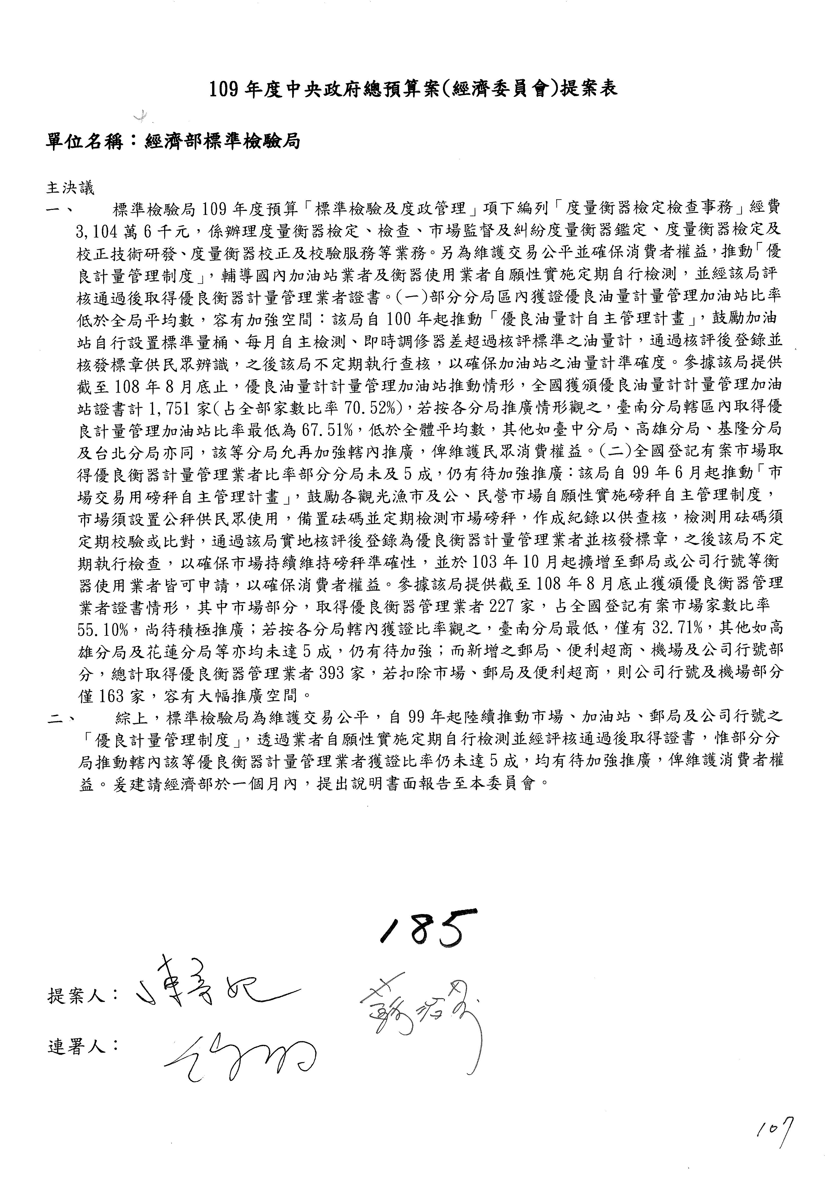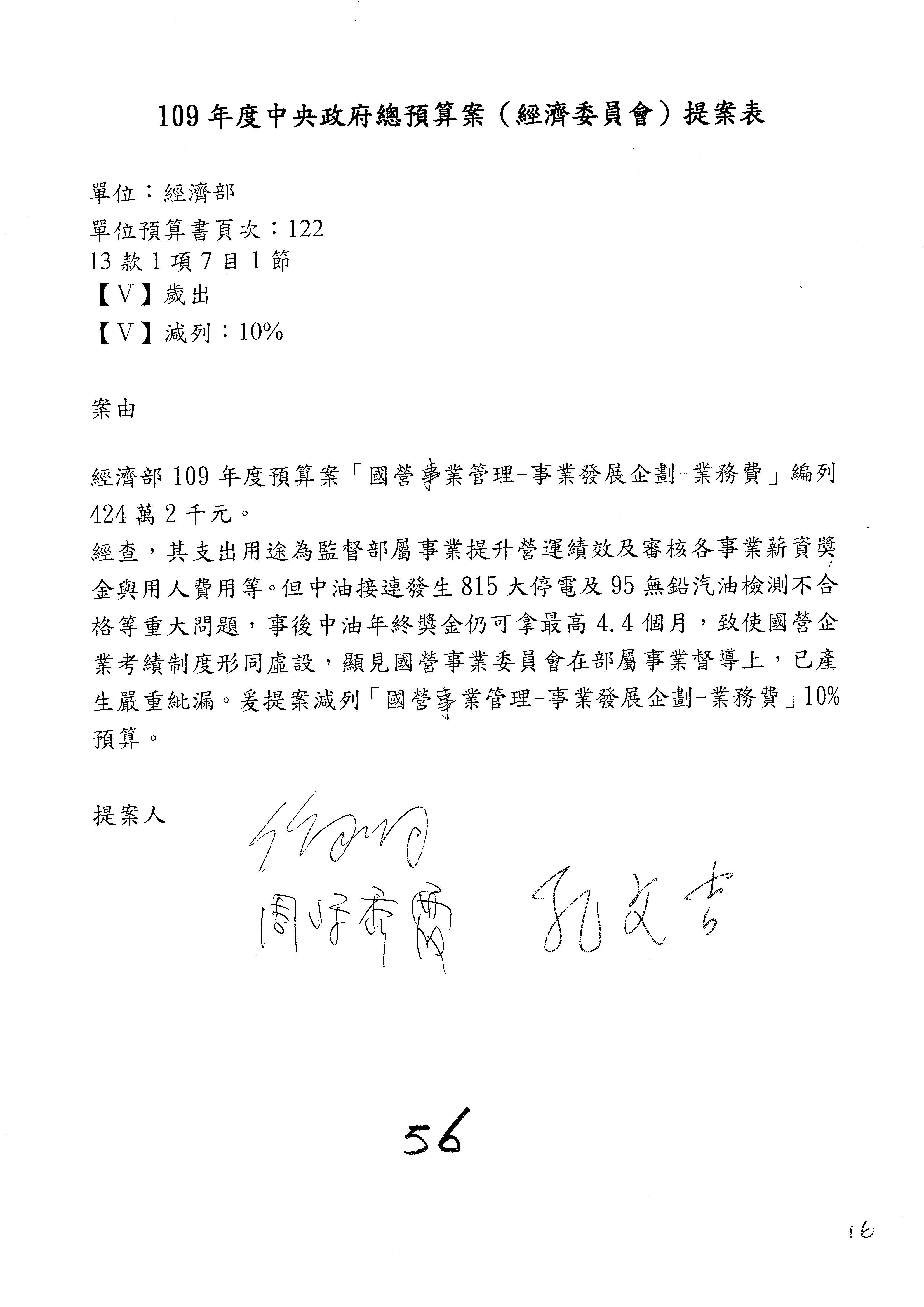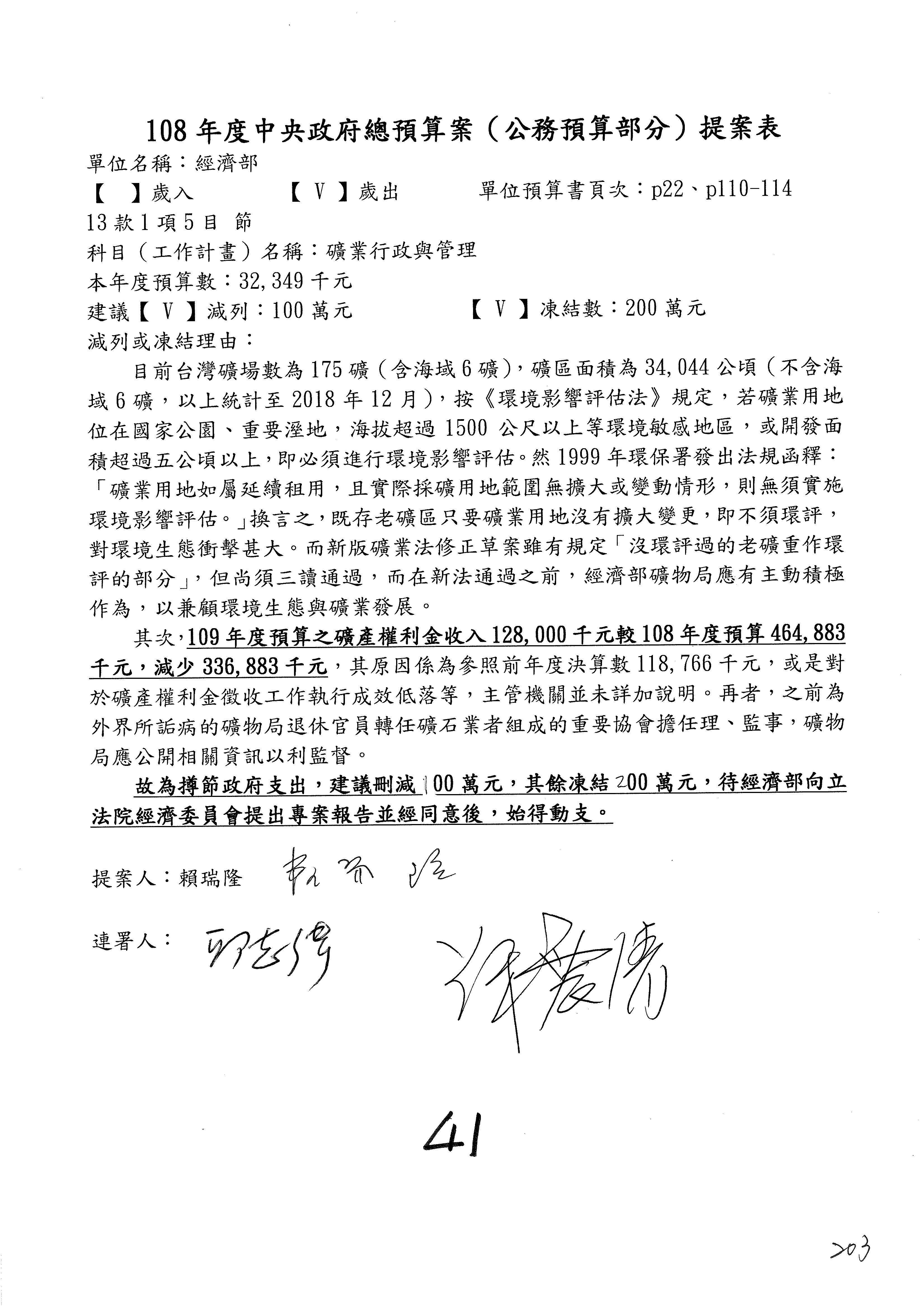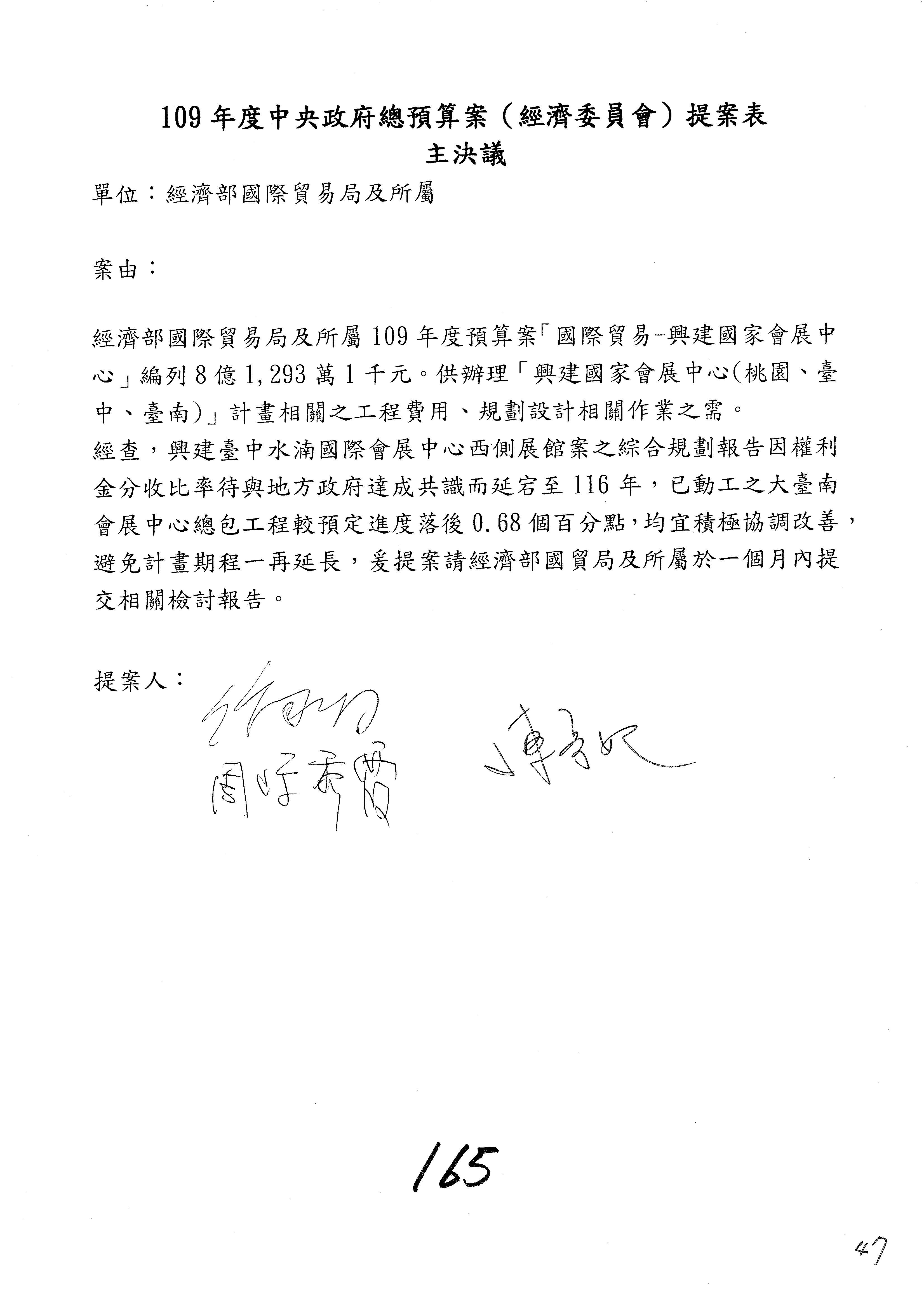 提案人:蘇震清 陳亭妃 邱議瑩 莊瑞雄 徐永明 周陳秀霞 賴瑞隆 陳超明 廖國棟 孔文吉 邱志偉 連署人:郭國文