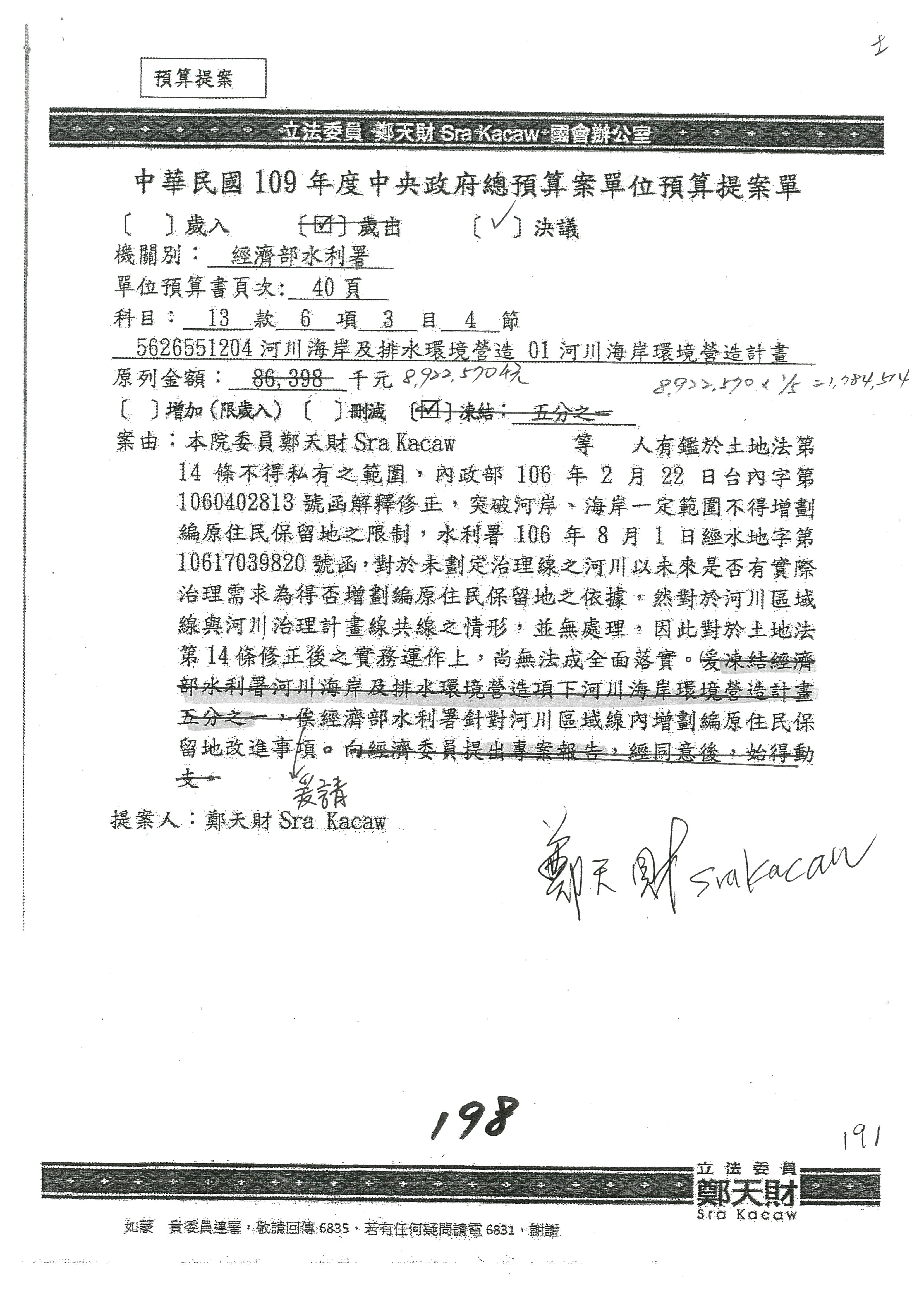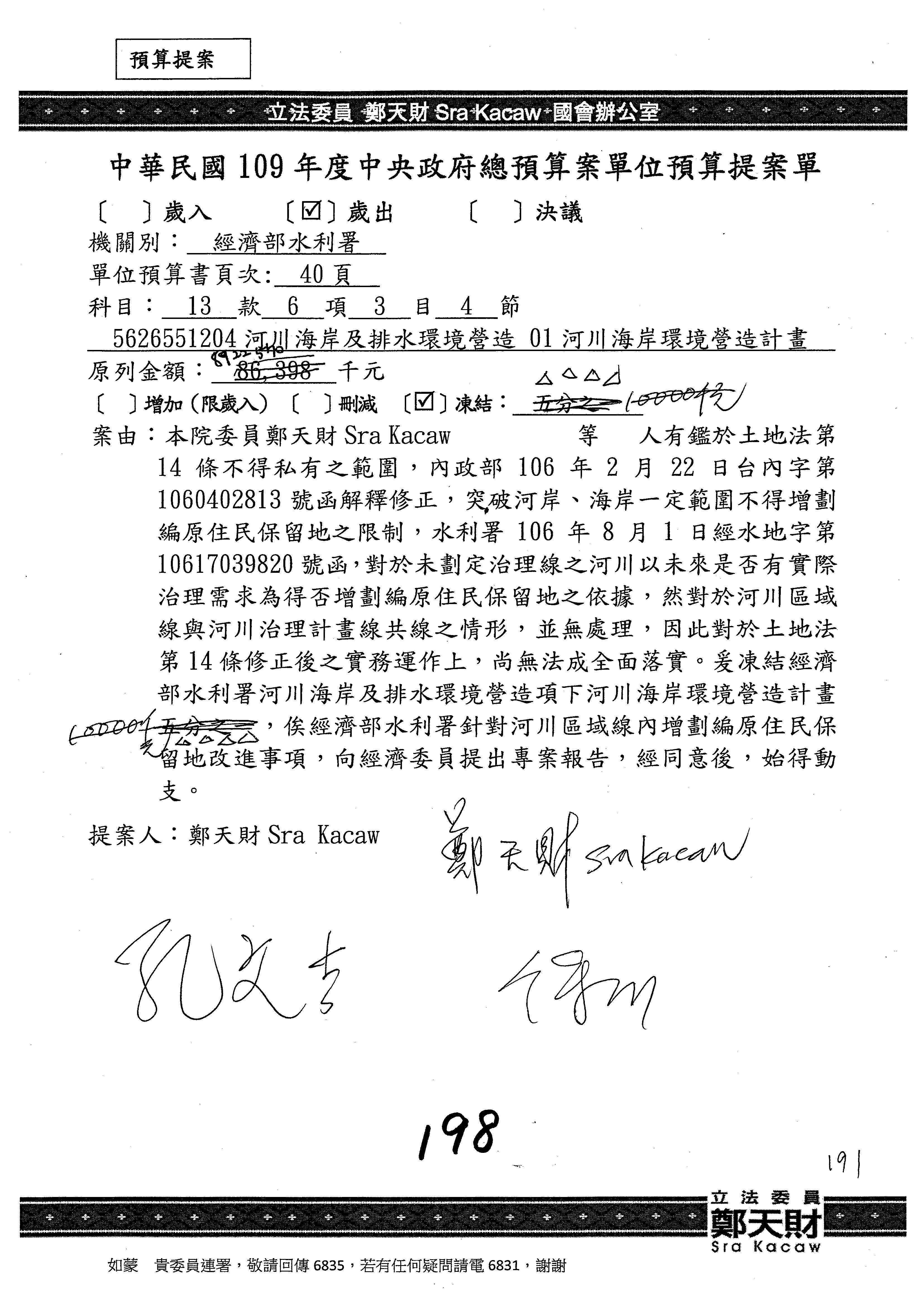 鄭天財Sra Kacaw委員:要凍結啦!可以減少凍結啦!