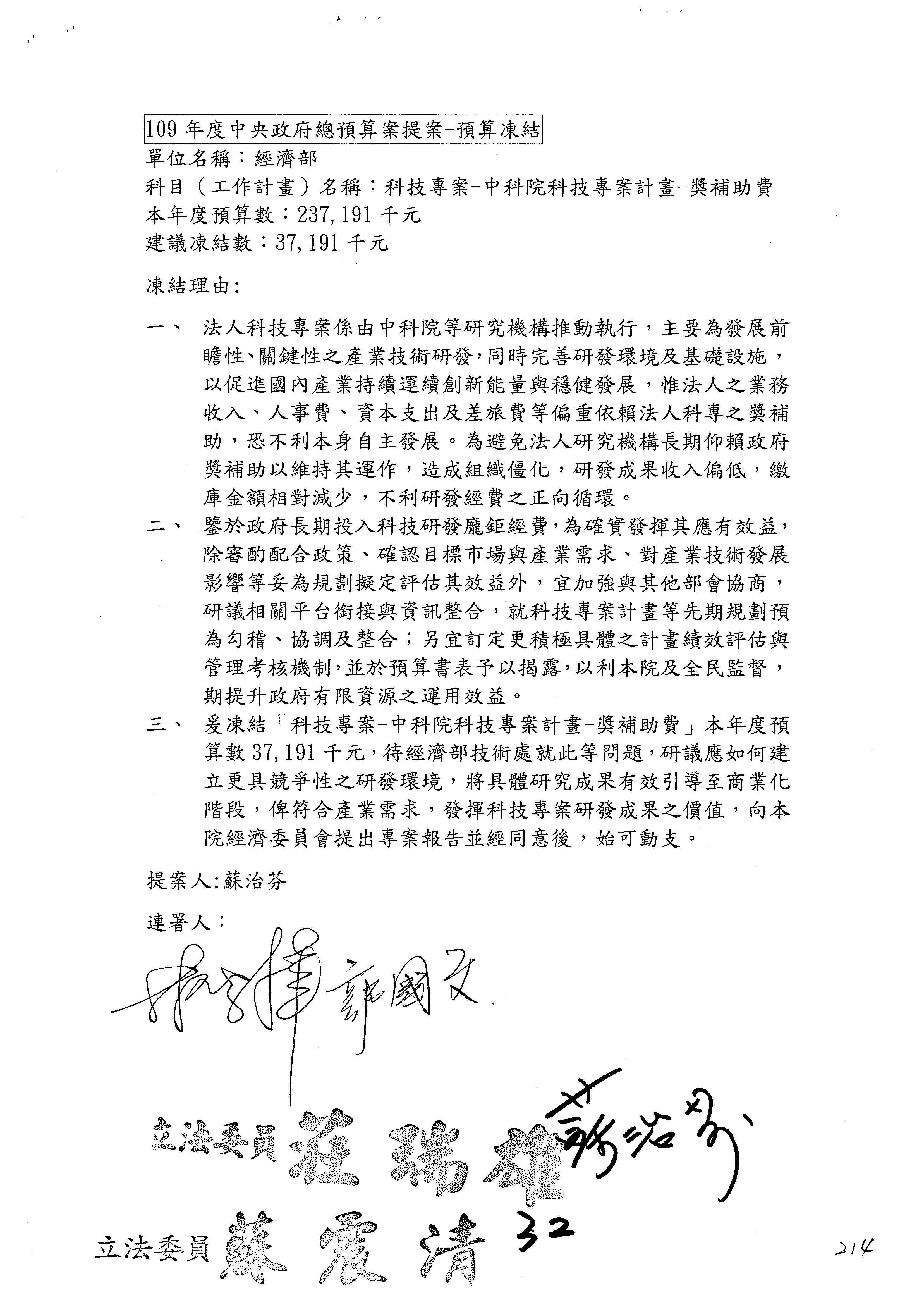 第214案至第215案預算照列。