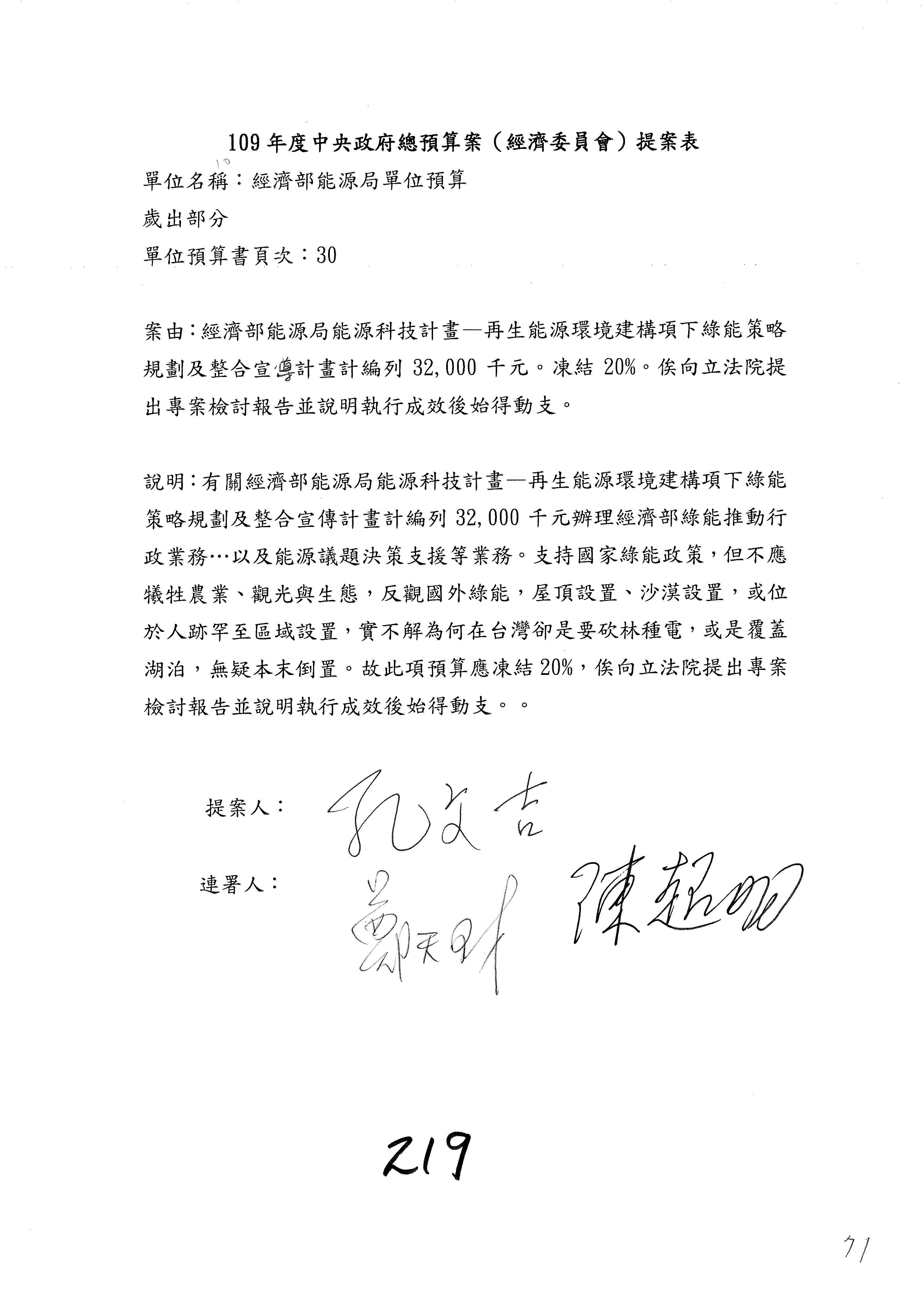 第219案預算照列。