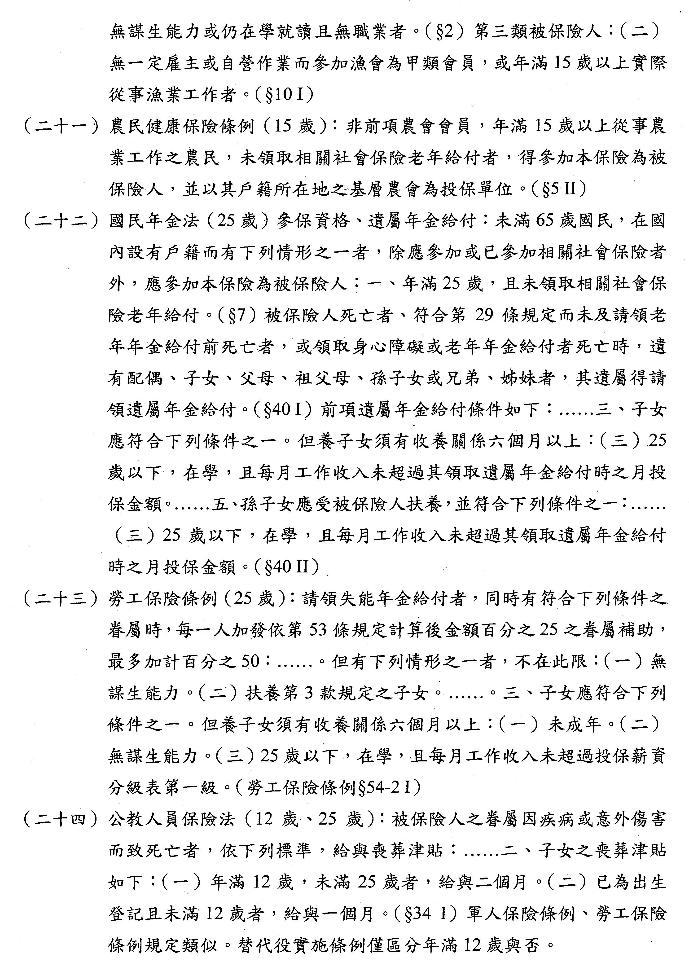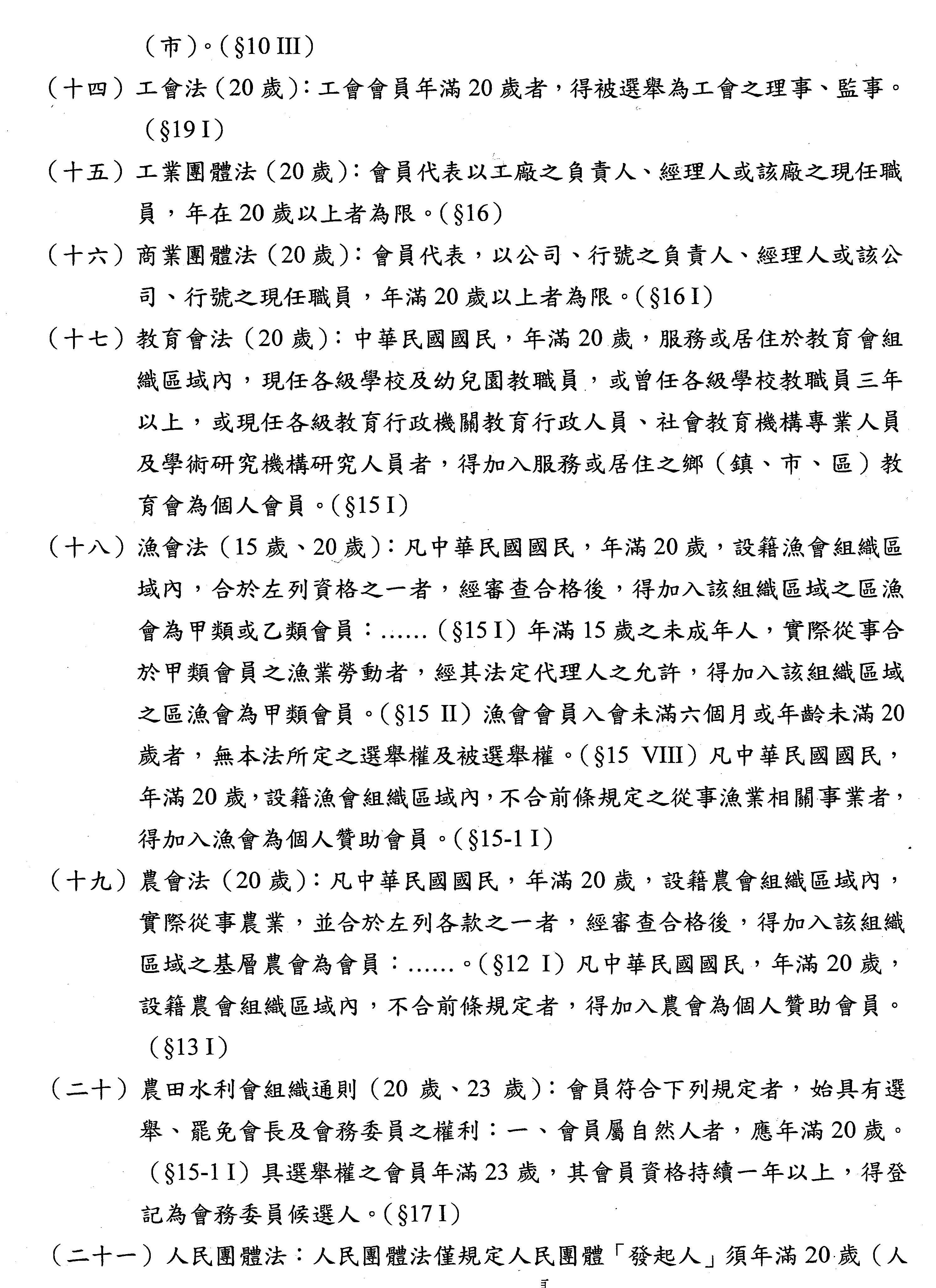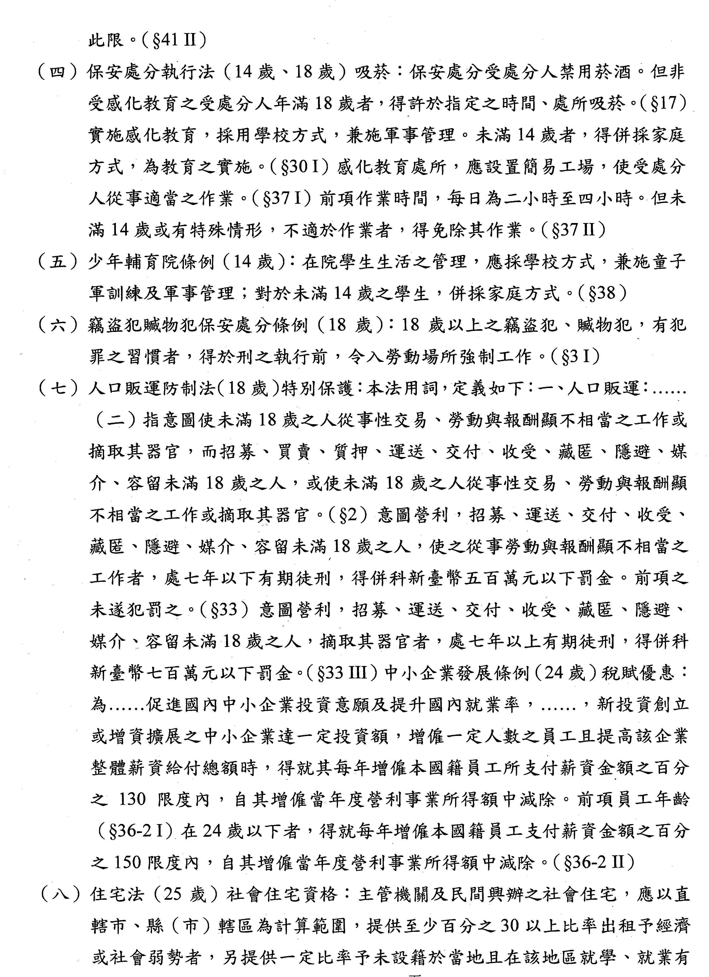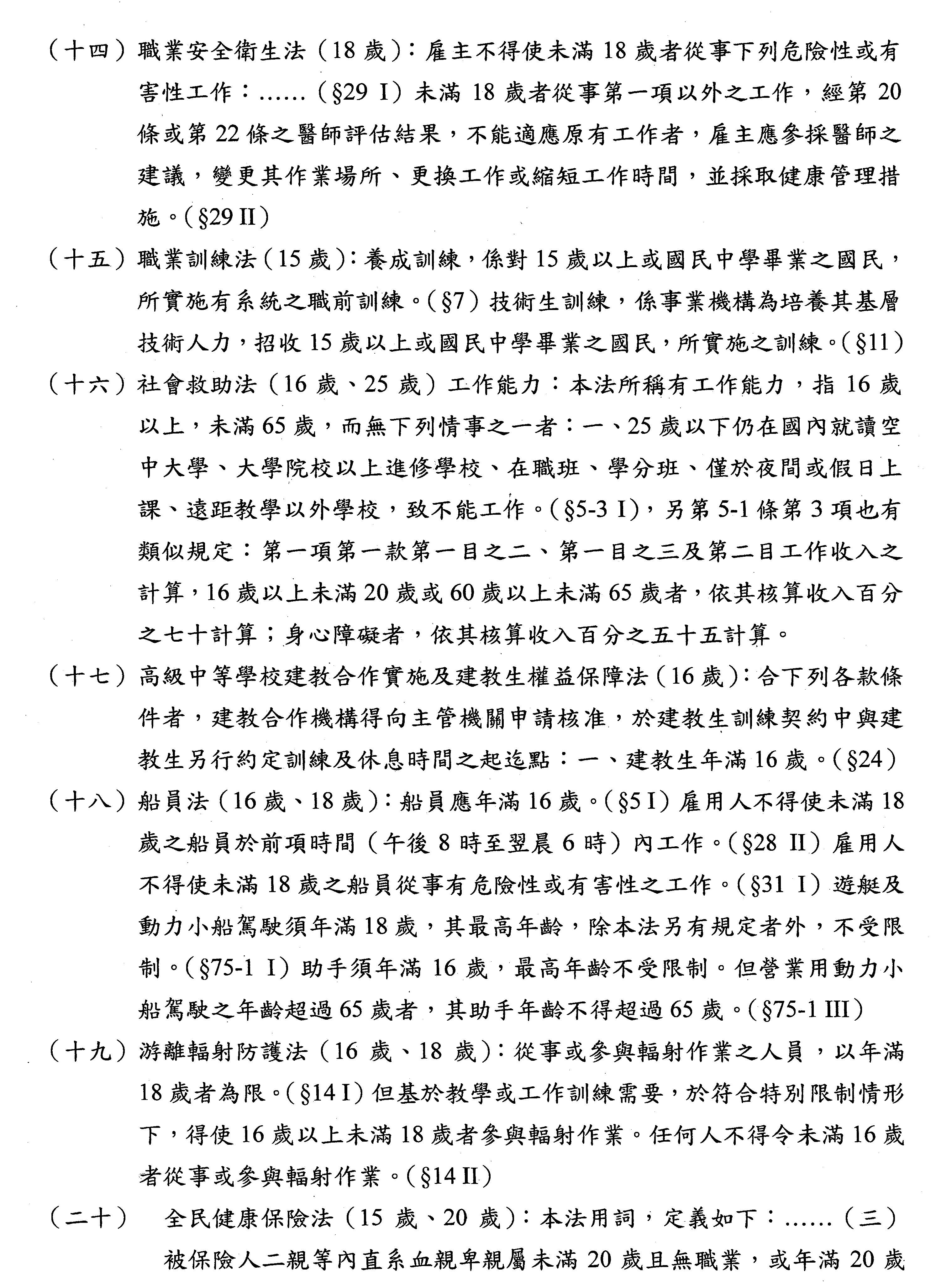 另外,關於這個部分的處理,我們的建議是,因為年齡在法律上的要件規範可能應該還要包括從公民權(比方說憲法上的投票權)、公法上的權利(比如說人民跟政府之間的請求權),還有民事法律關係中對於年齡部分的考量,我們認為這個部分應該要有所區隔並建議不要把它混為一談。