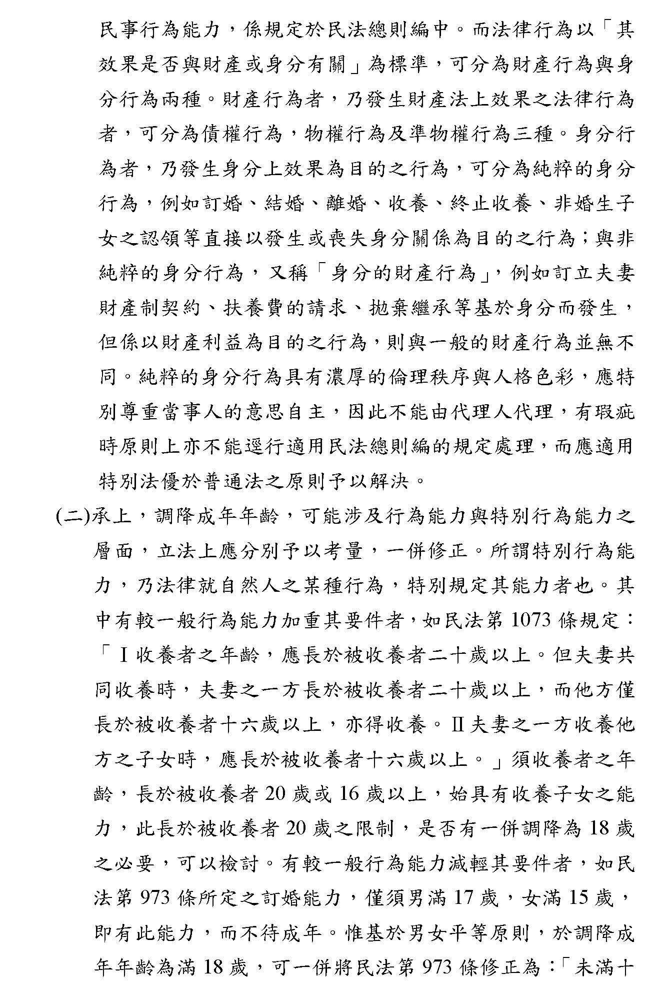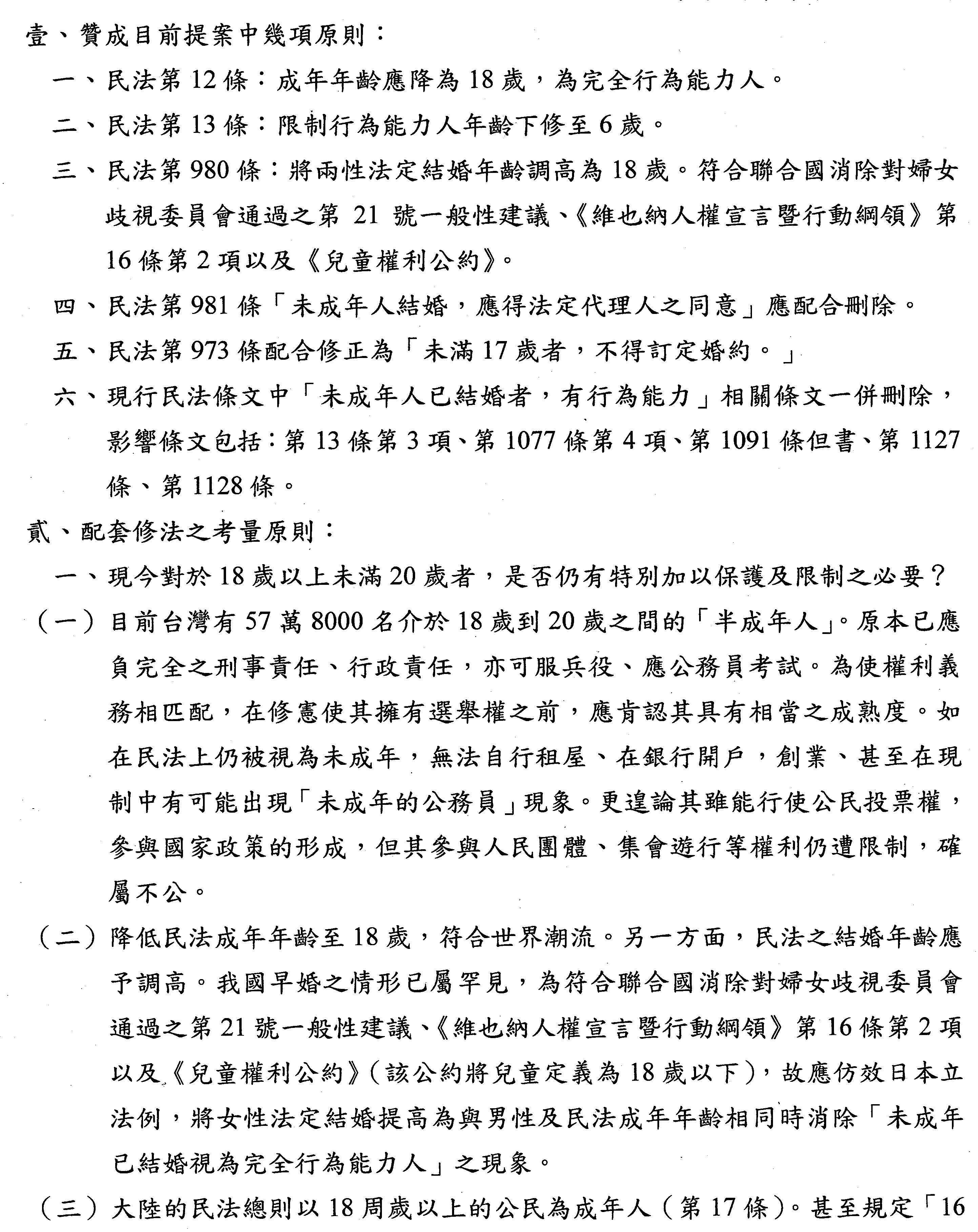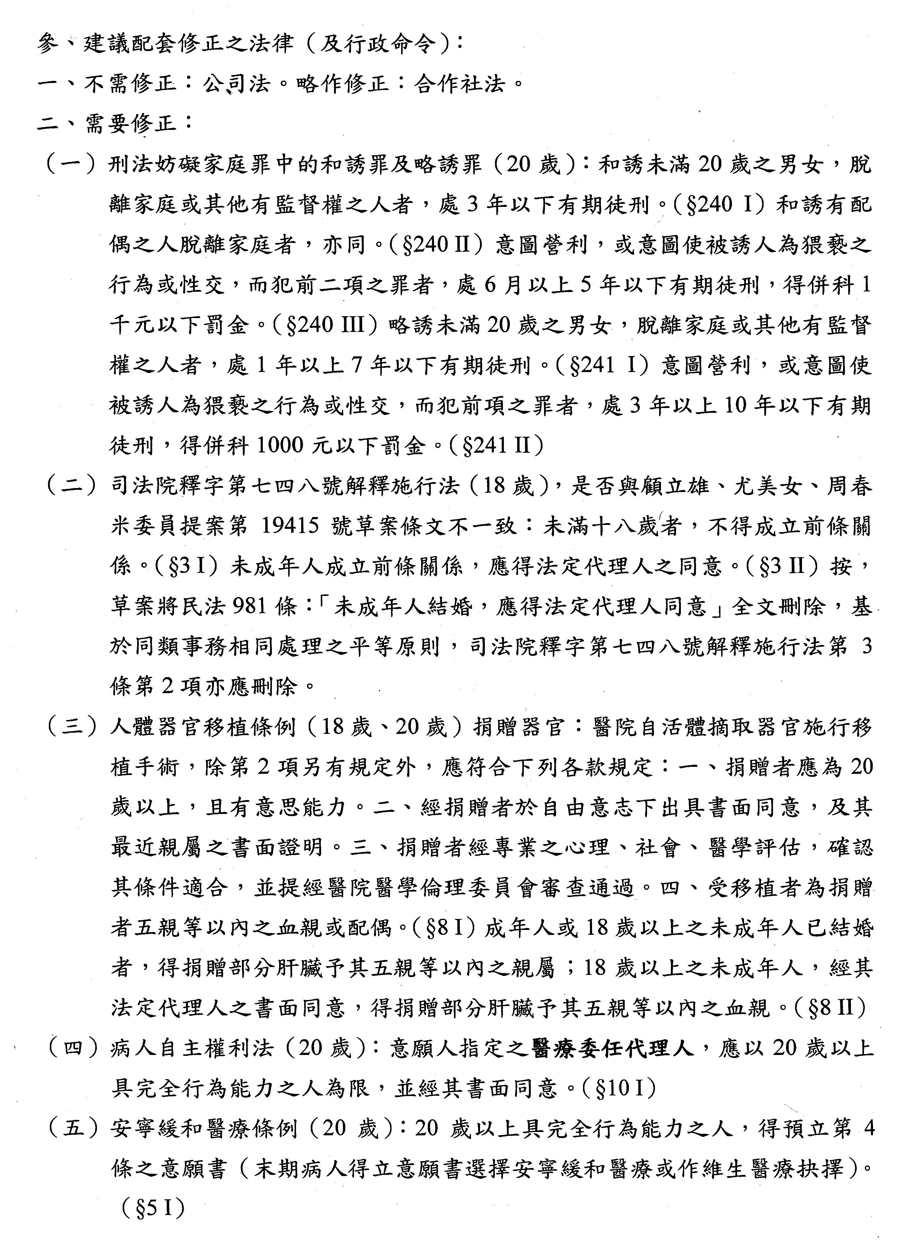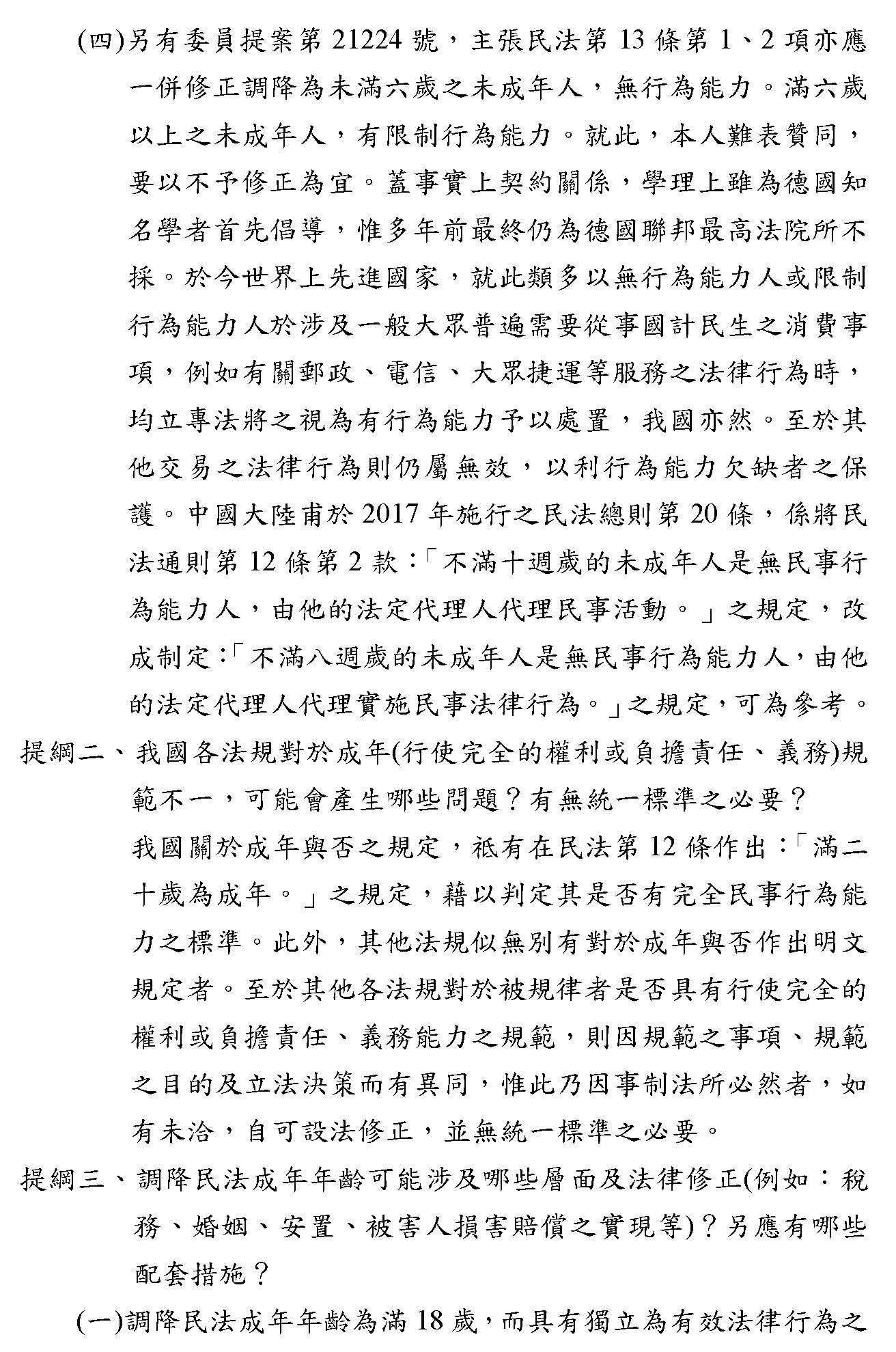 主席:第一個是成年年齡;第二個是整個民法相關要修改的部分。