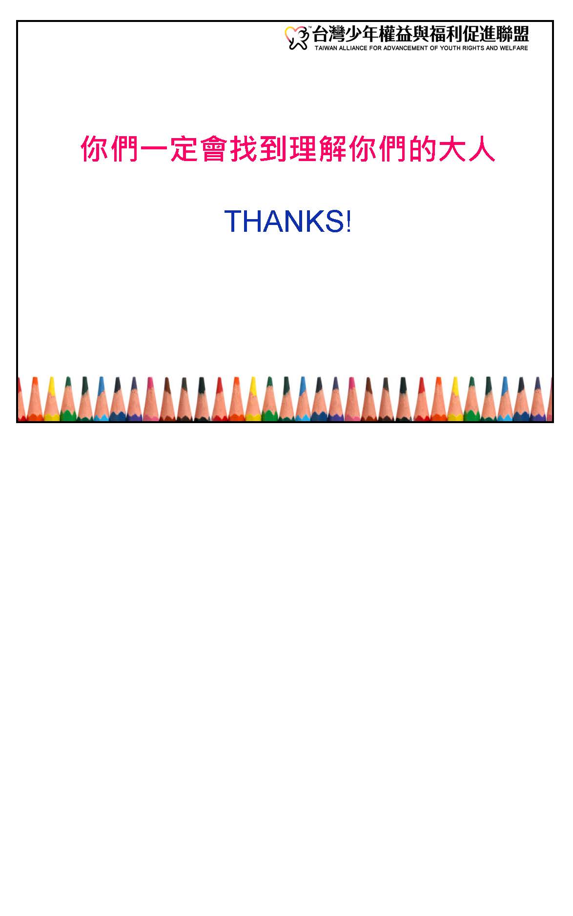 最後一個是兒少福法為什麼要區分兒童與少年,其實我不太理解,因為看不出來區分兒童與少年的實益是什麼?這樣一區分之後的結果,整個體系就紊亂了。