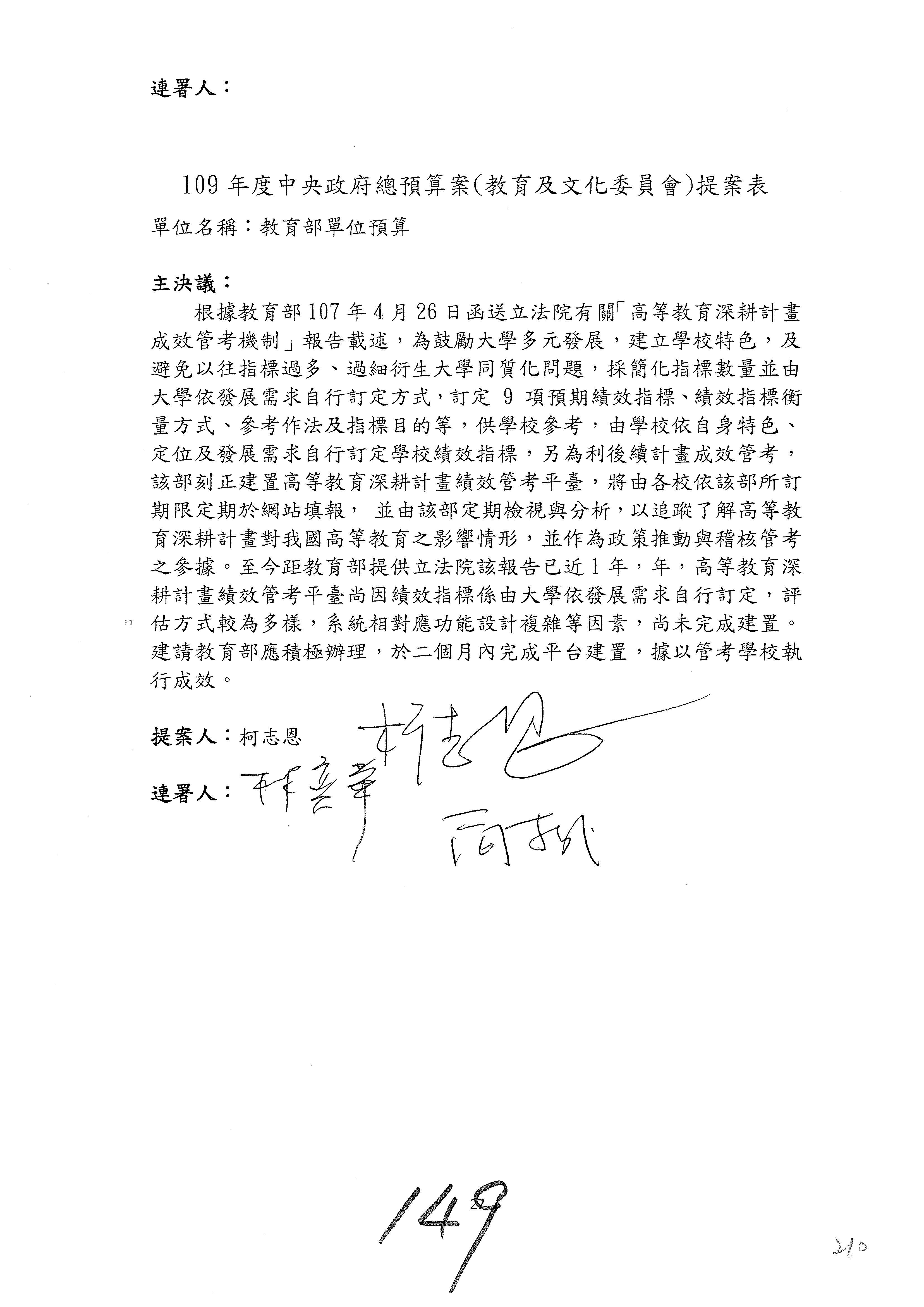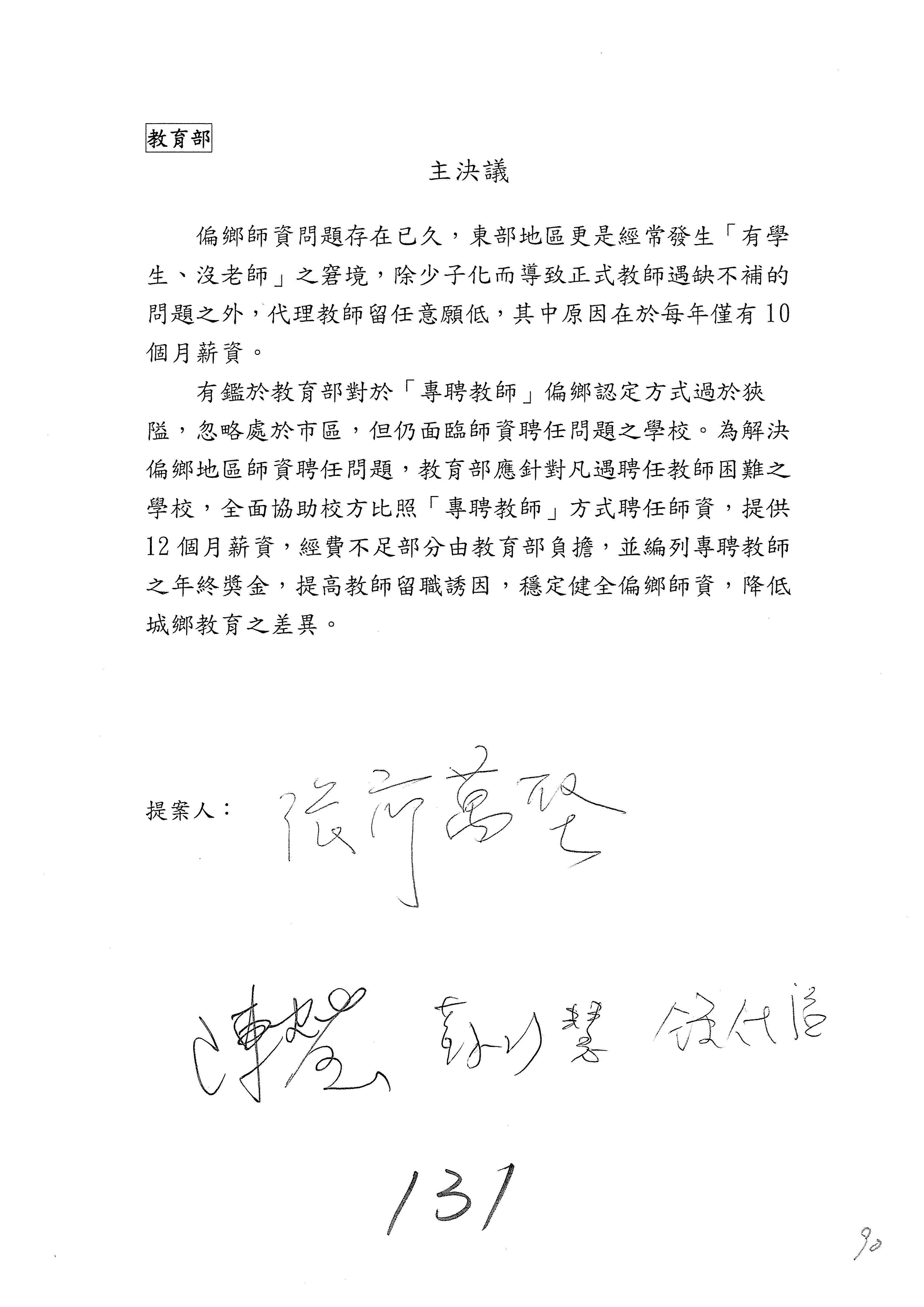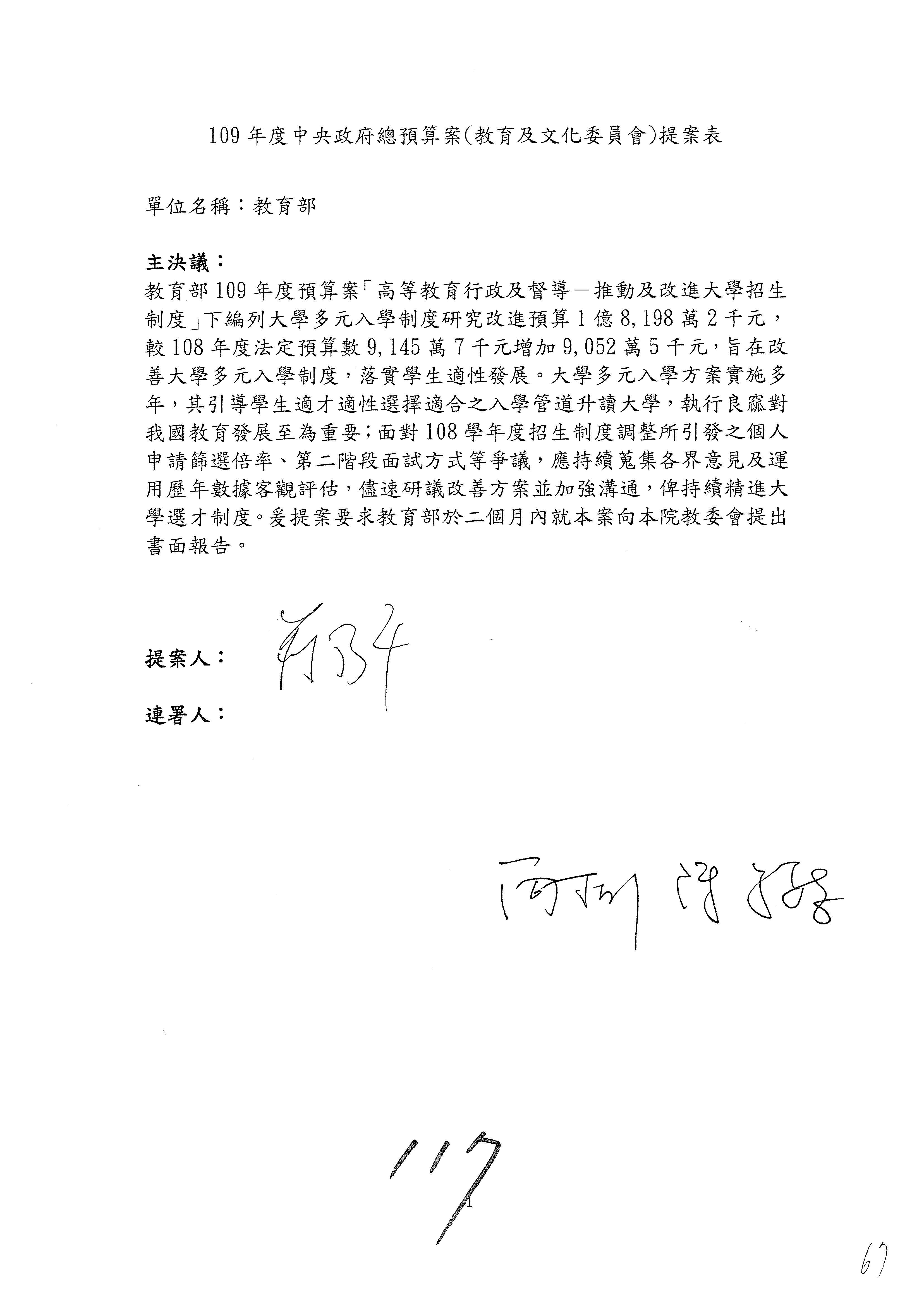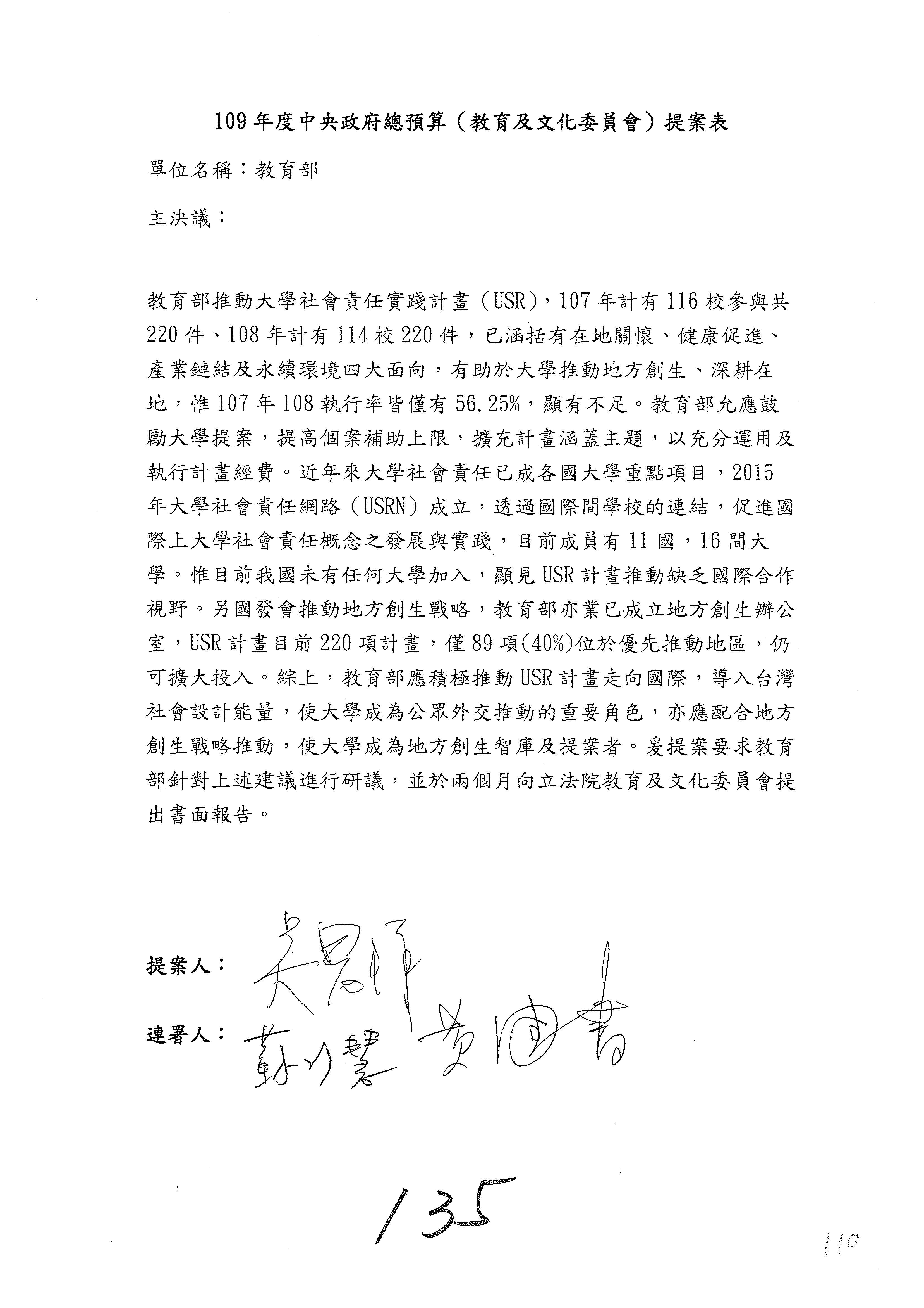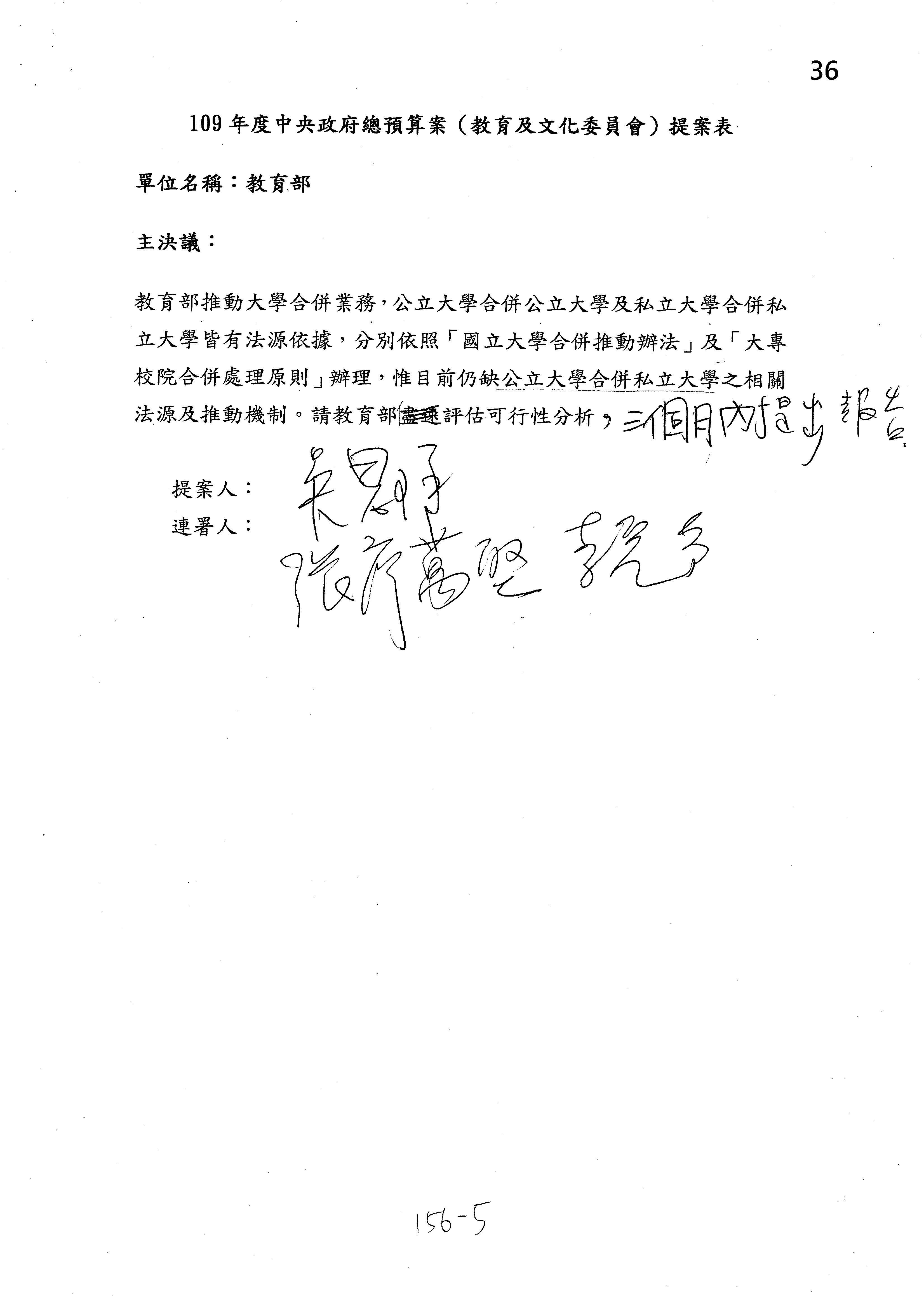 主席:好,最後一句修改為「爰提案要求教育部於三個月內向本院教委會提出書面報告」,修正通過。