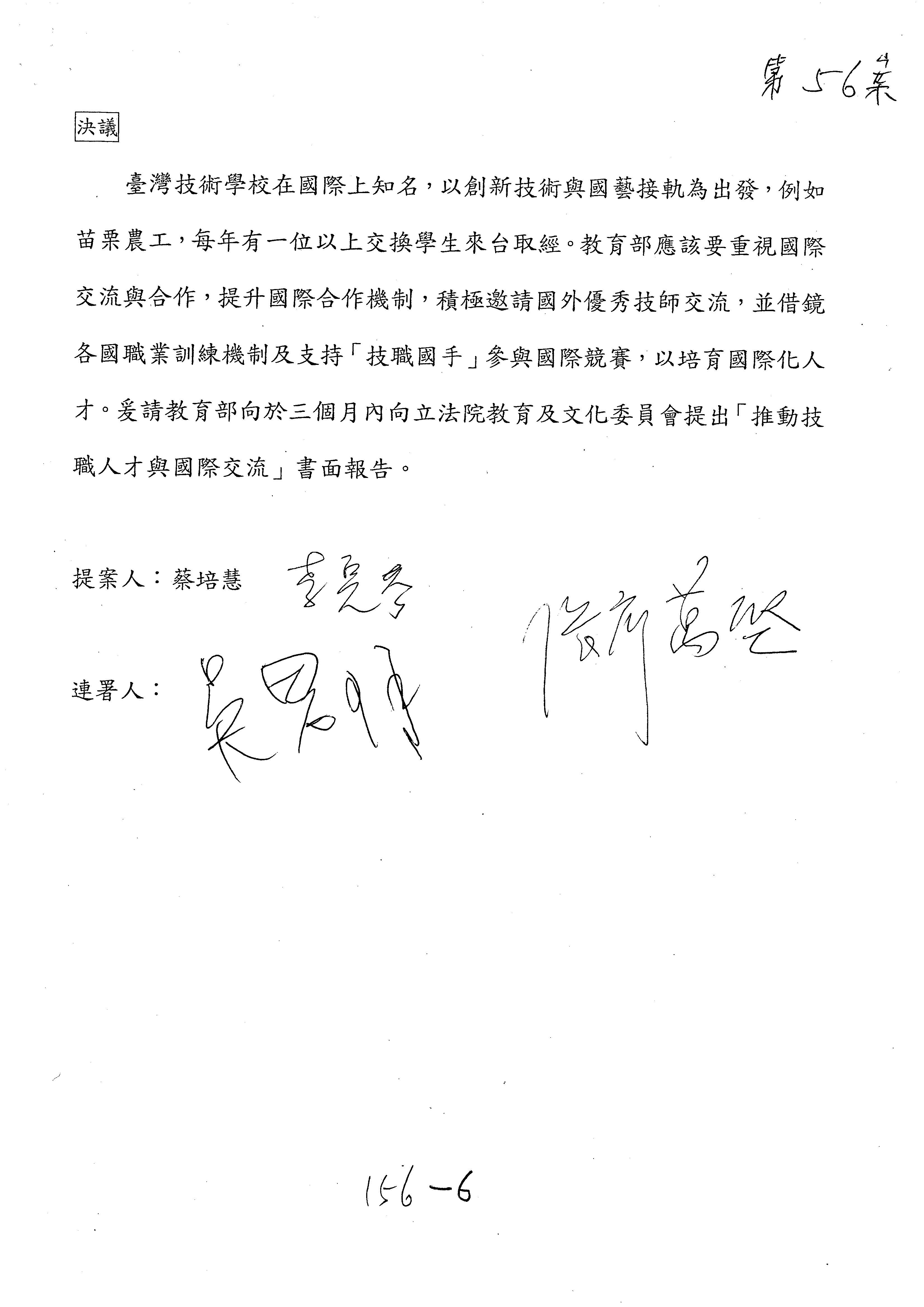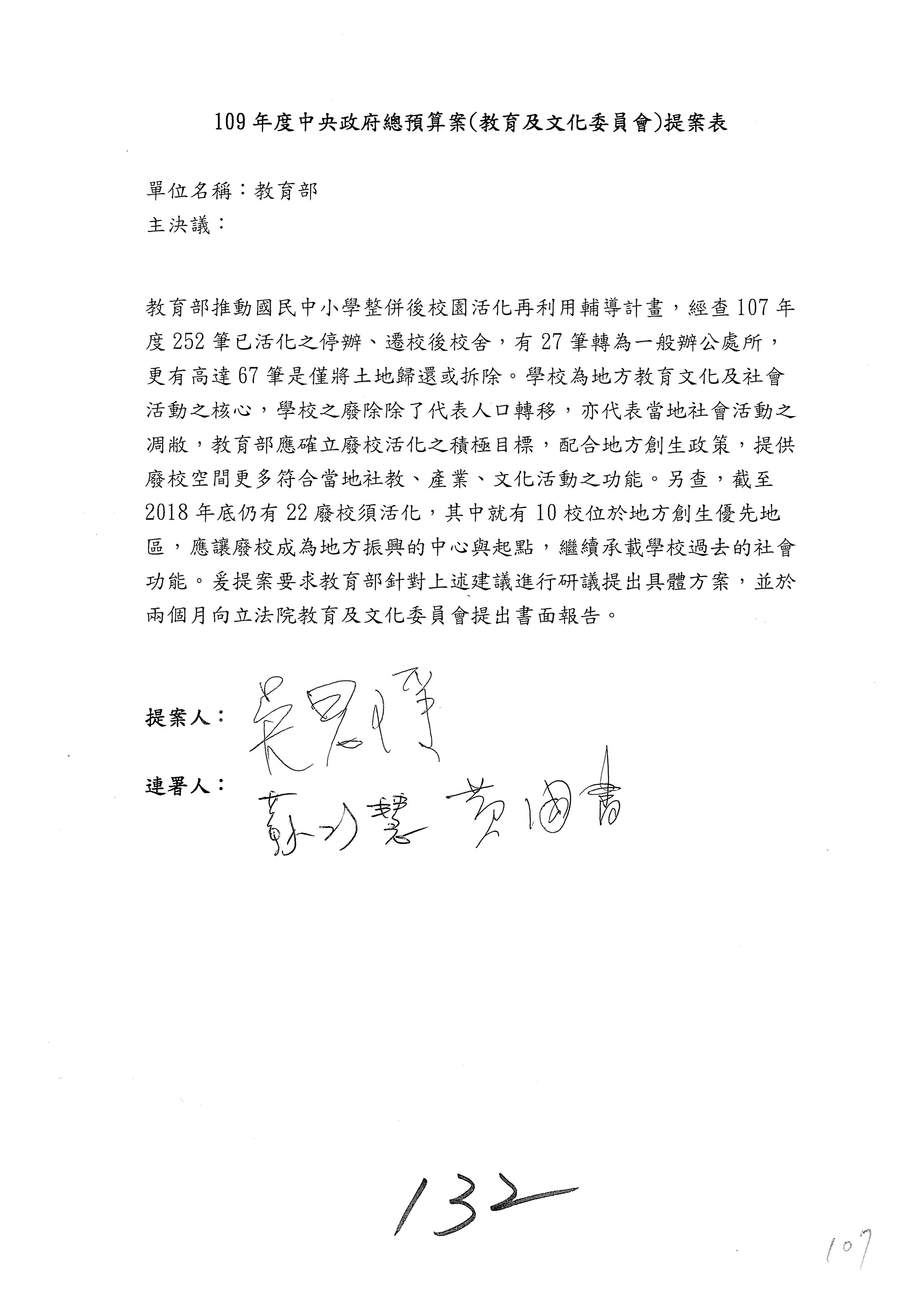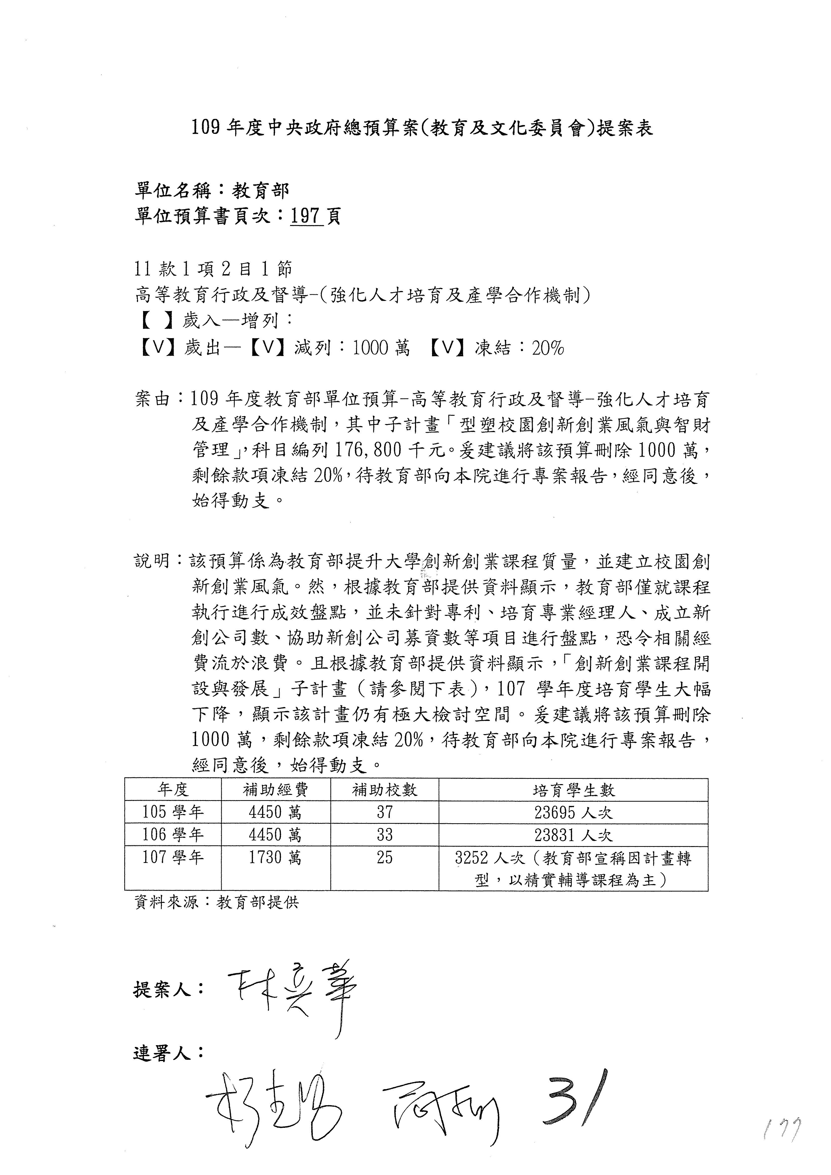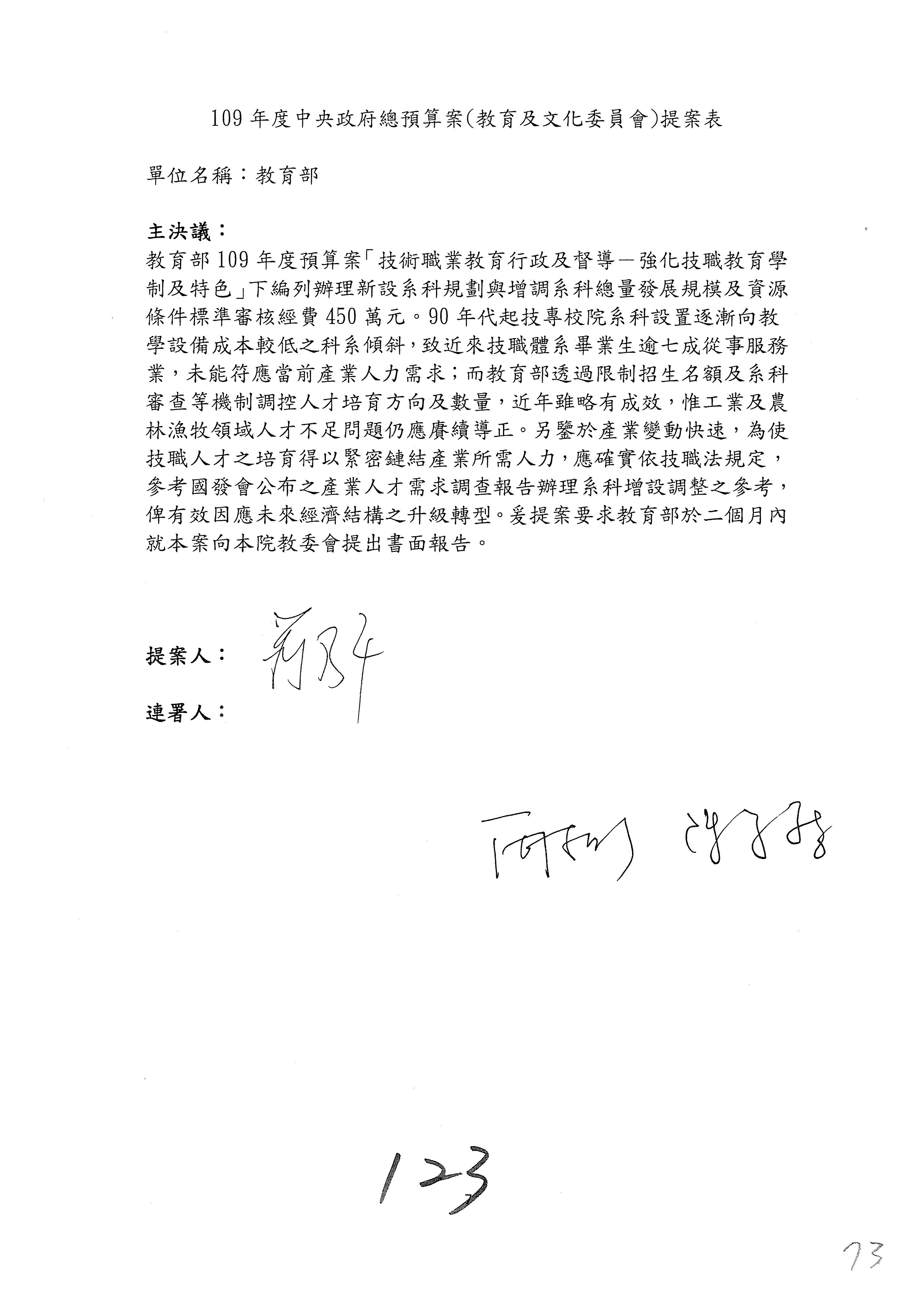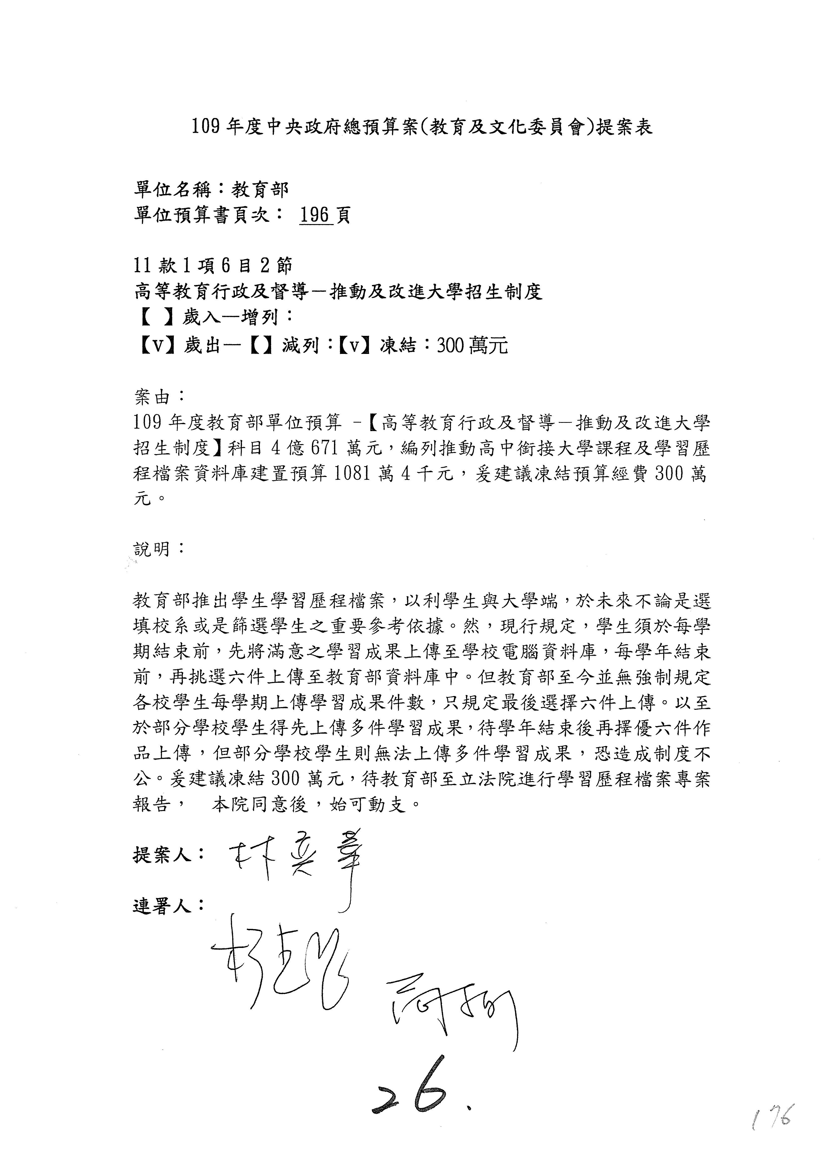 主席:好,最後一句修改為「爰提案要求教育部於三個月內向本院教委會提出書面報告」,修正通過。