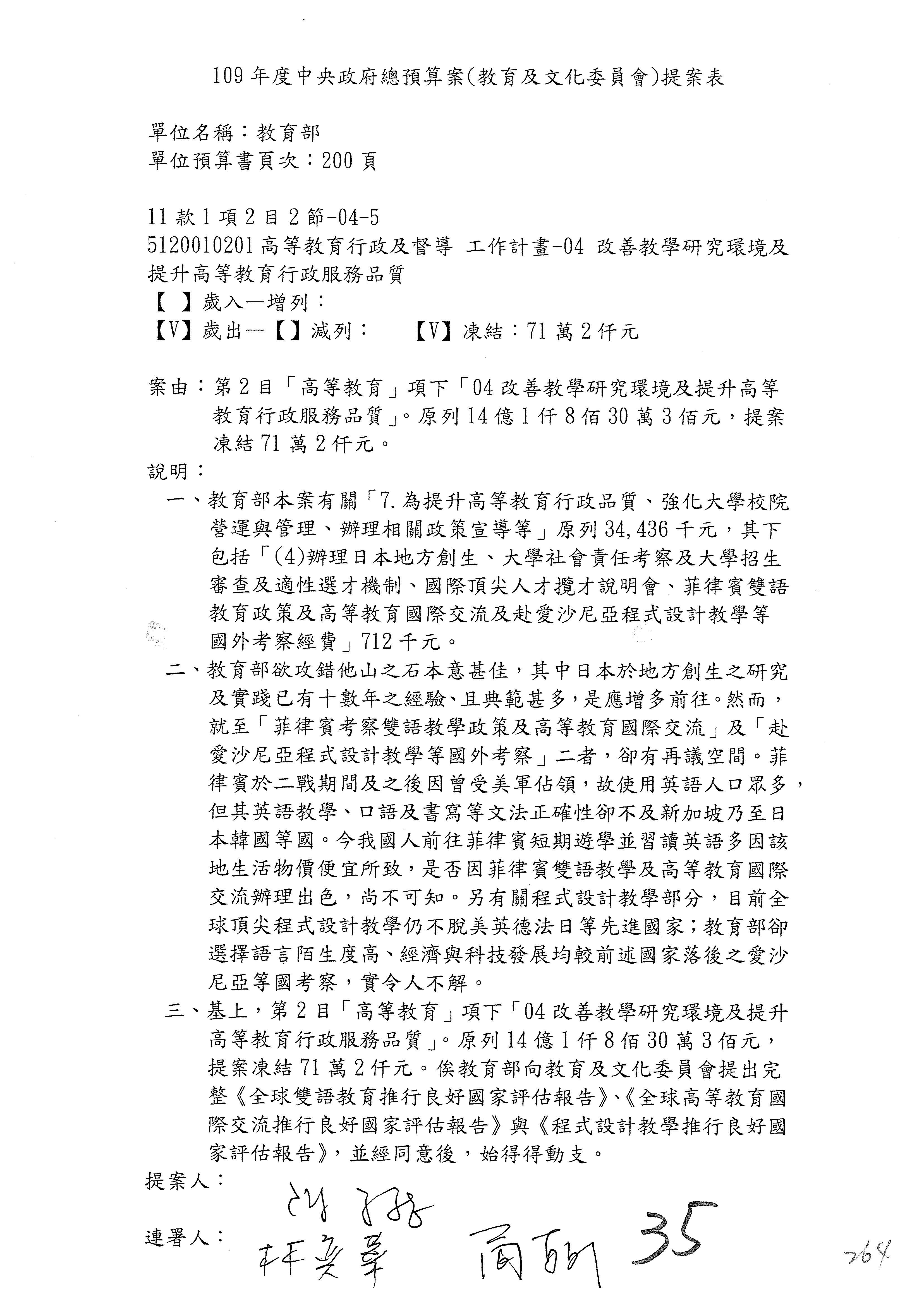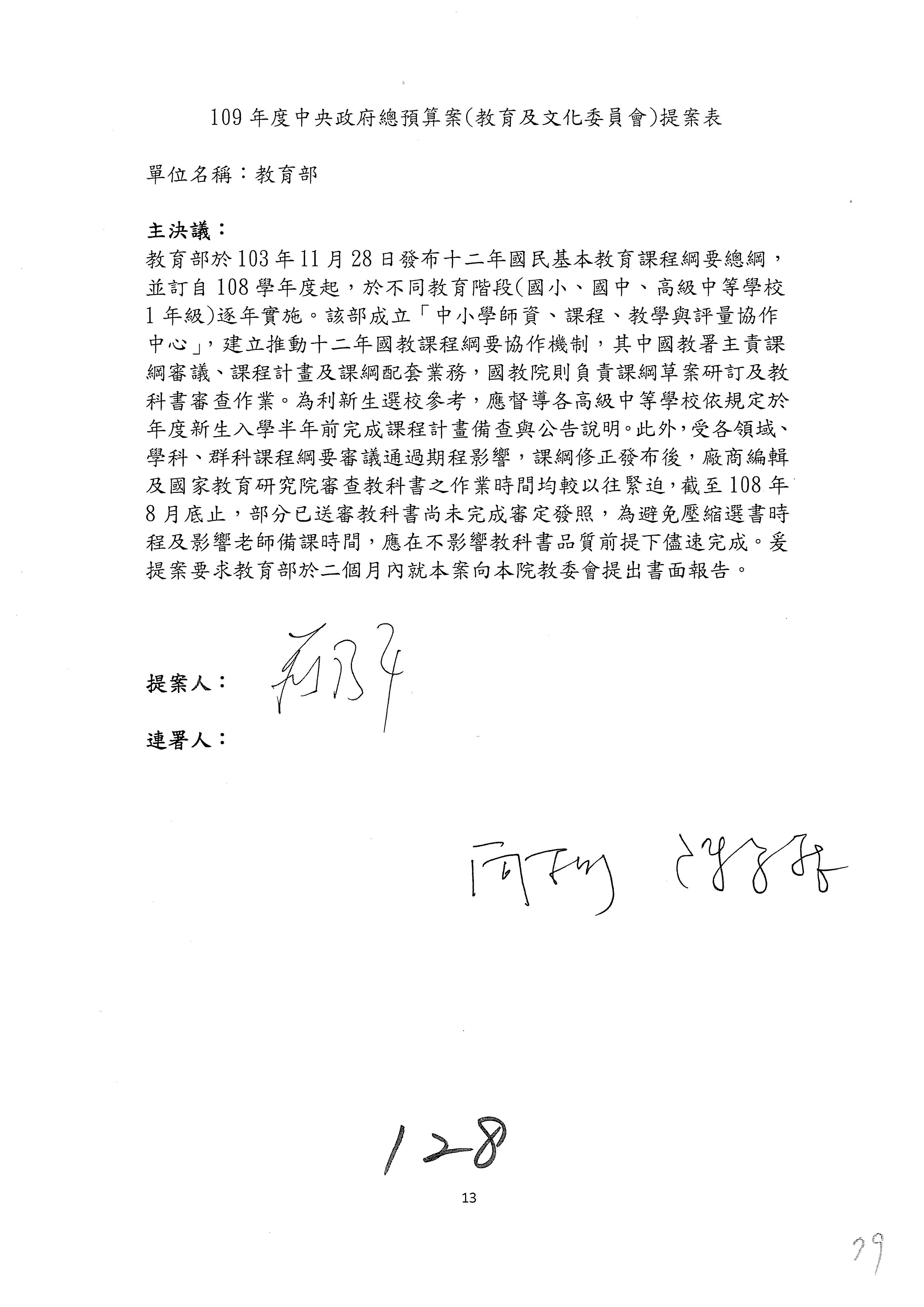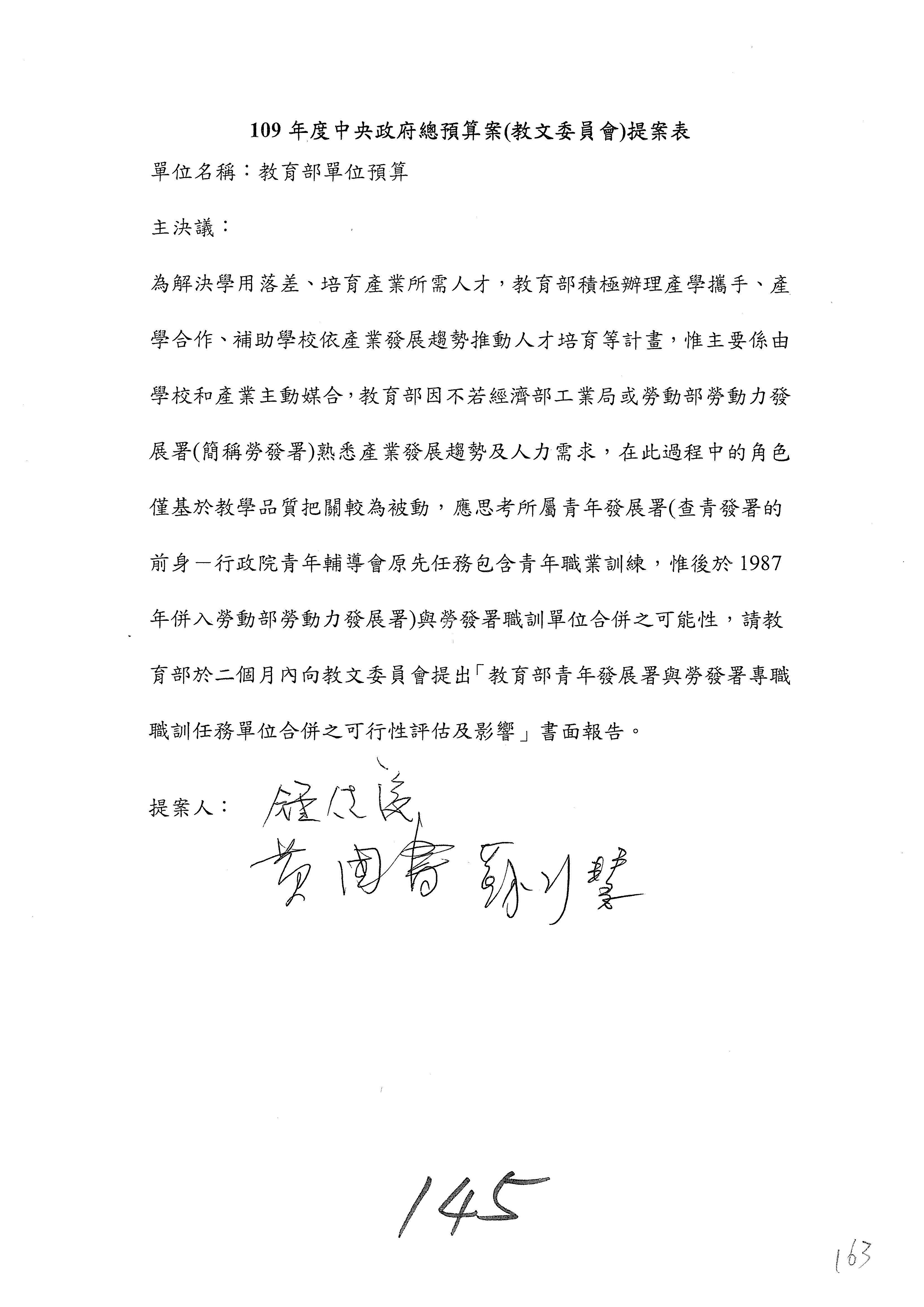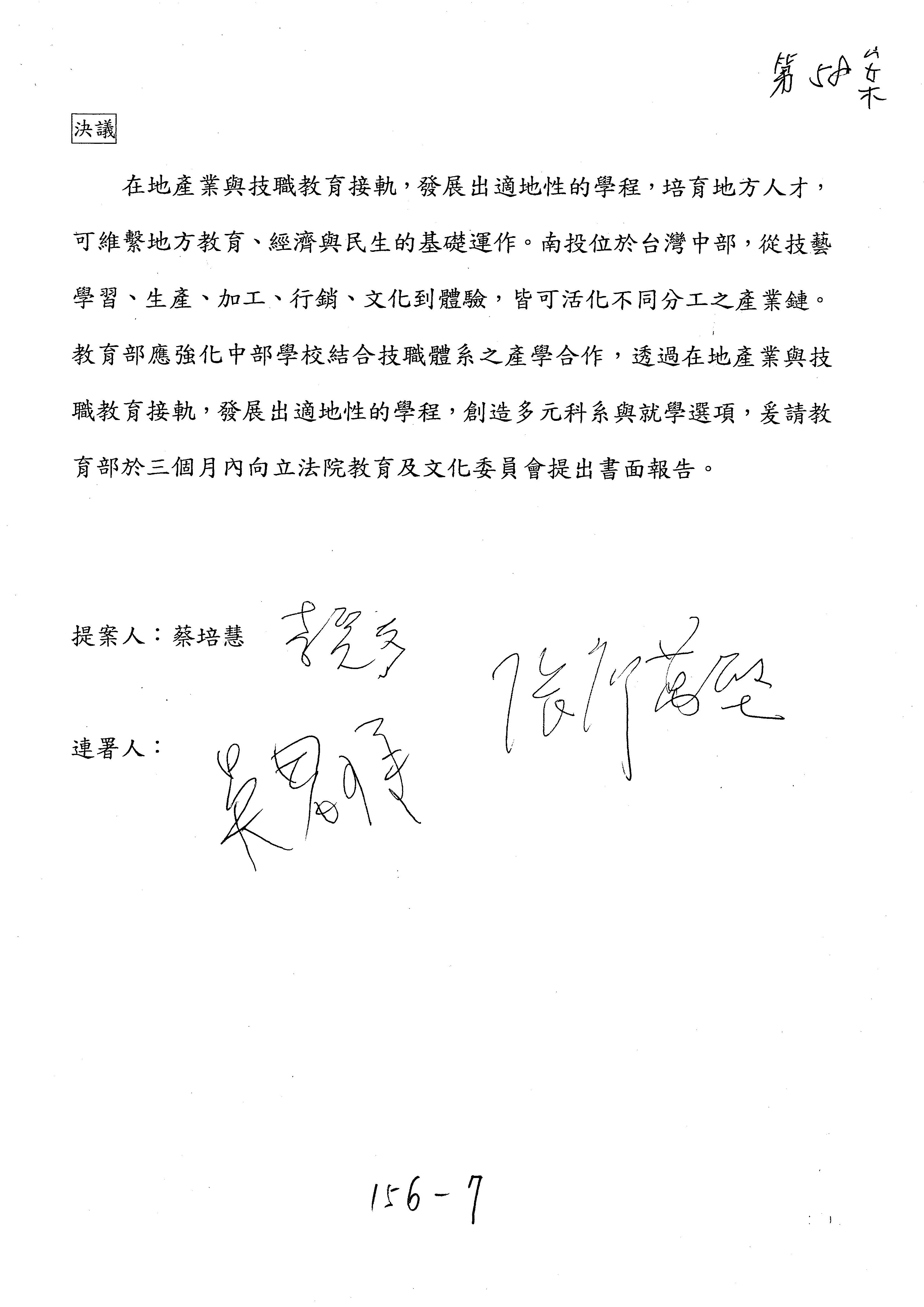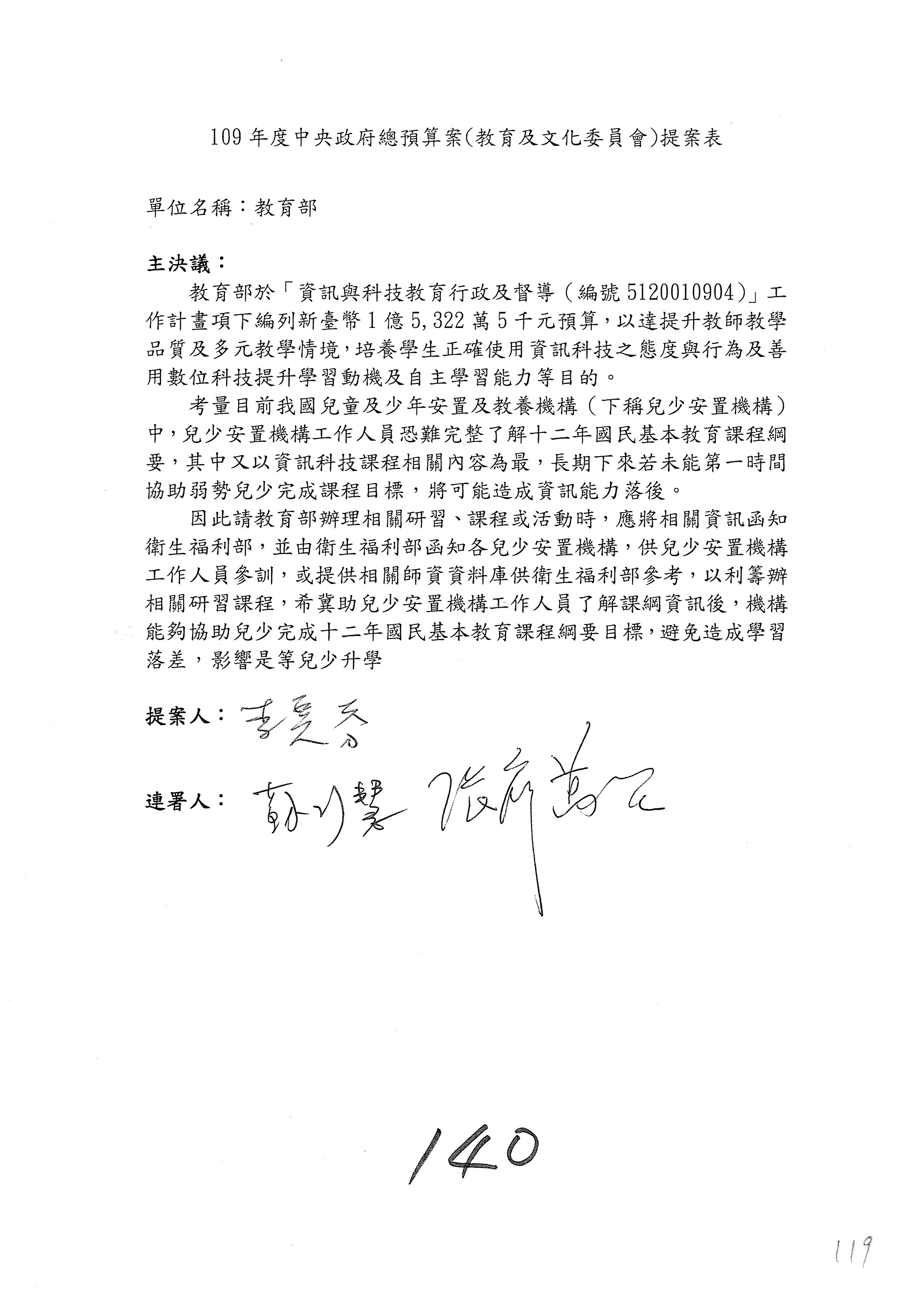 主席:好,最後一句修改為「爰提案要求教育部於三個月內向本院教委會提出書面報告」,修正通過。