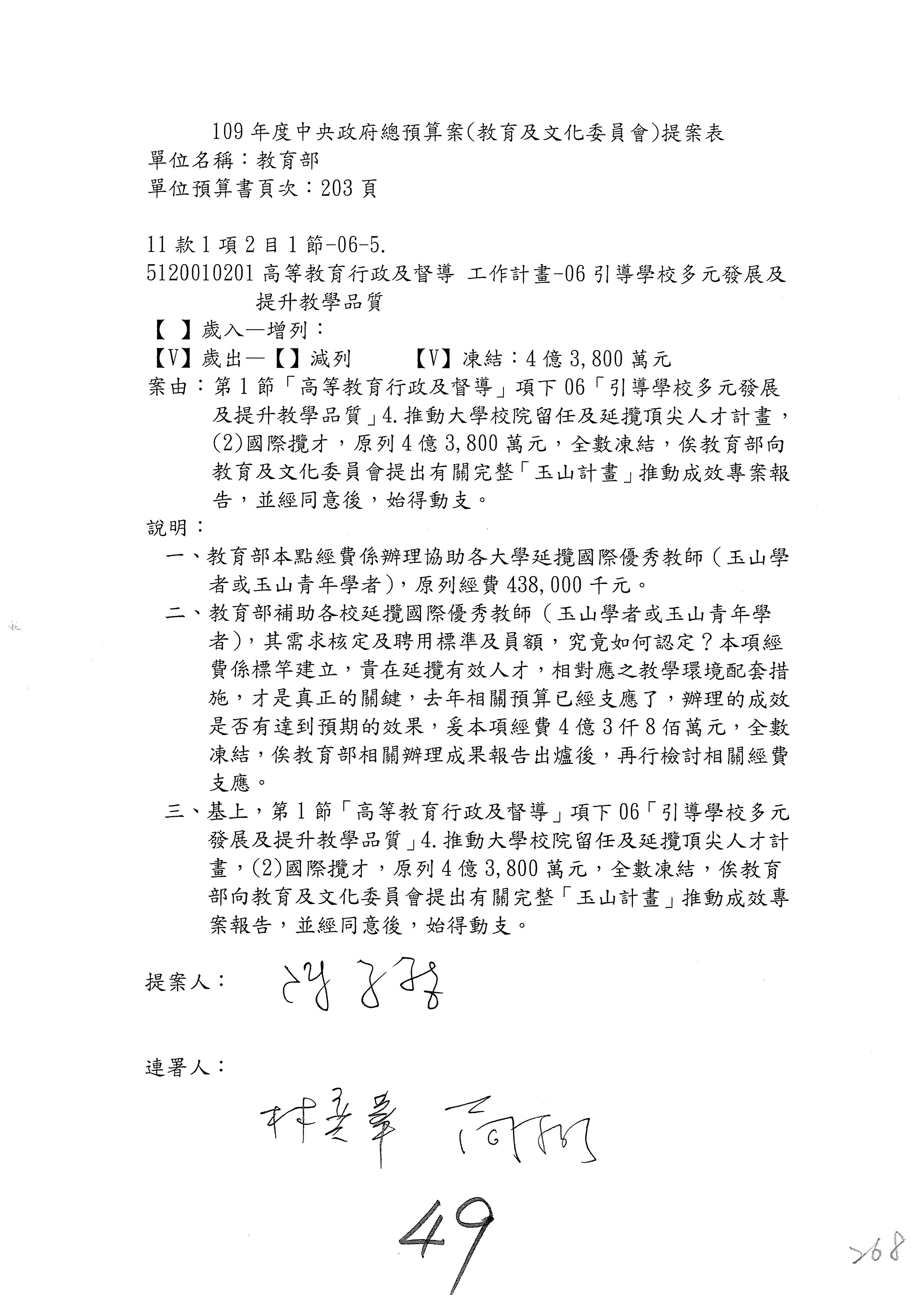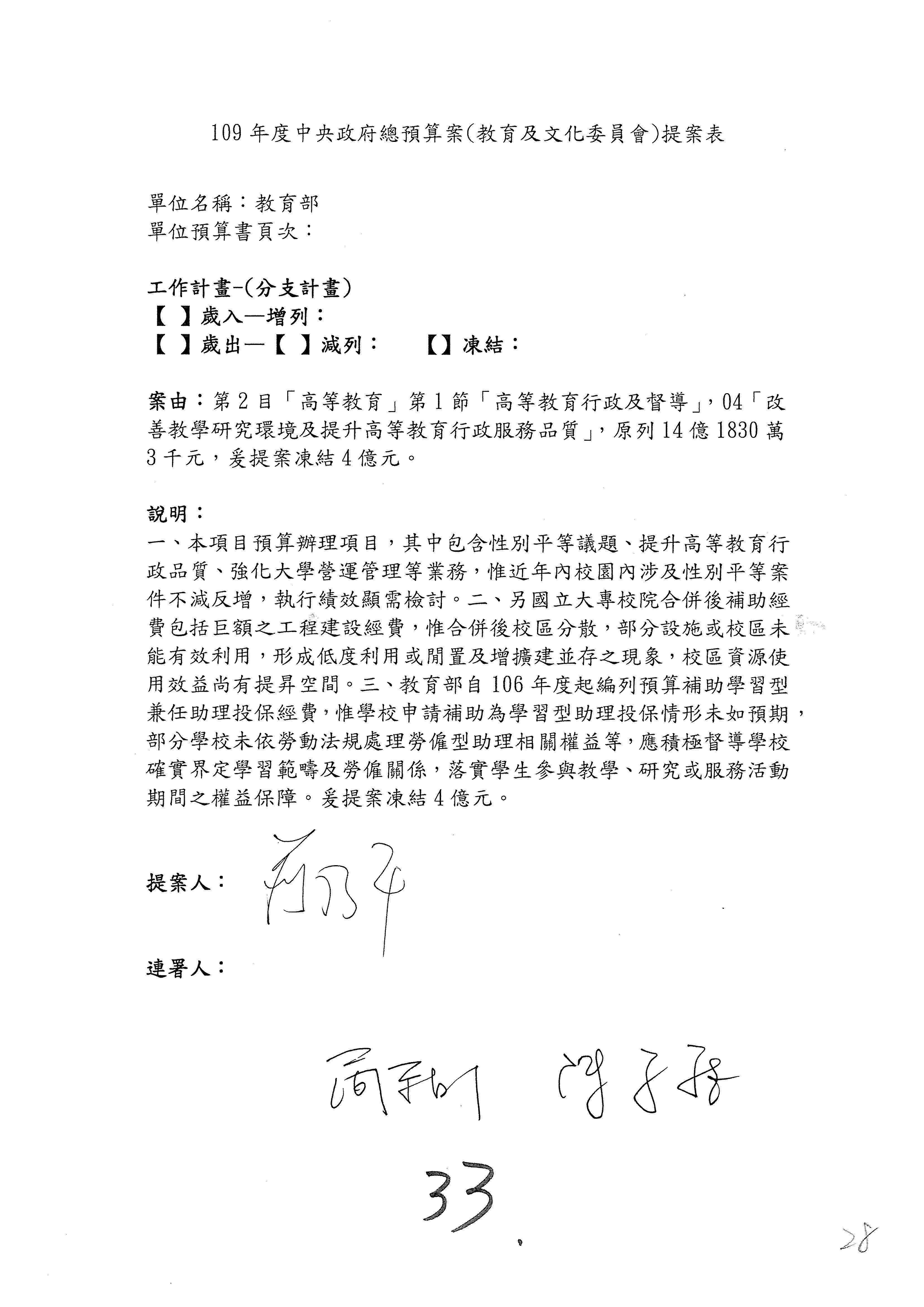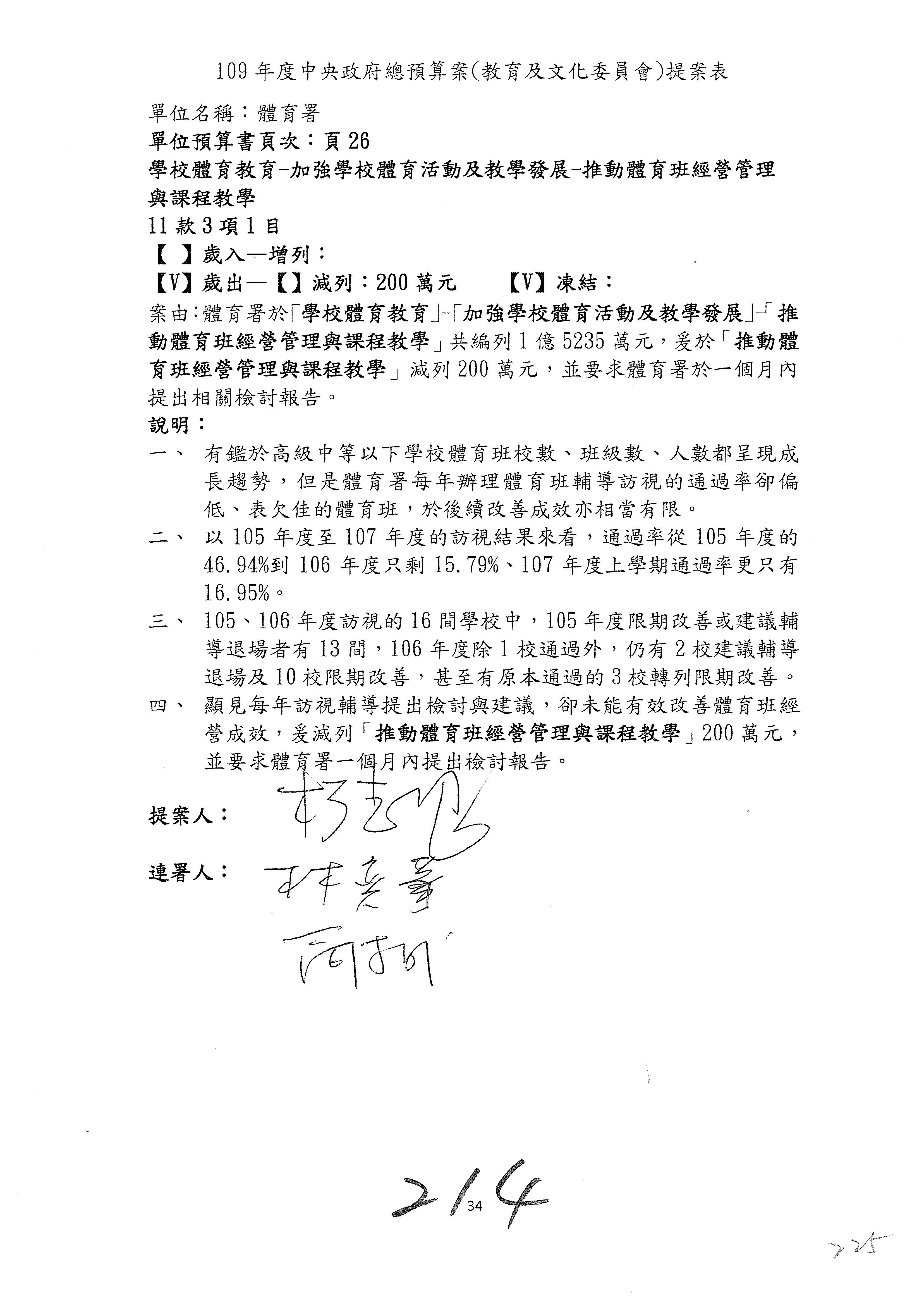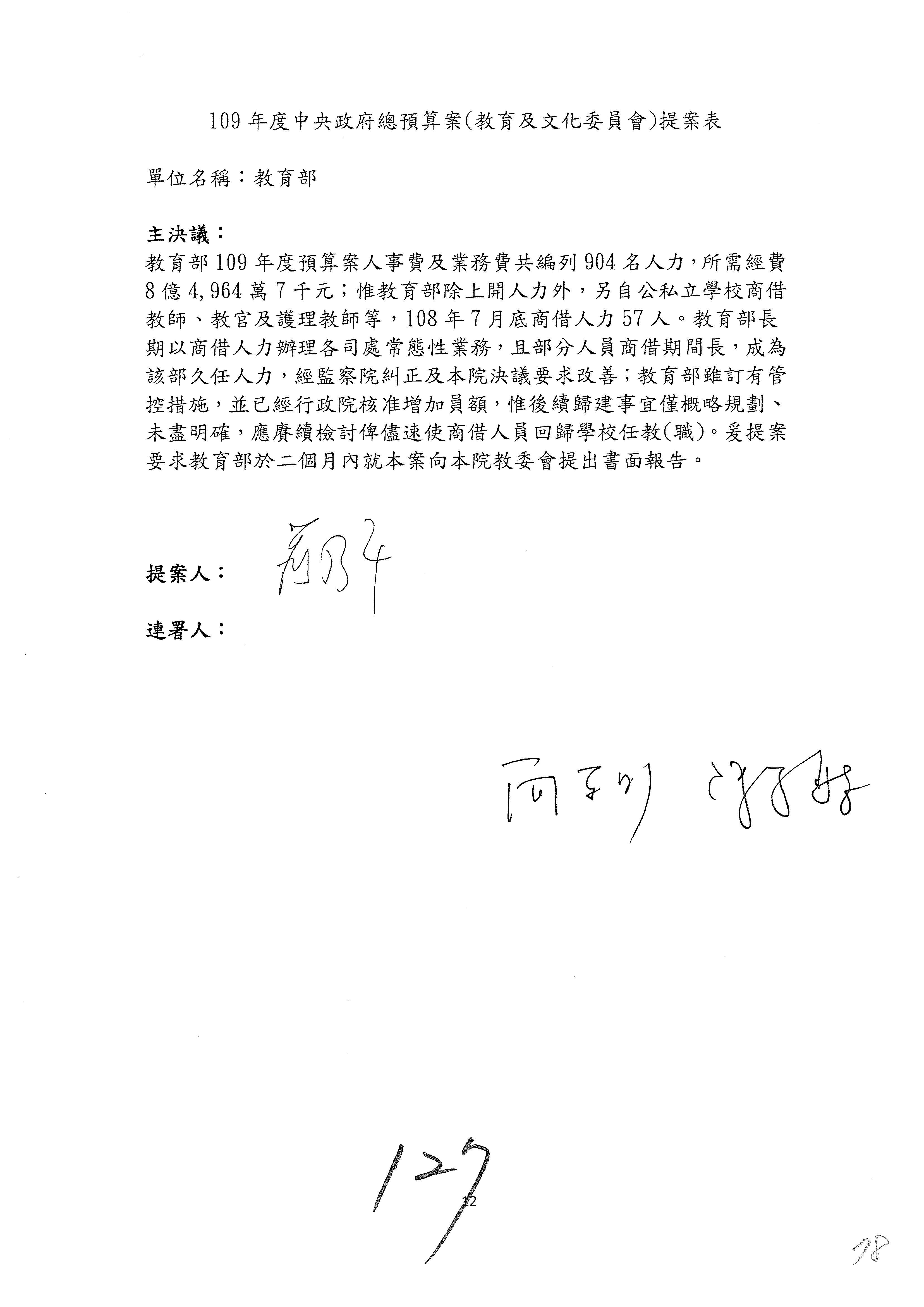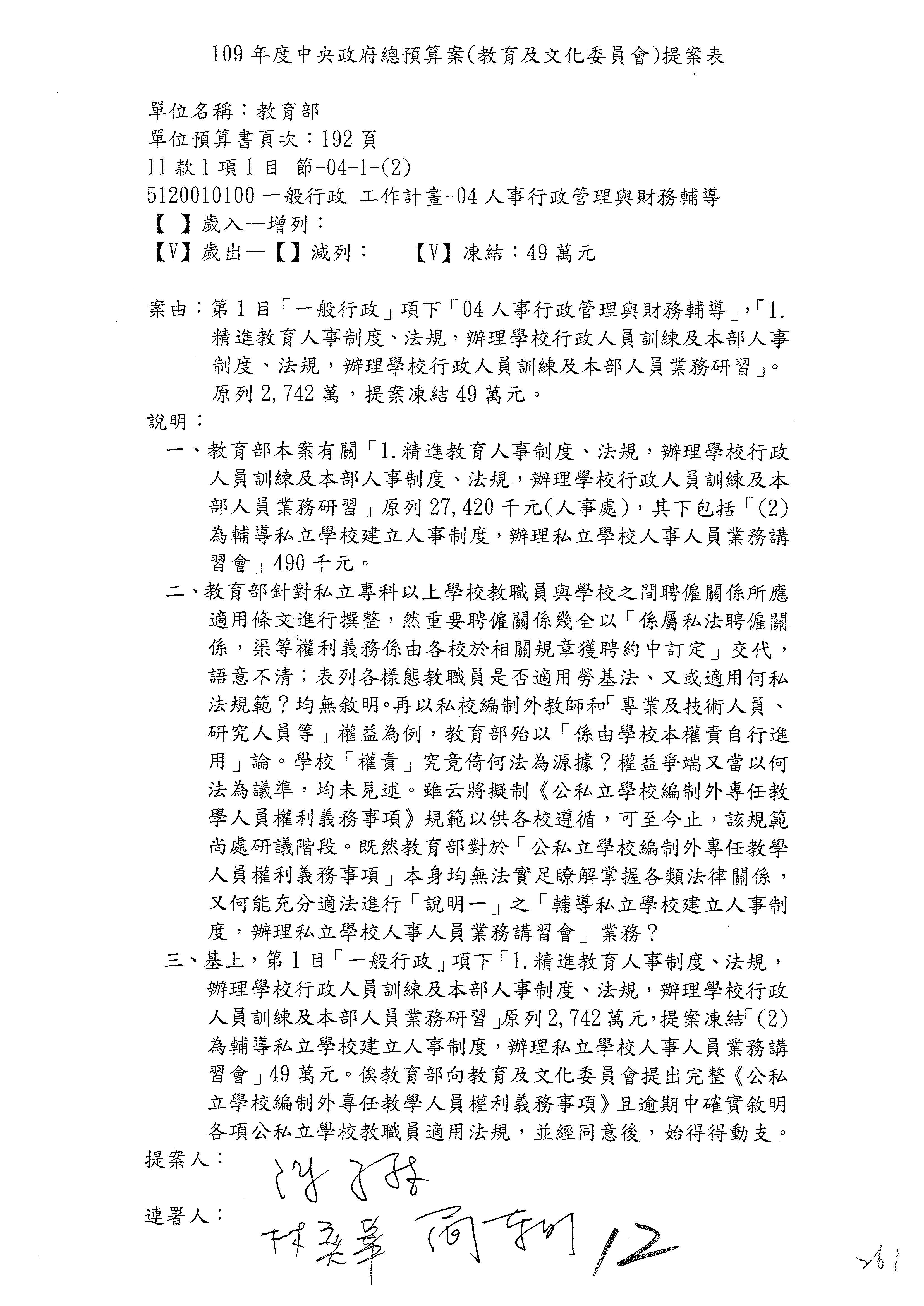 主席:好,最後一句修改為「爰提案要求教育部於三個月內向本院教委會提出書面報告」,修正通過。