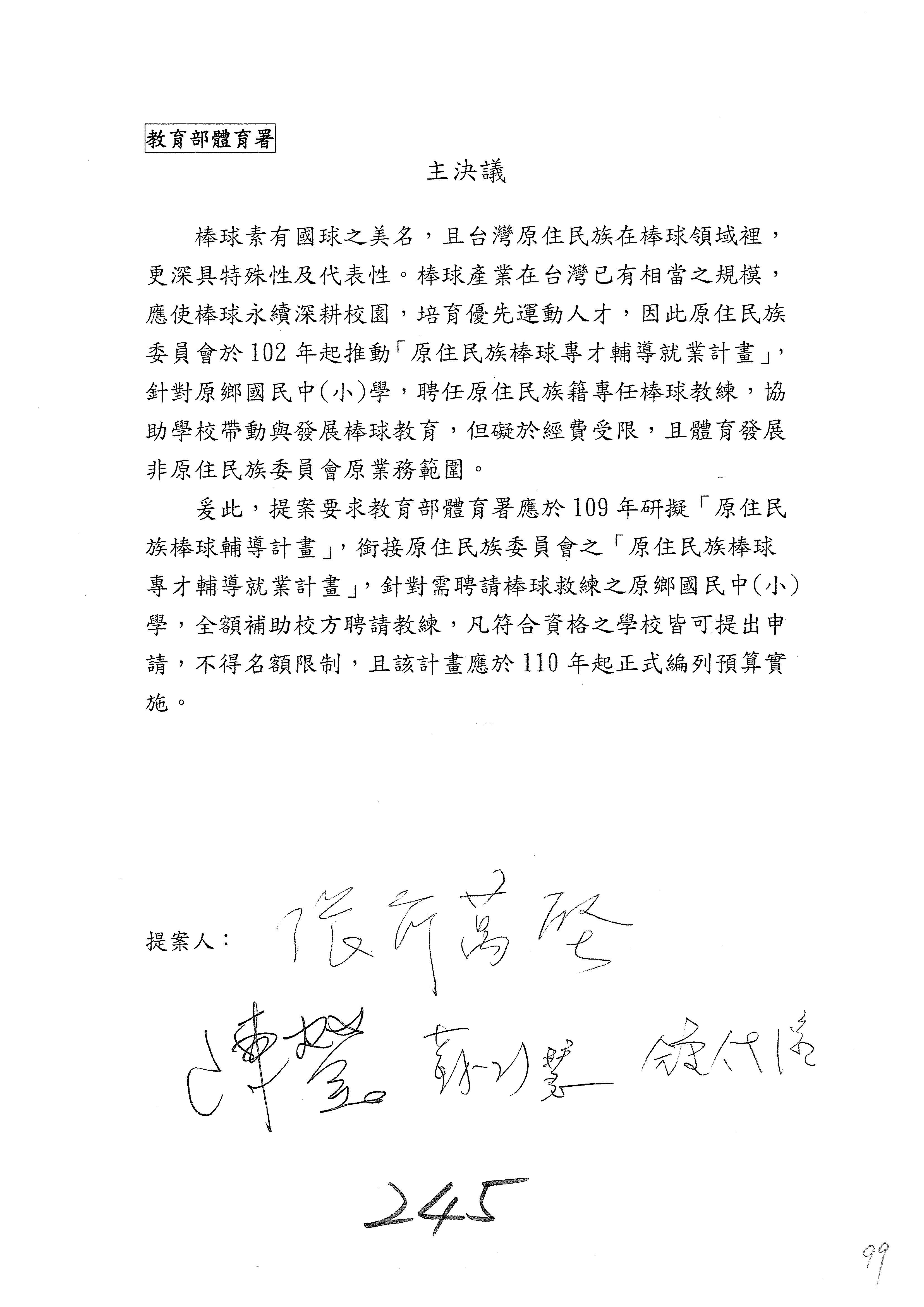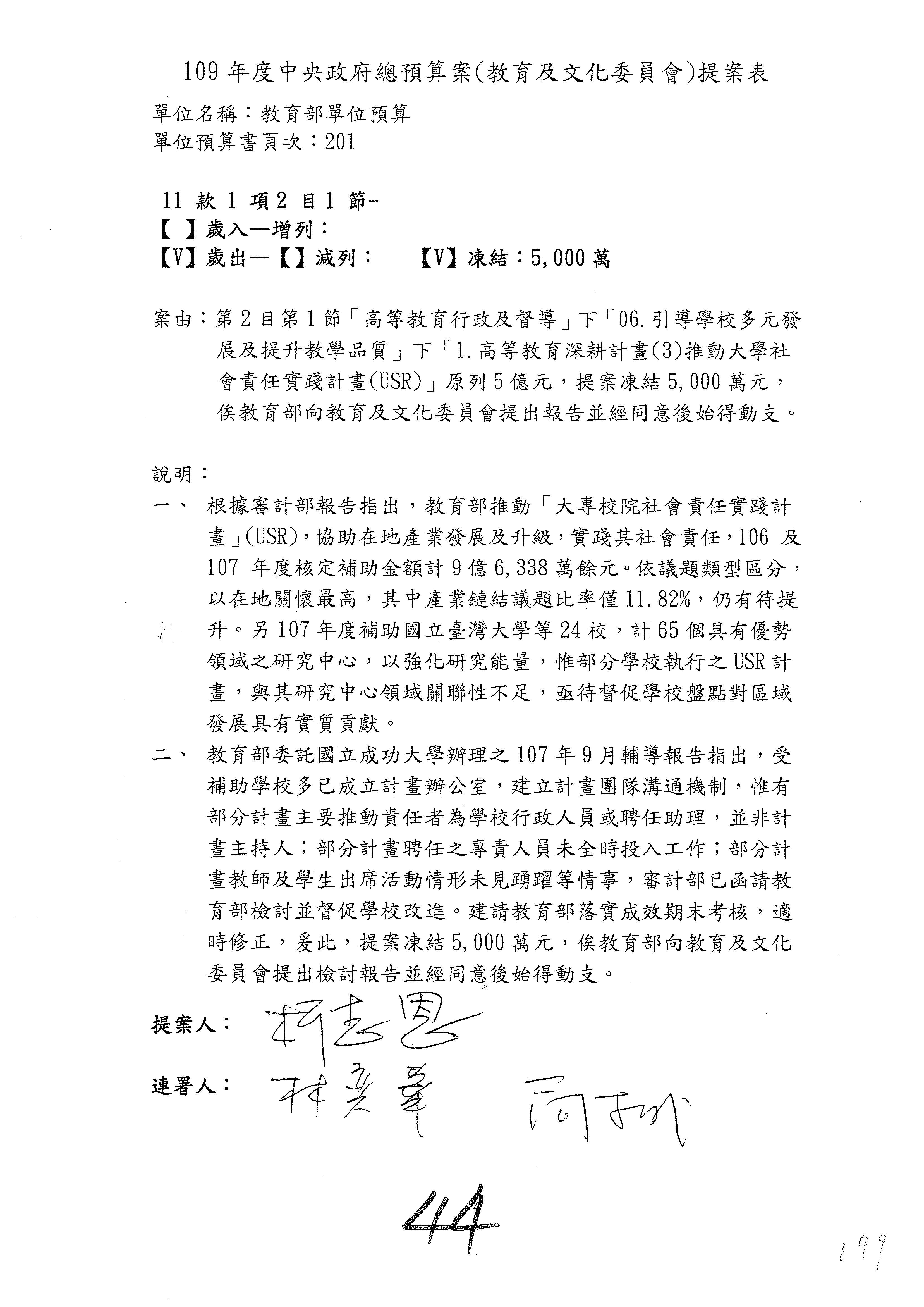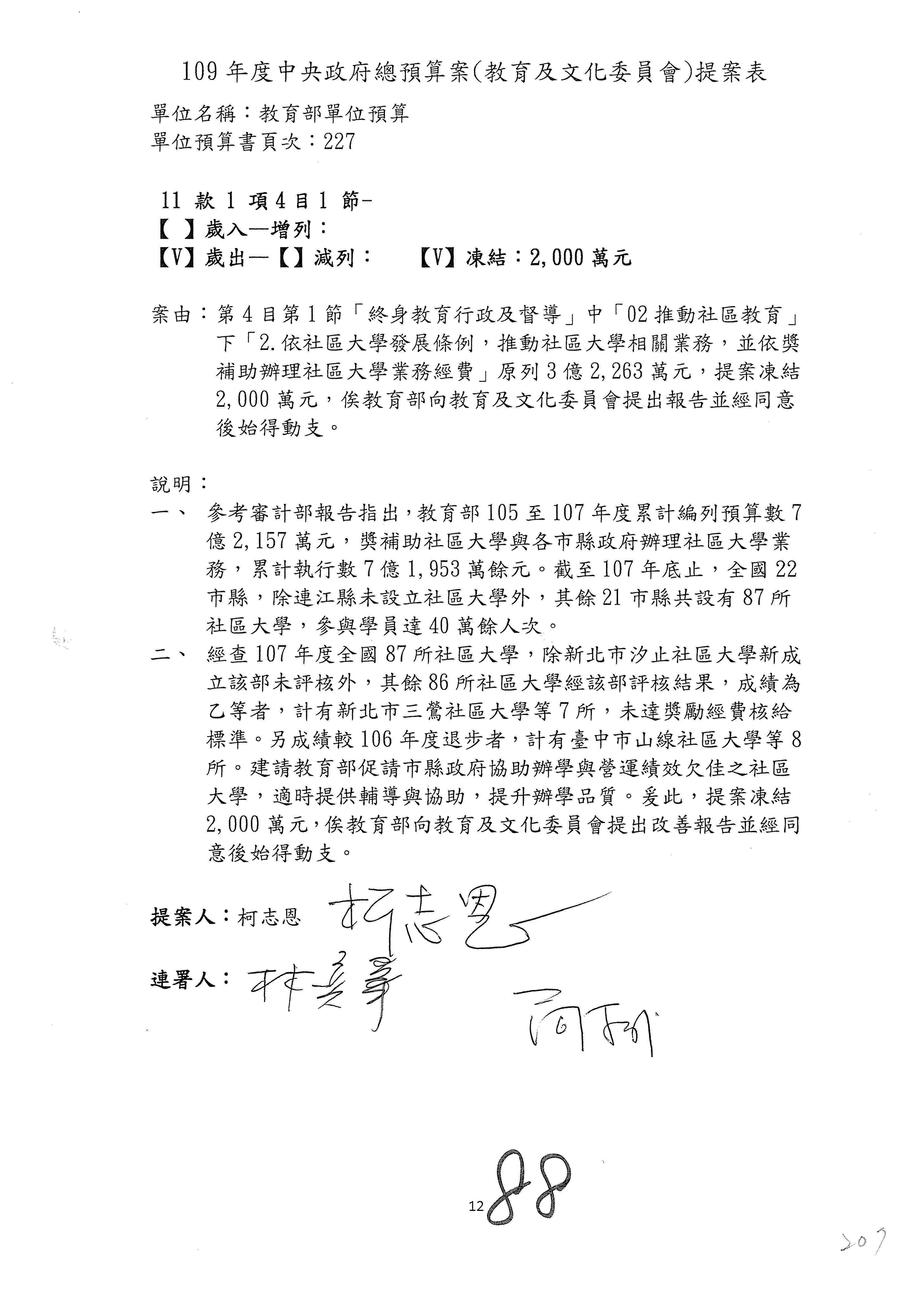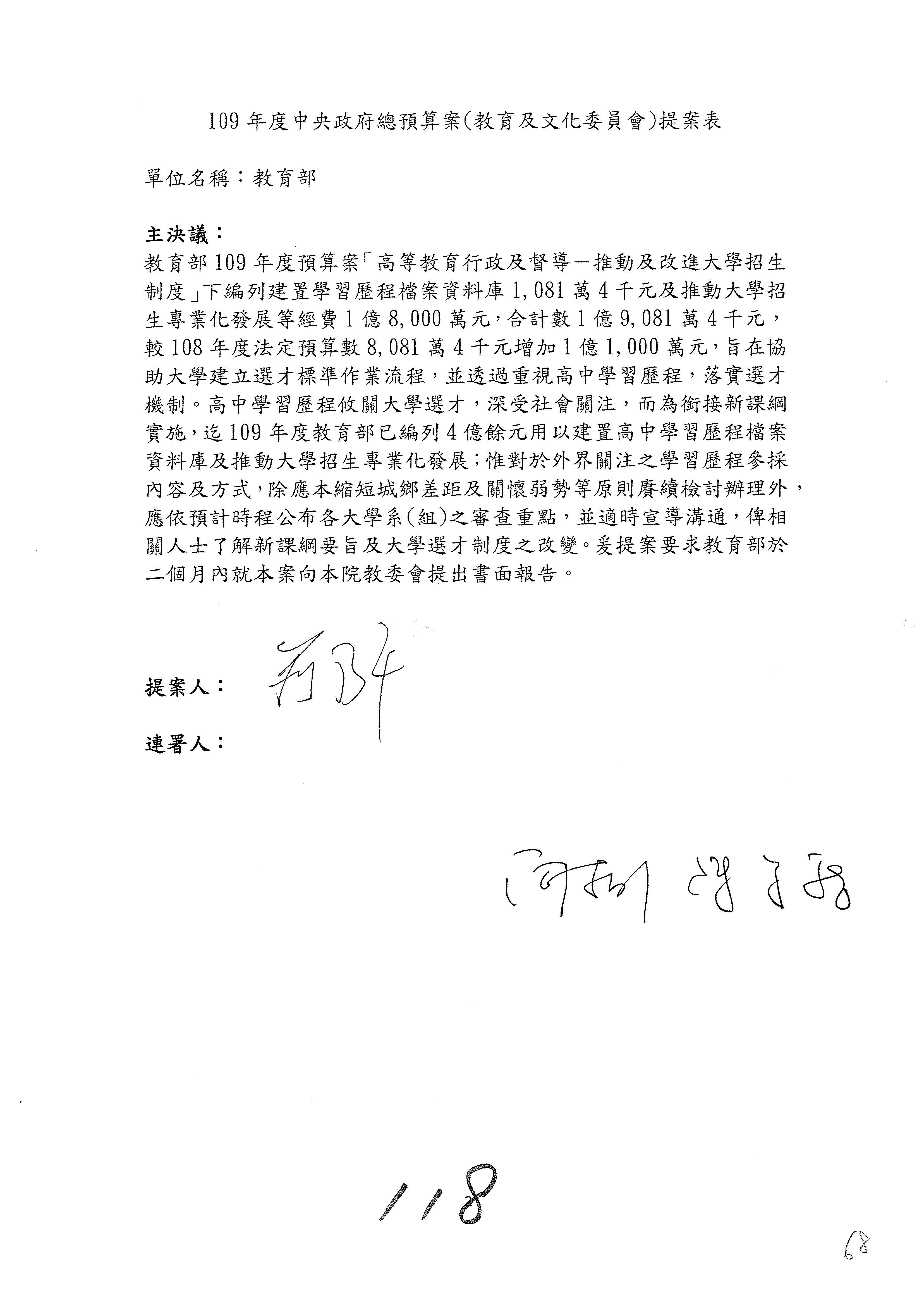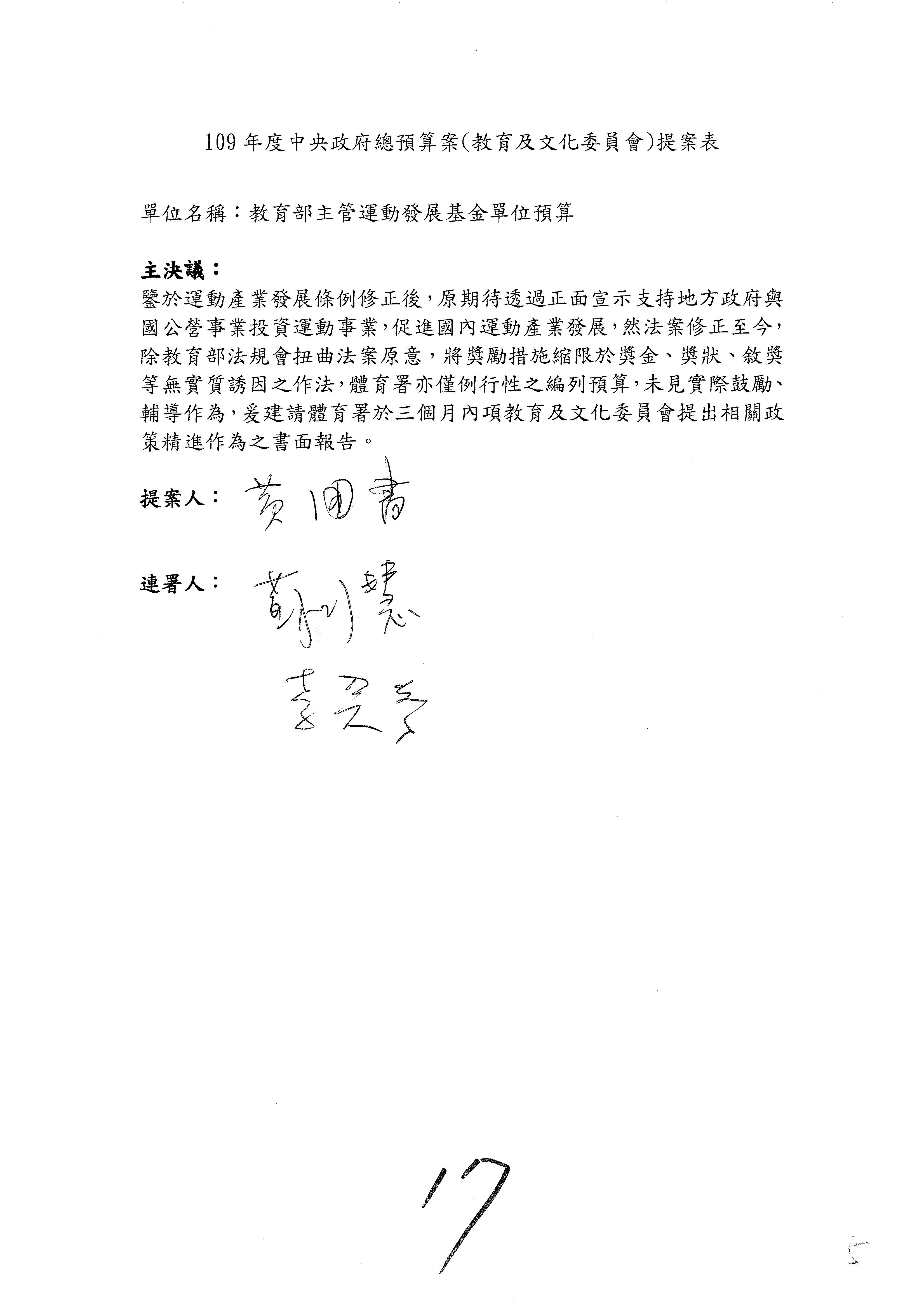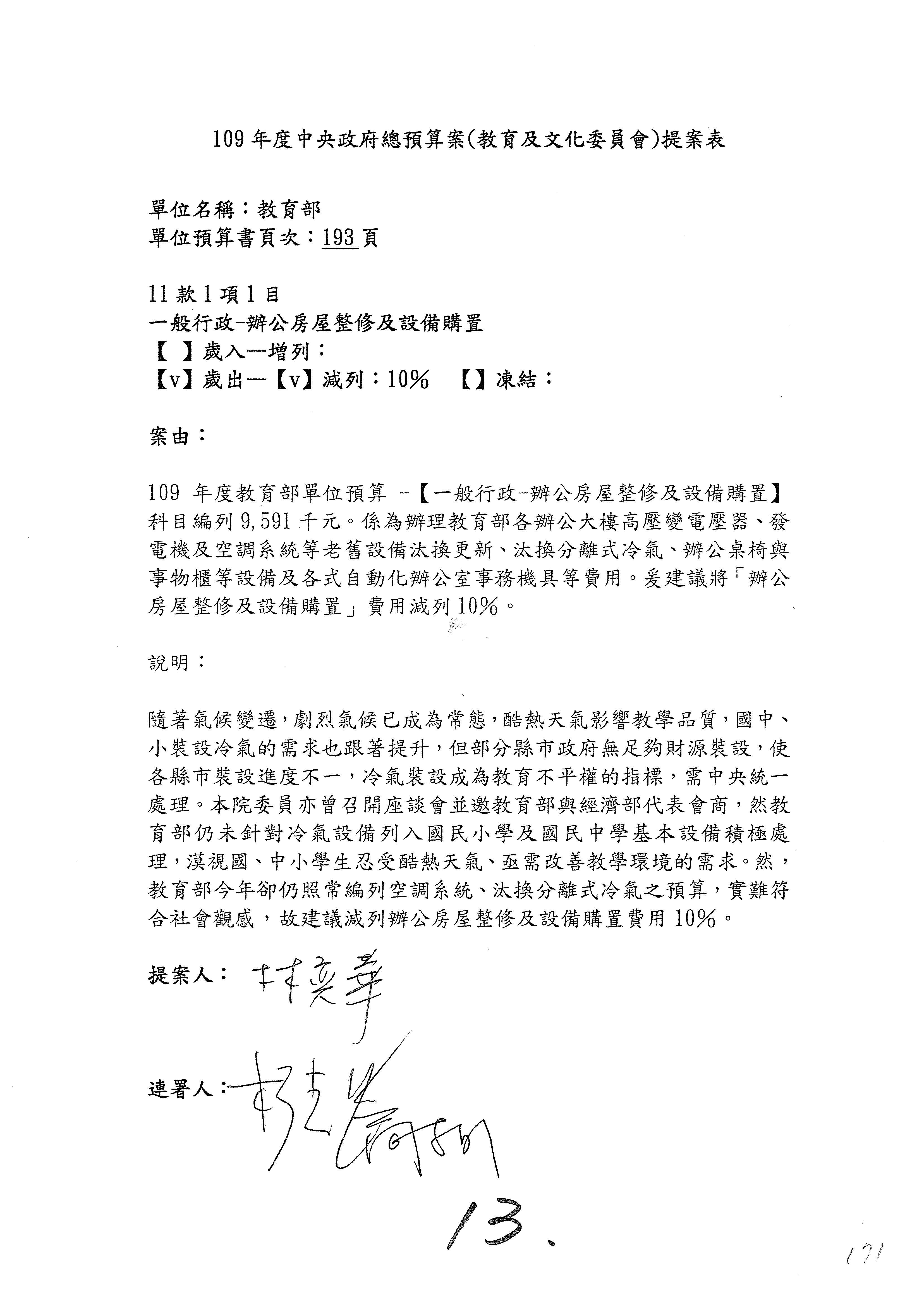 主席:好,最後一句修改為「爰提案要求教育部於三個月內向本院教委會提出書面報告」,修正通過。