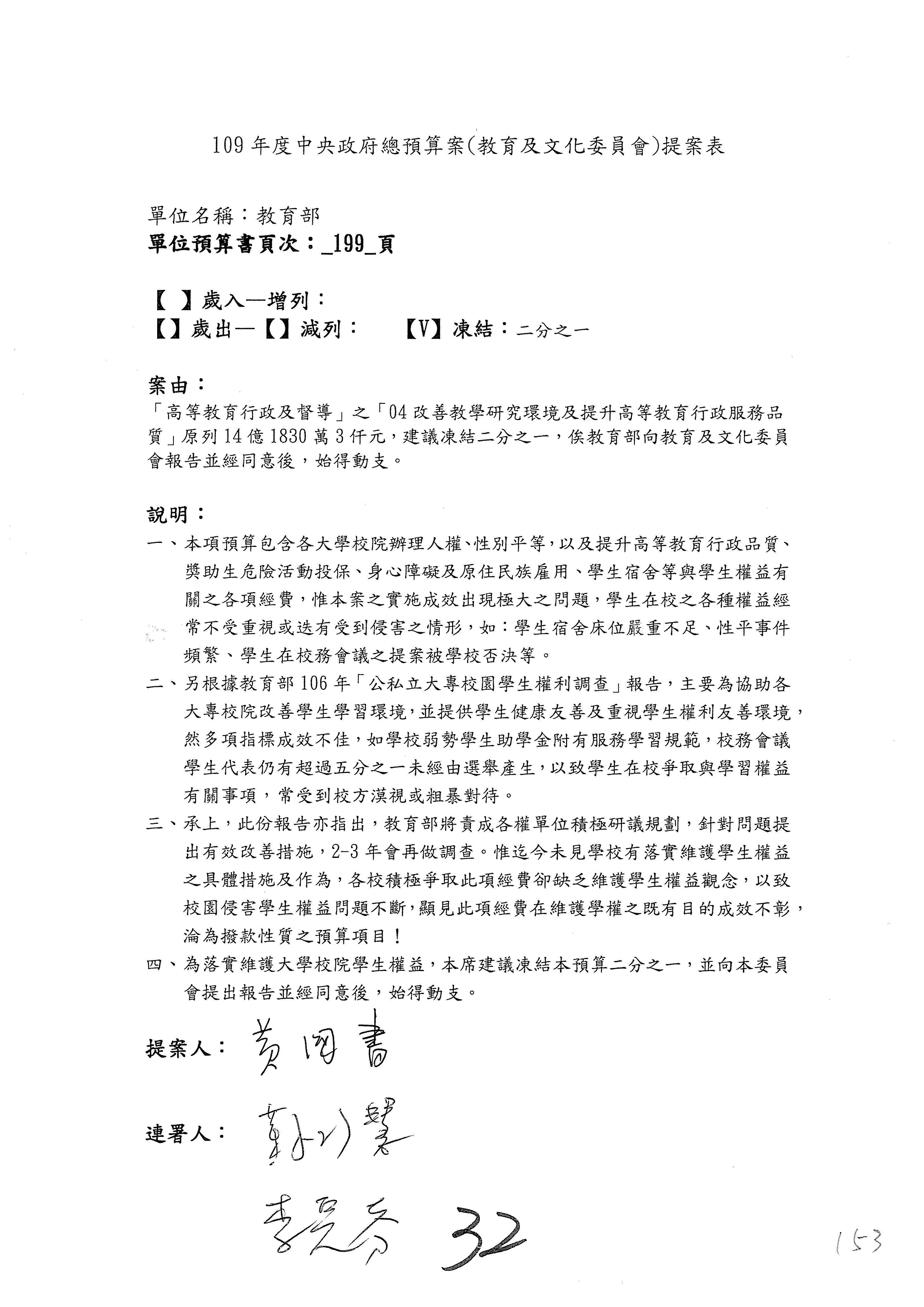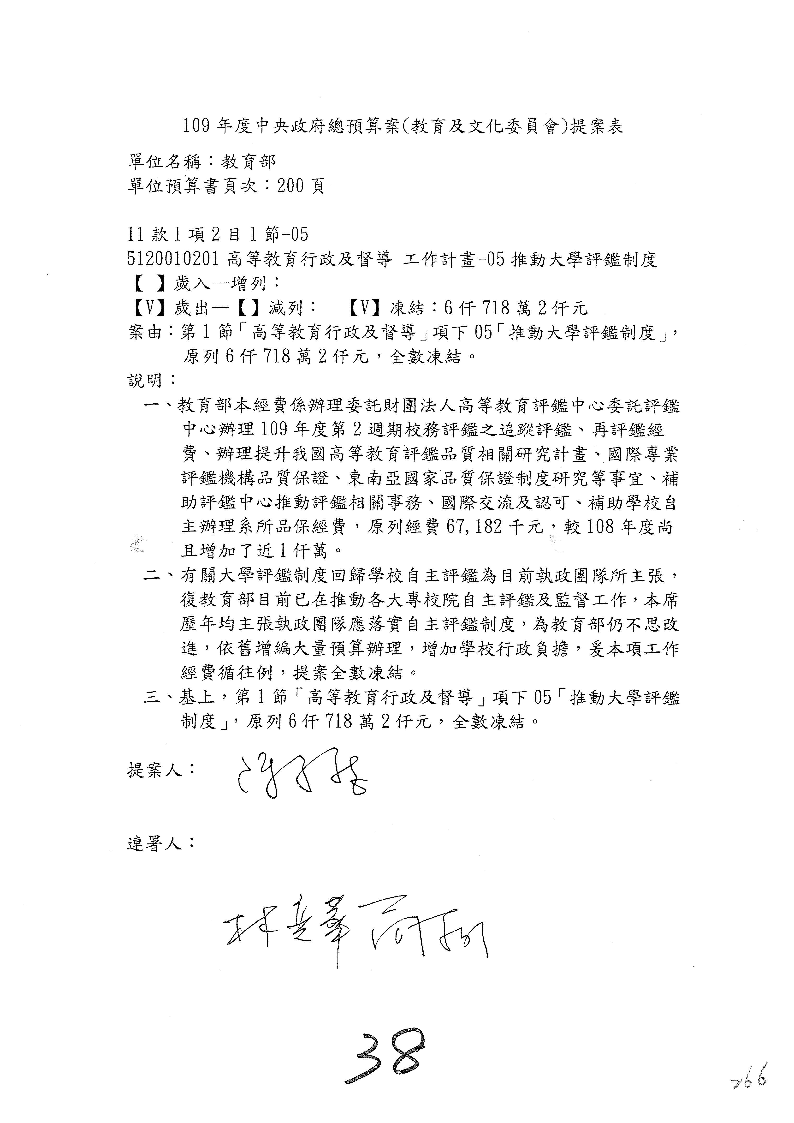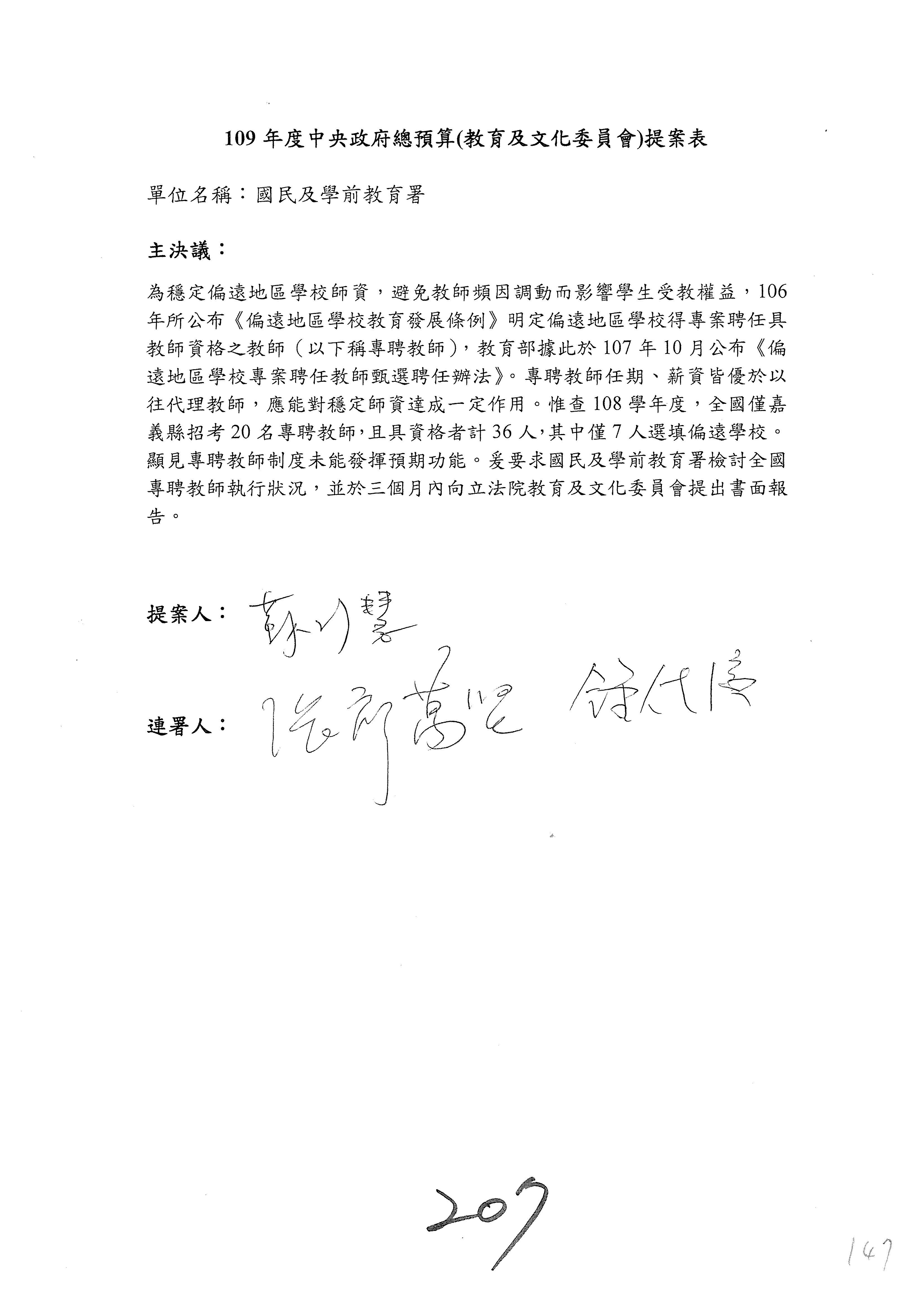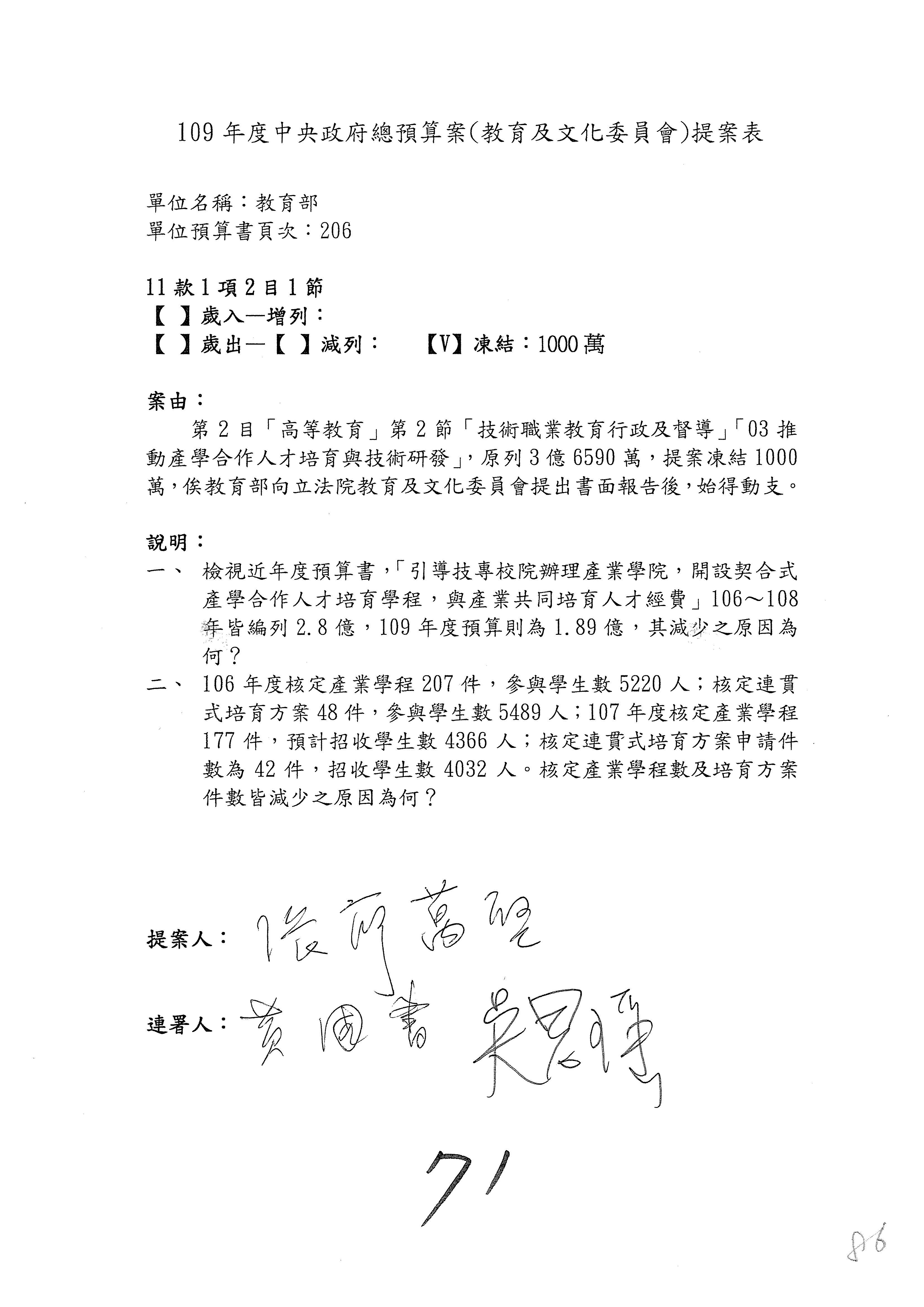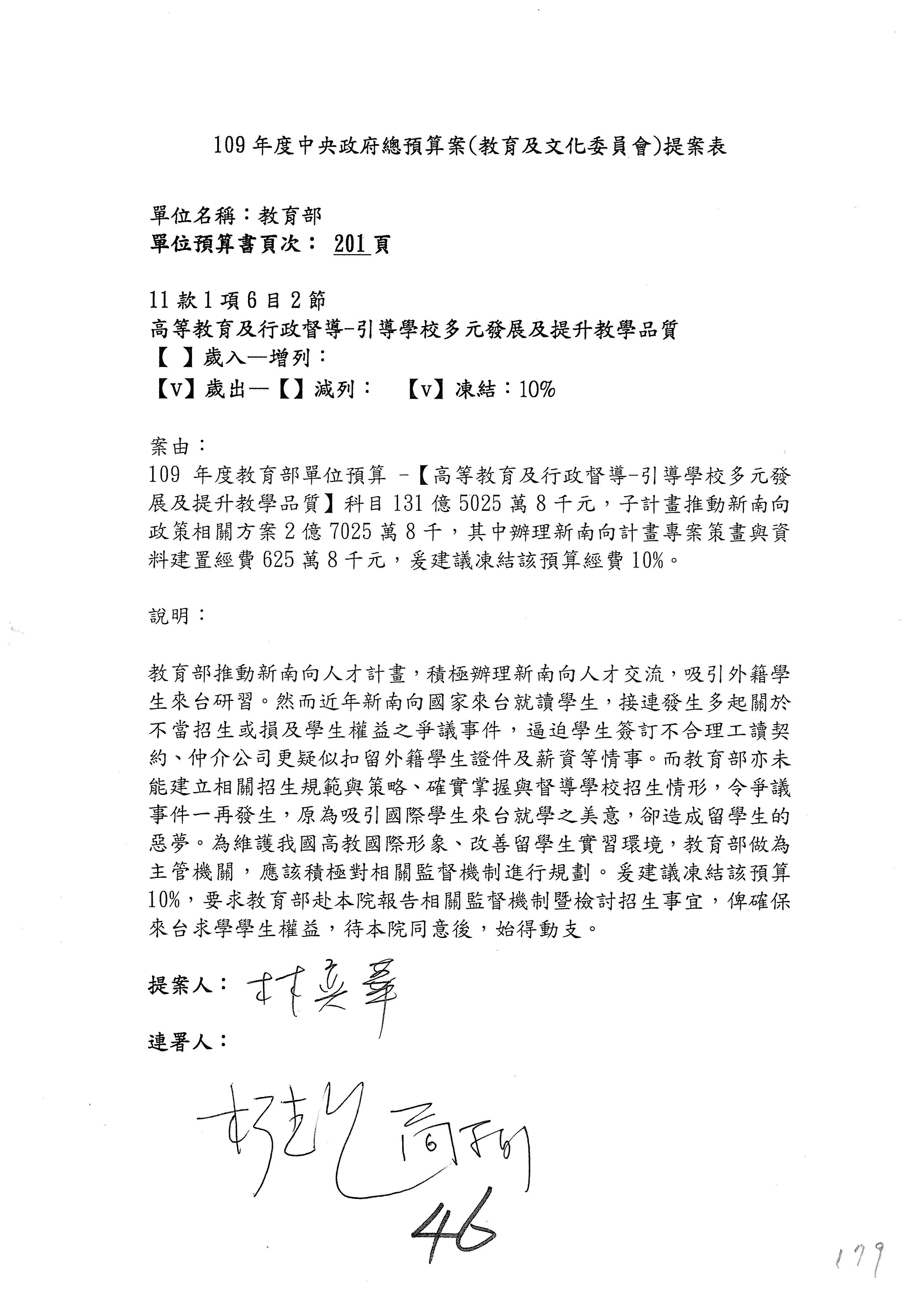 主席:好,最後一句修改為「爰提案要求教育部於三個月內向本院教委會提出書面報告」,修正通過。