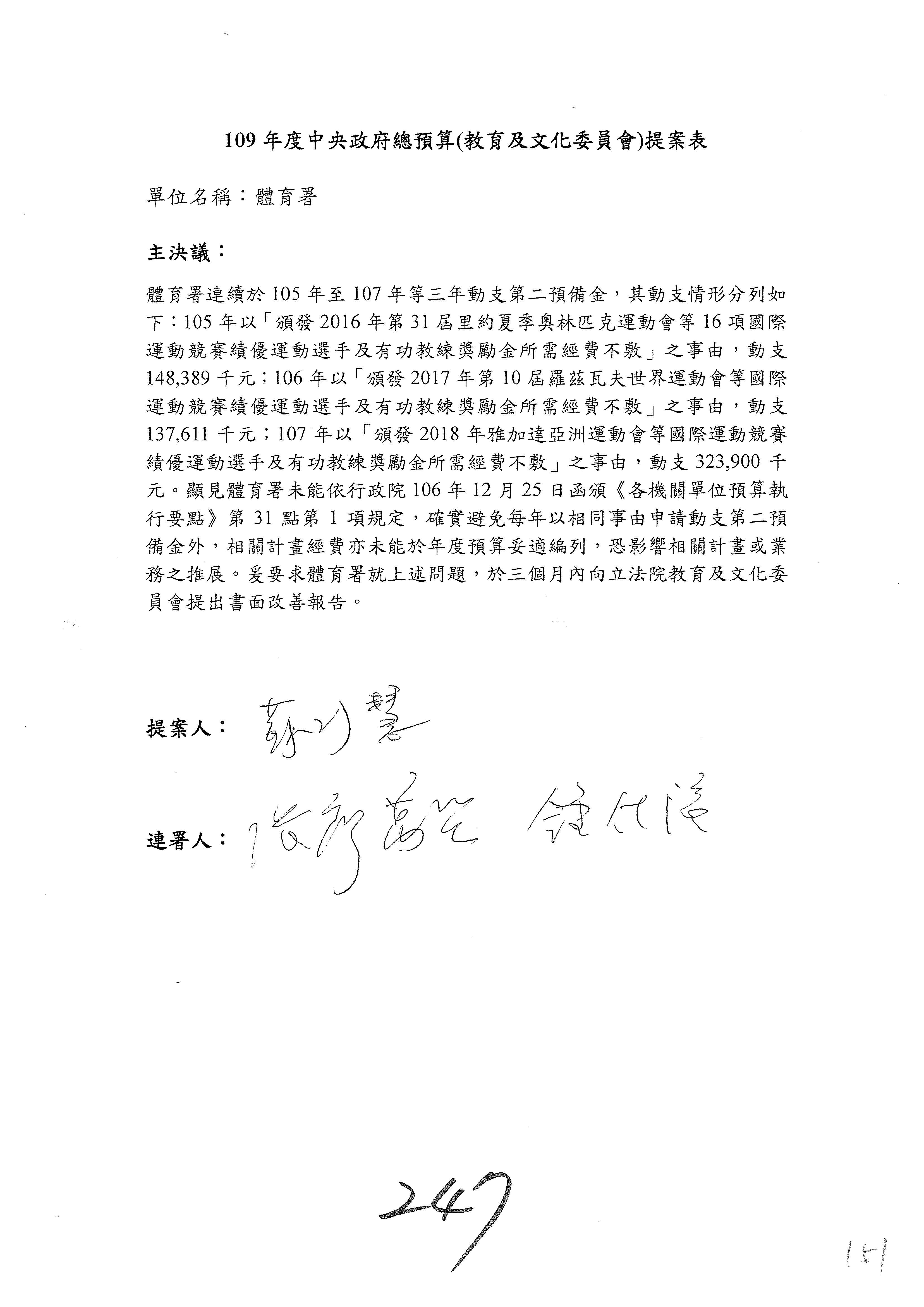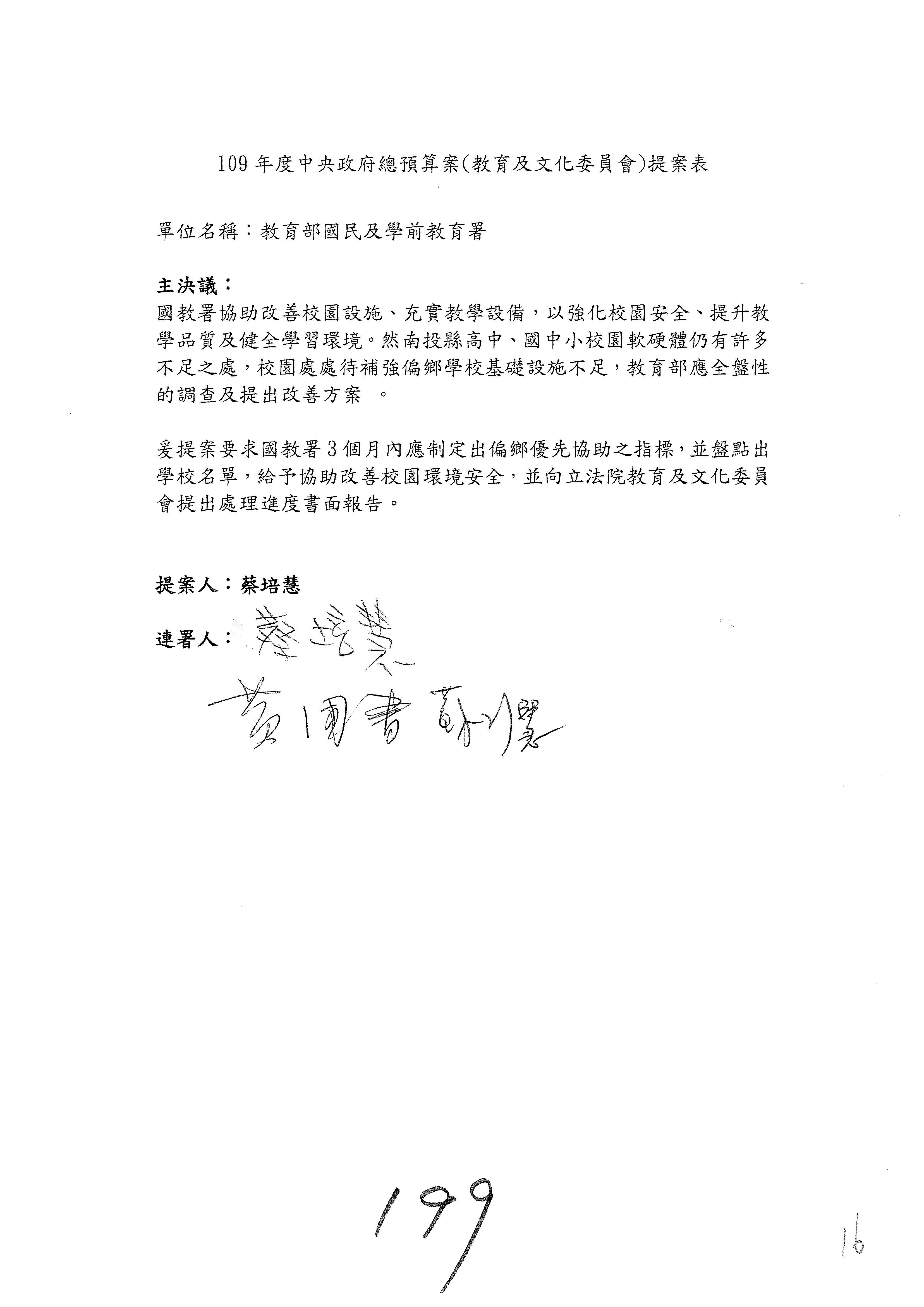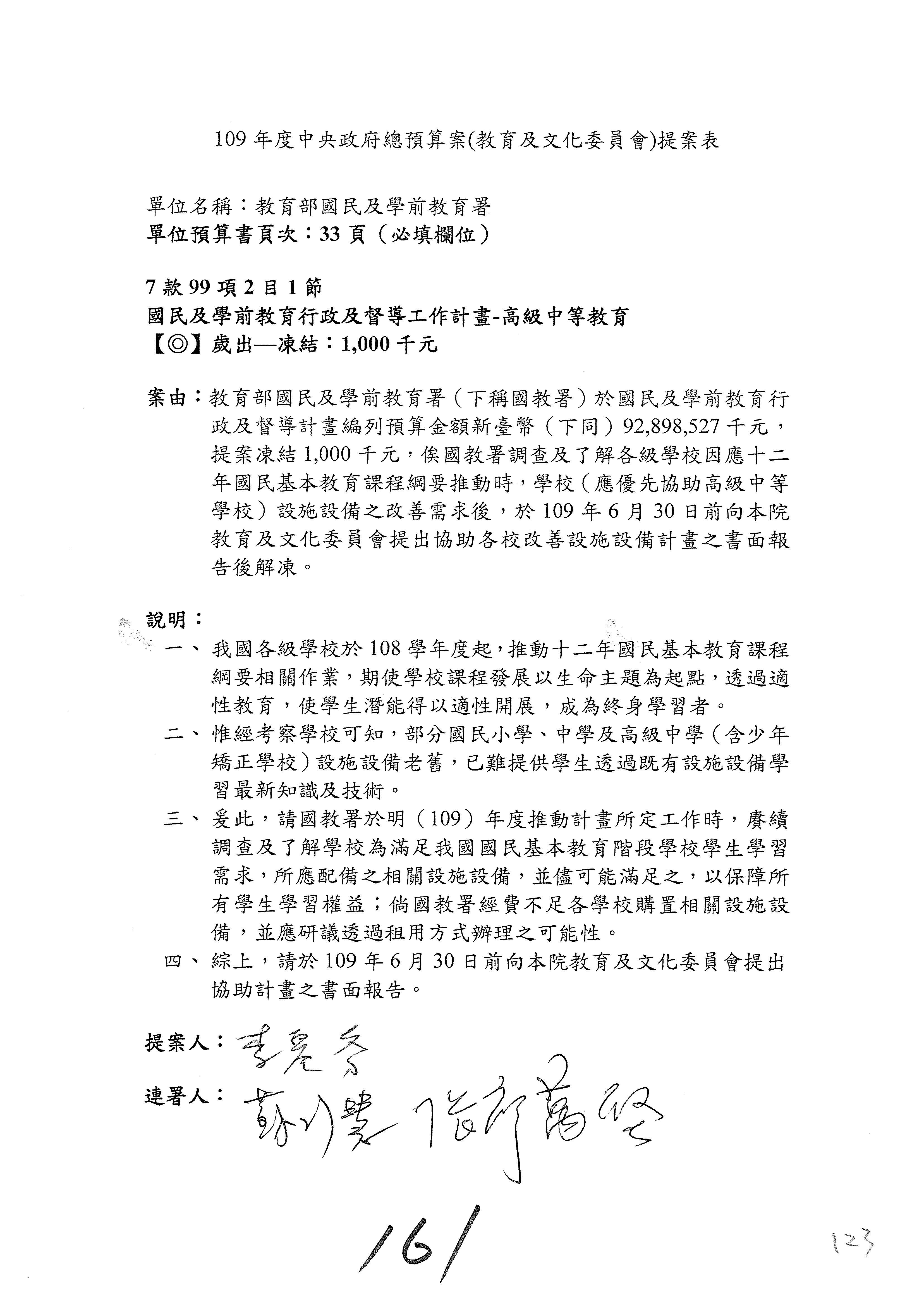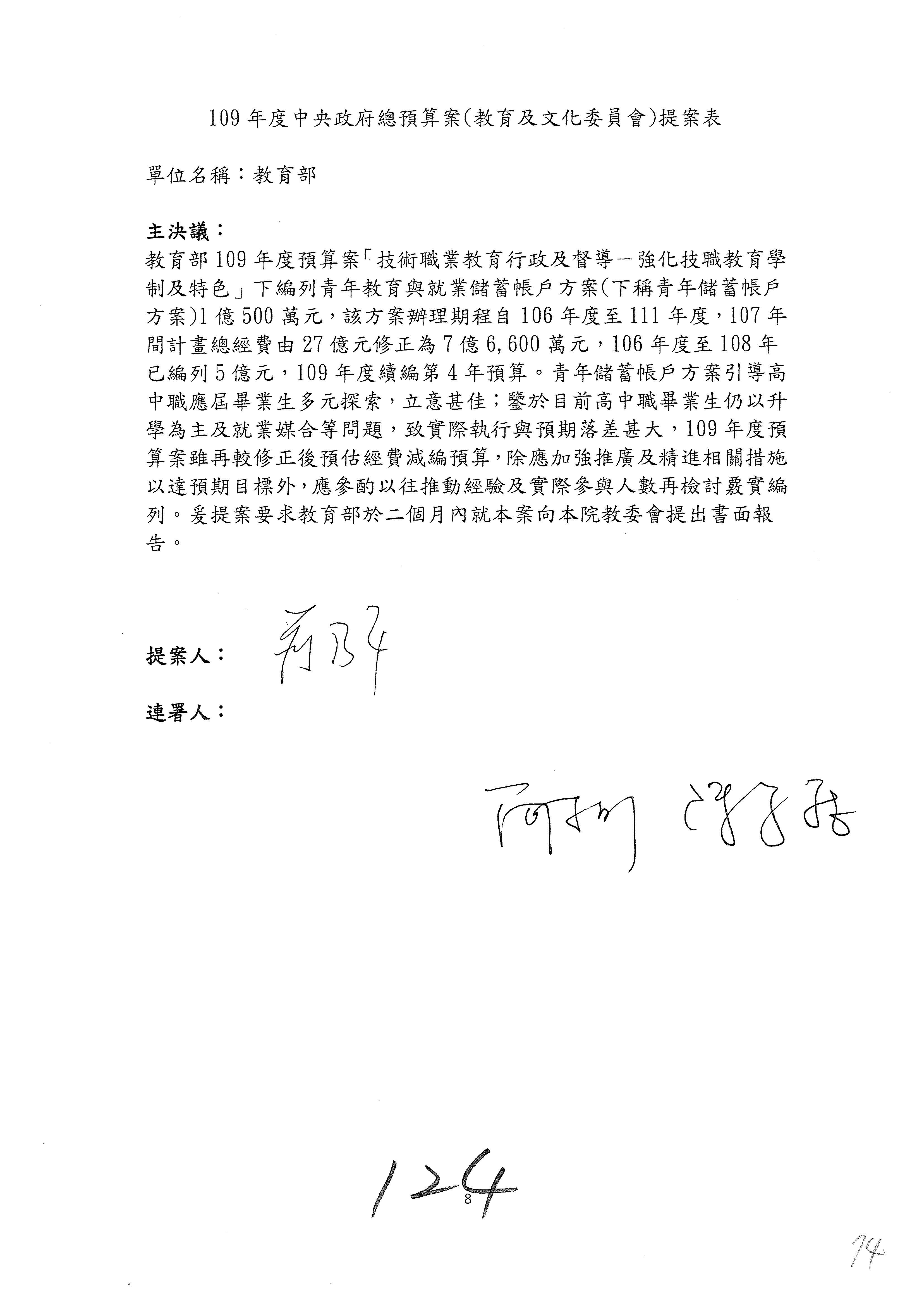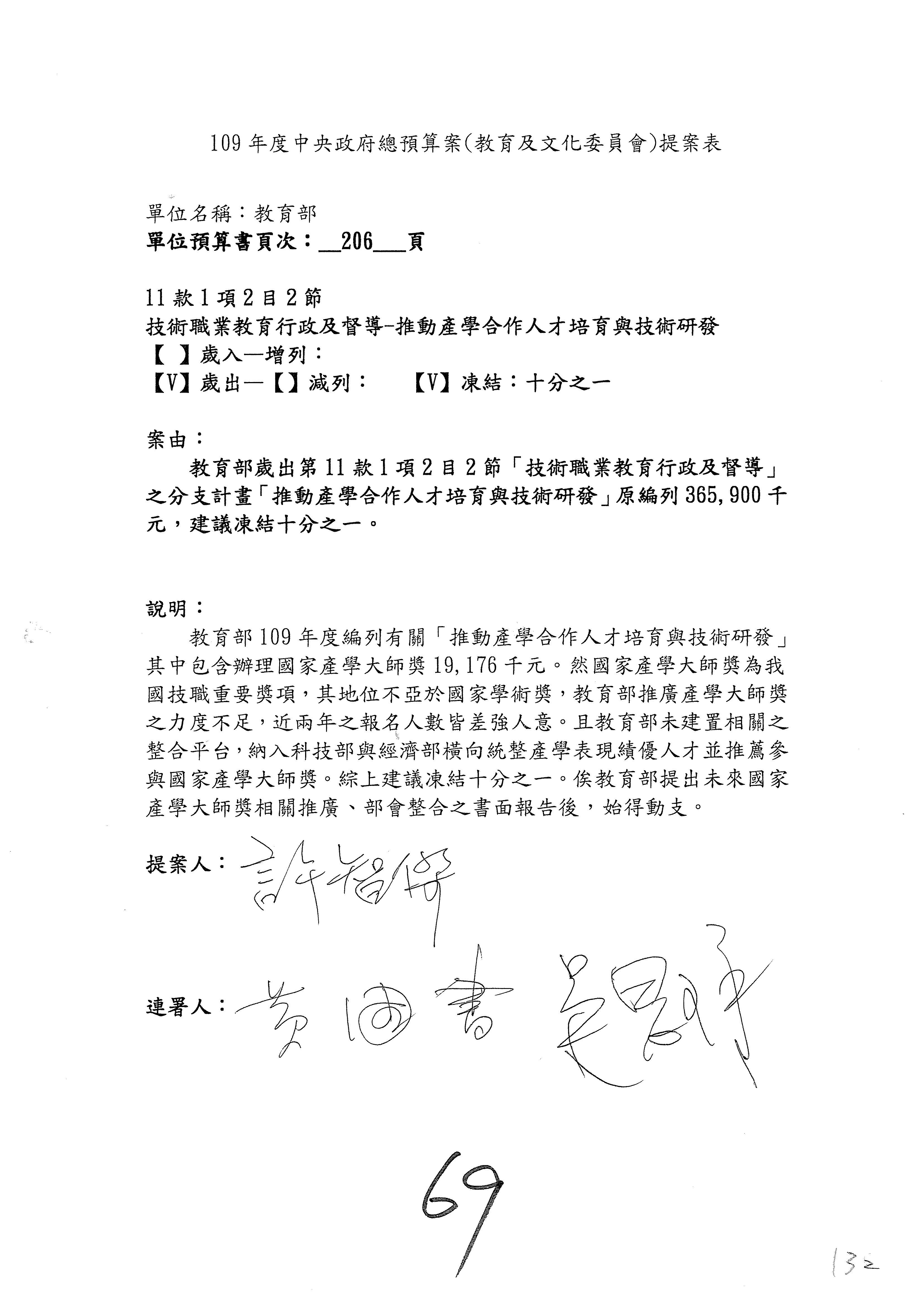 主席:好,最後一句修改為「爰提案要求教育部於三個月內向本院教委會提出書面報告」,修正通過。