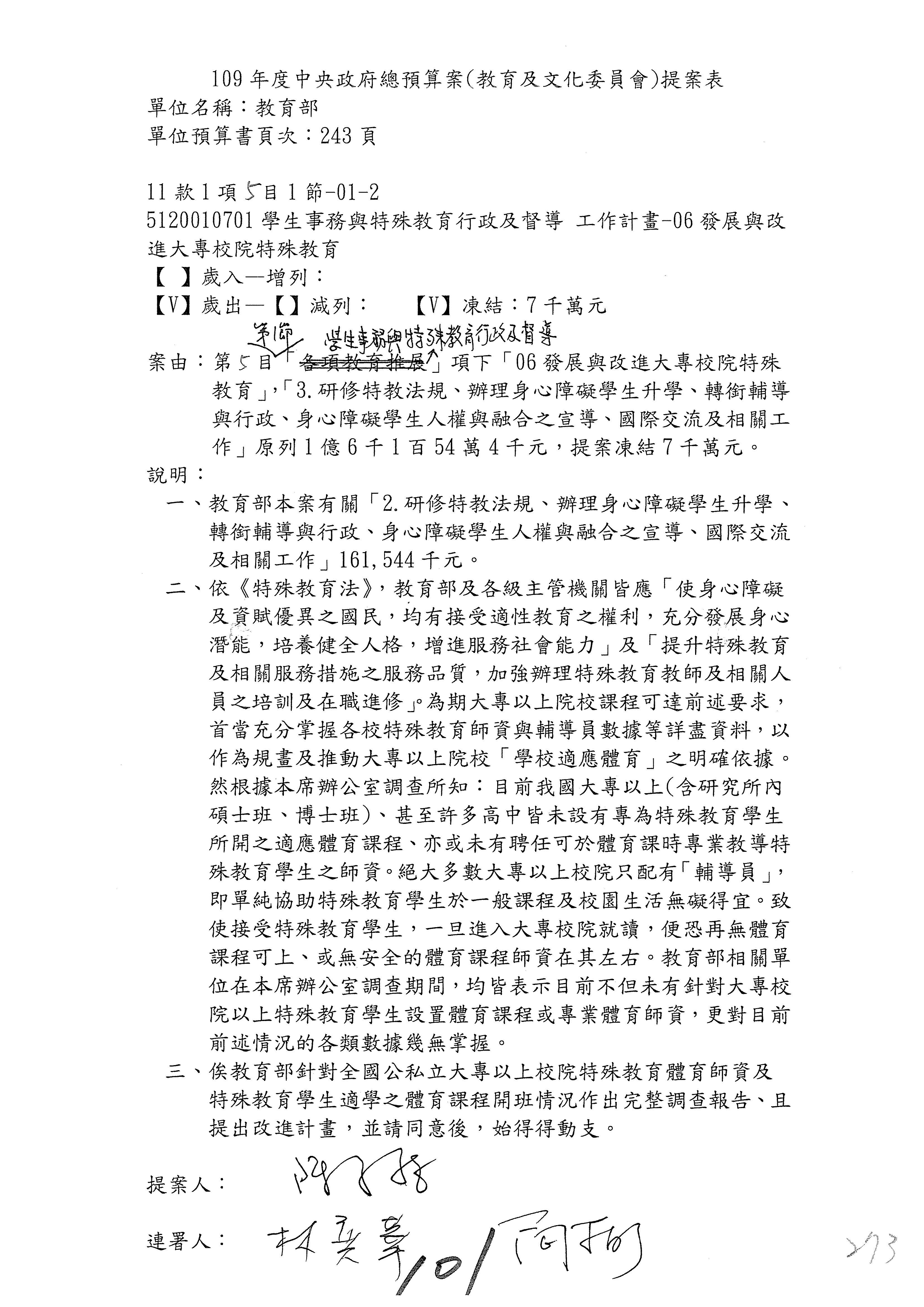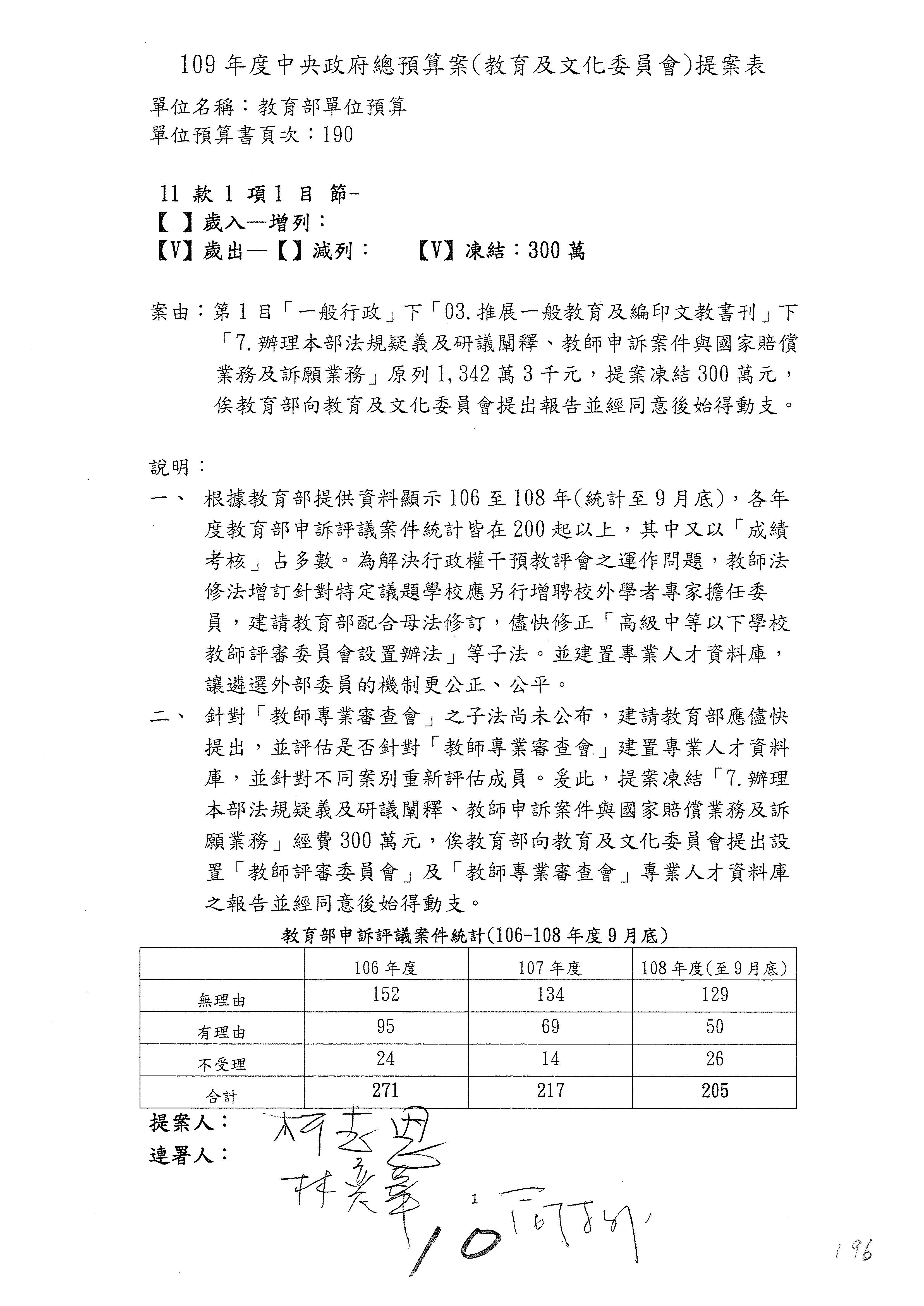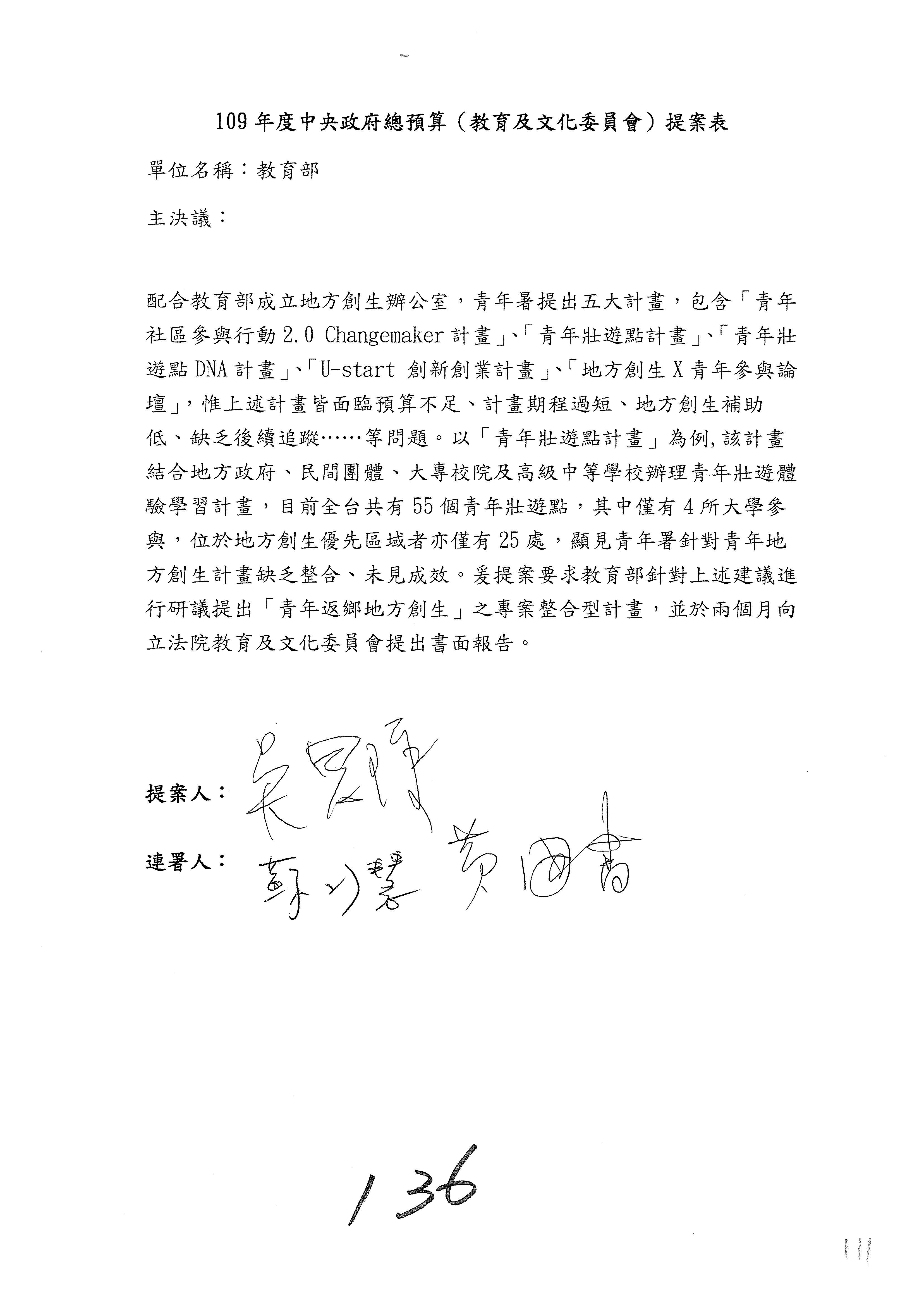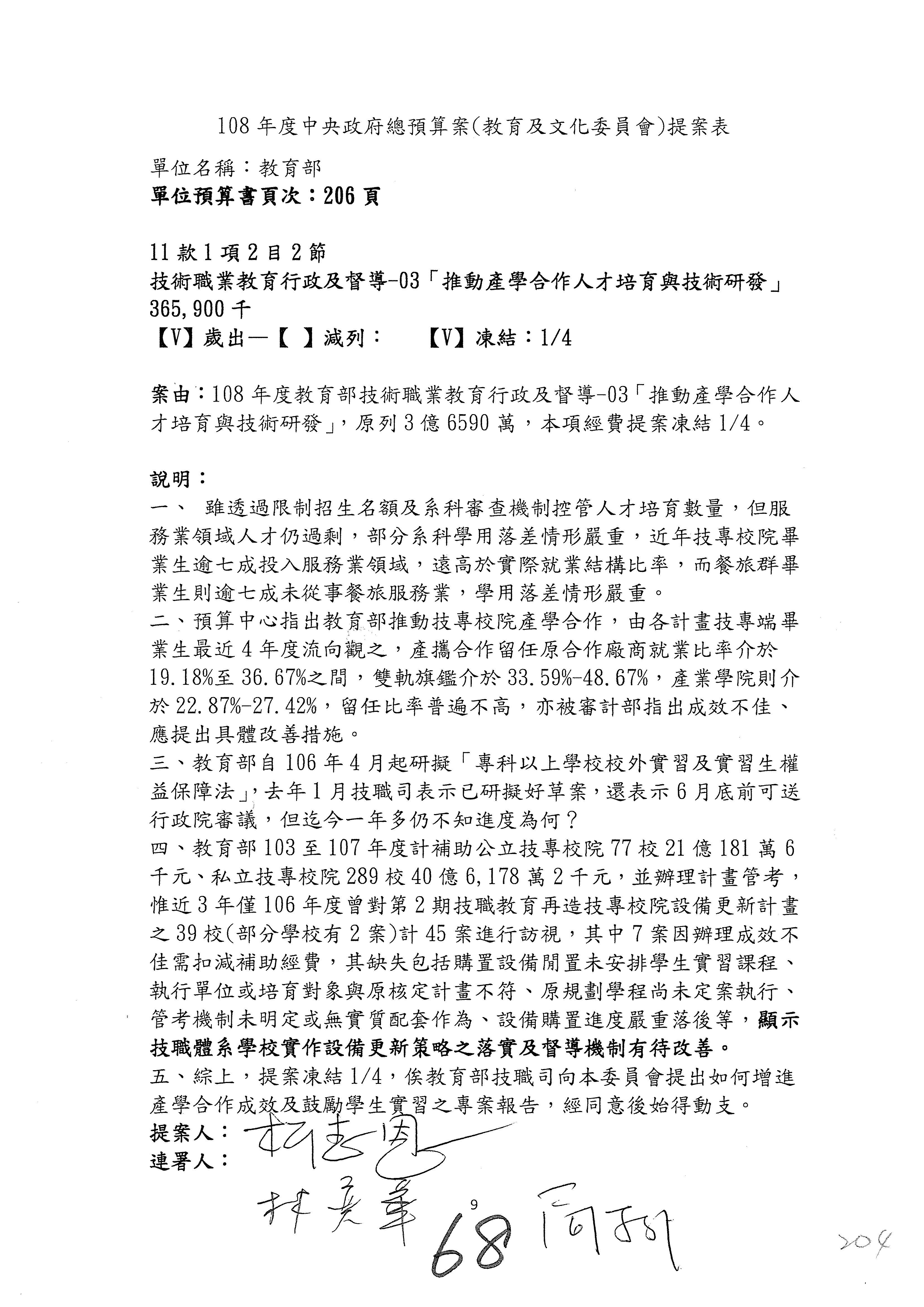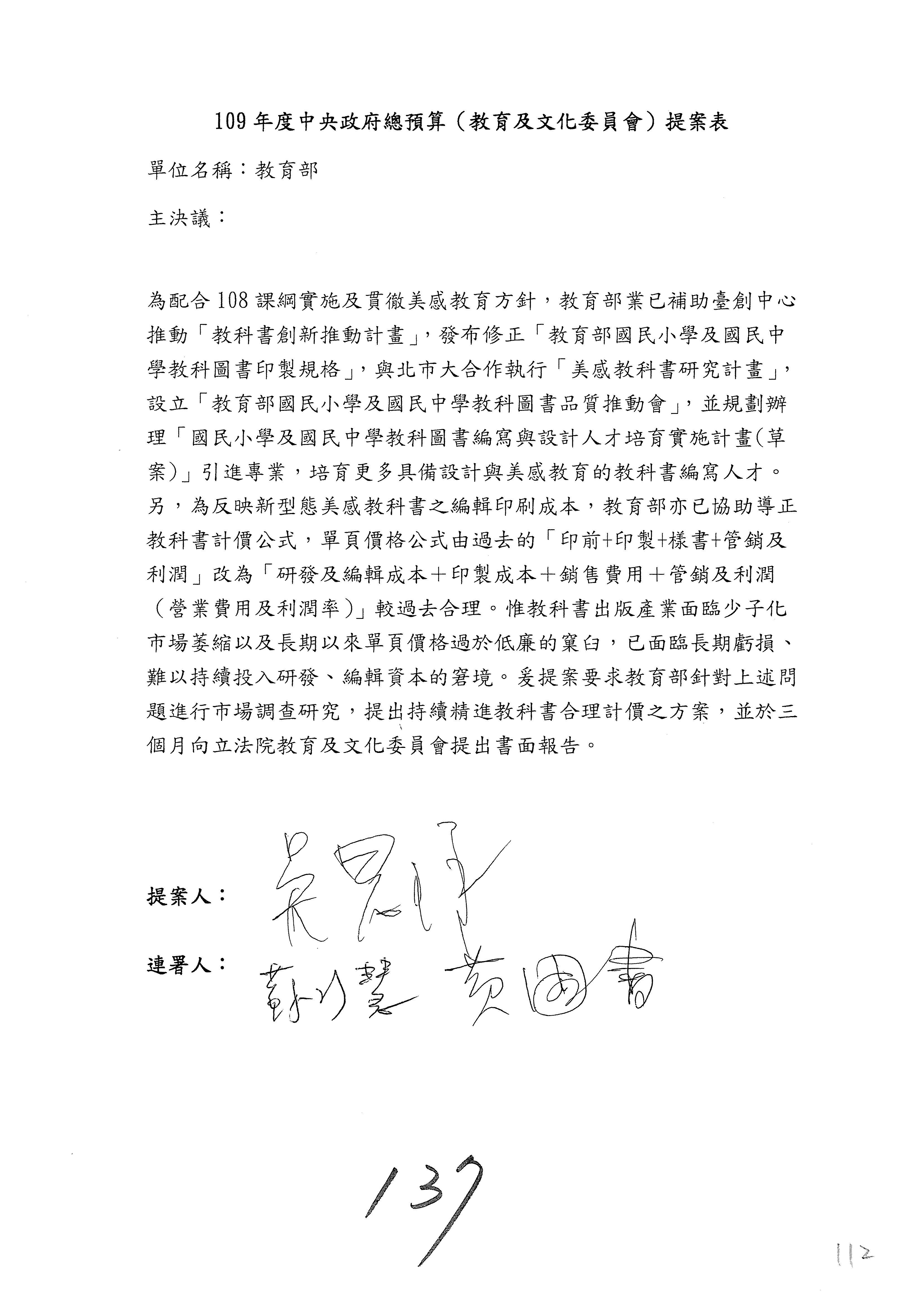 主席:好,最後一句修改為「爰提案要求教育部於三個月內向本院教委會提出書面報告」,修正通過。