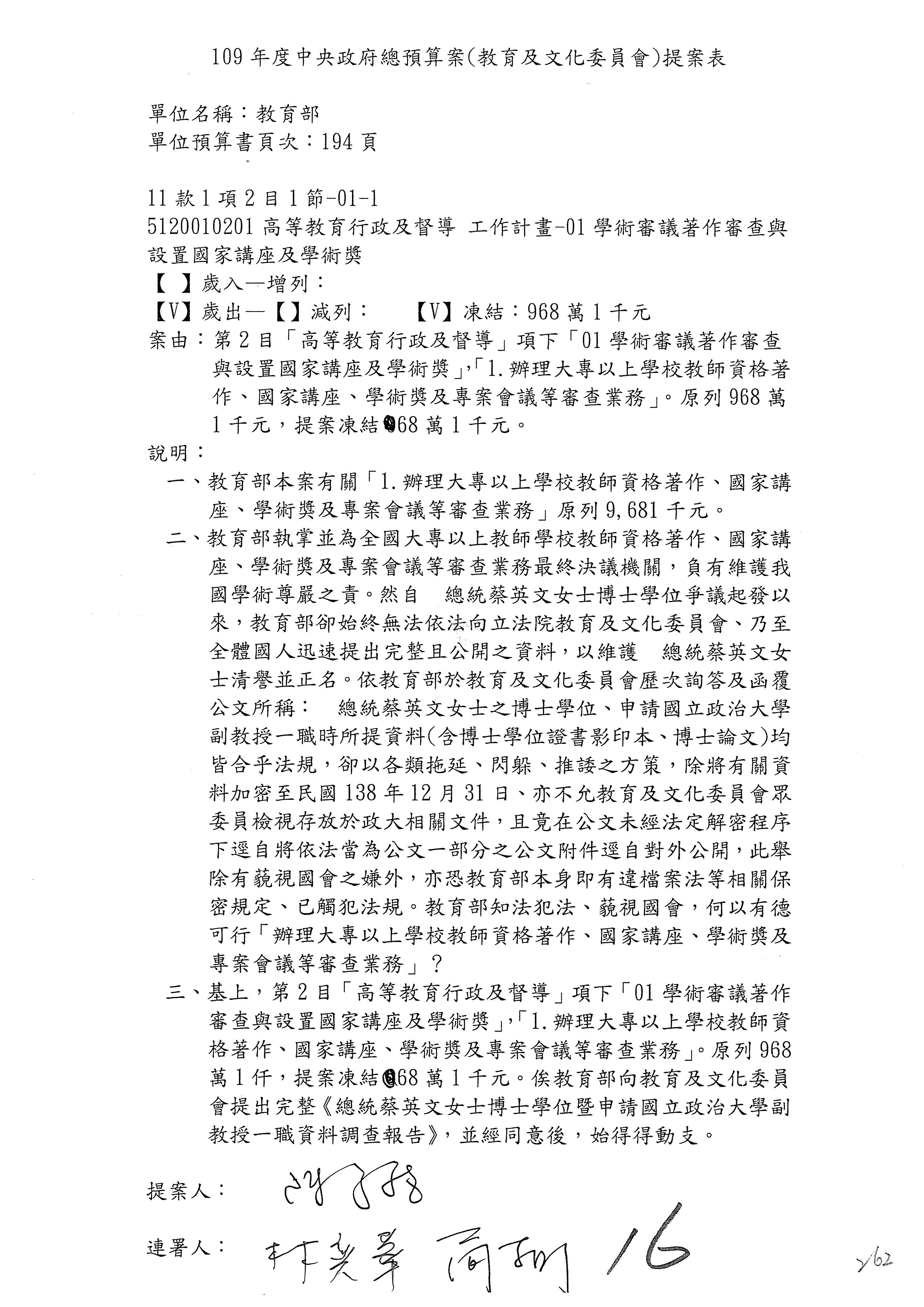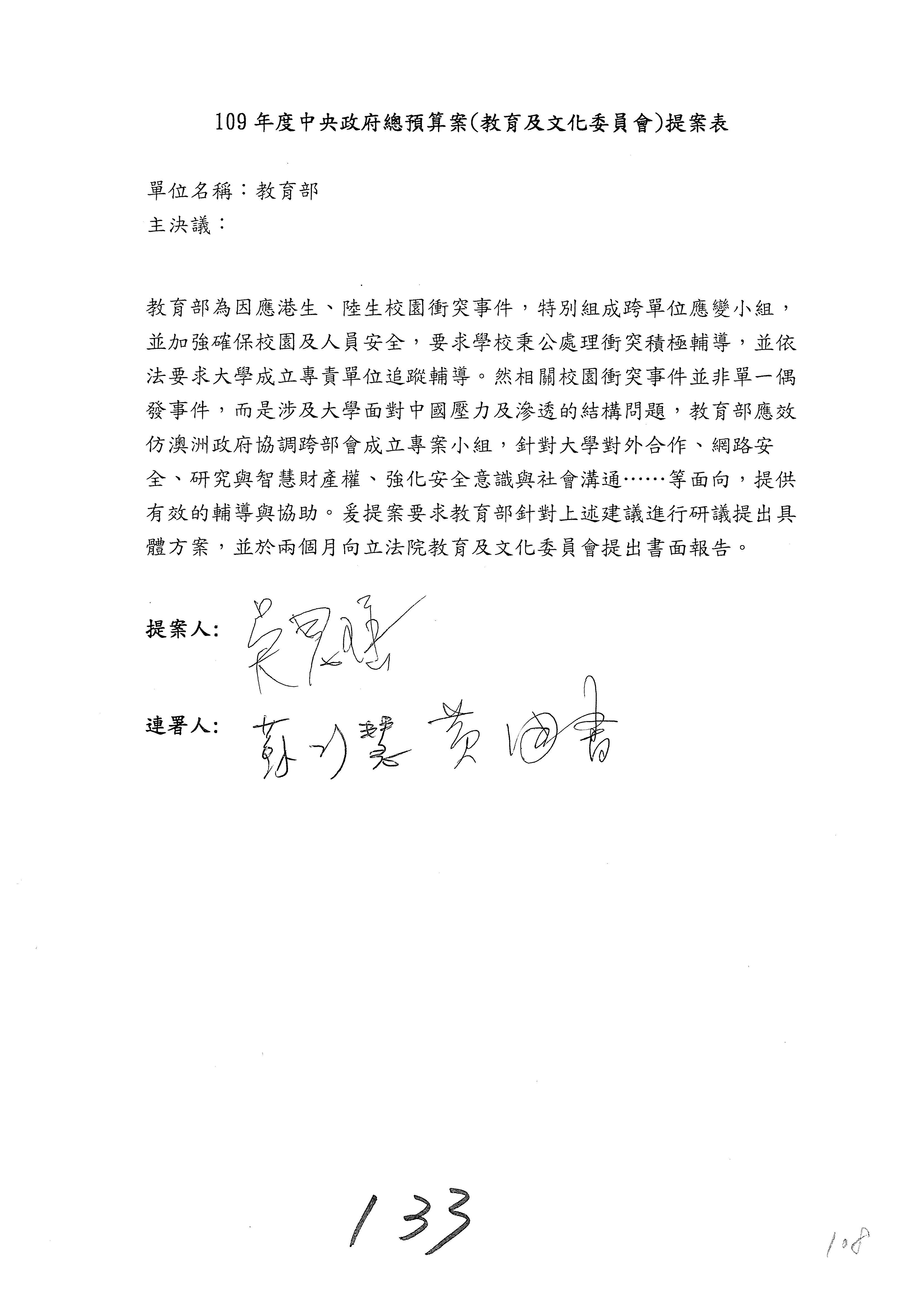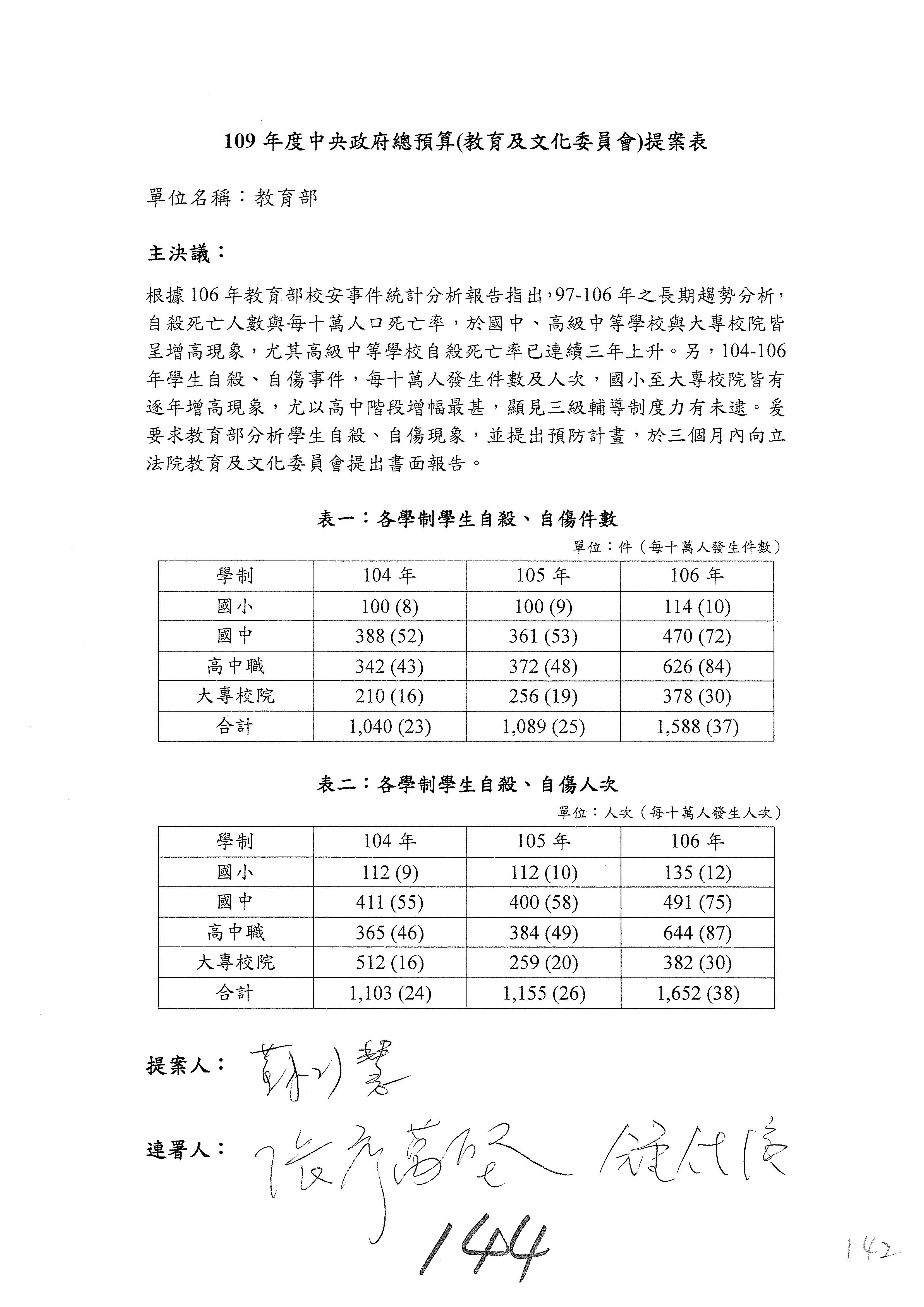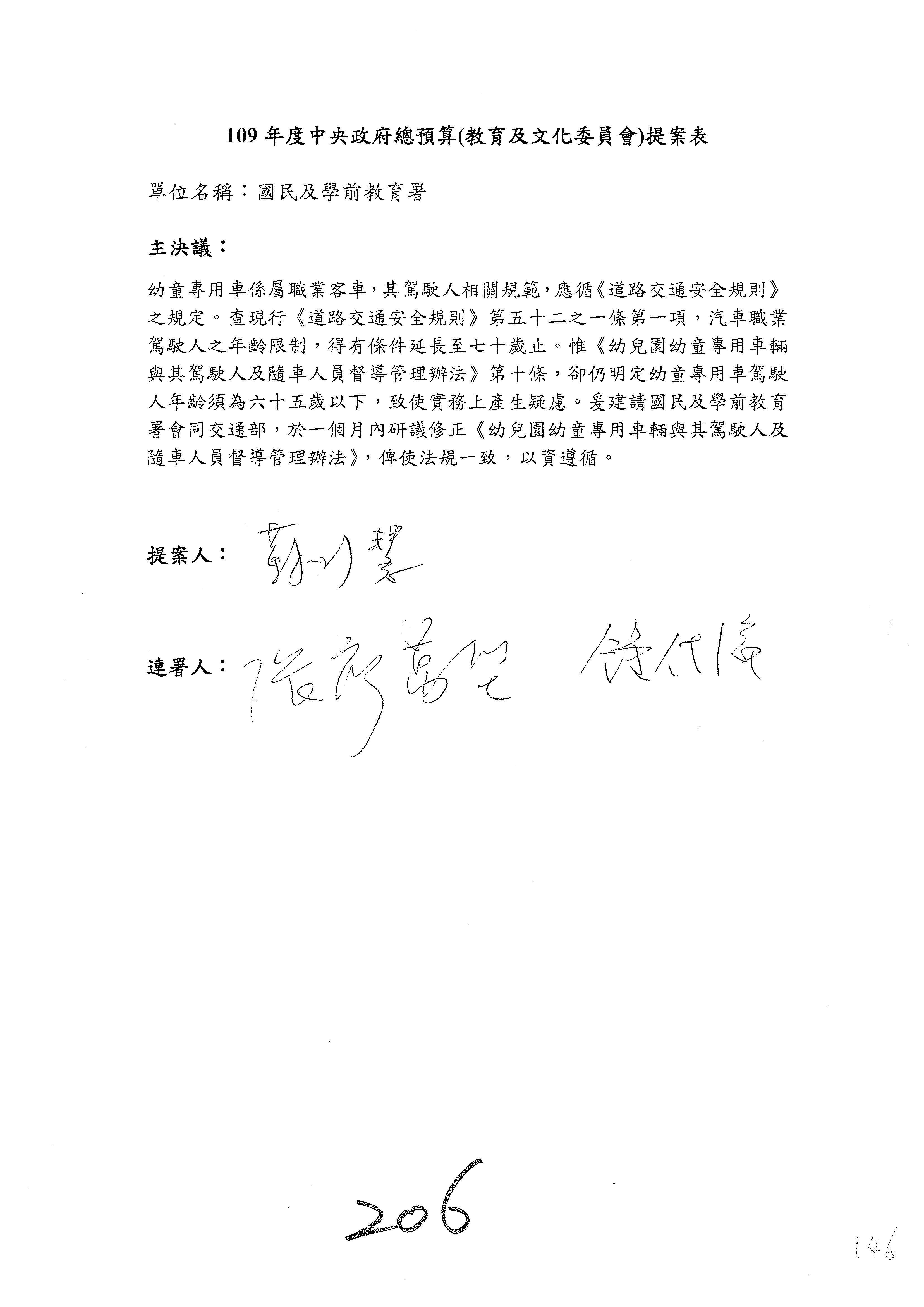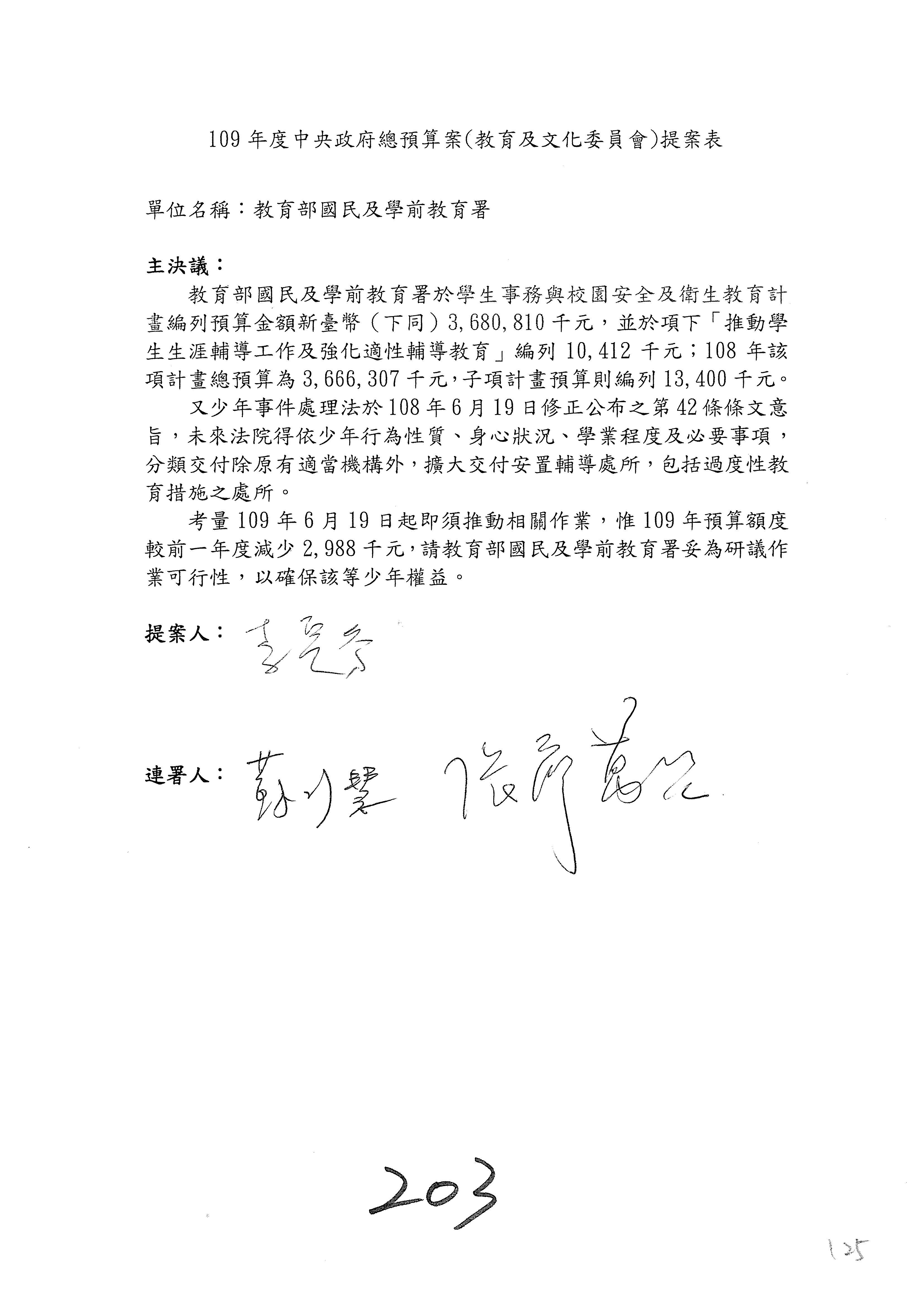 主席:好,最後一句修改為「爰提案要求教育部於三個月內向本院教委會提出書面報告」,修正通過。