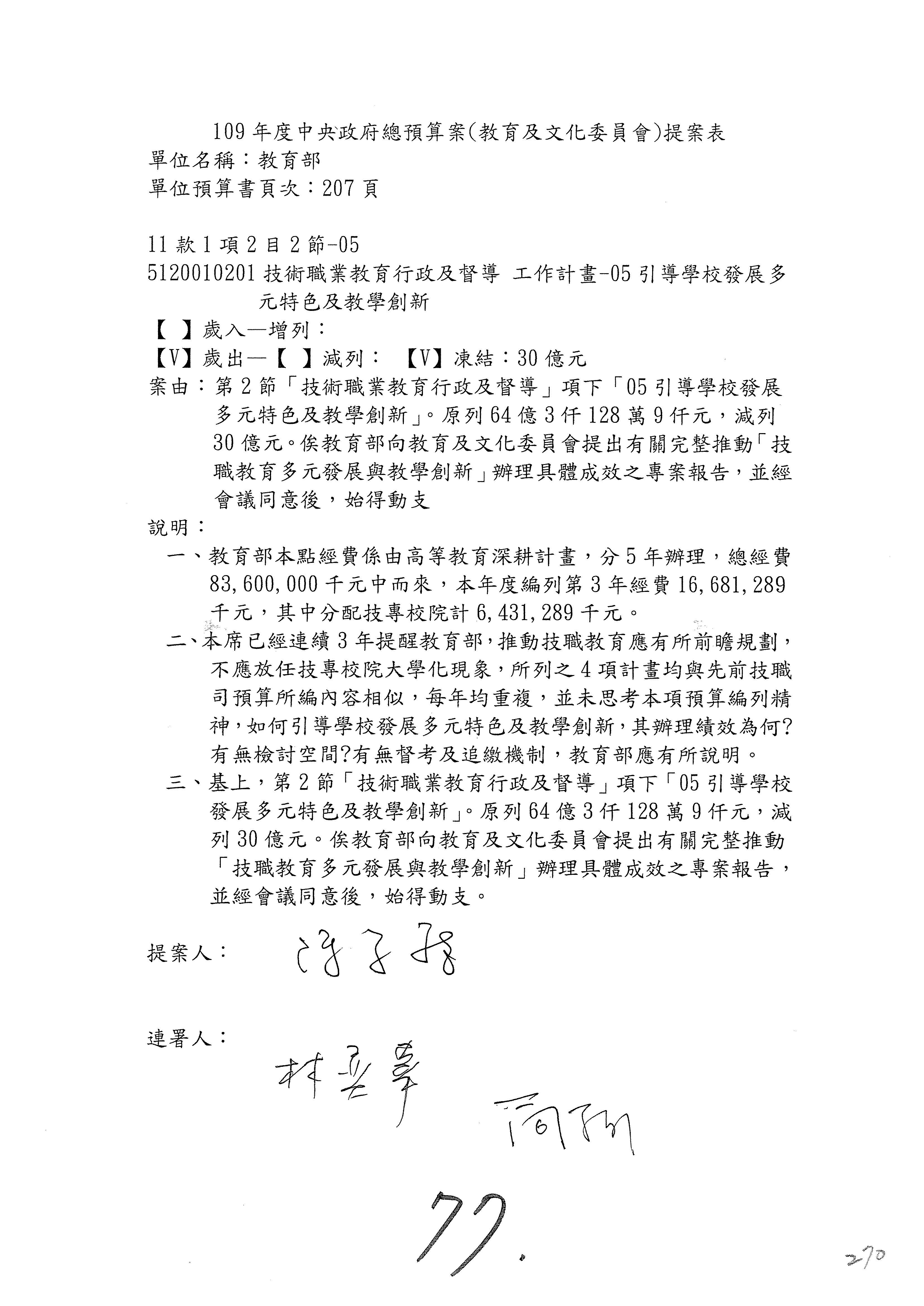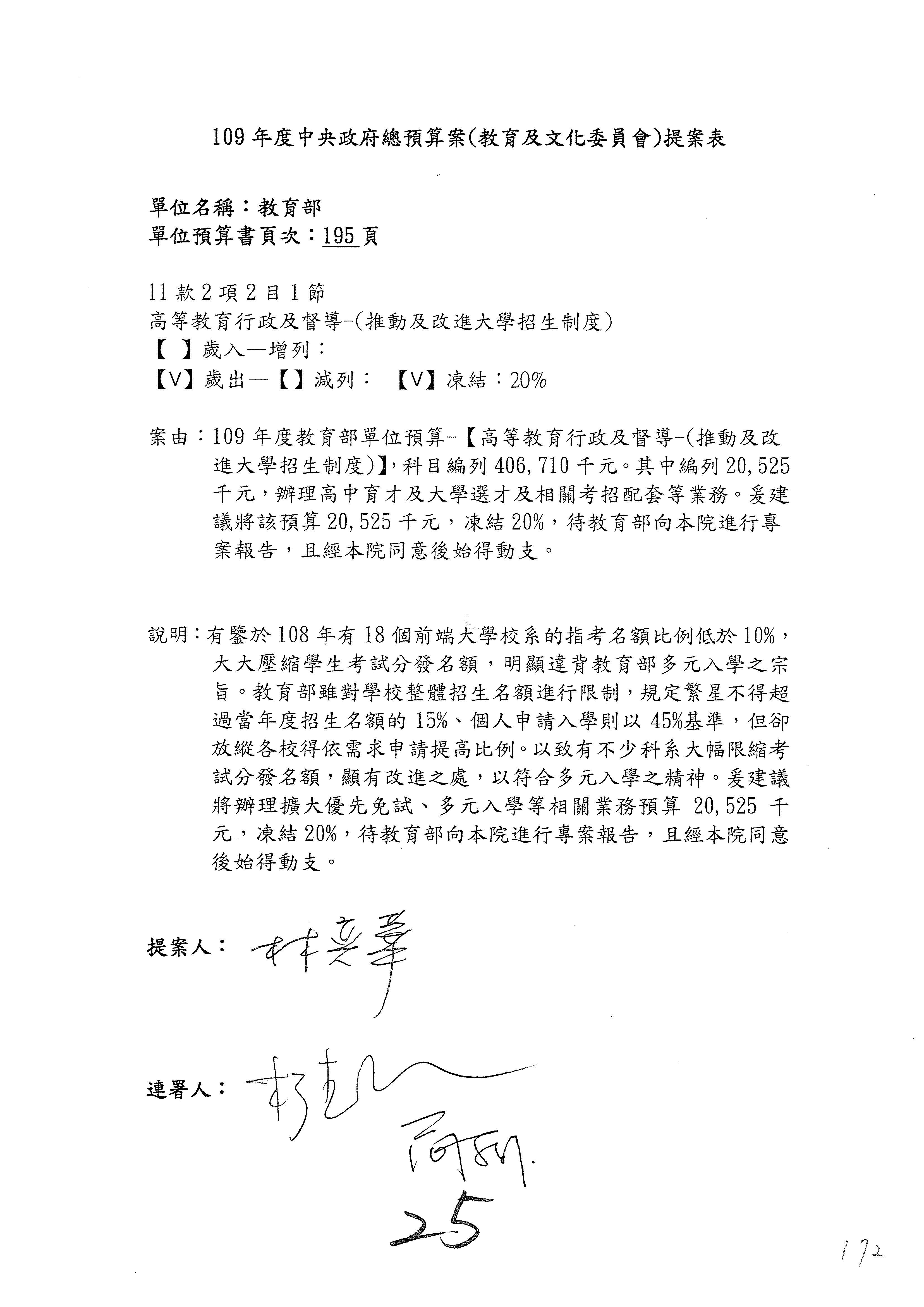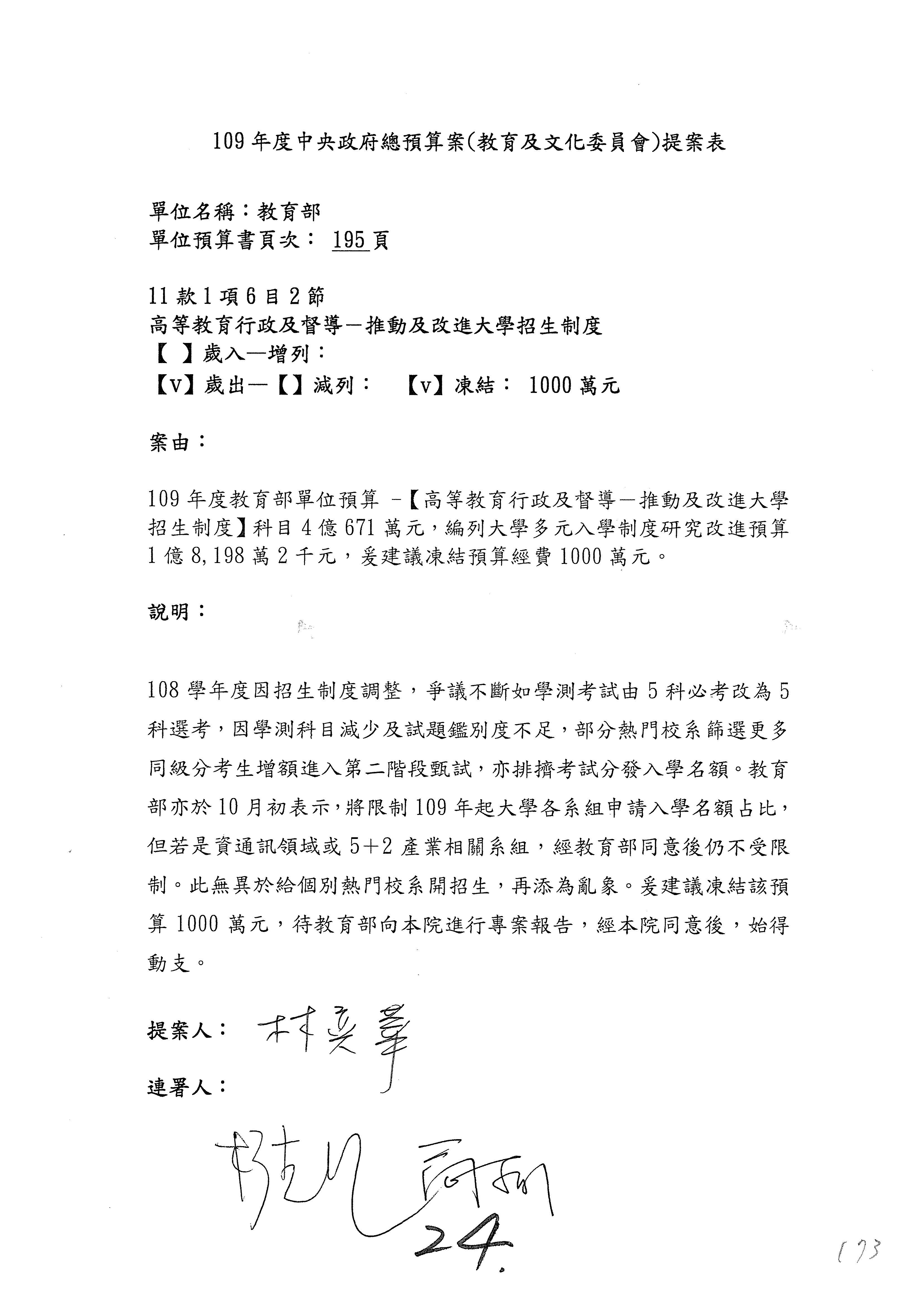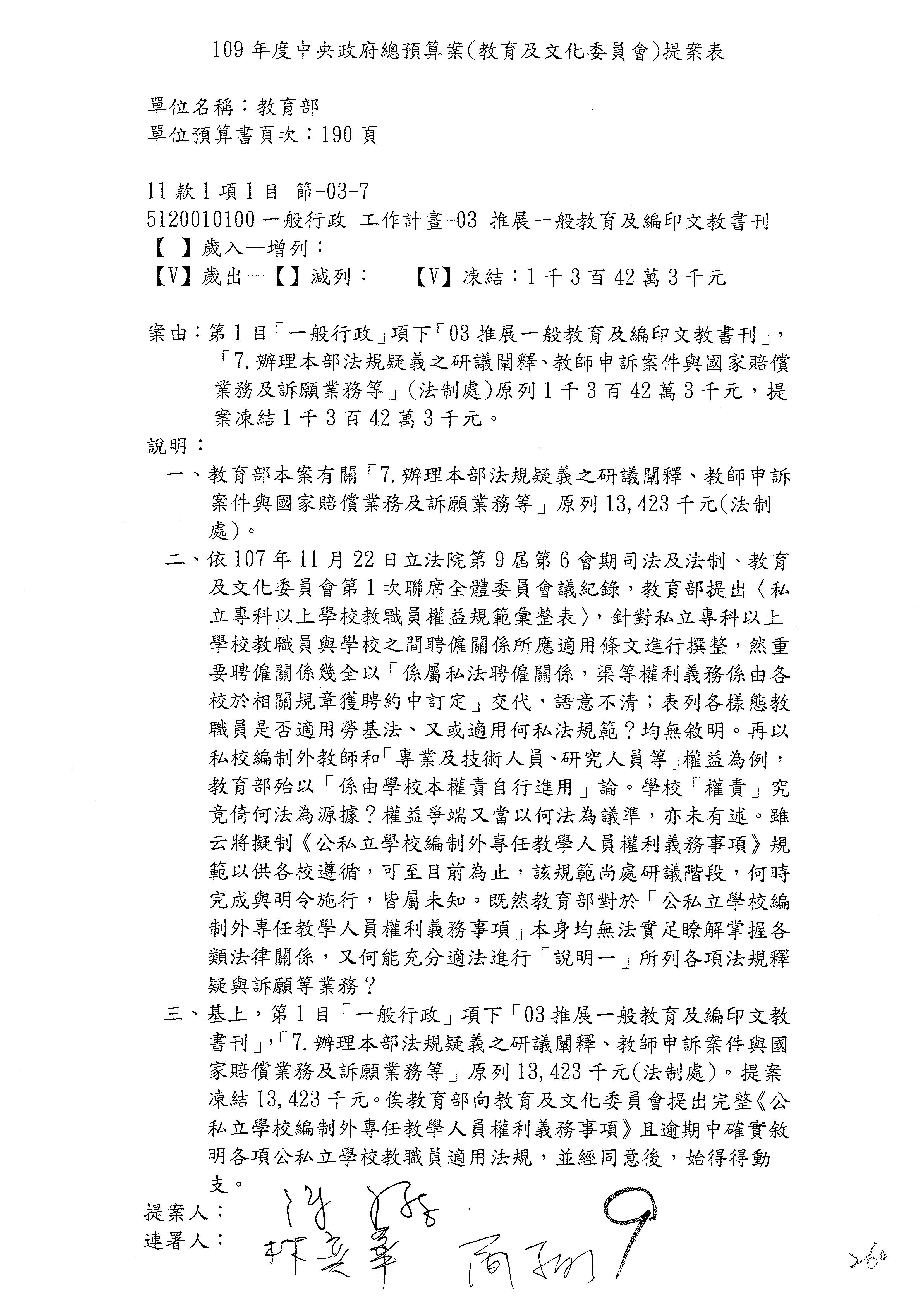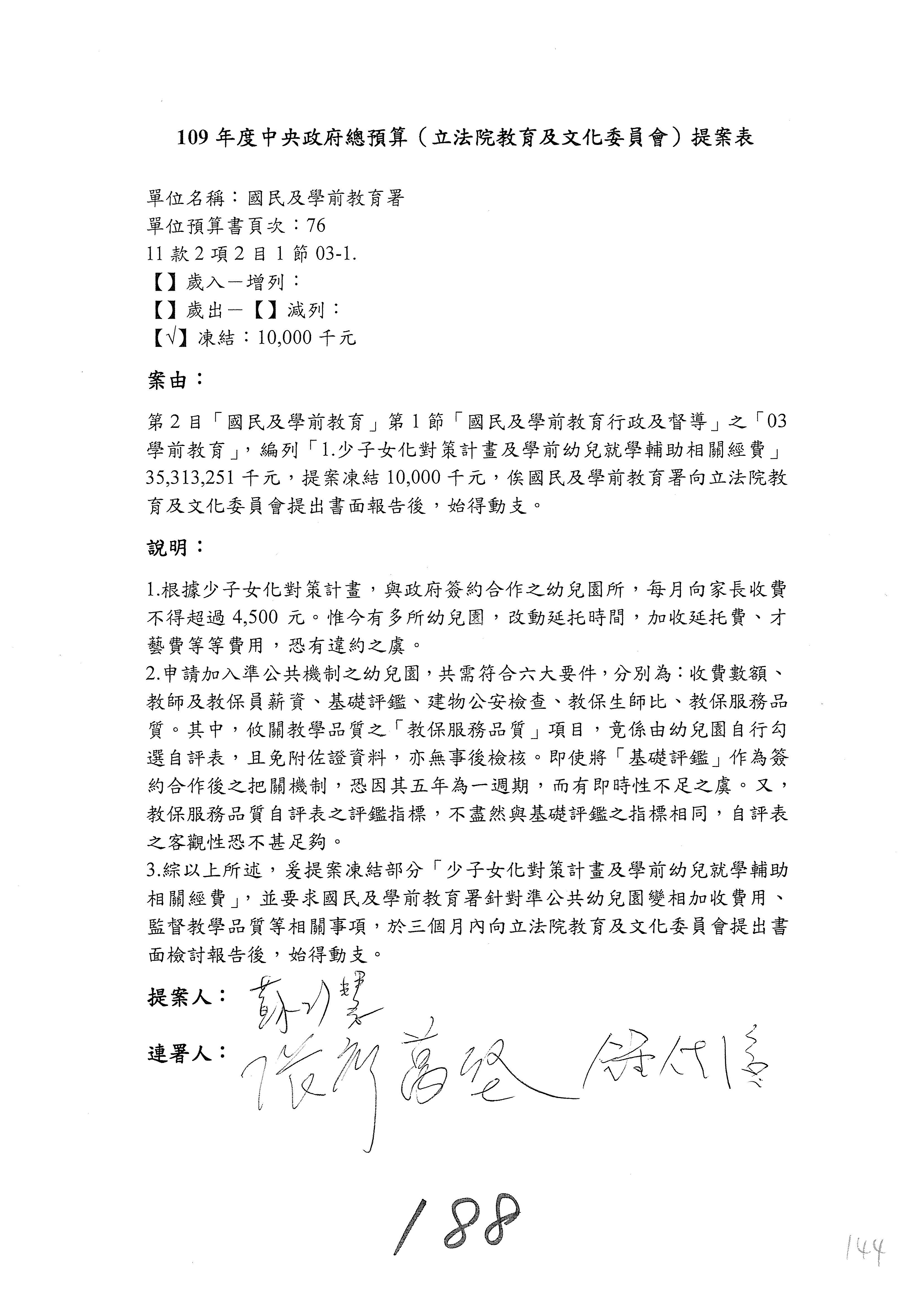 主席:好,最後一句修改為「爰提案要求教育部於三個月內向本院教委會提出書面報告」,修正通過。