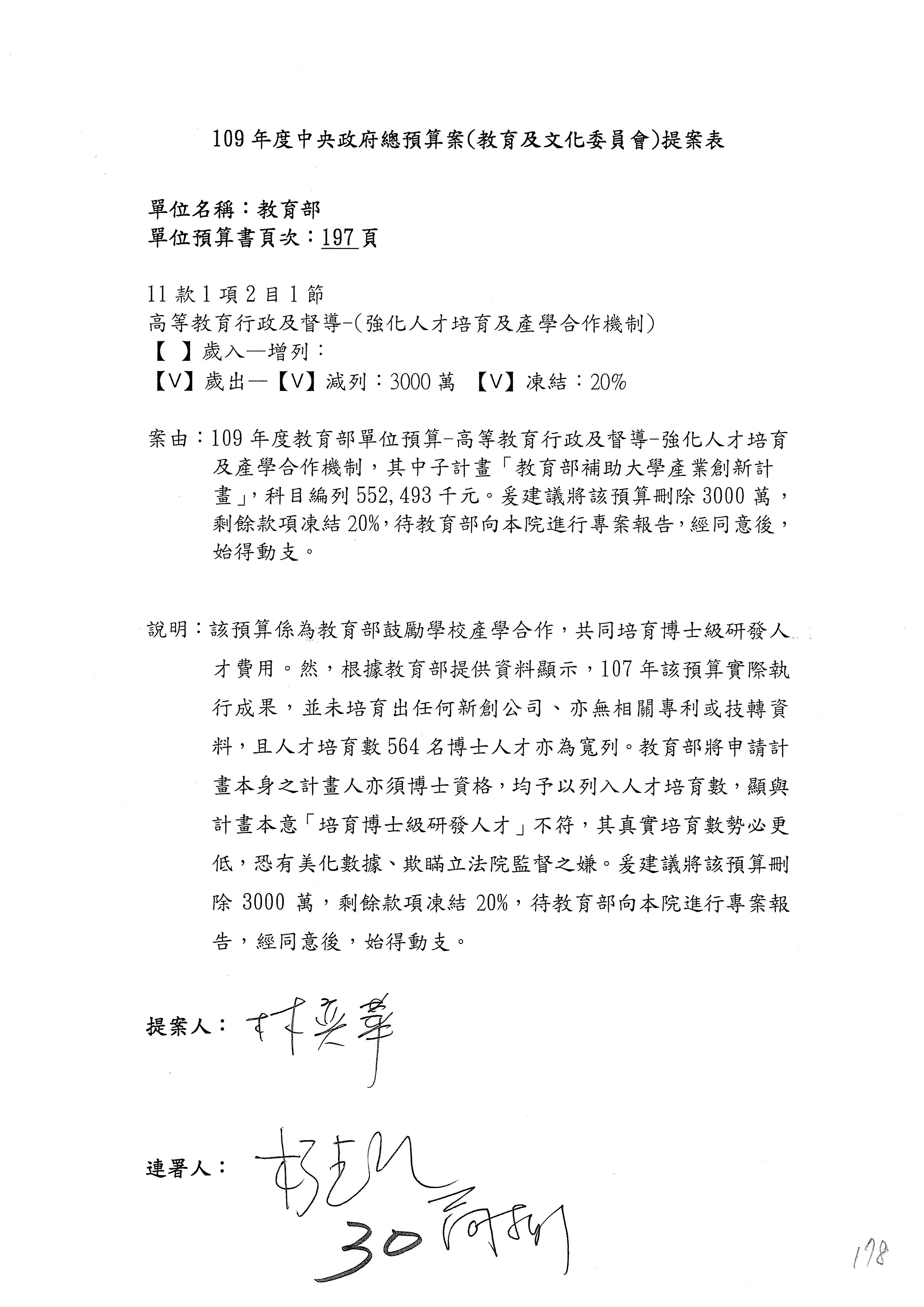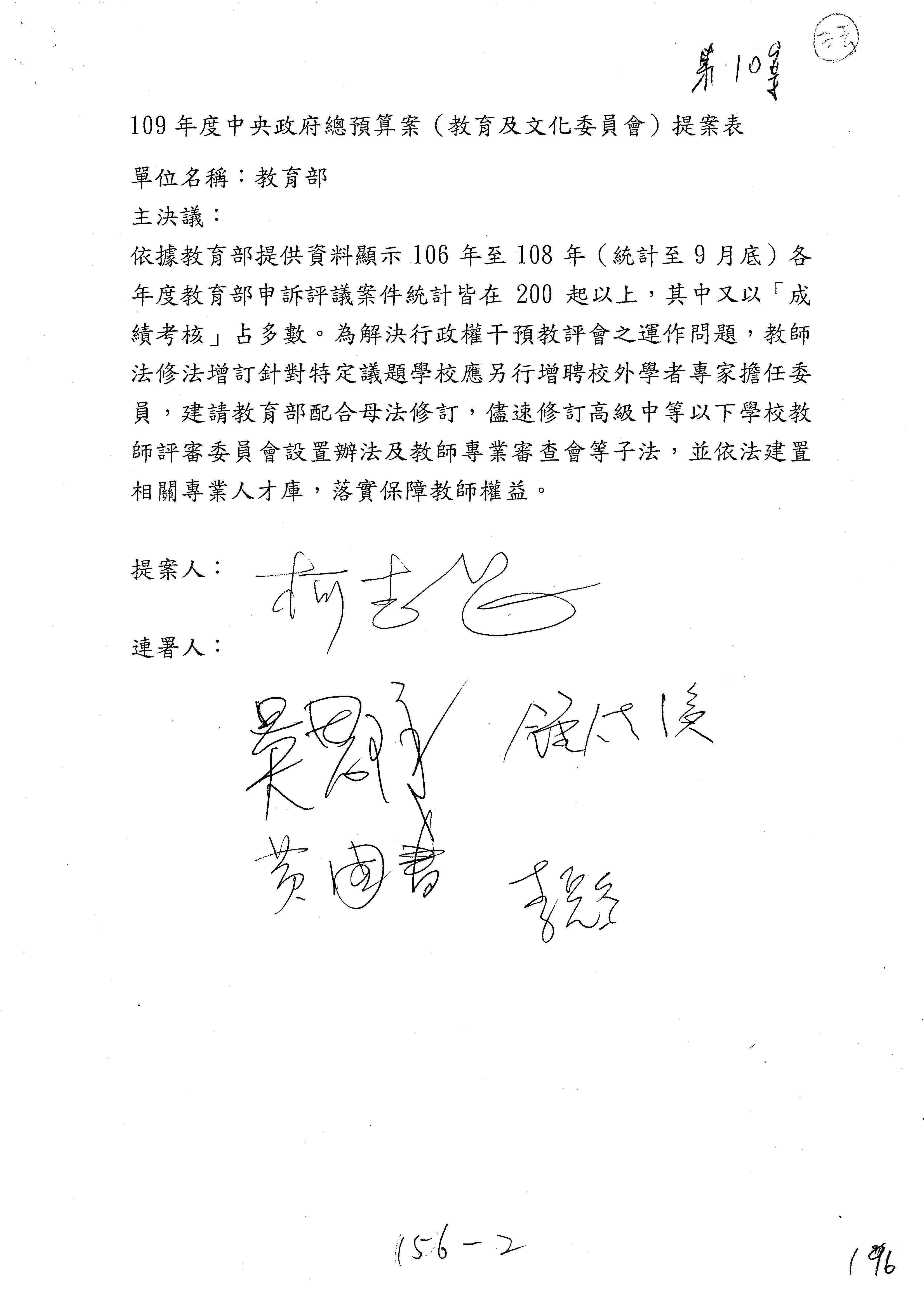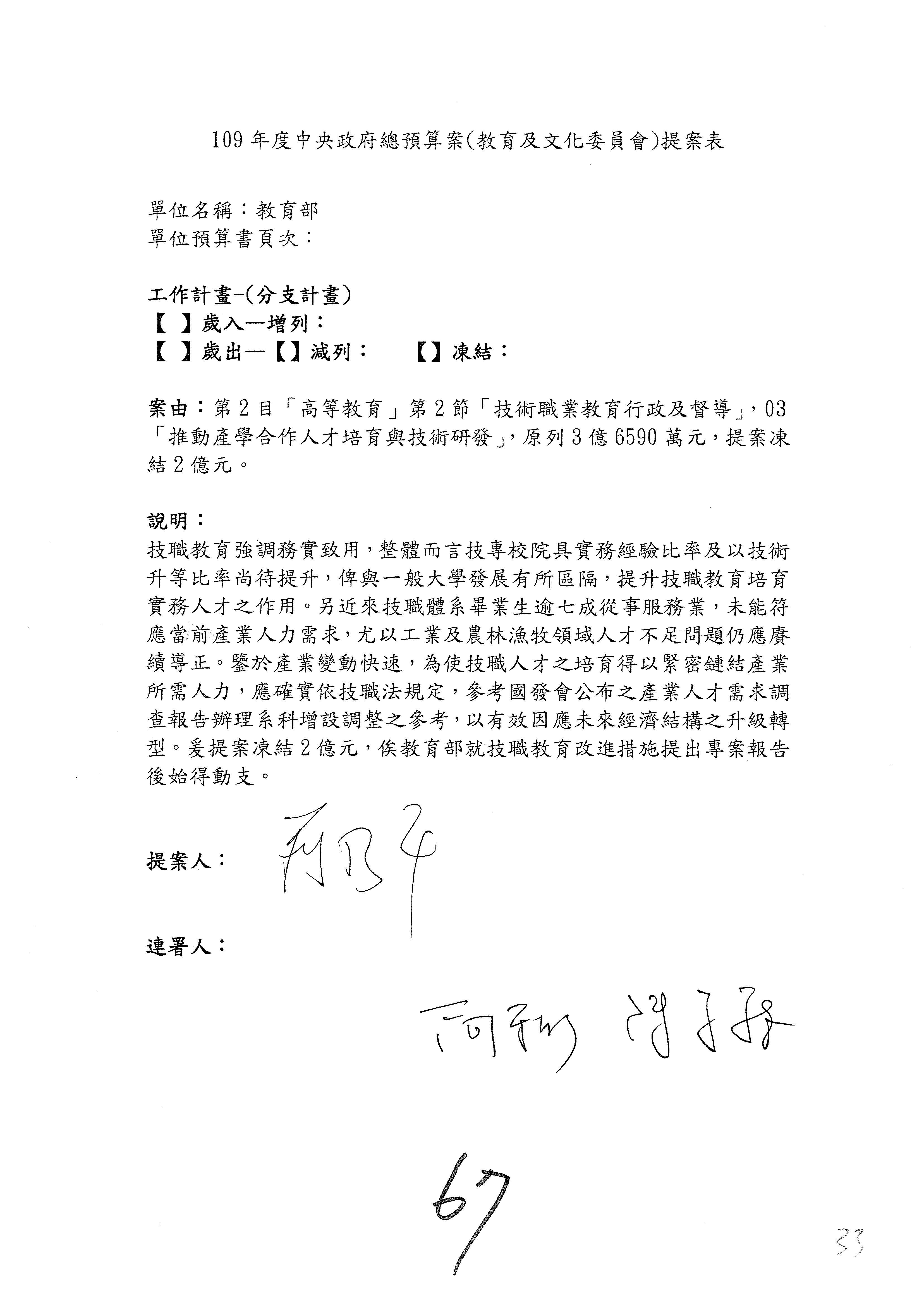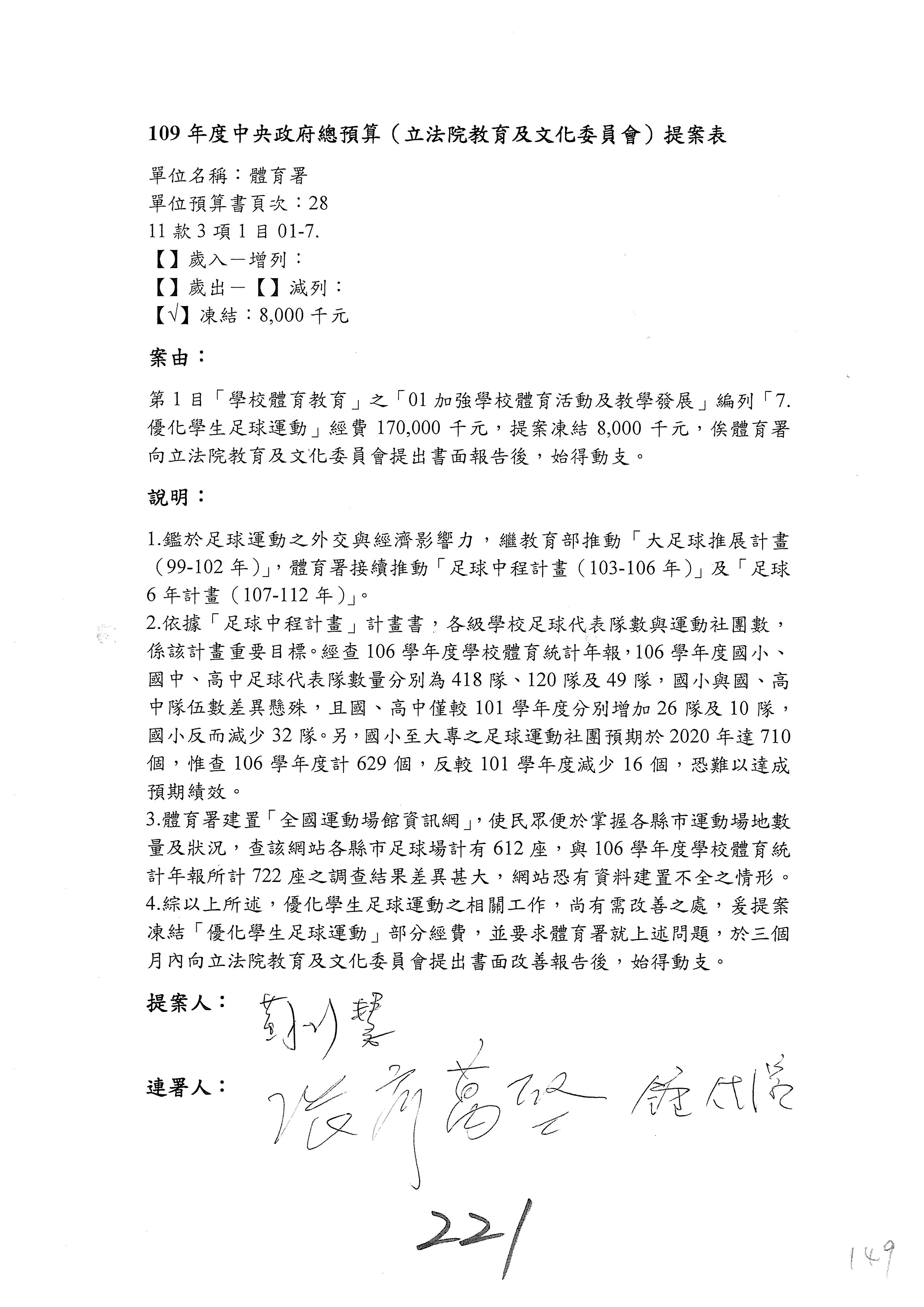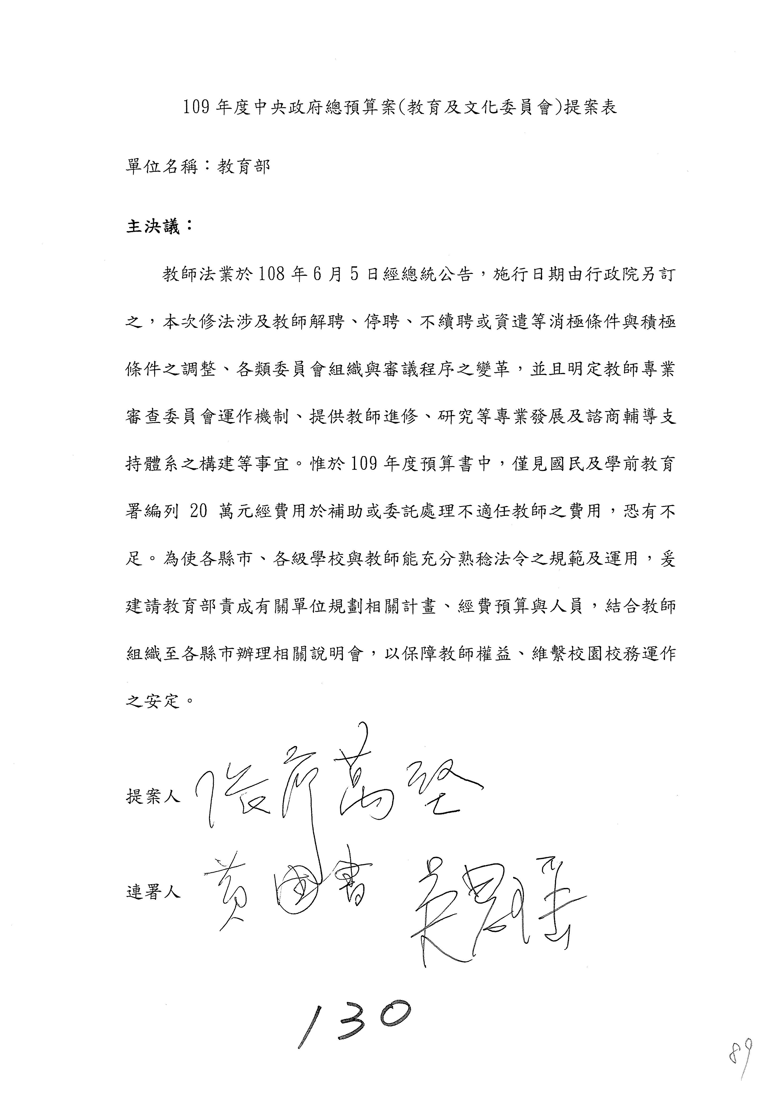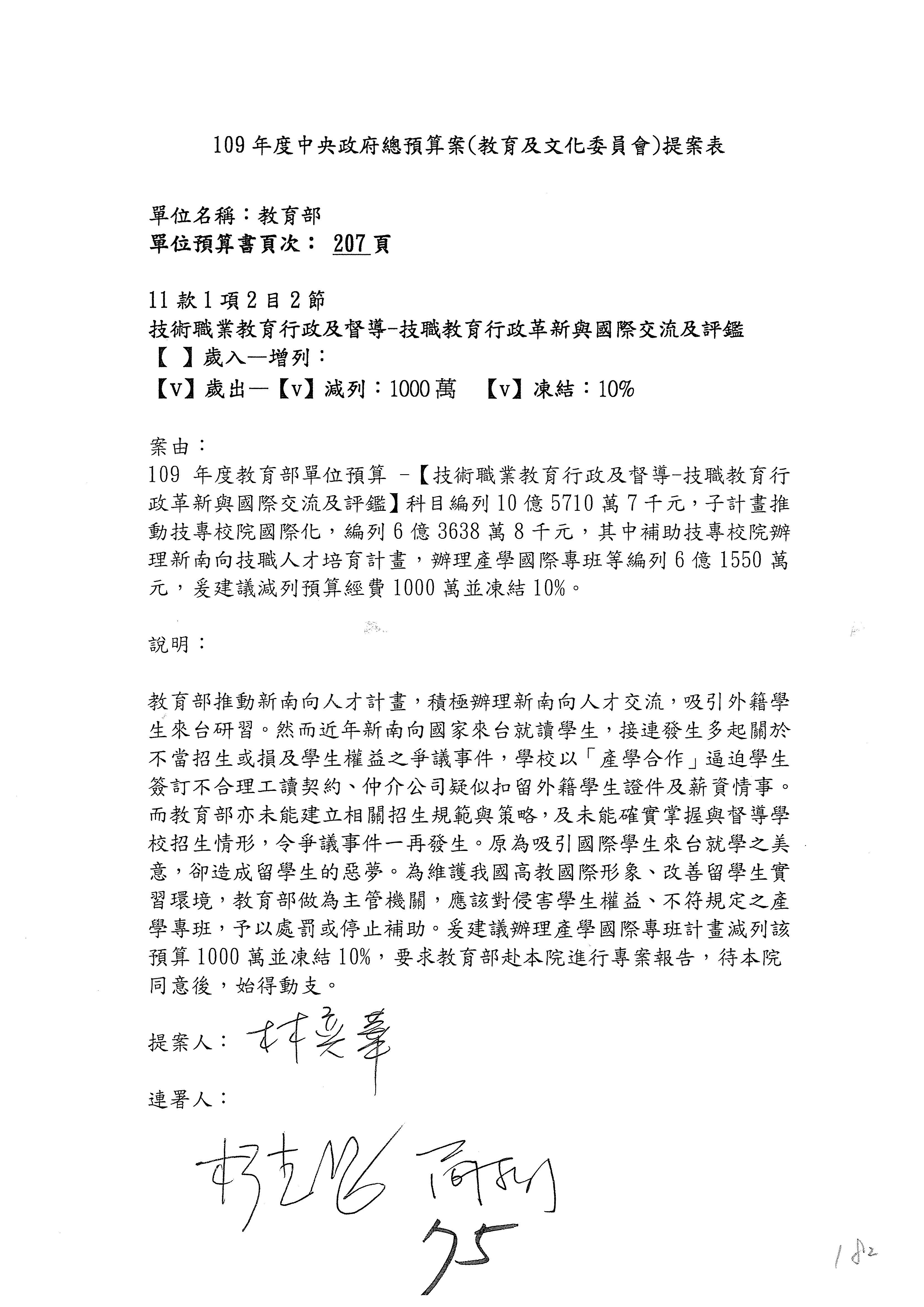 主席:好,最後一句修改為「爰提案要求教育部於三個月內向本院教委會提出書面報告」,修正通過。