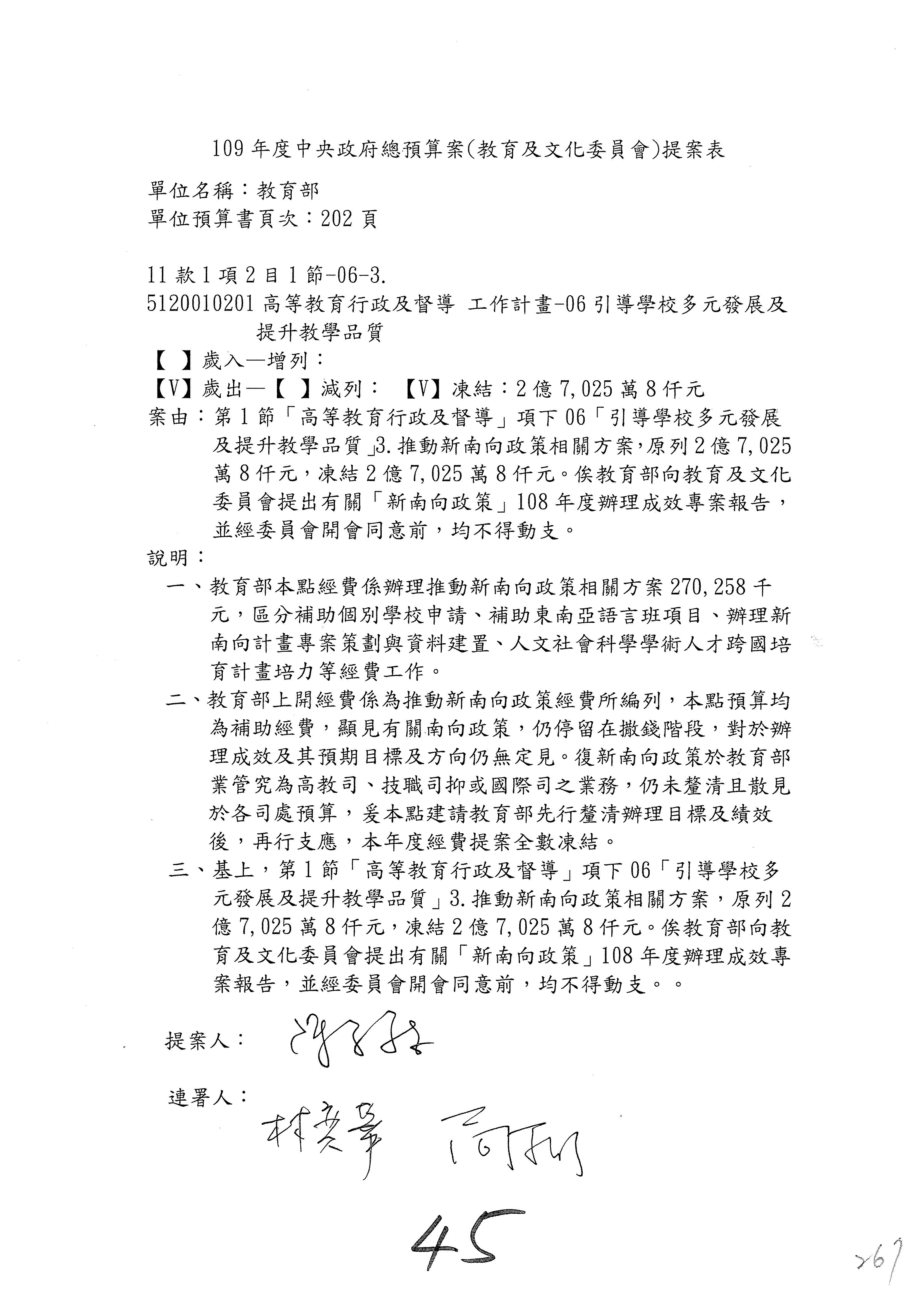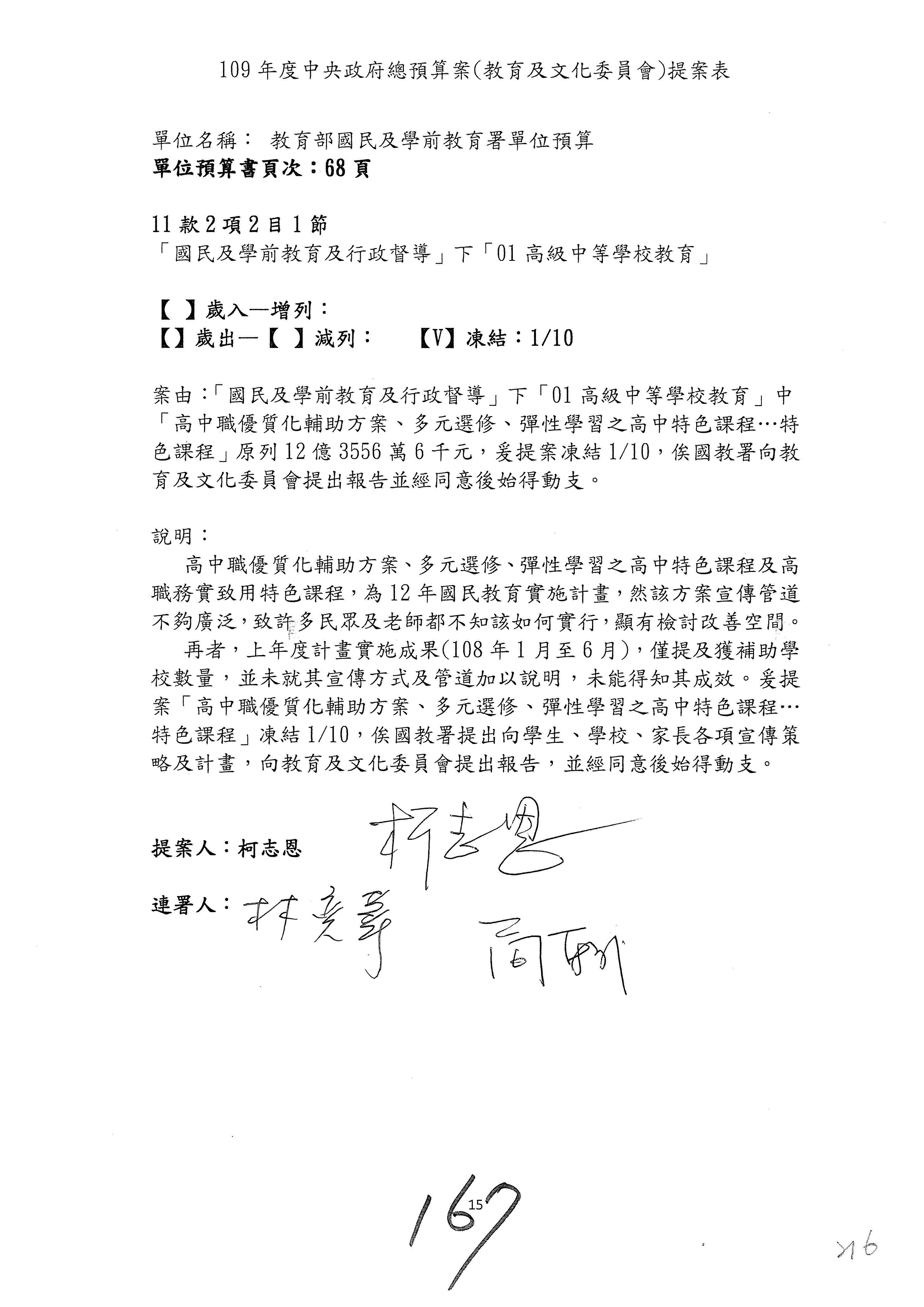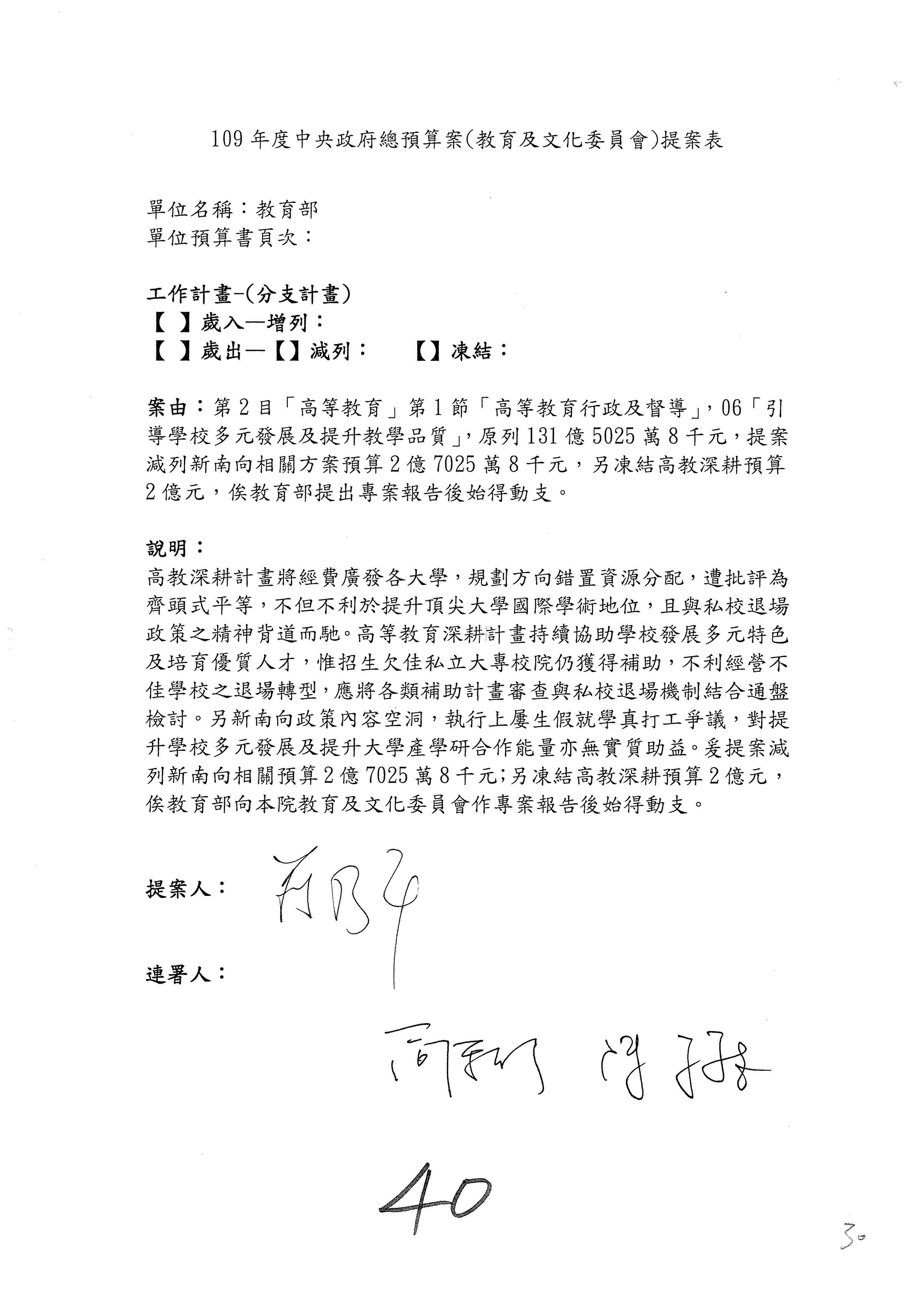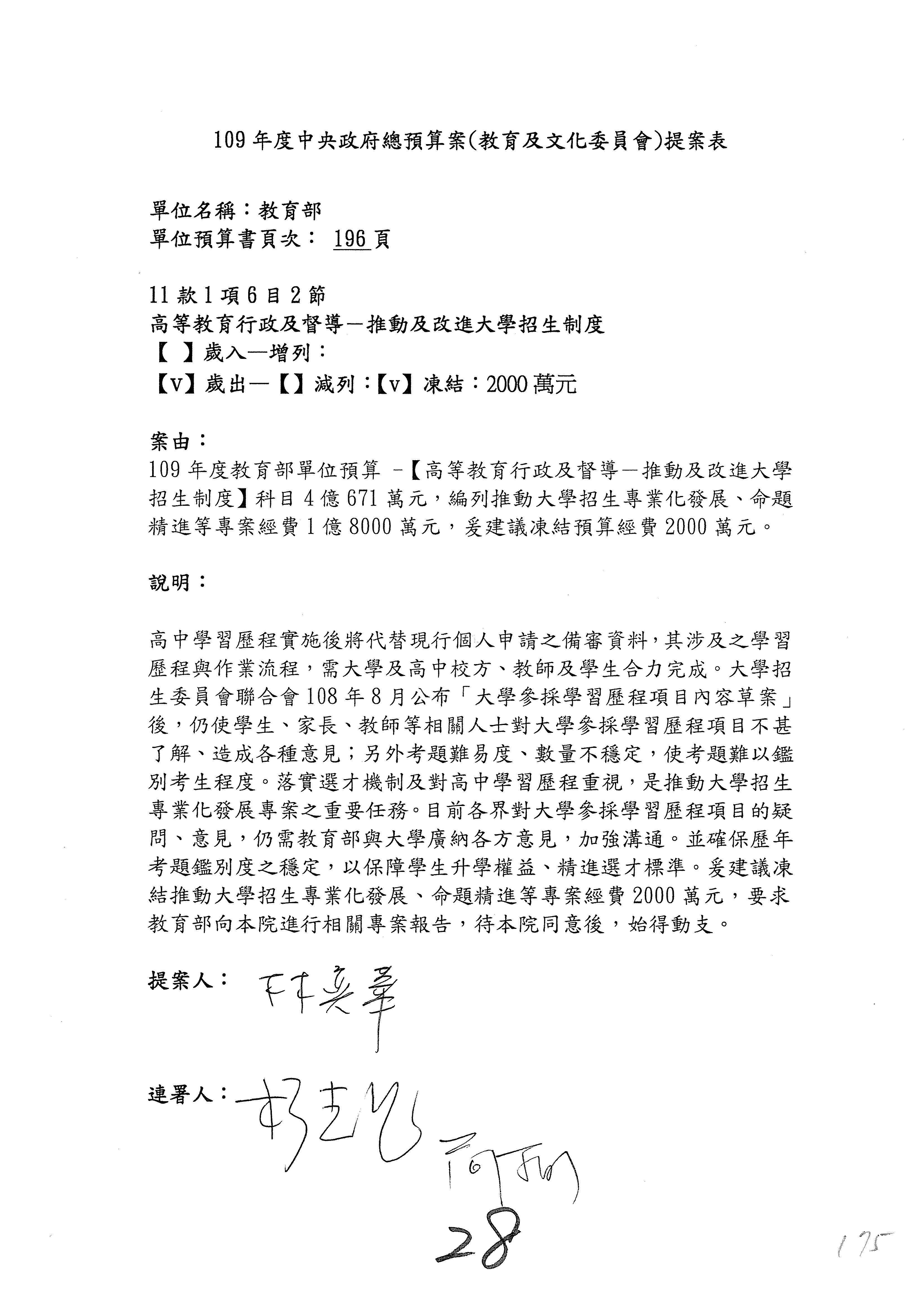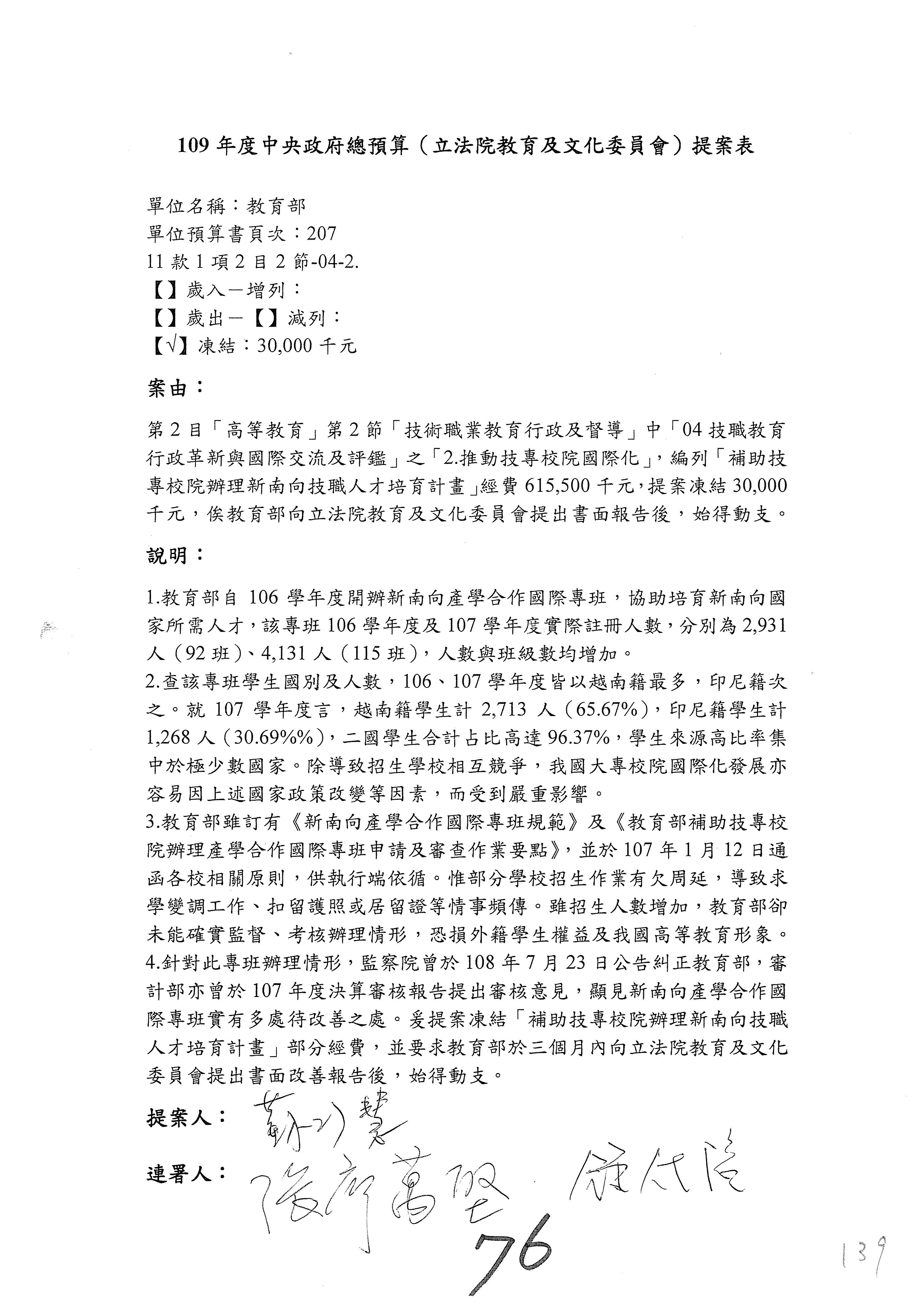 主席:好,最後一句修改為「爰提案要求教育部於三個月內向本院教委會提出書面報告」,修正通過。
