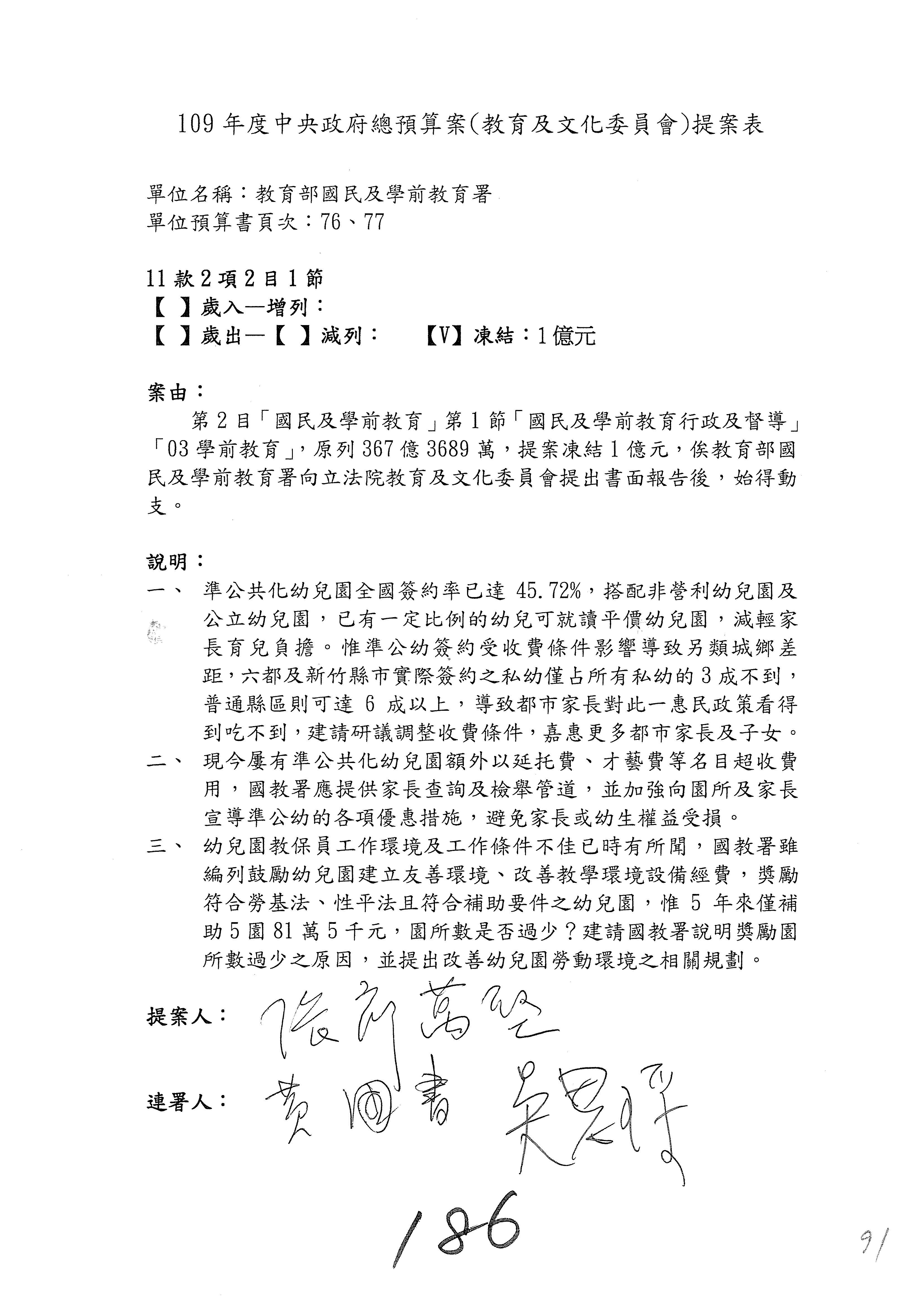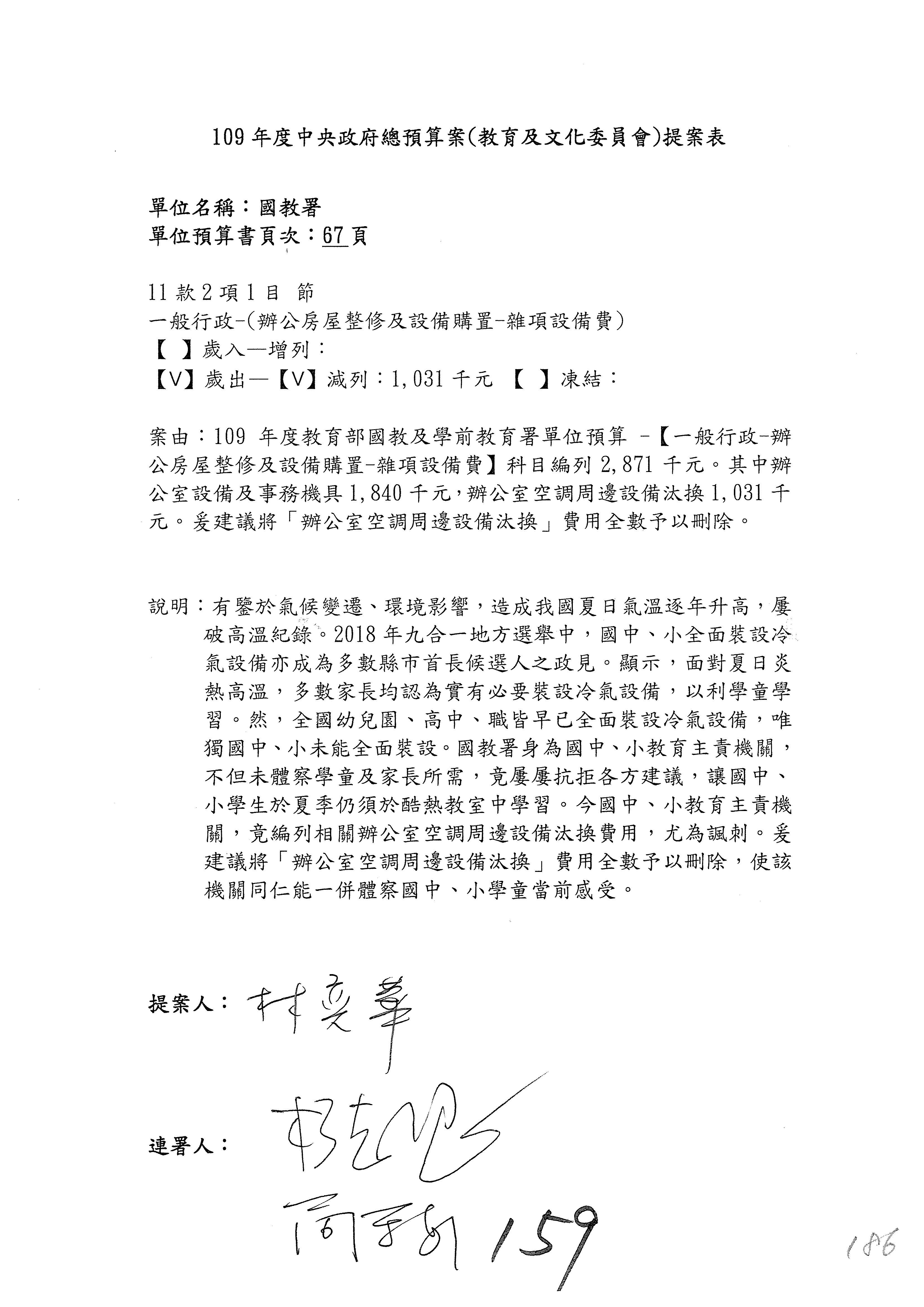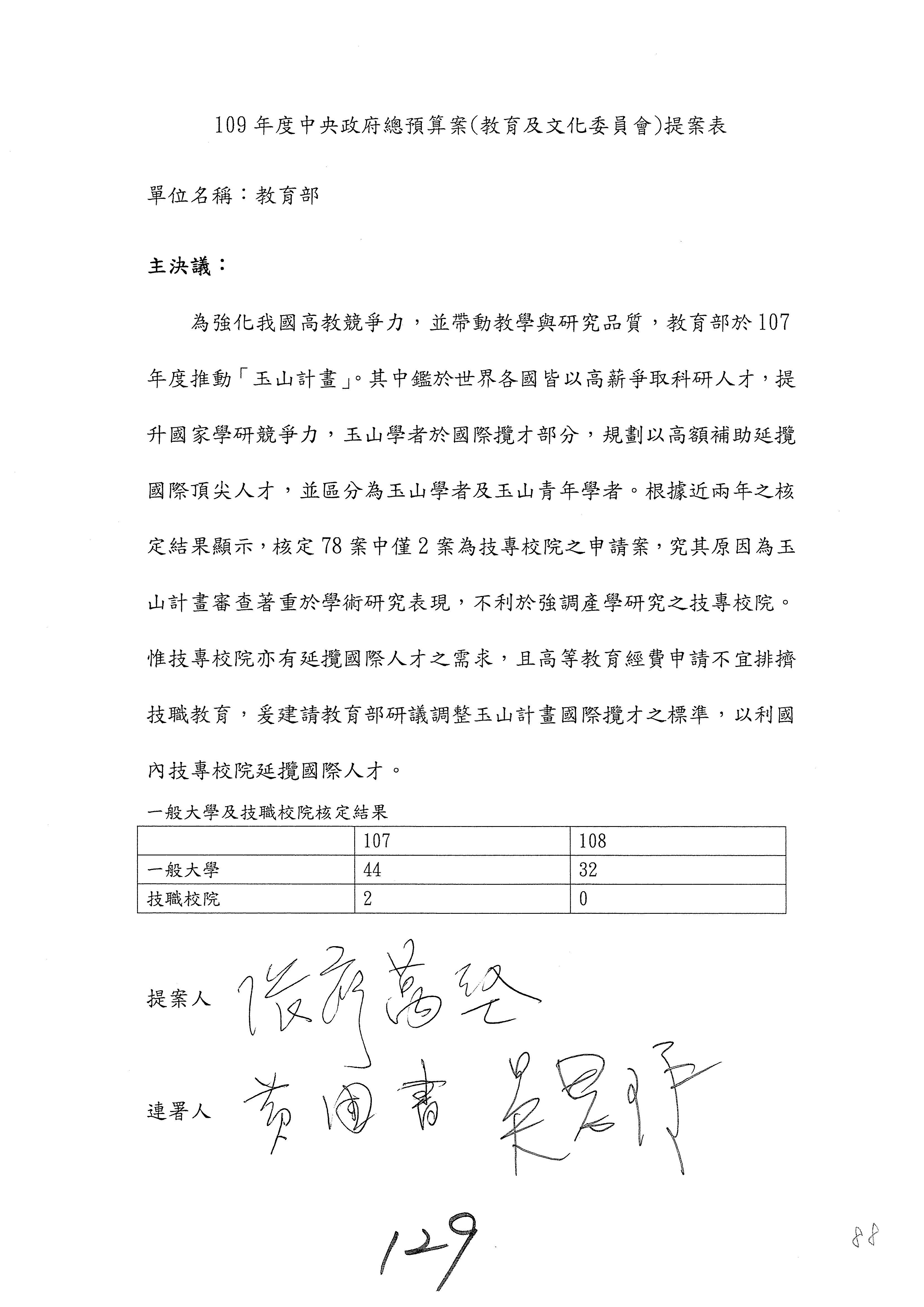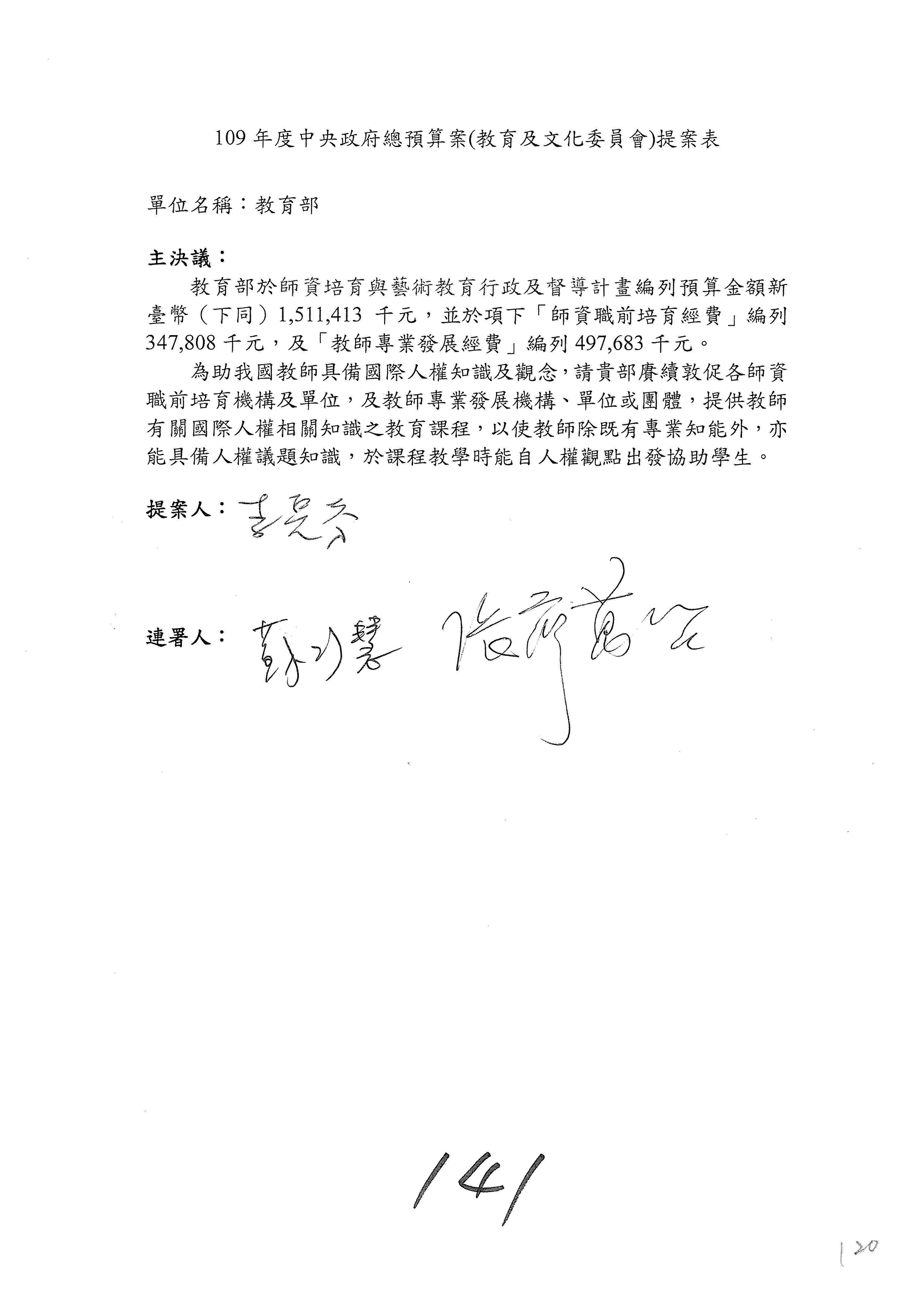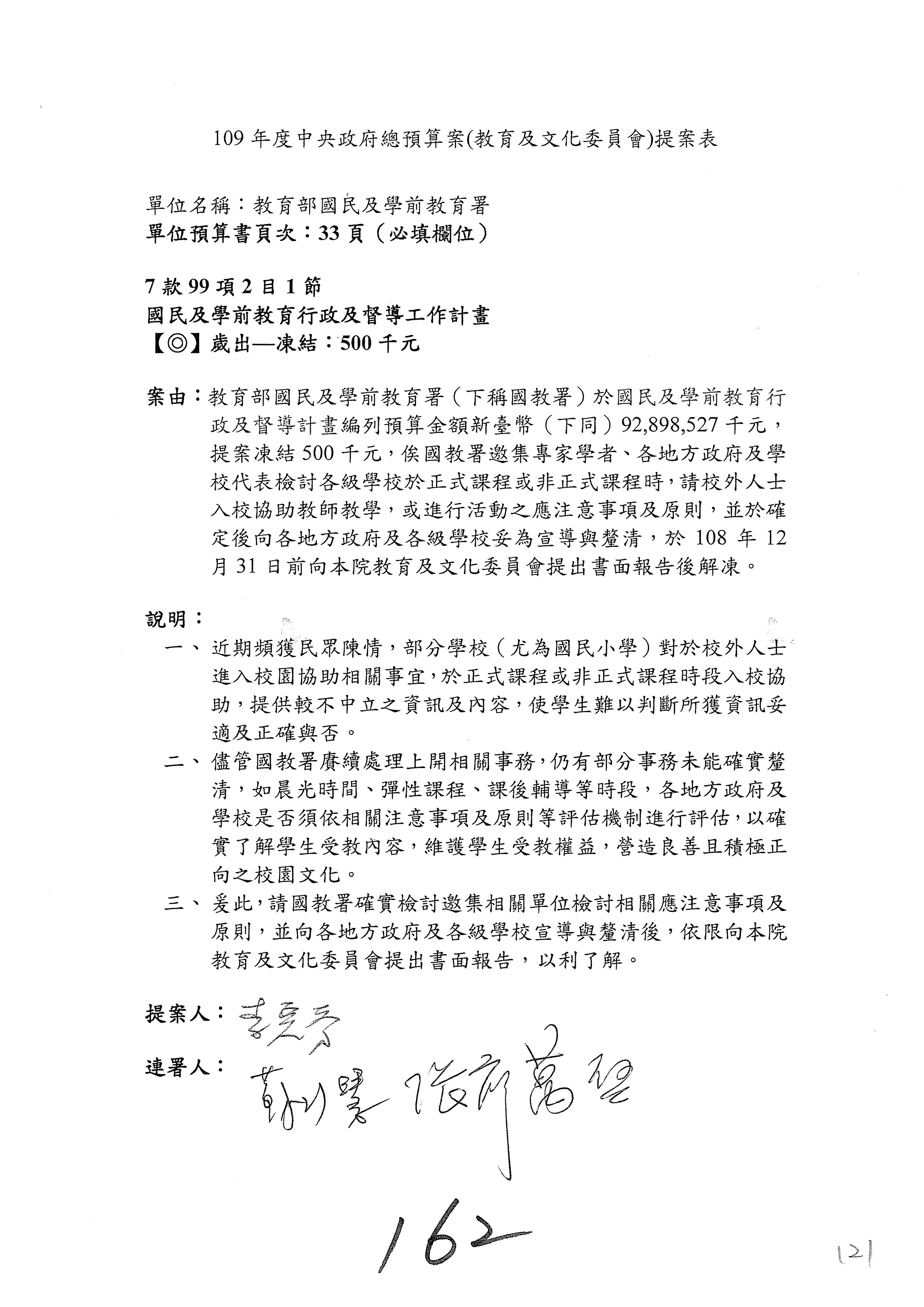 主席:好,最後一句修改為「爰提案要求教育部於三個月內向本院教委會提出書面報告」,修正通過。