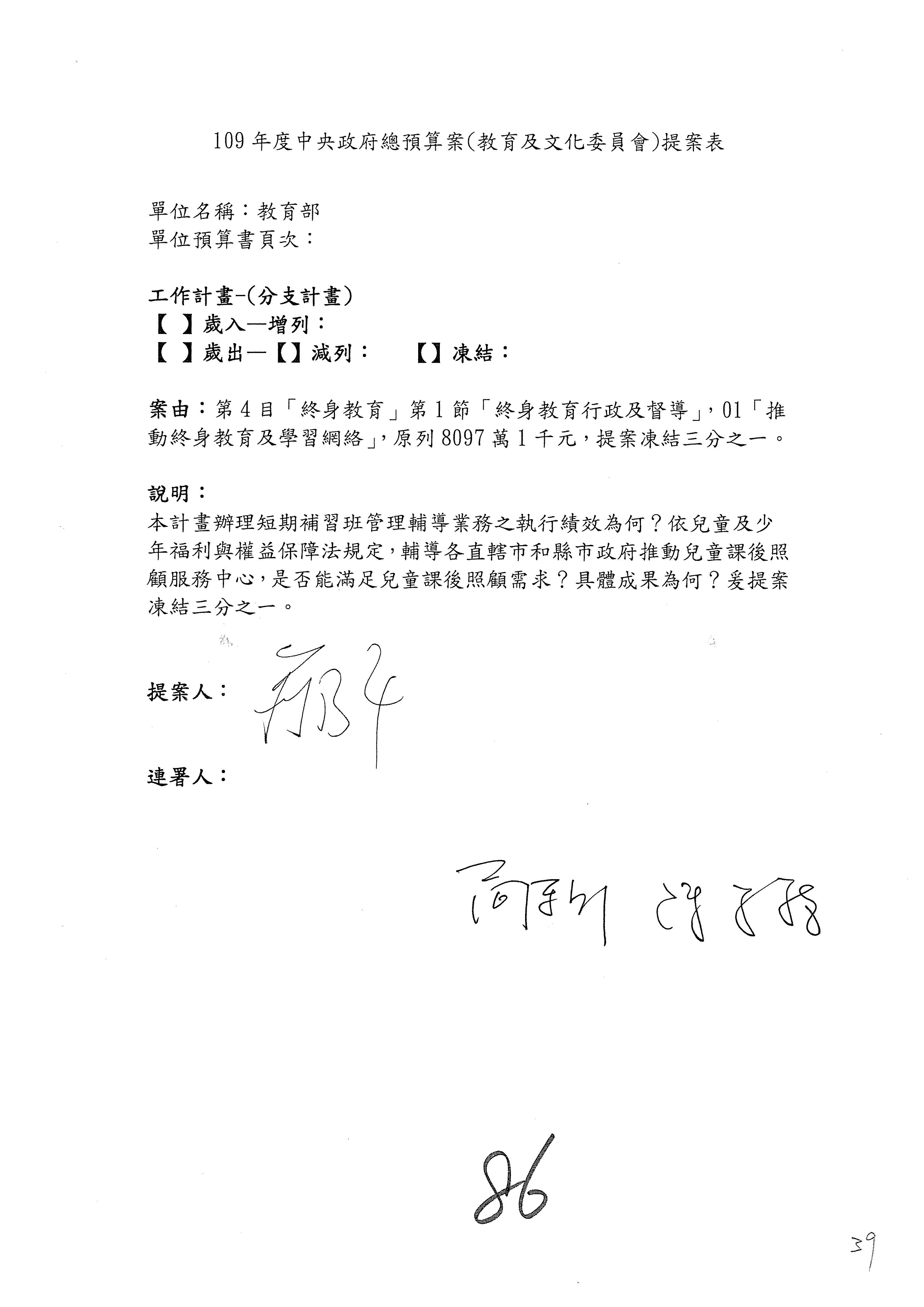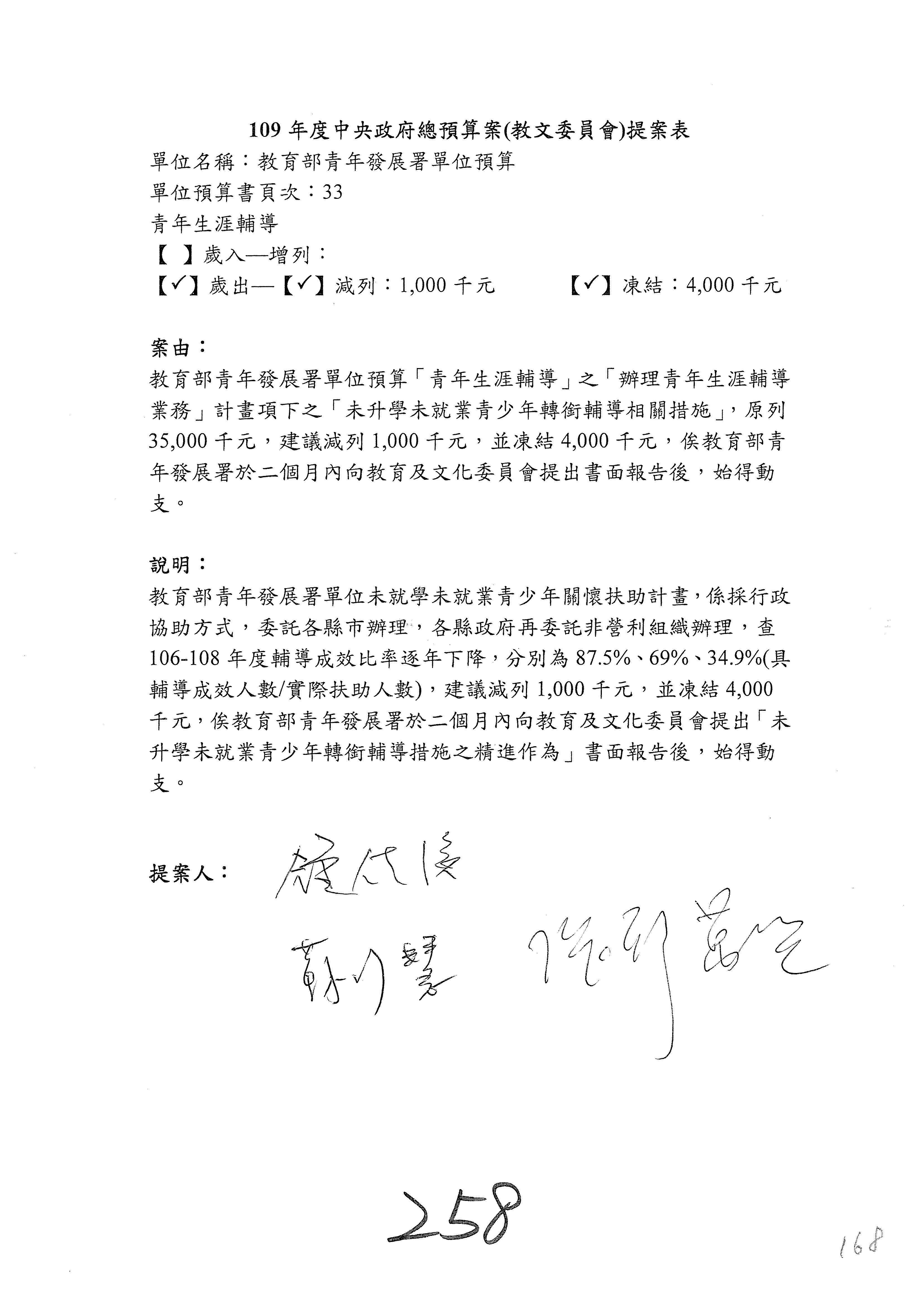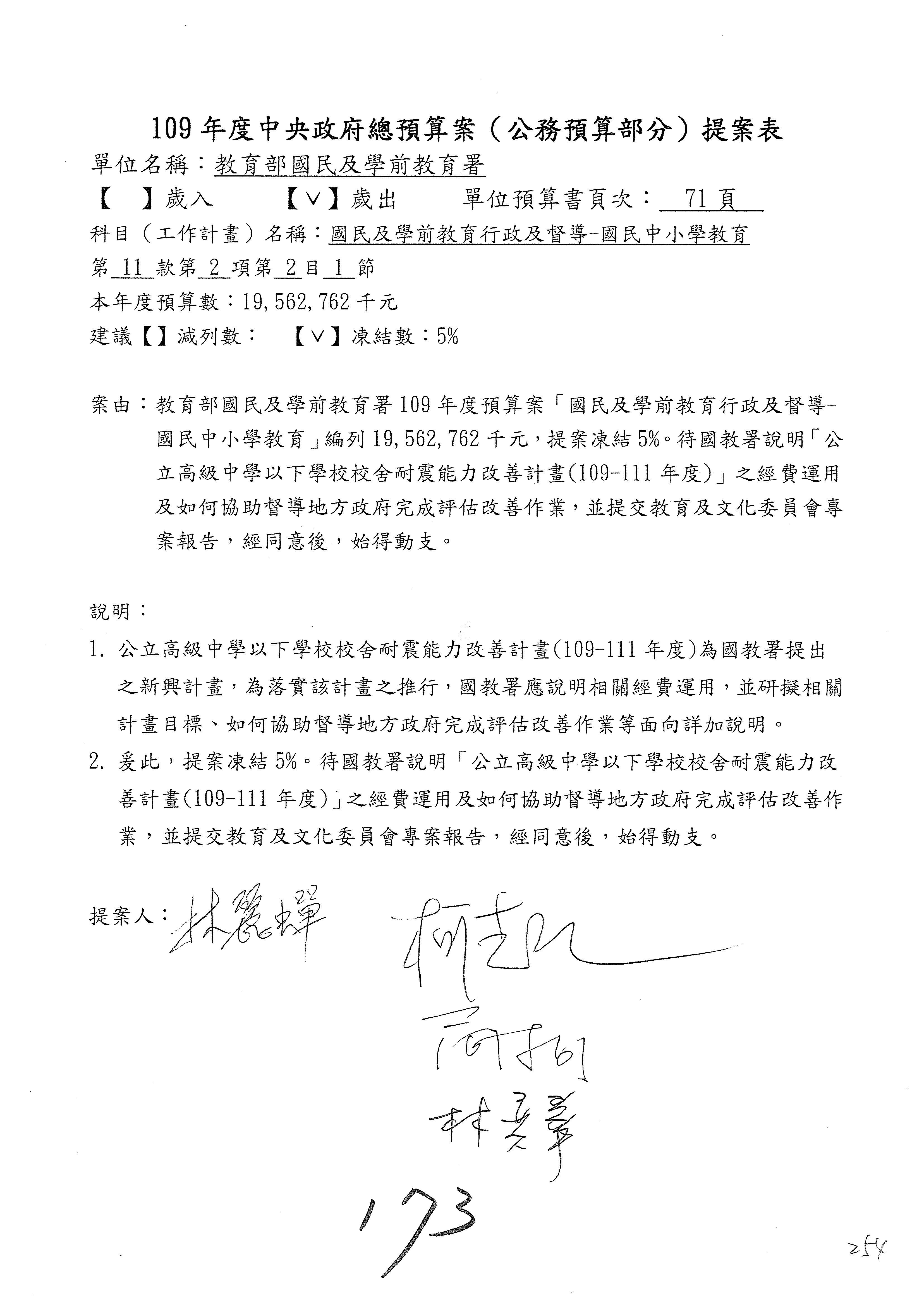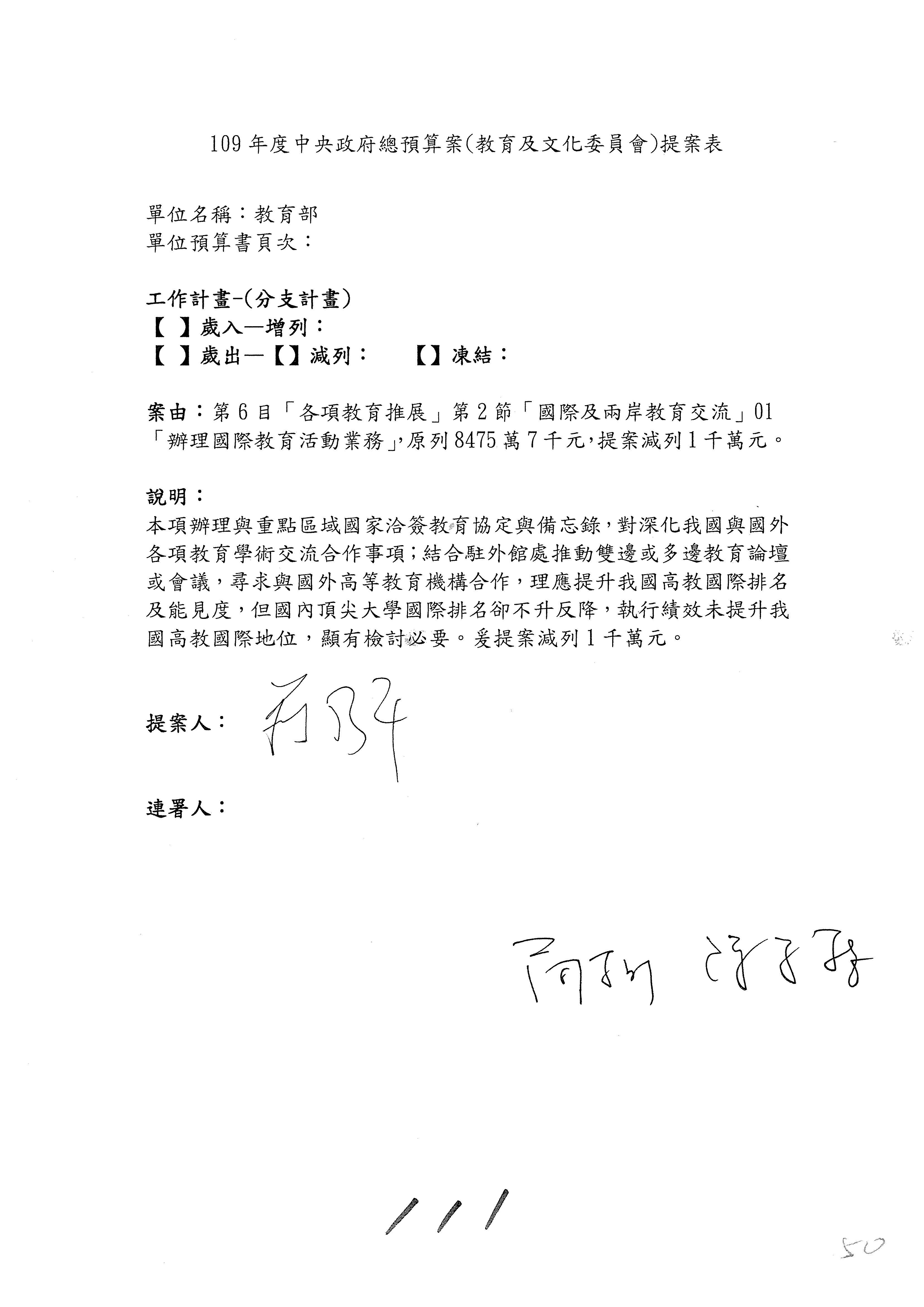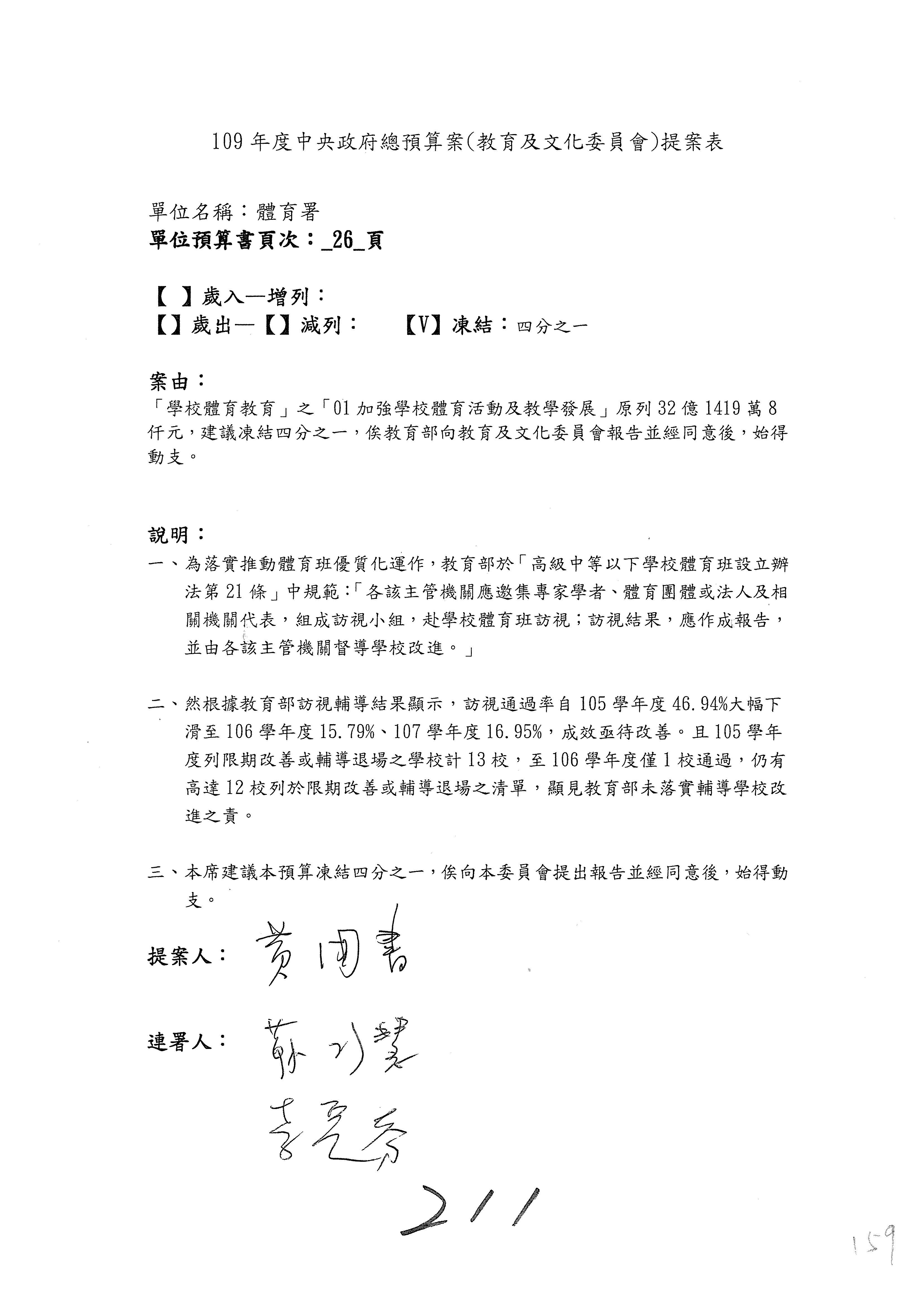 主席:好,最後一句修改為「爰提案要求教育部於三個月內向本院教委會提出書面報告」,修正通過。