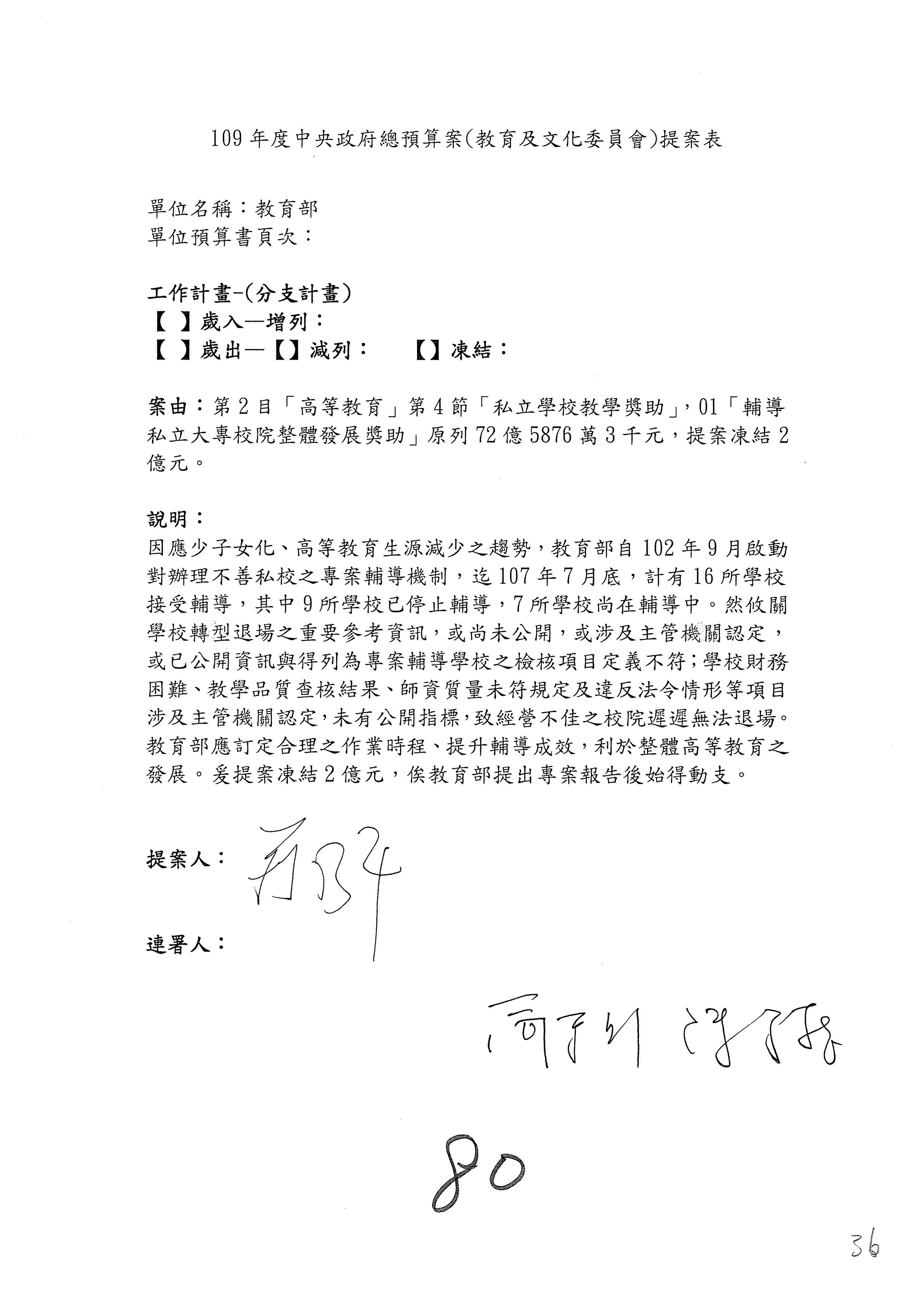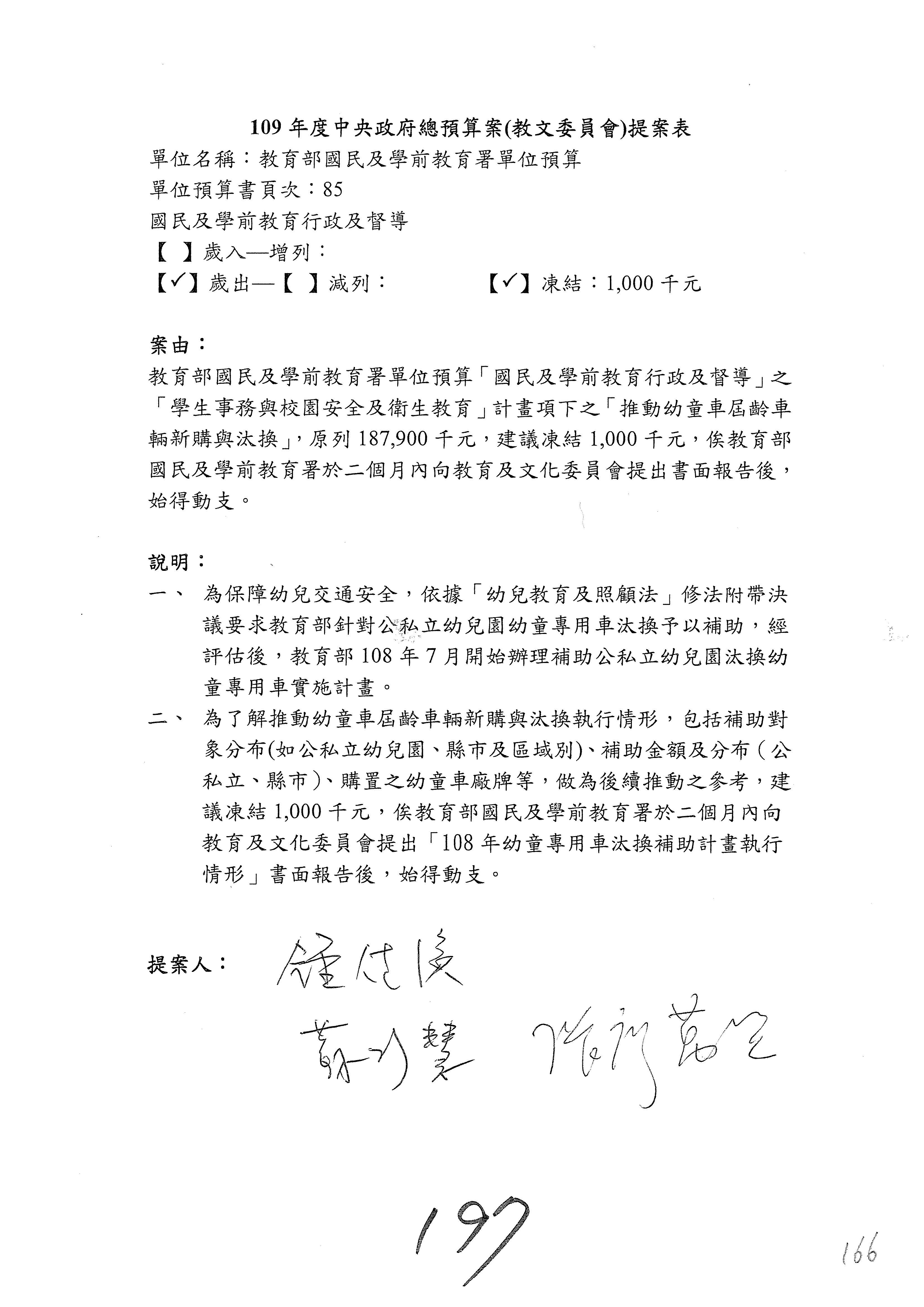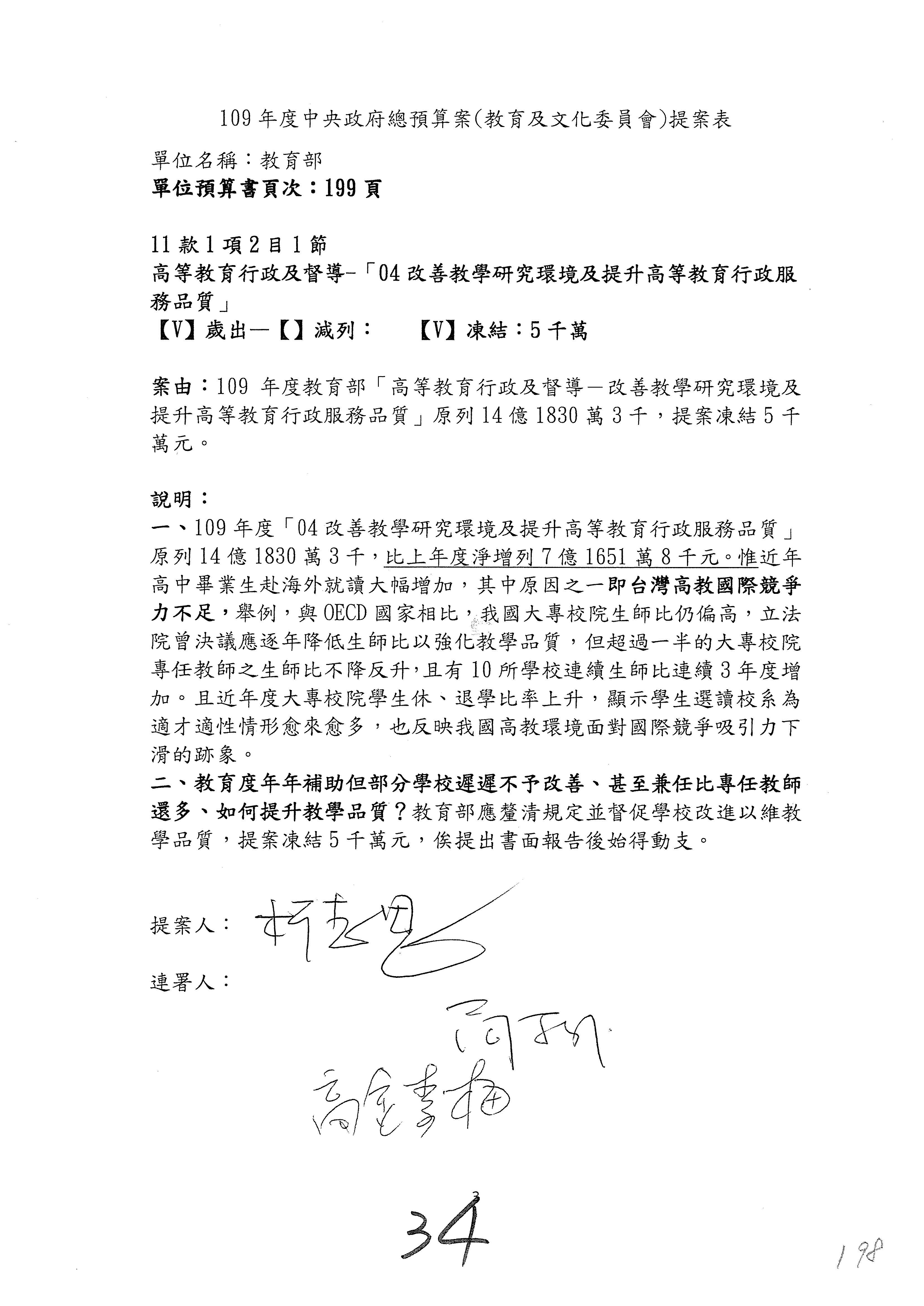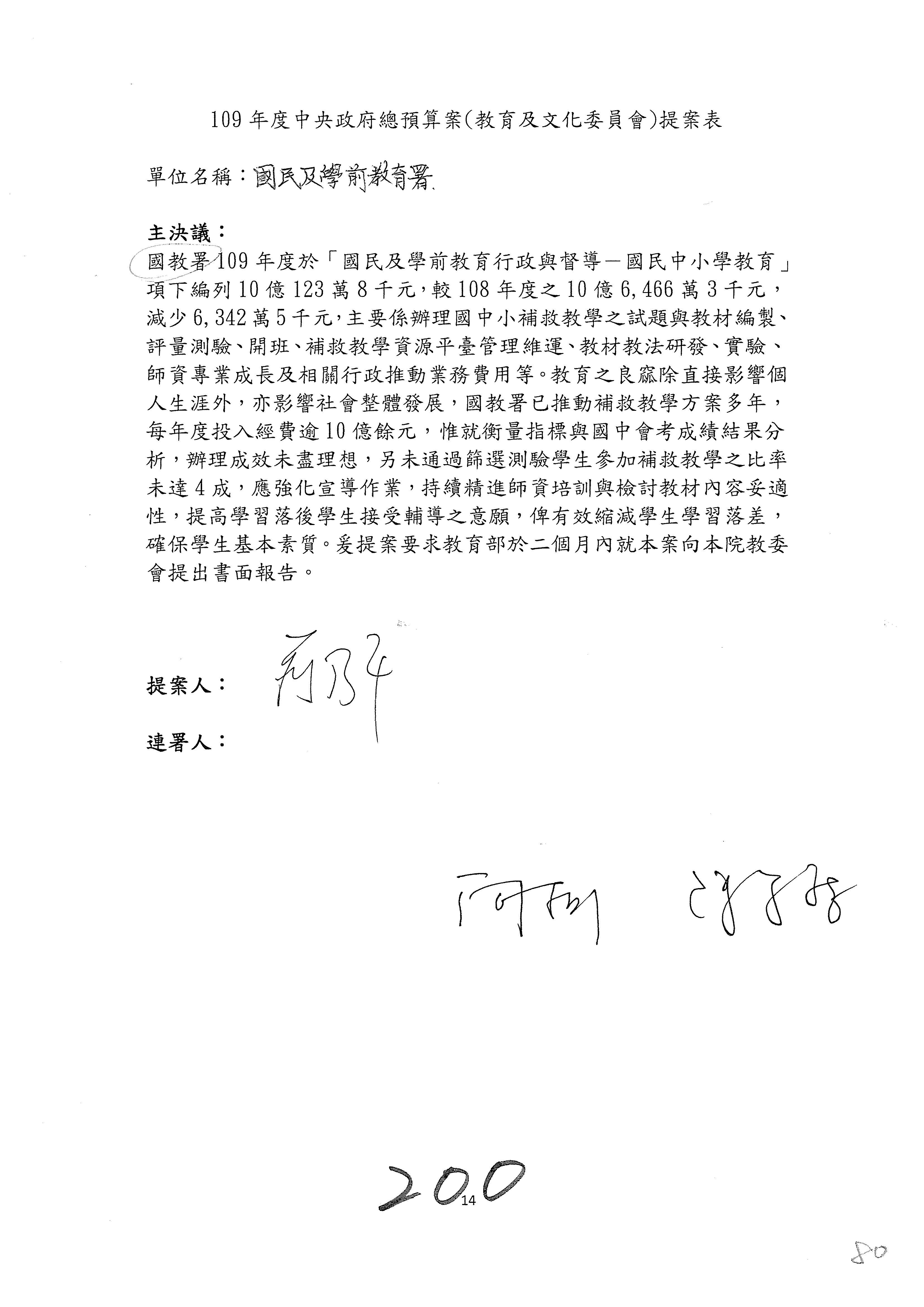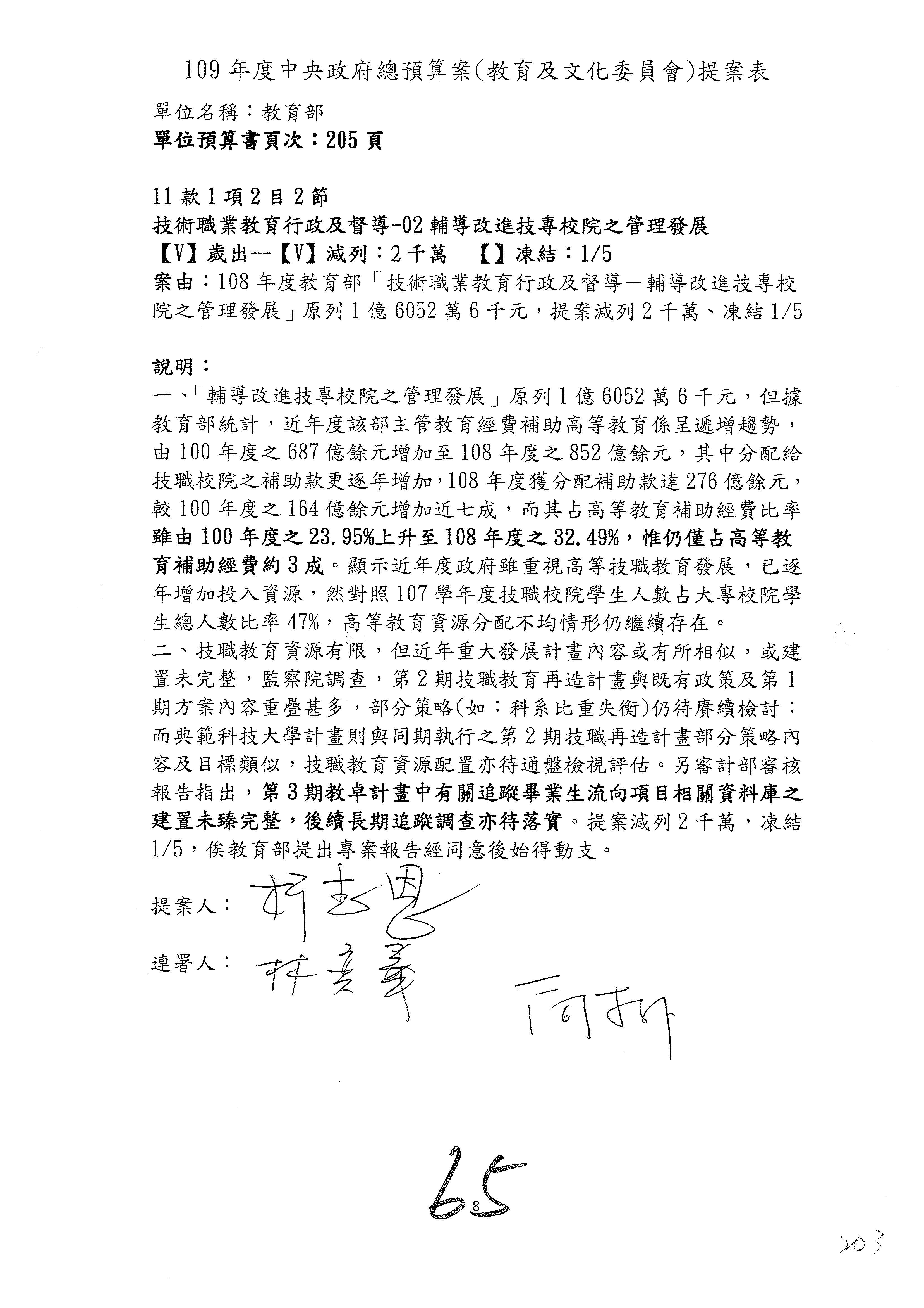 主席:好,最後一句修改為「爰提案要求教育部於三個月內向本院教委會提出書面報告」,修正通過。