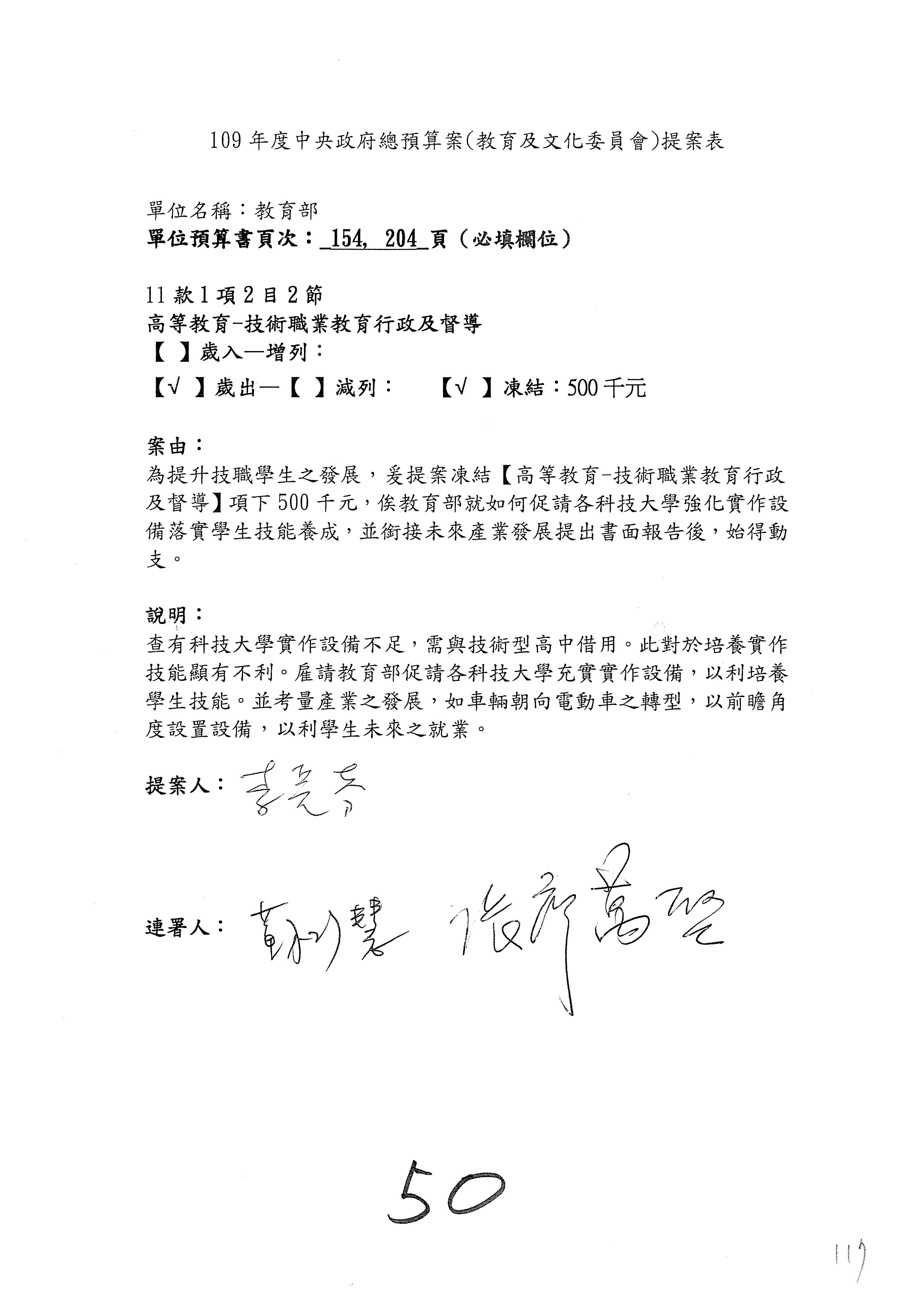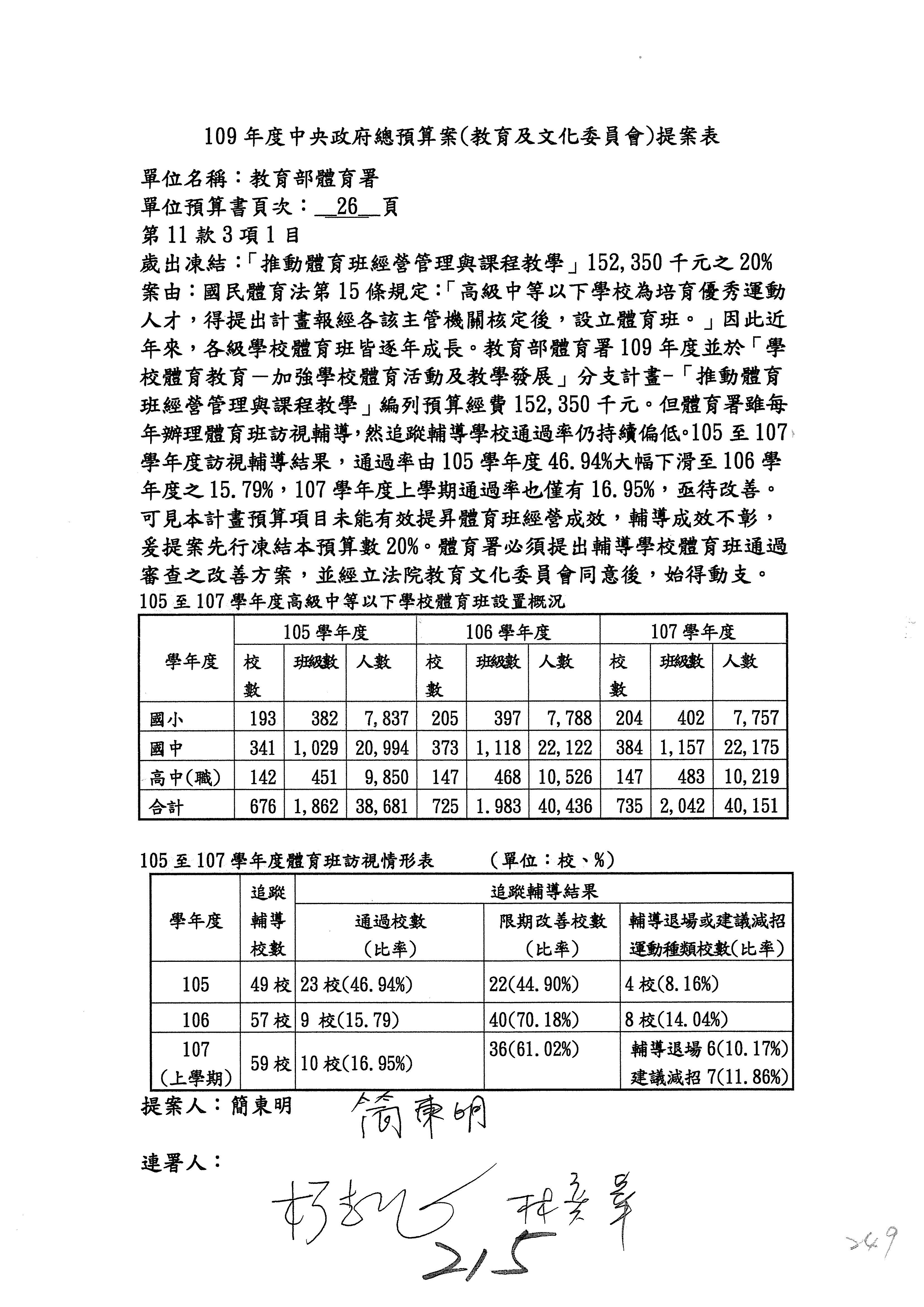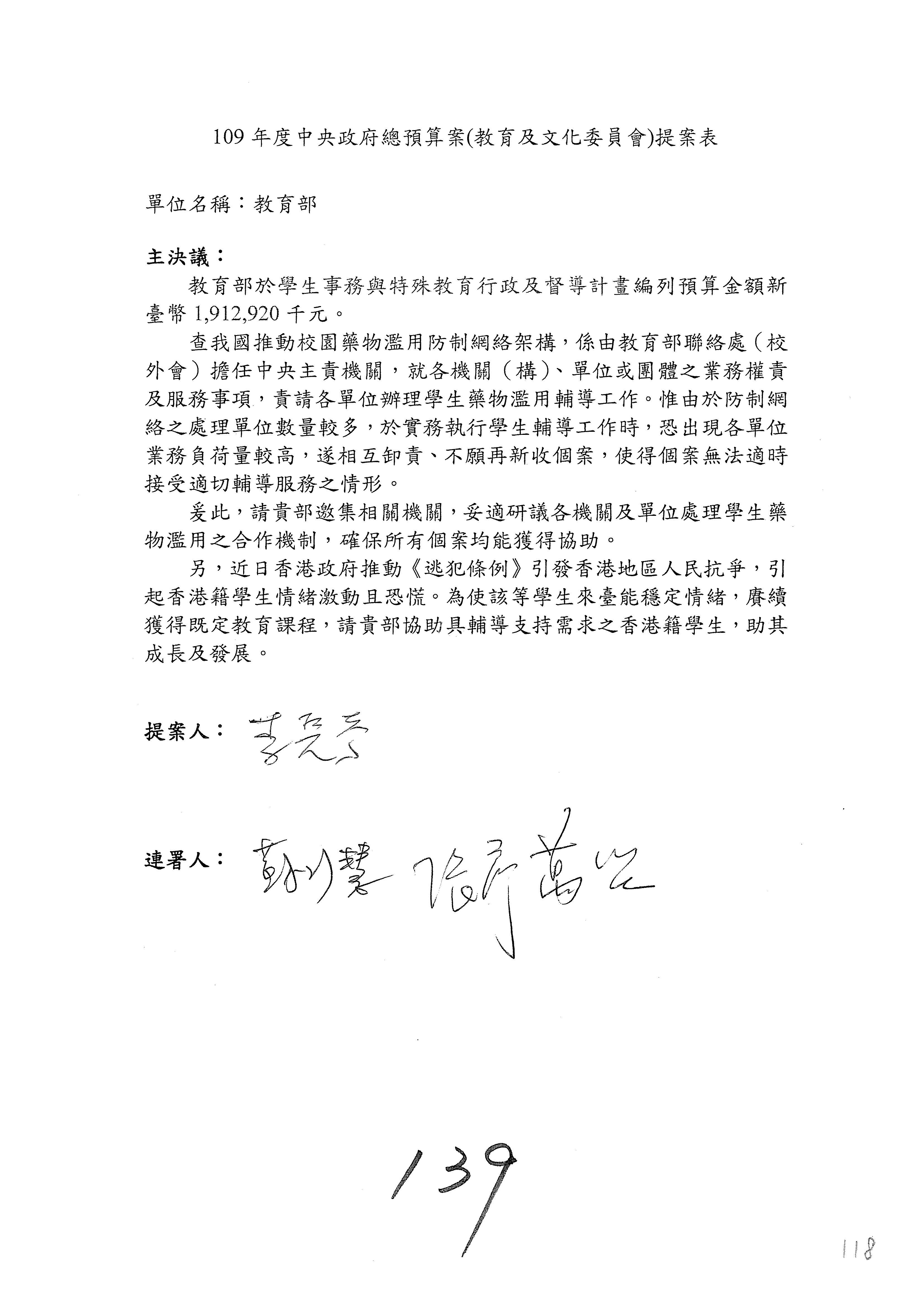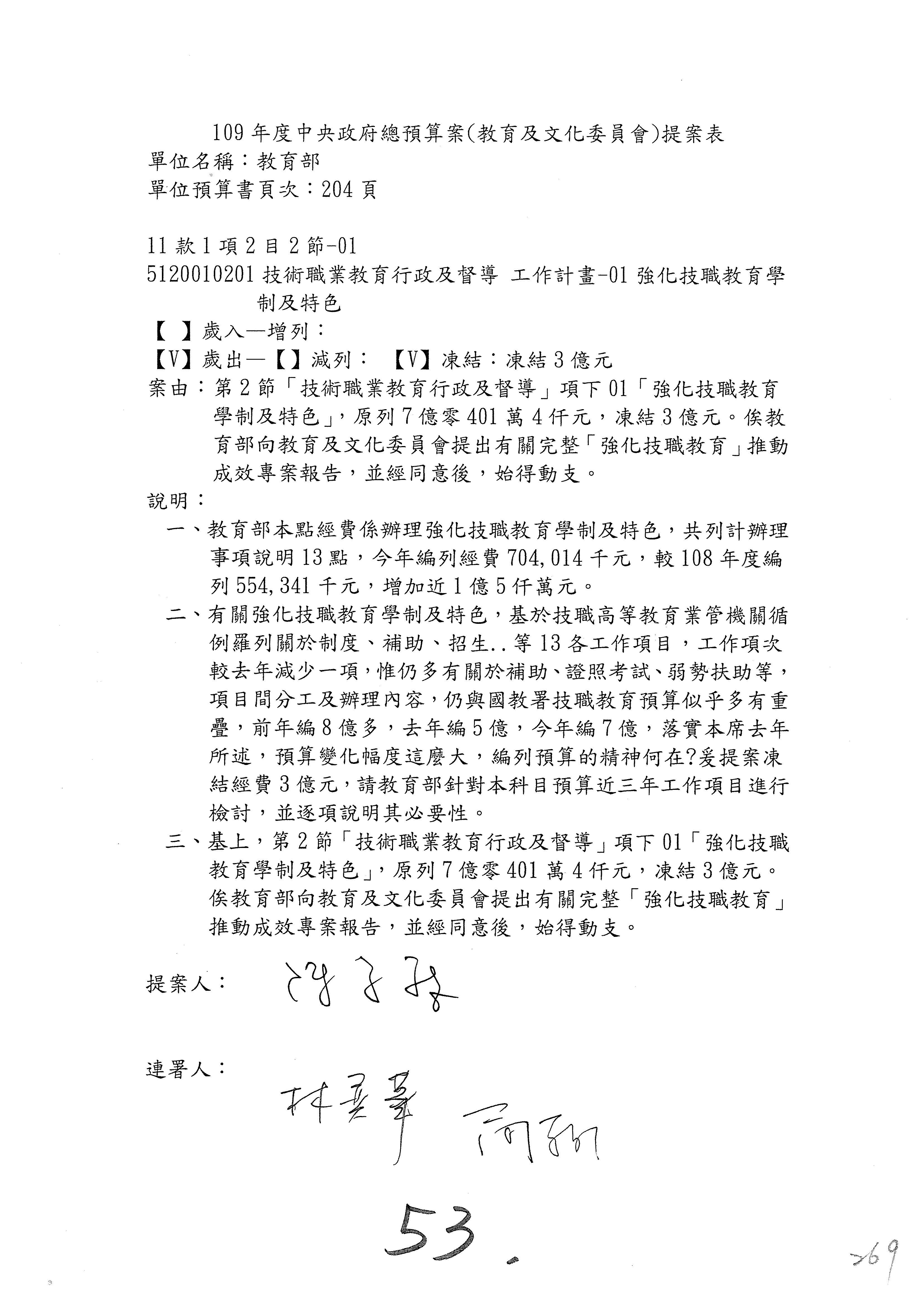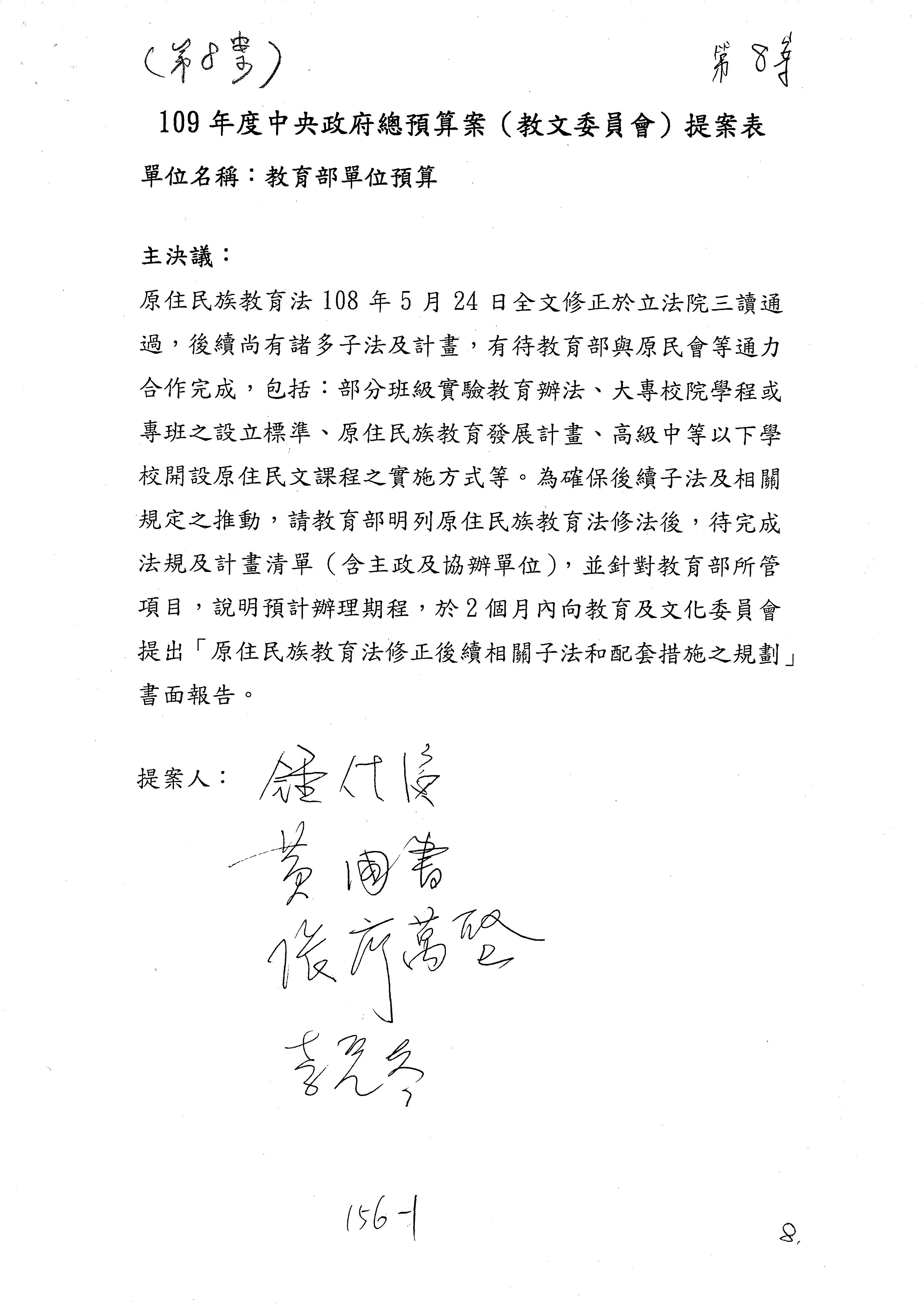 主席:好,最後一句修改為「爰提案要求教育部於三個月內向本院教委會提出書面報告」,修正通過。