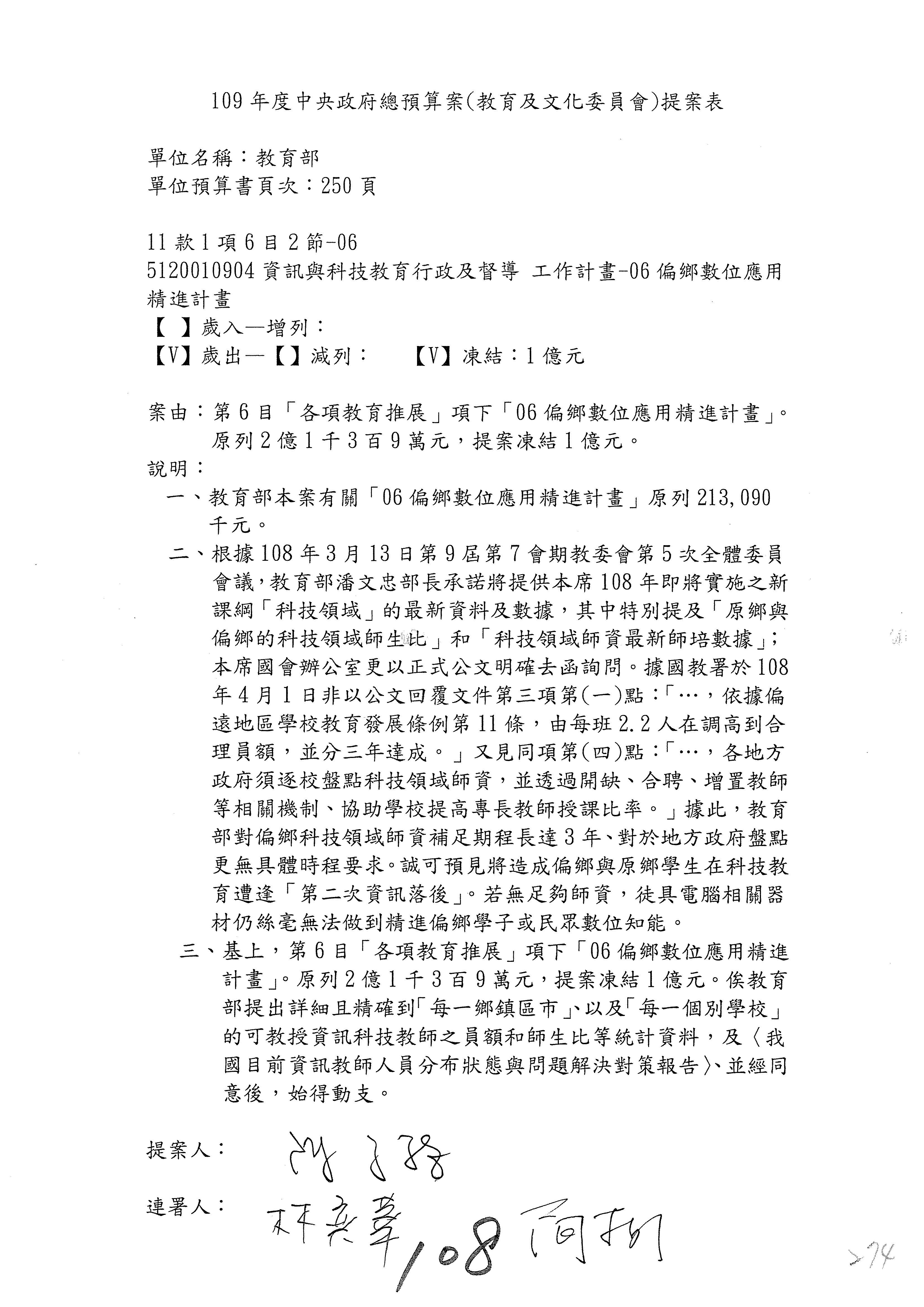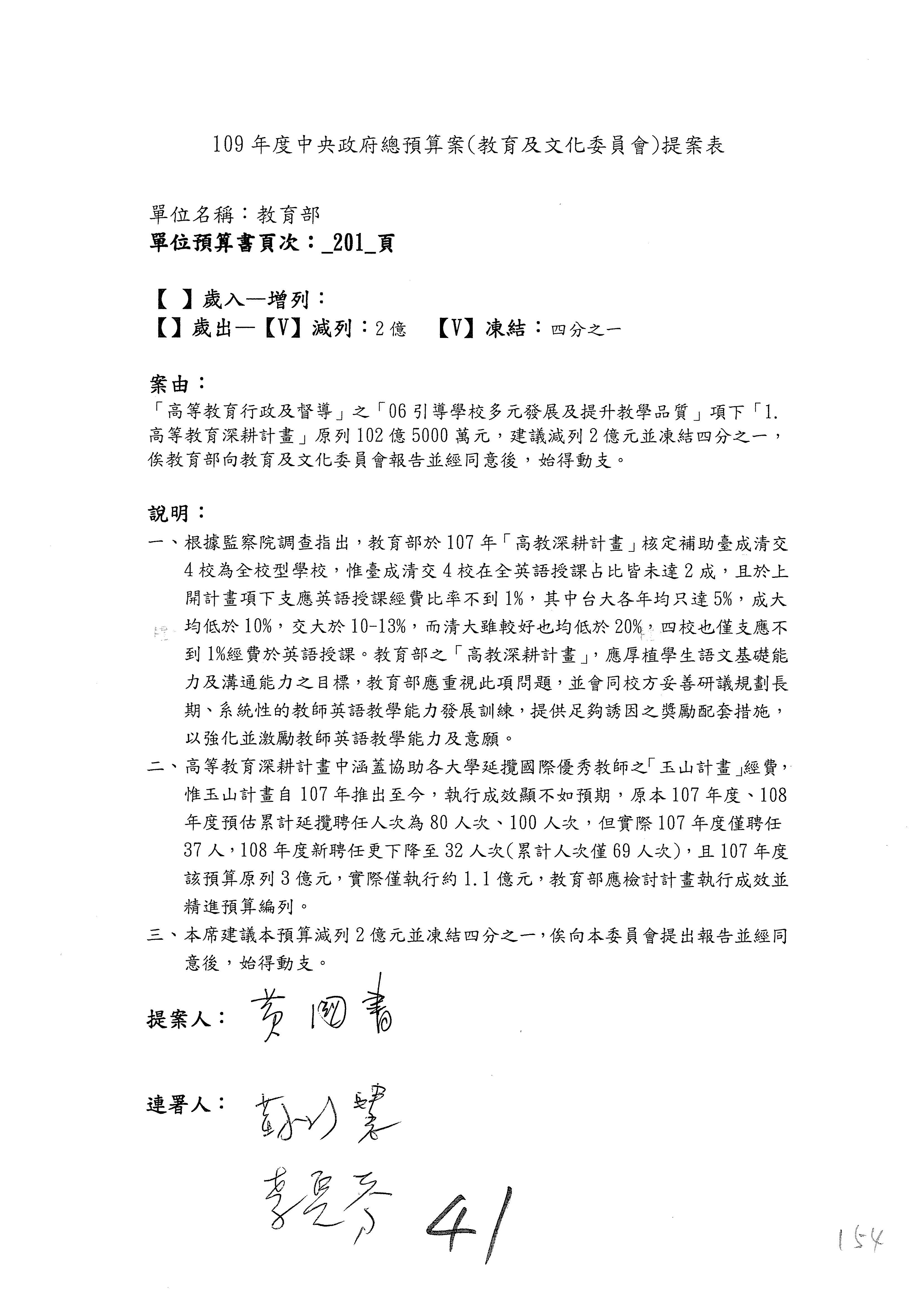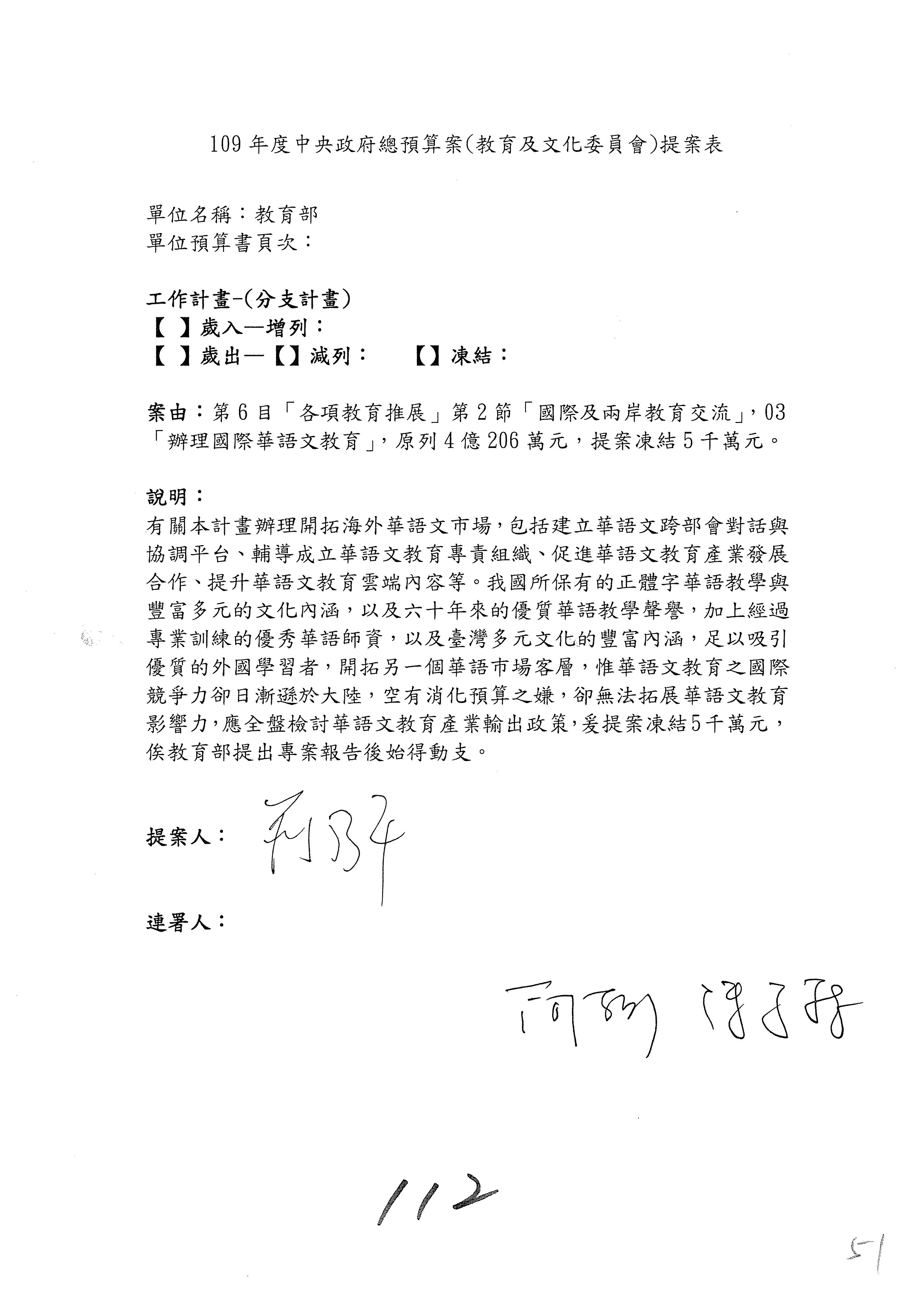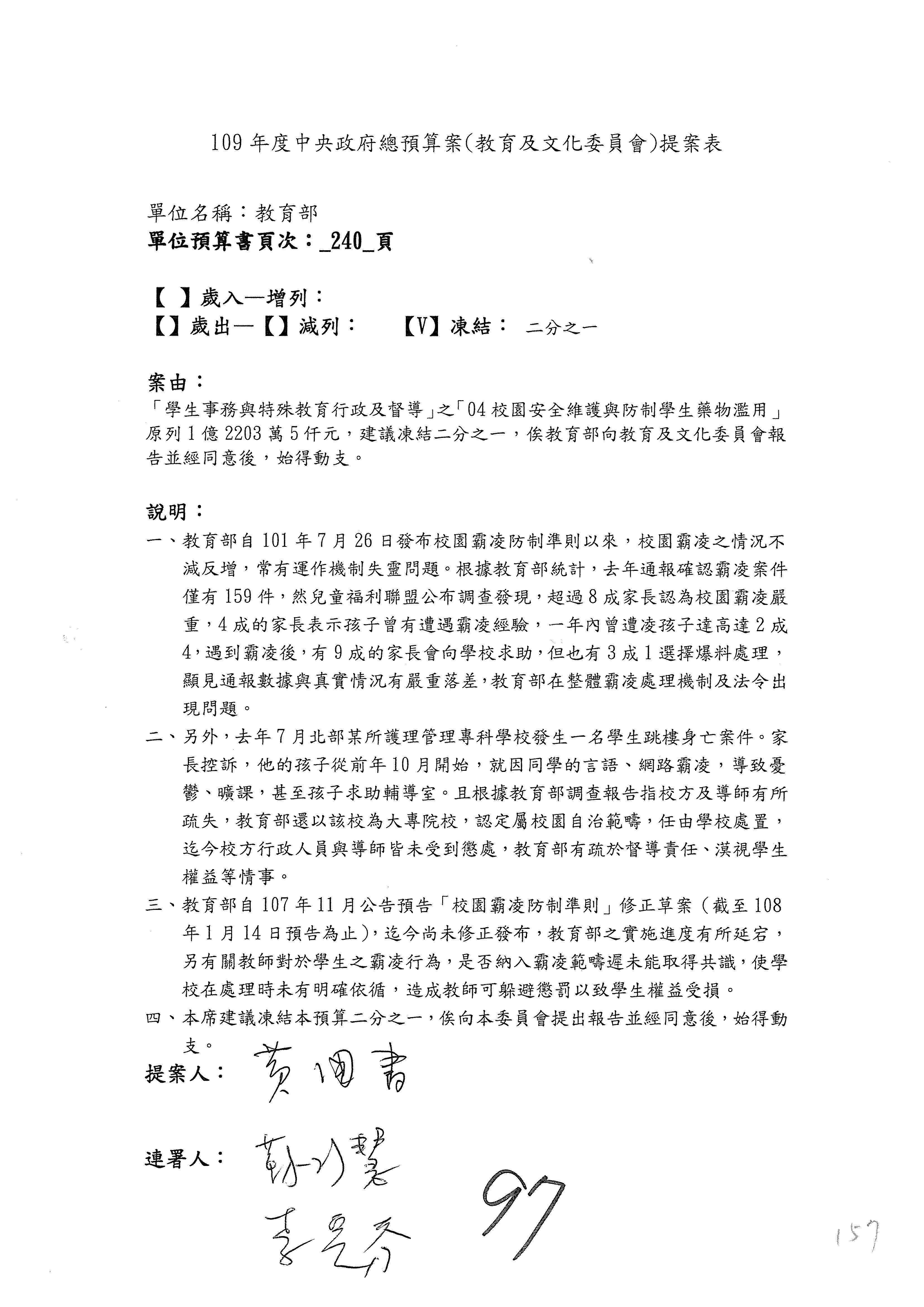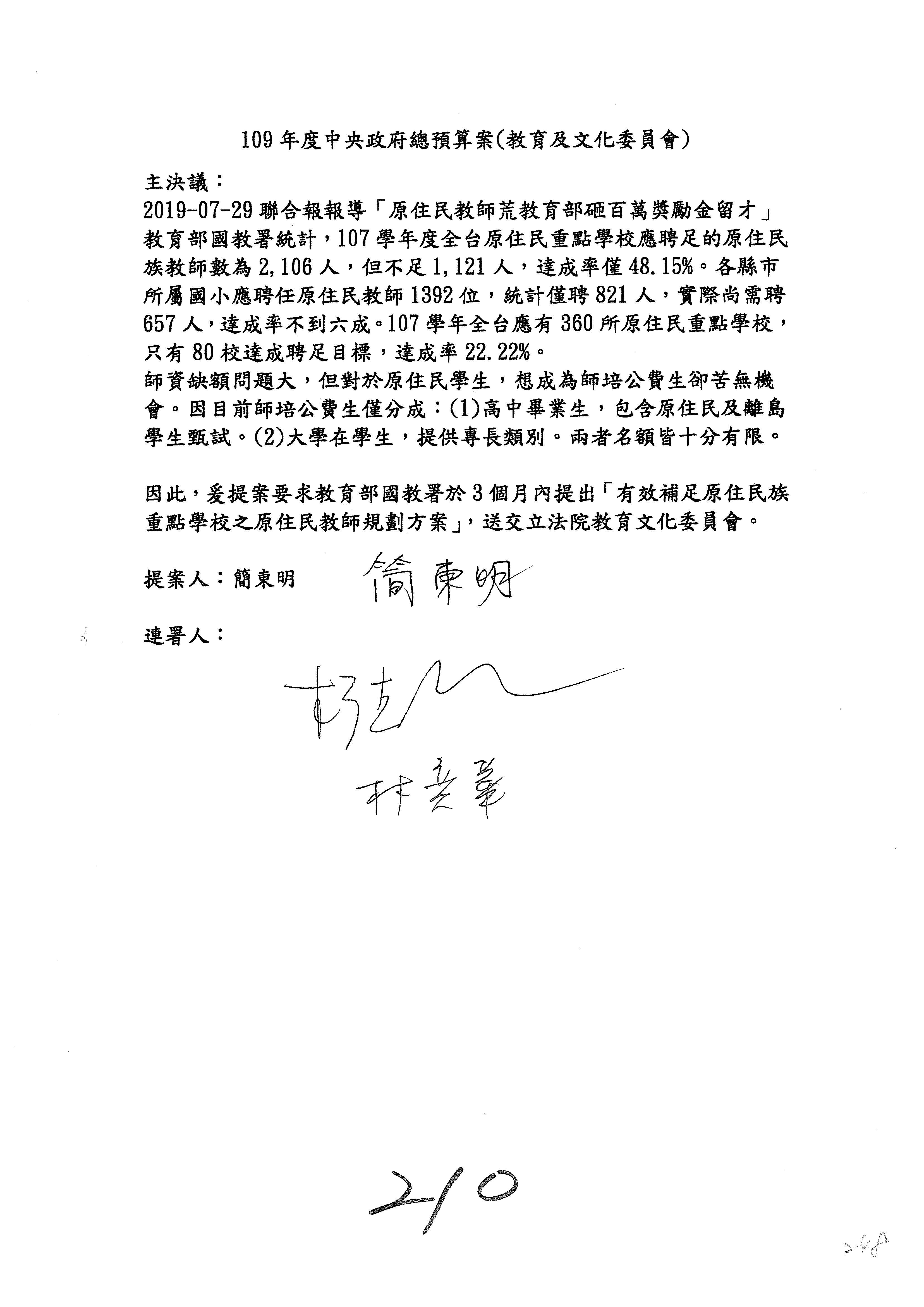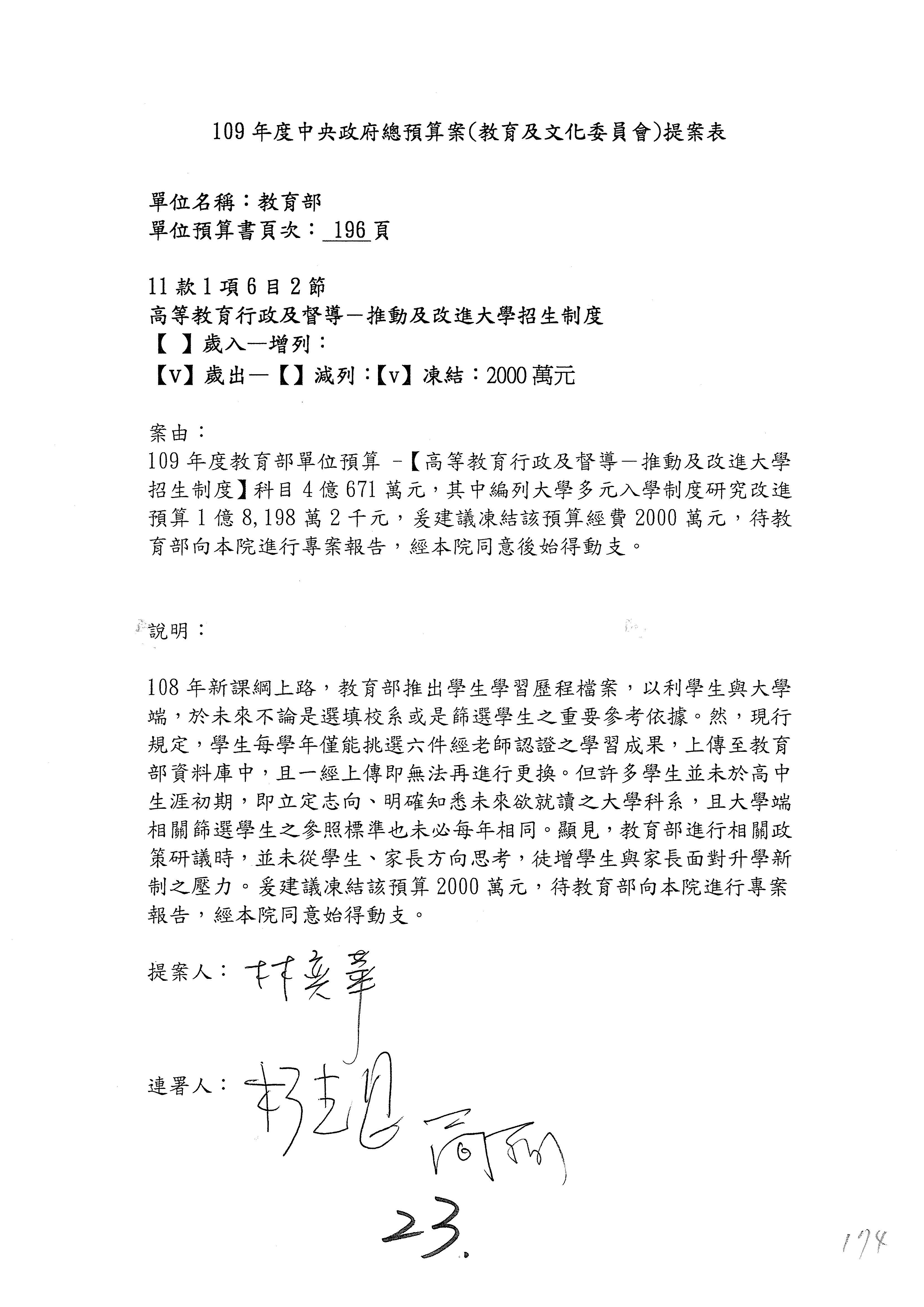 主席:好,最後一句修改為「爰提案要求教育部於三個月內向本院教委會提出書面報告」,修正通過。