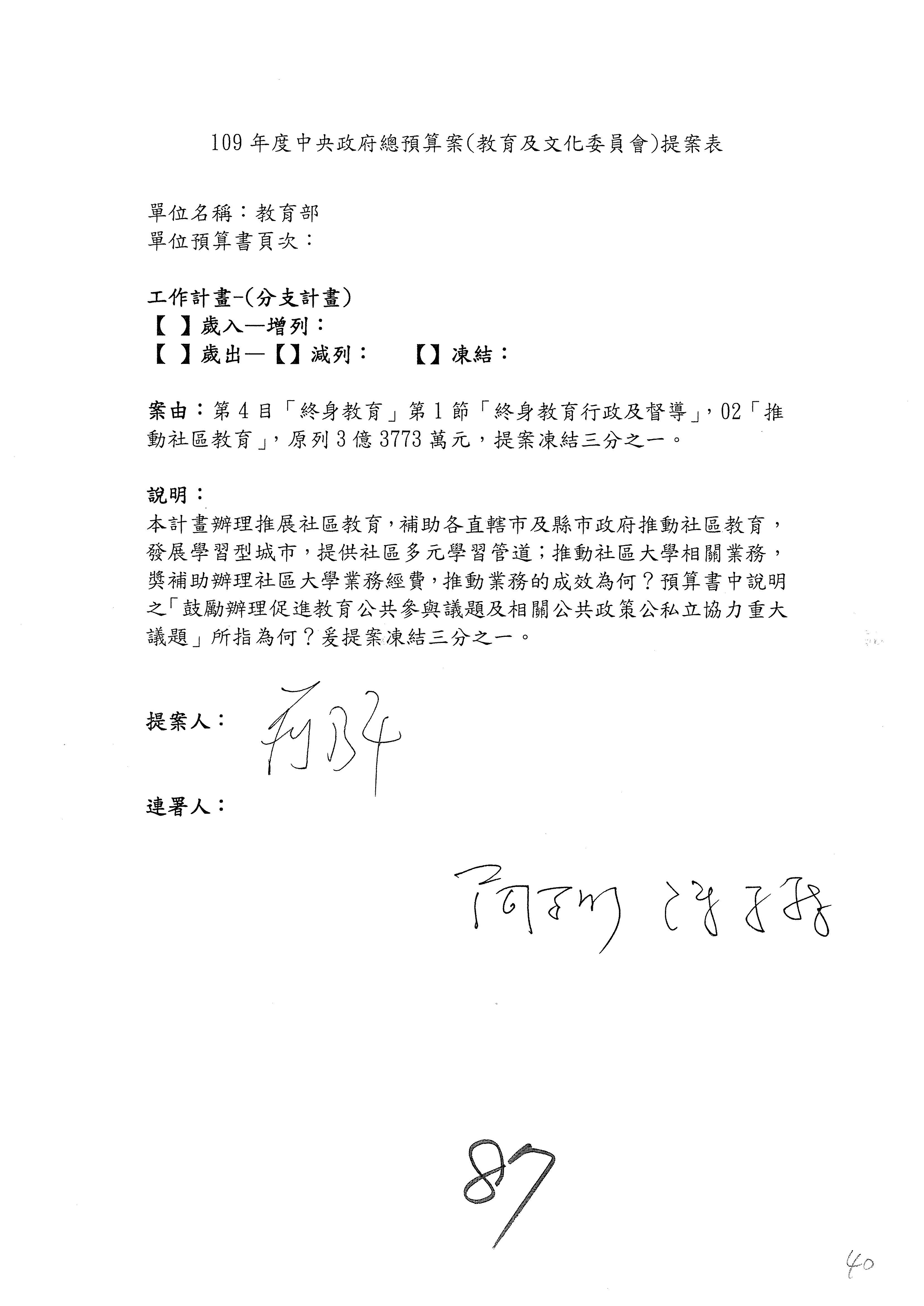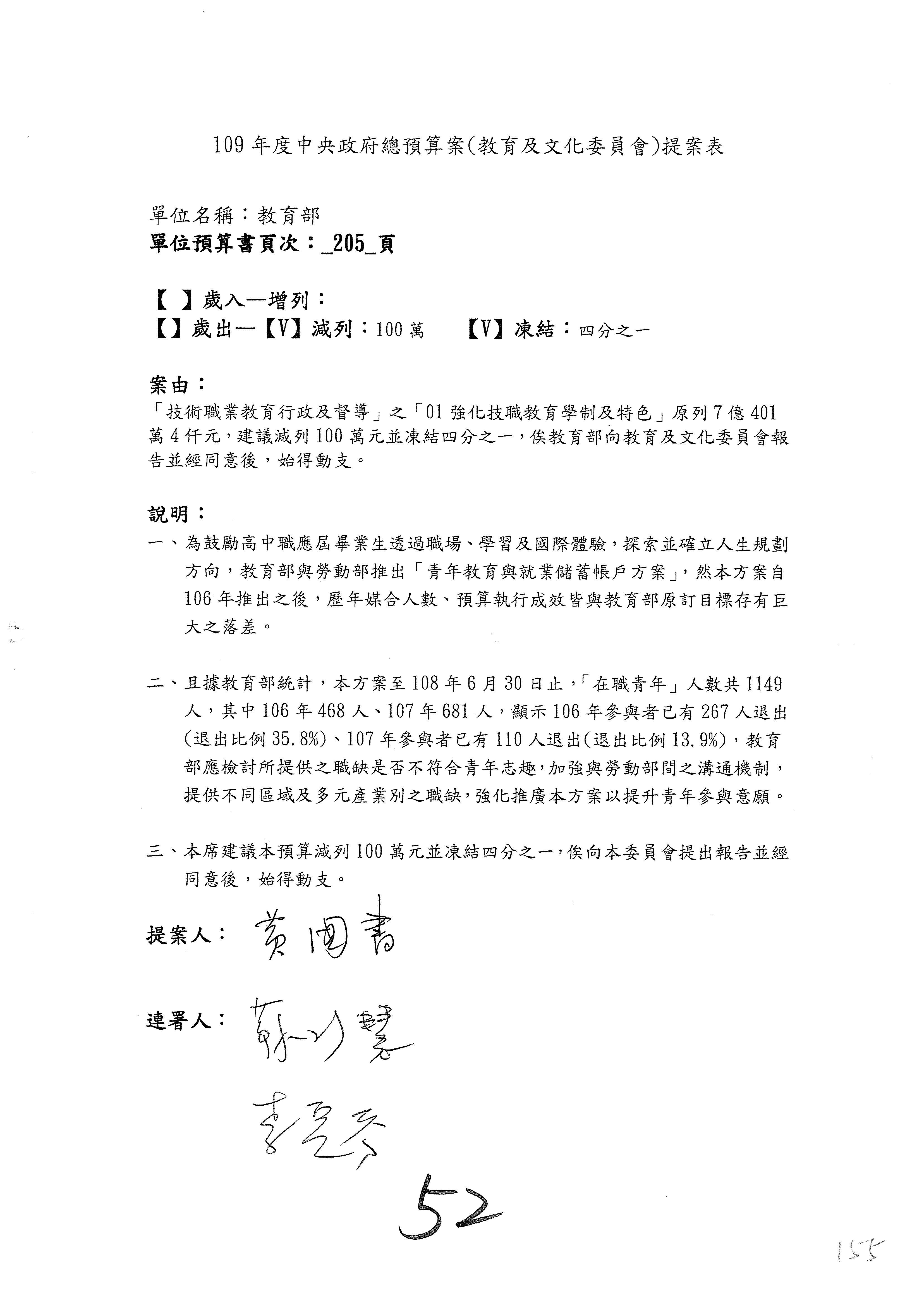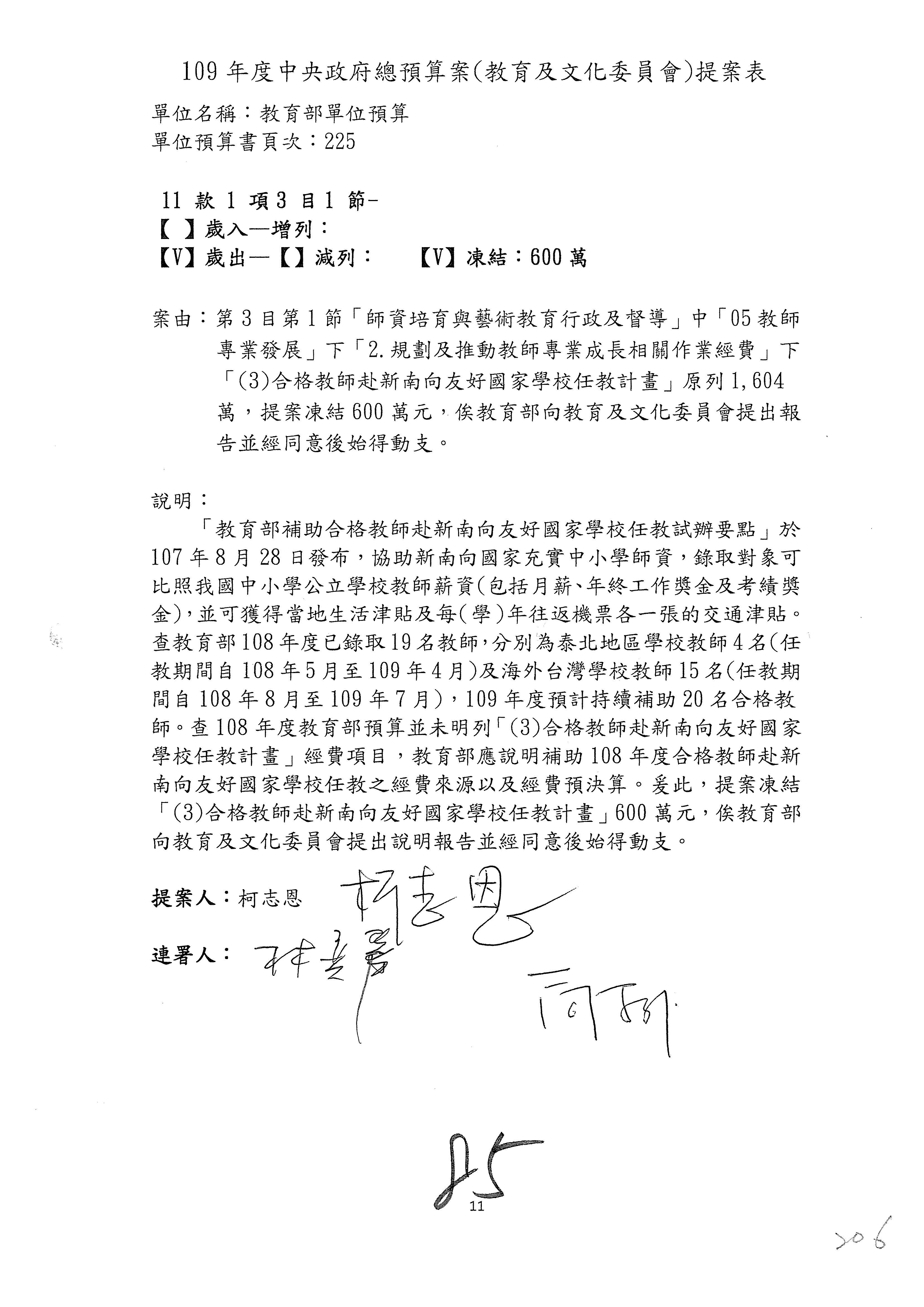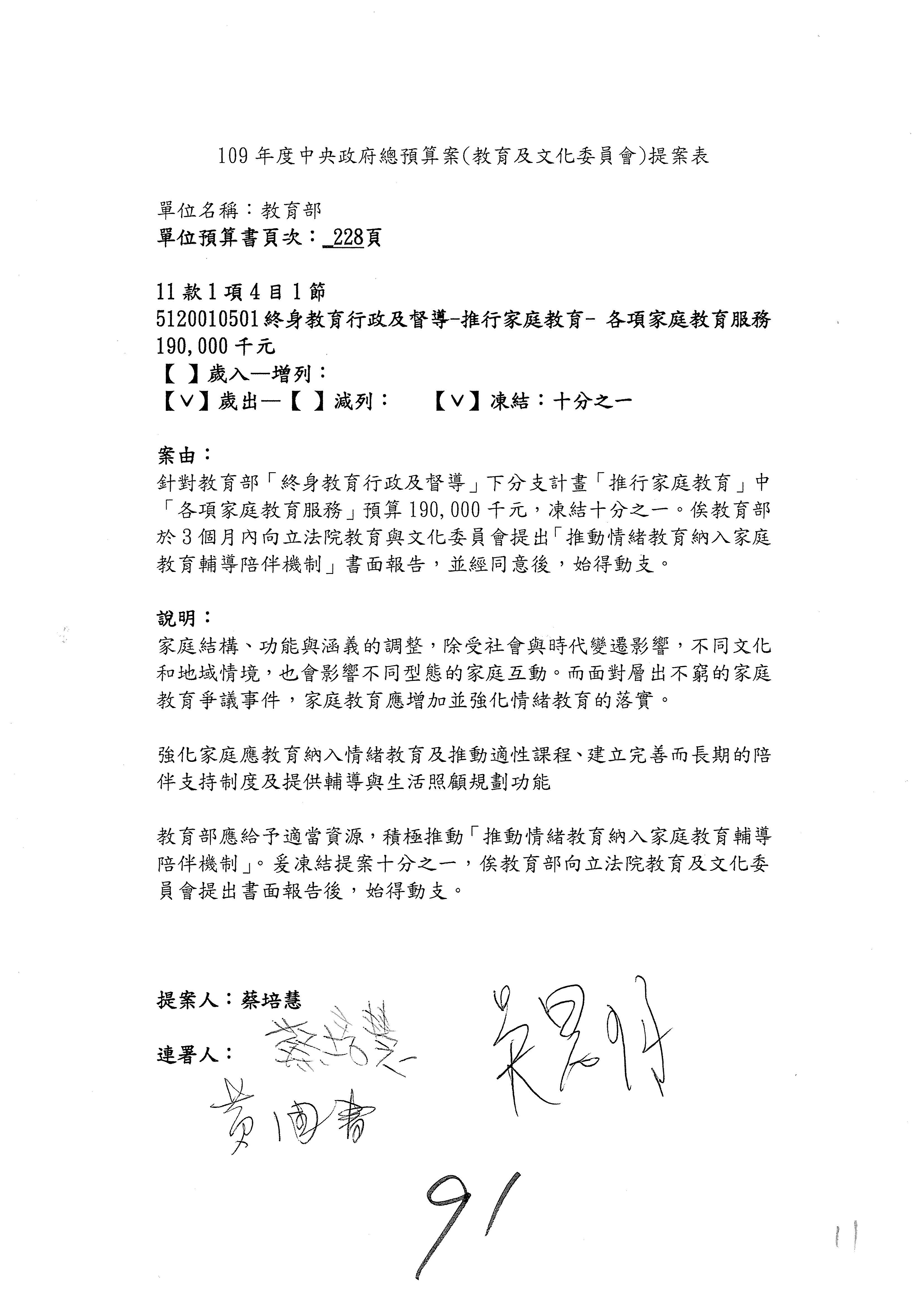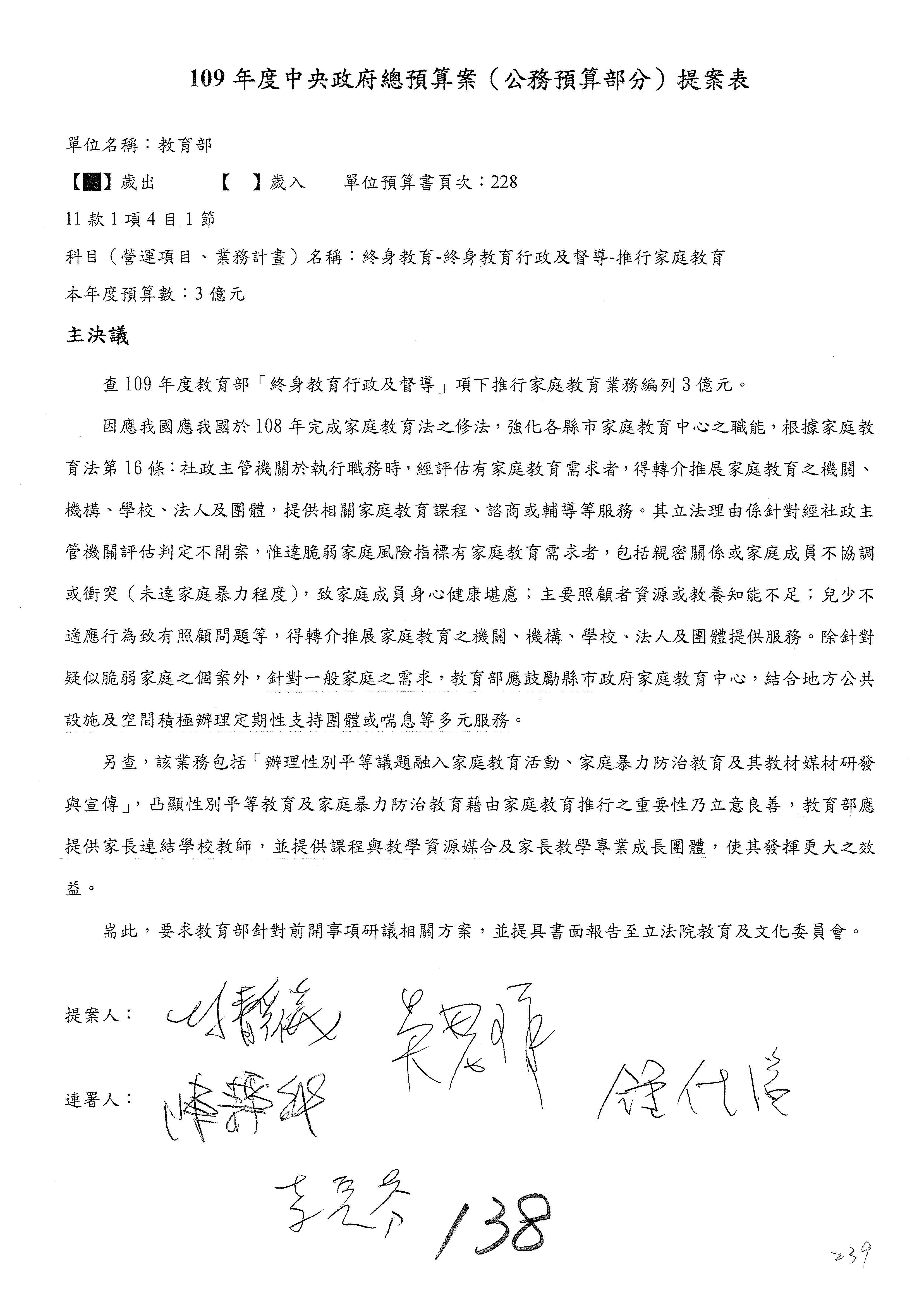 主席:好,最後一句修改為「爰提案要求教育部於三個月內向本院教委會提出書面報告」,修正通過。