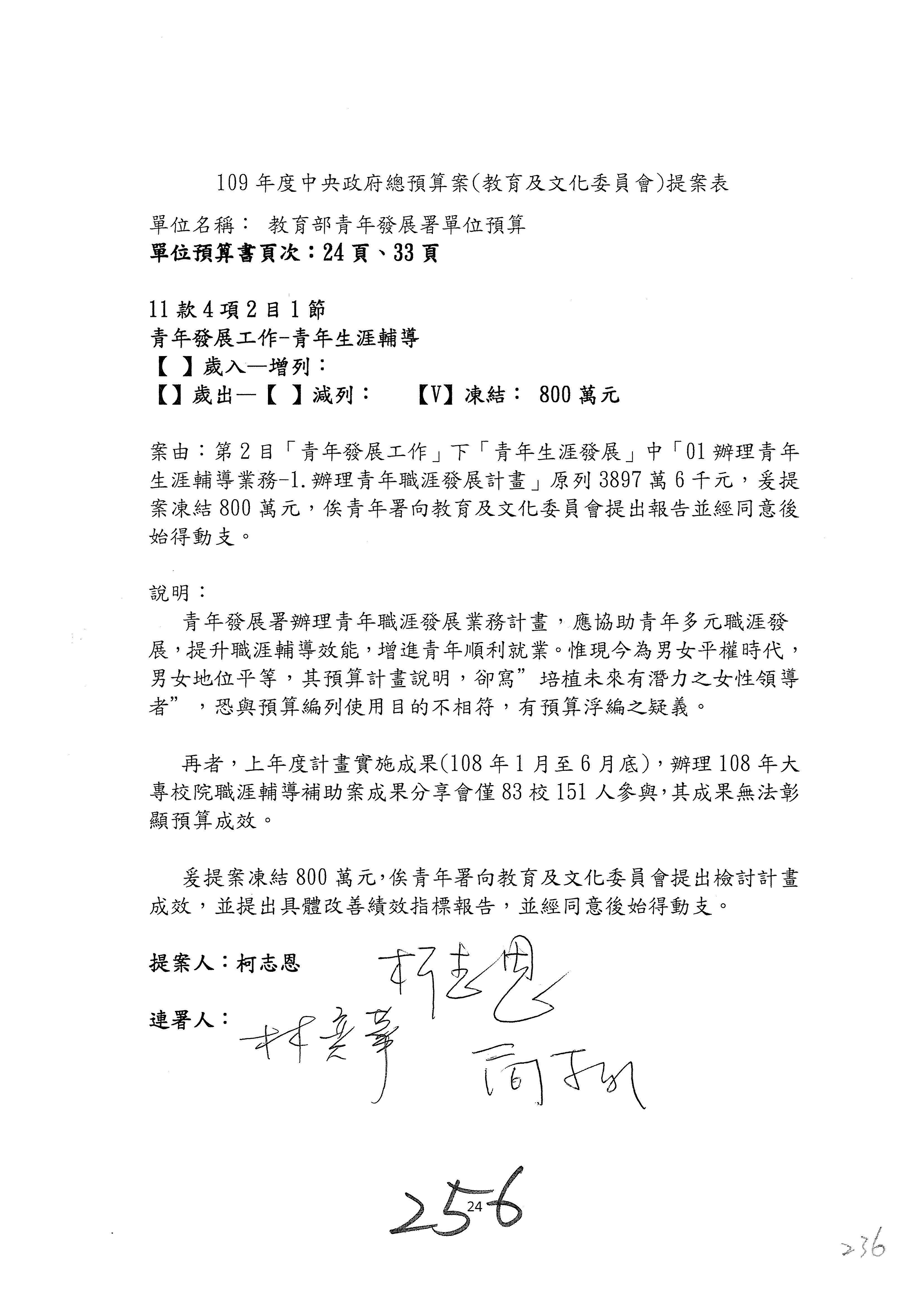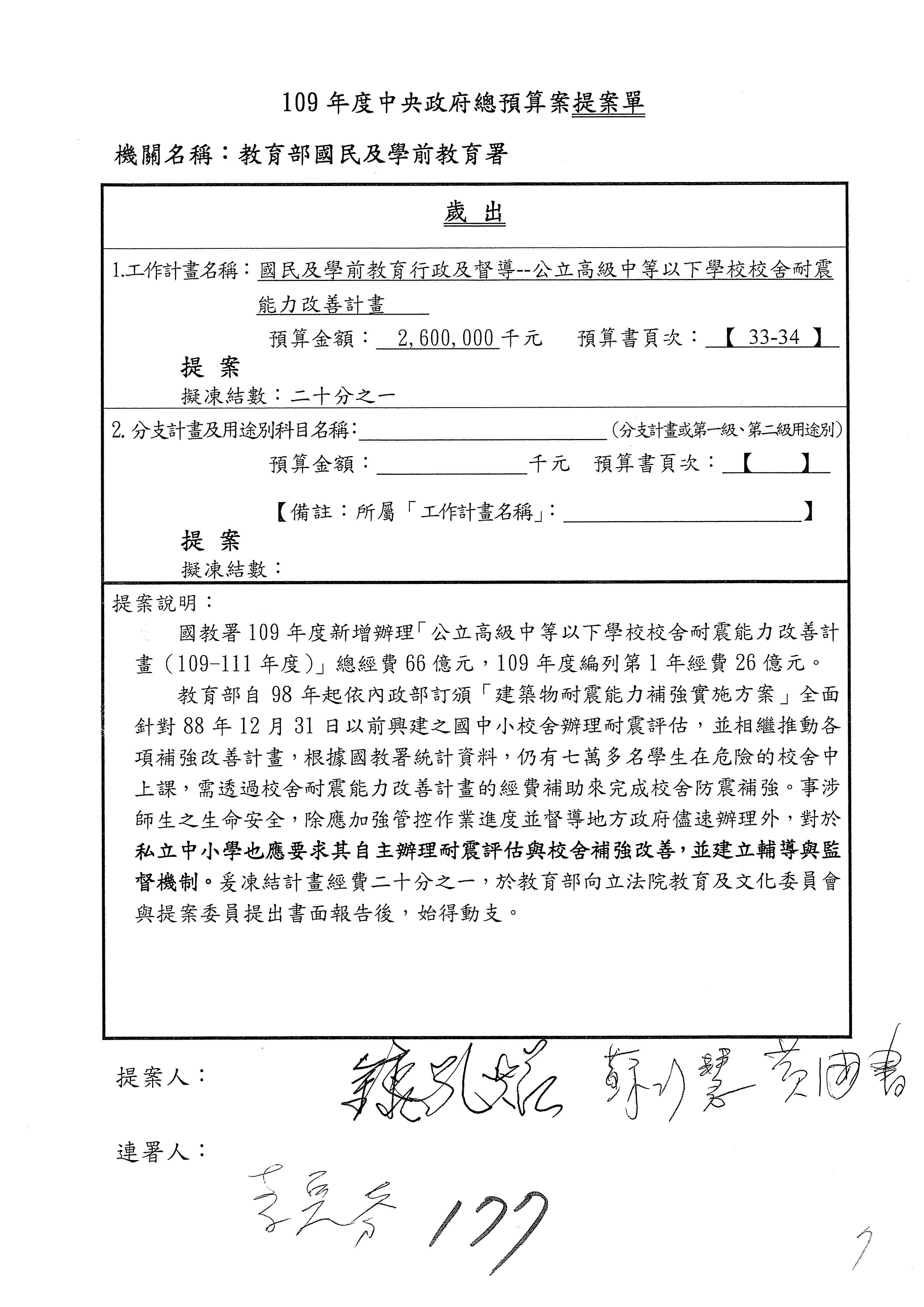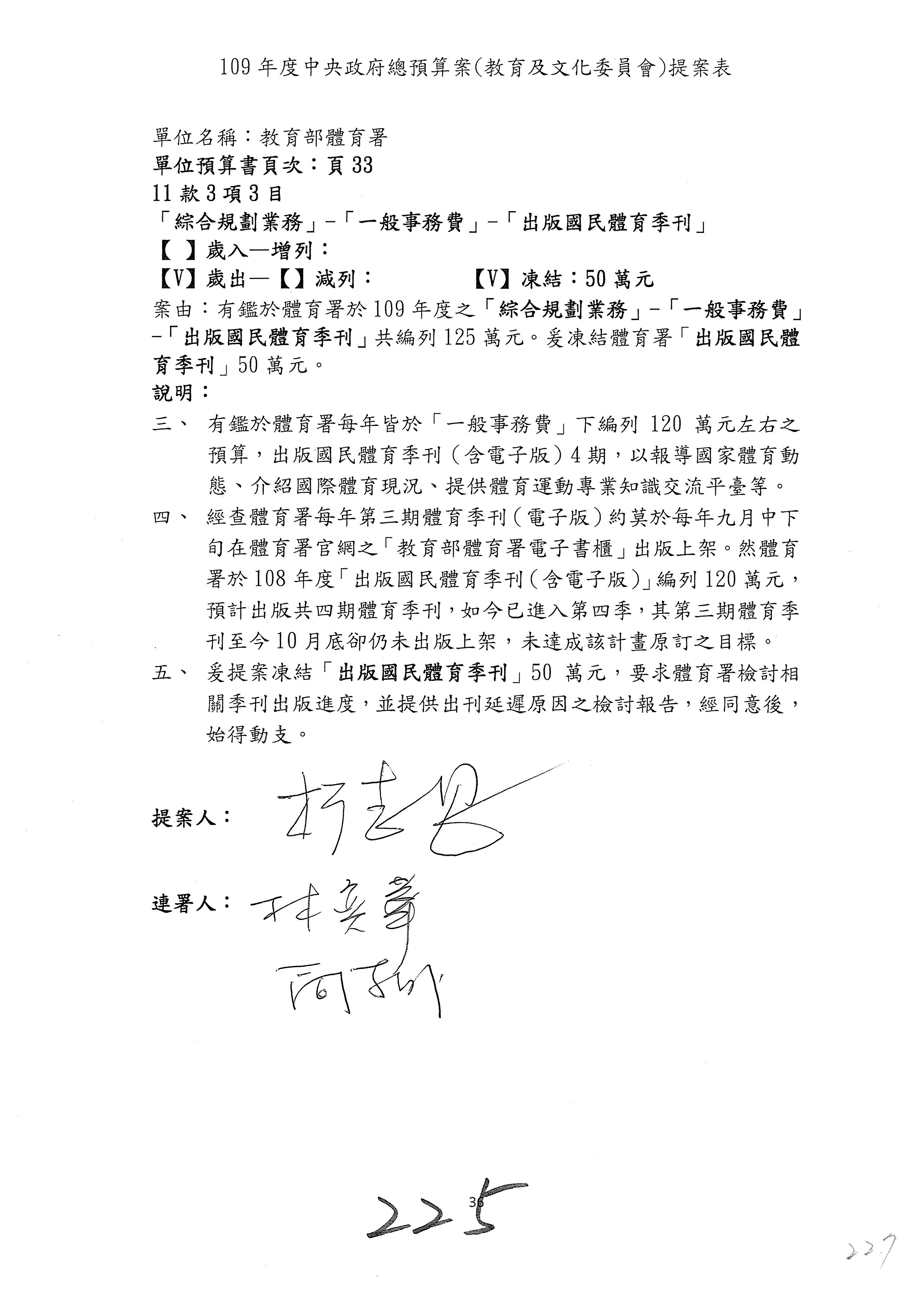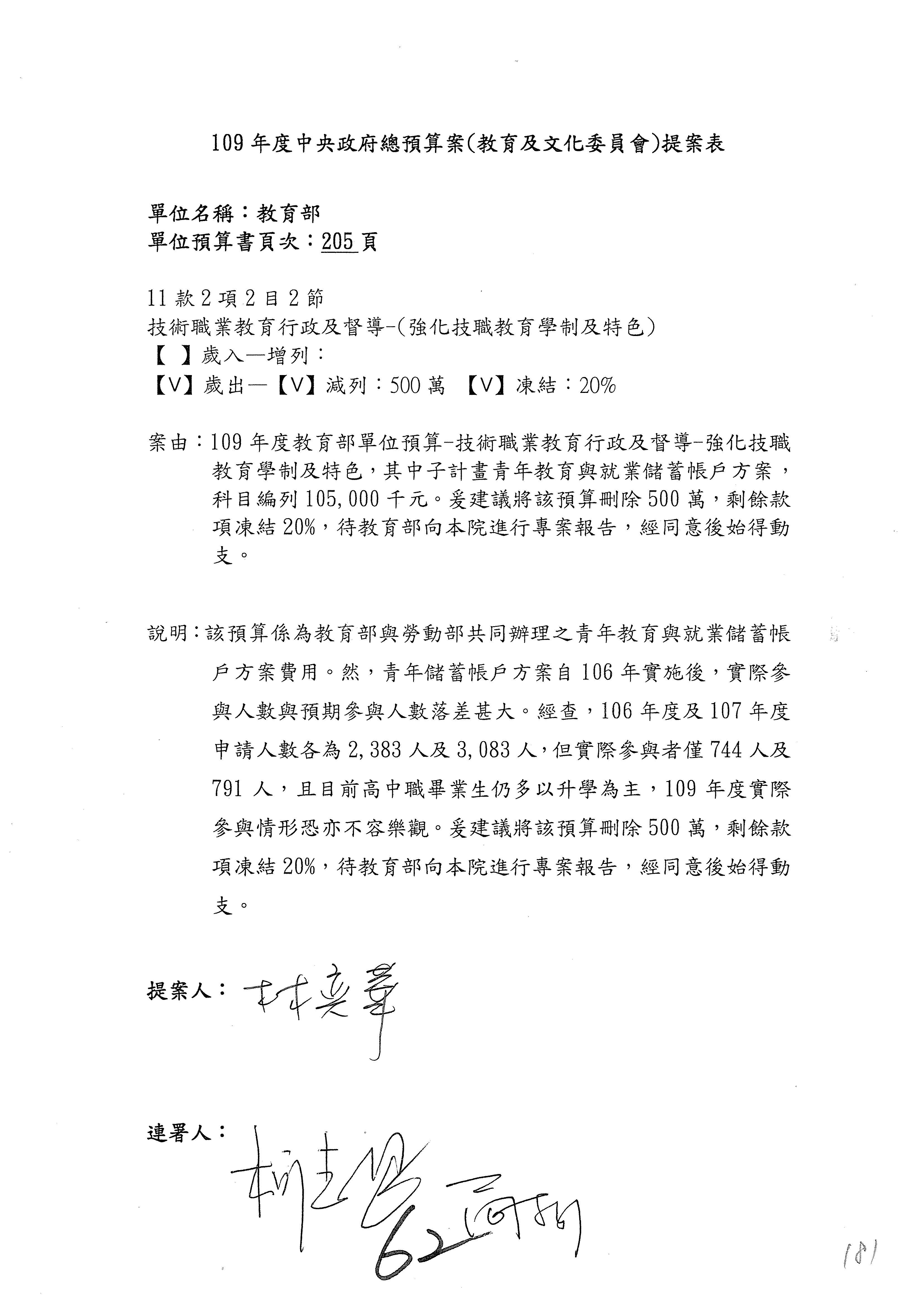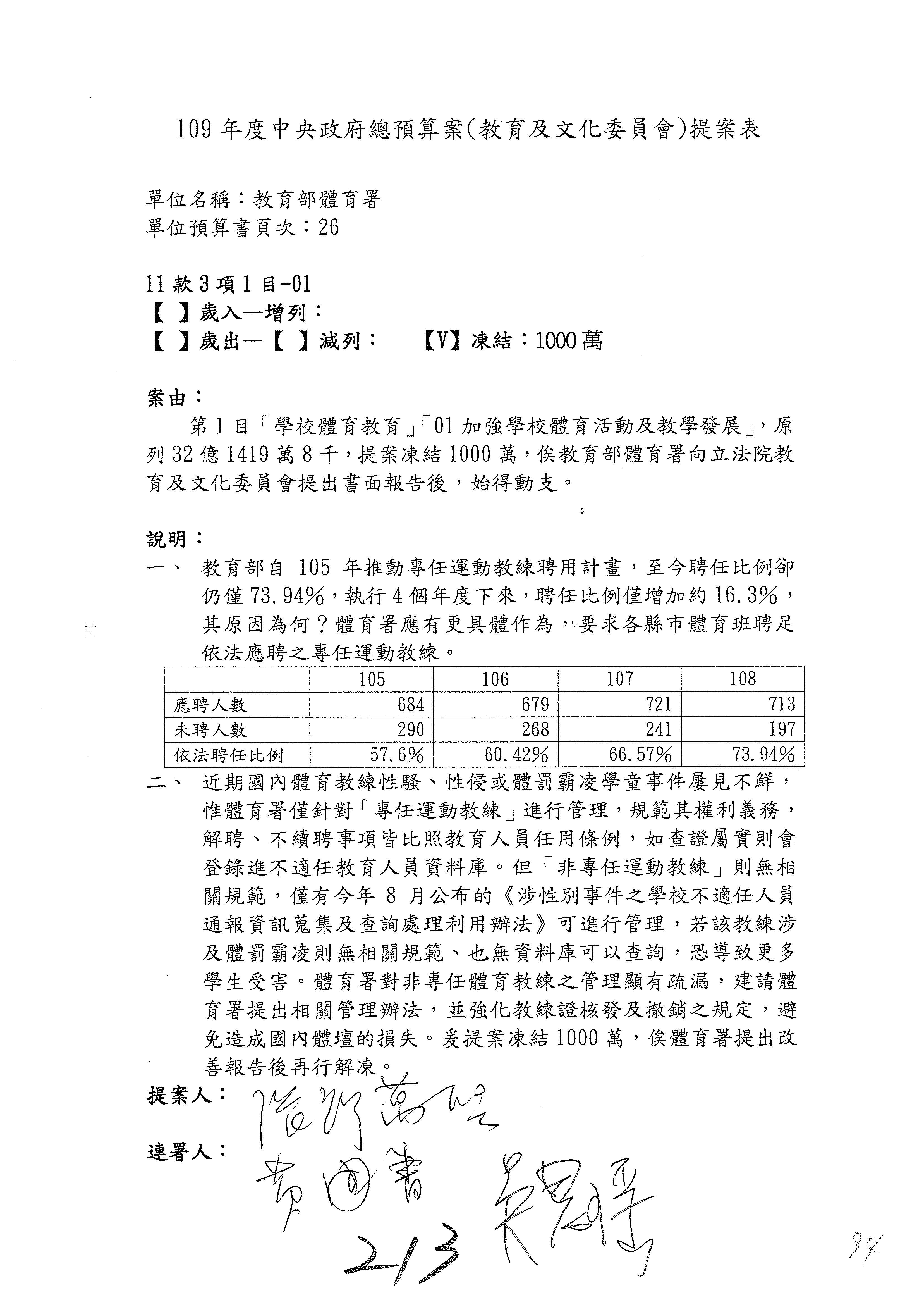主席:好,最後一句修改為「爰提案要求教育部於三個月內向本院教委會提出書面報告」,修正通過。