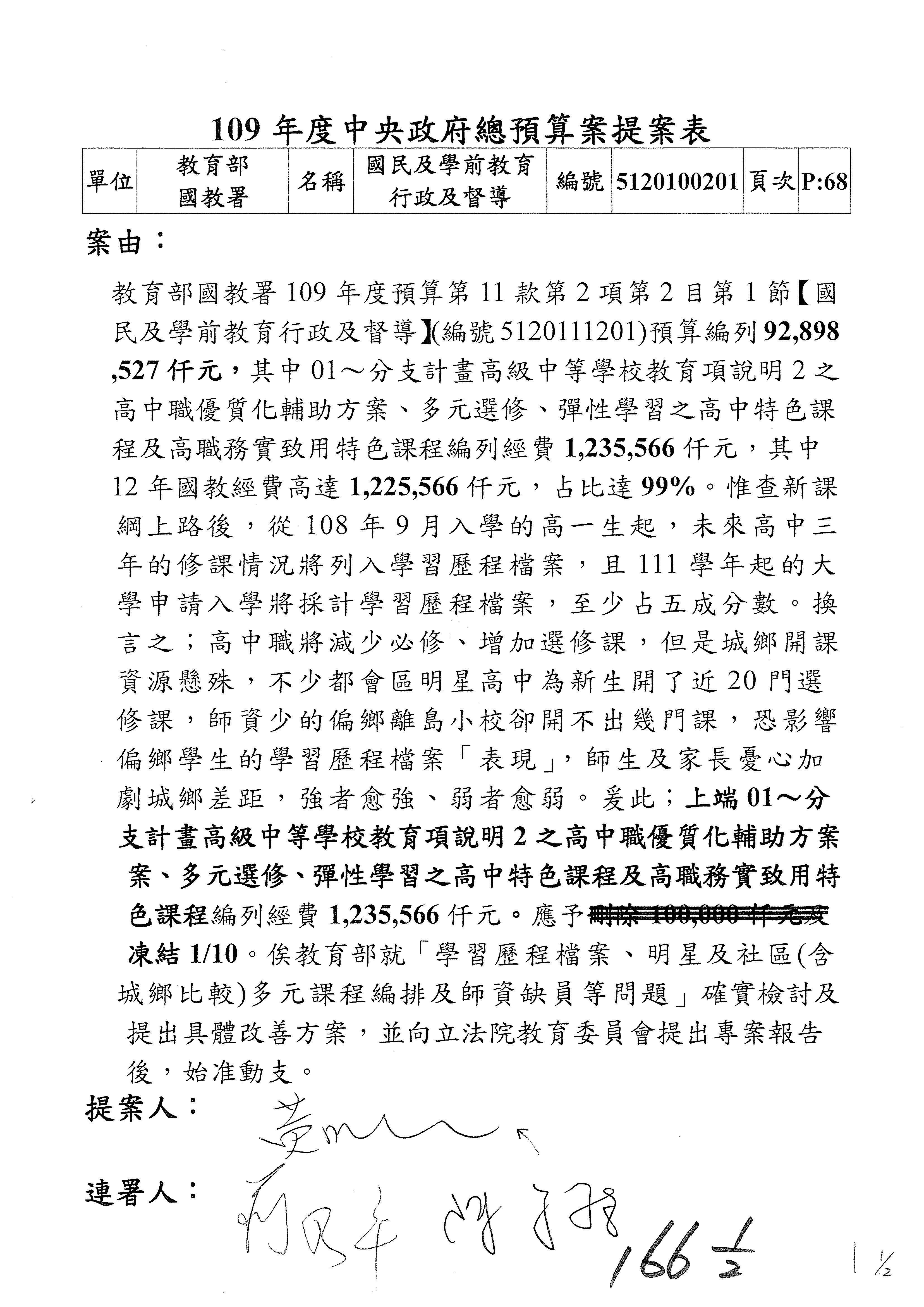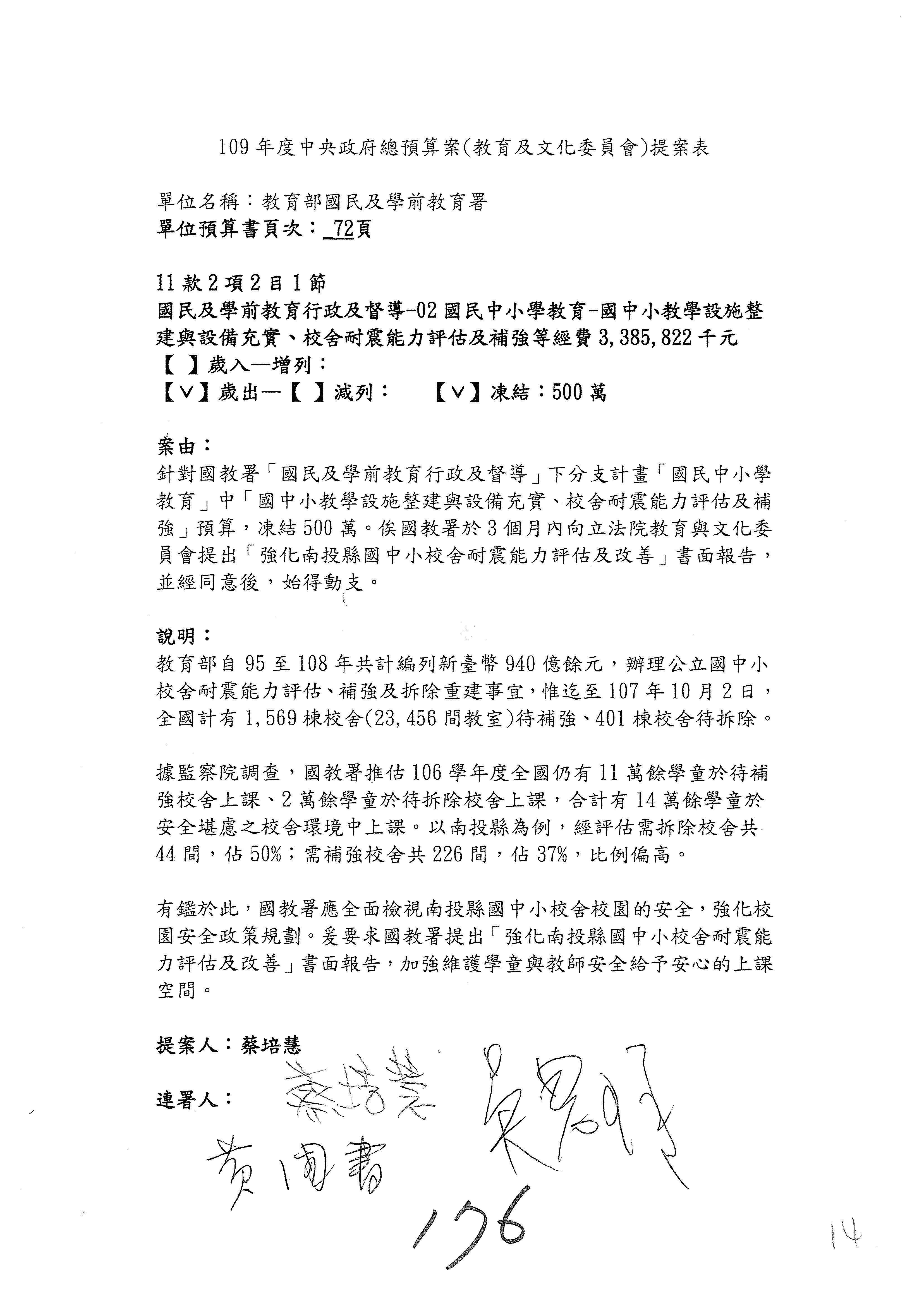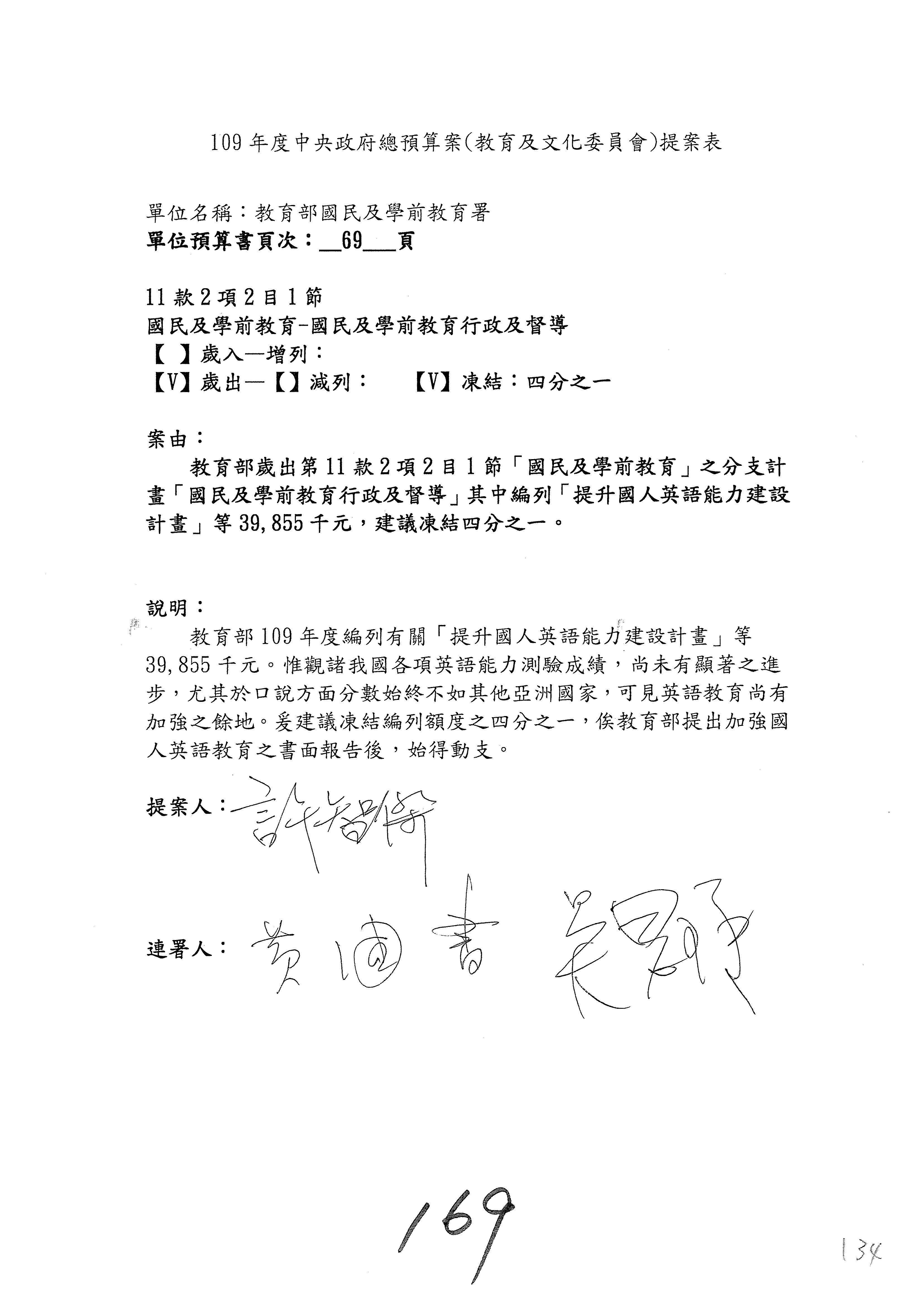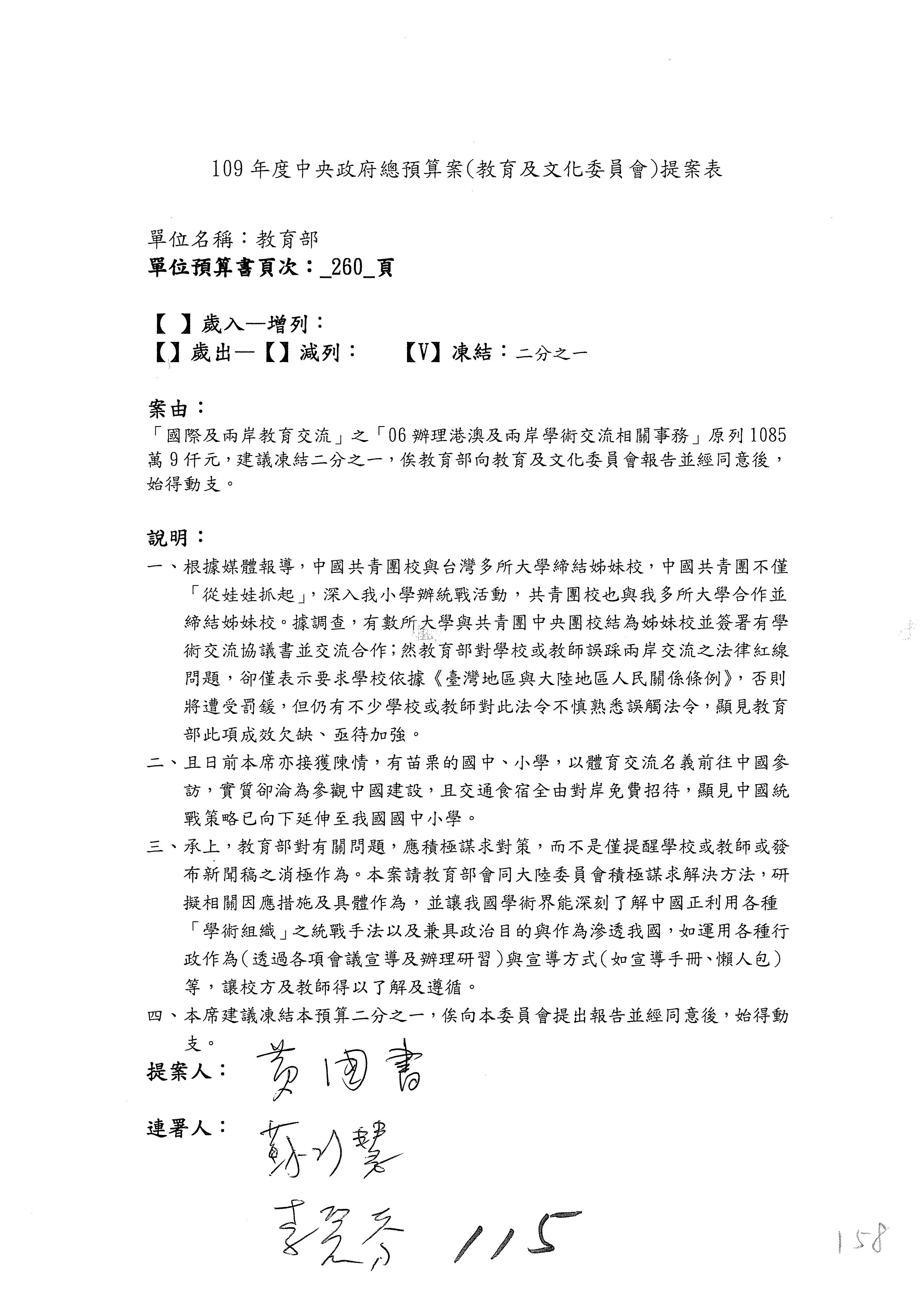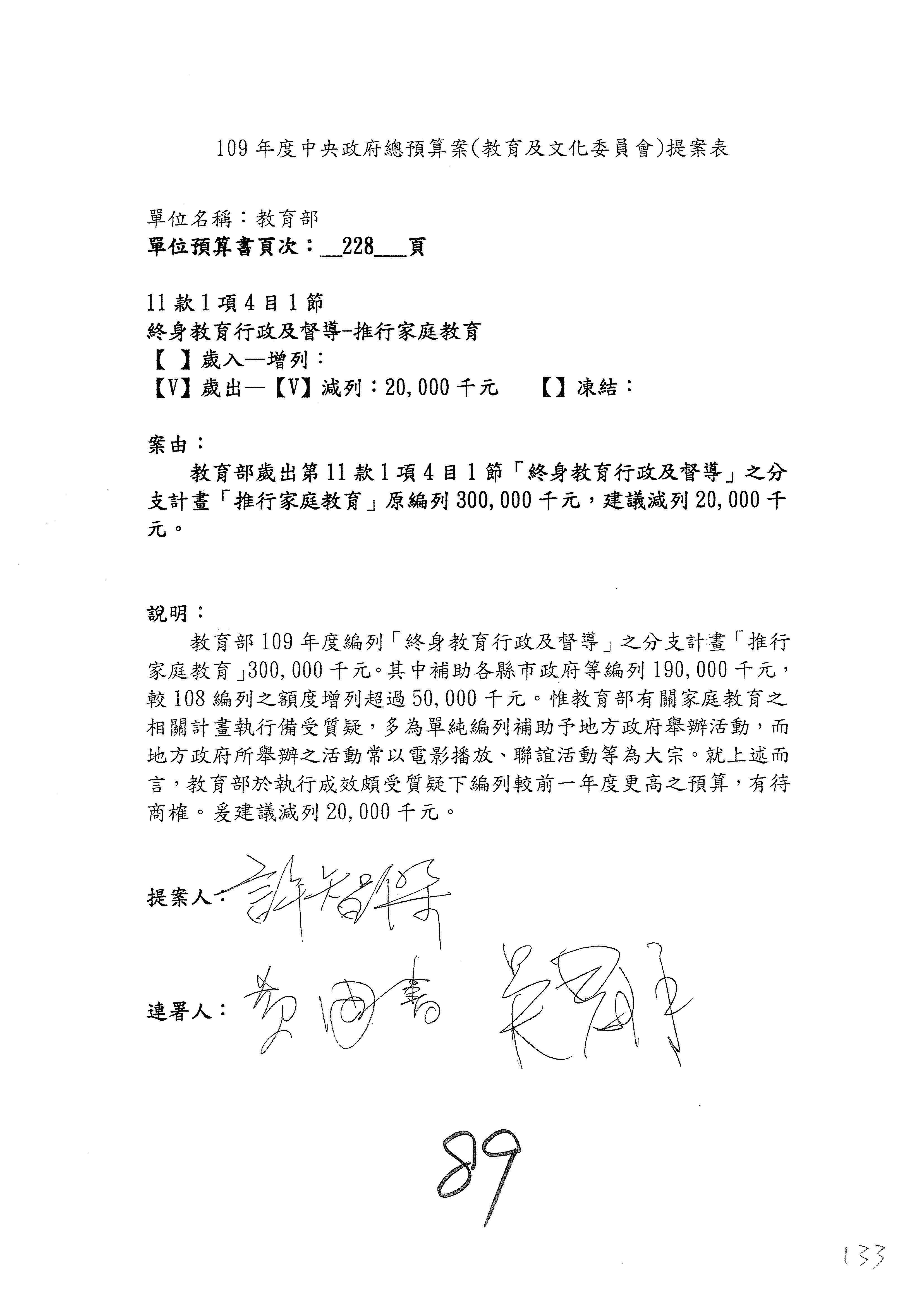 主席:好,最後一句修改為「爰提案要求教育部於三個月內向本院教委會提出書面報告」,修正通過。