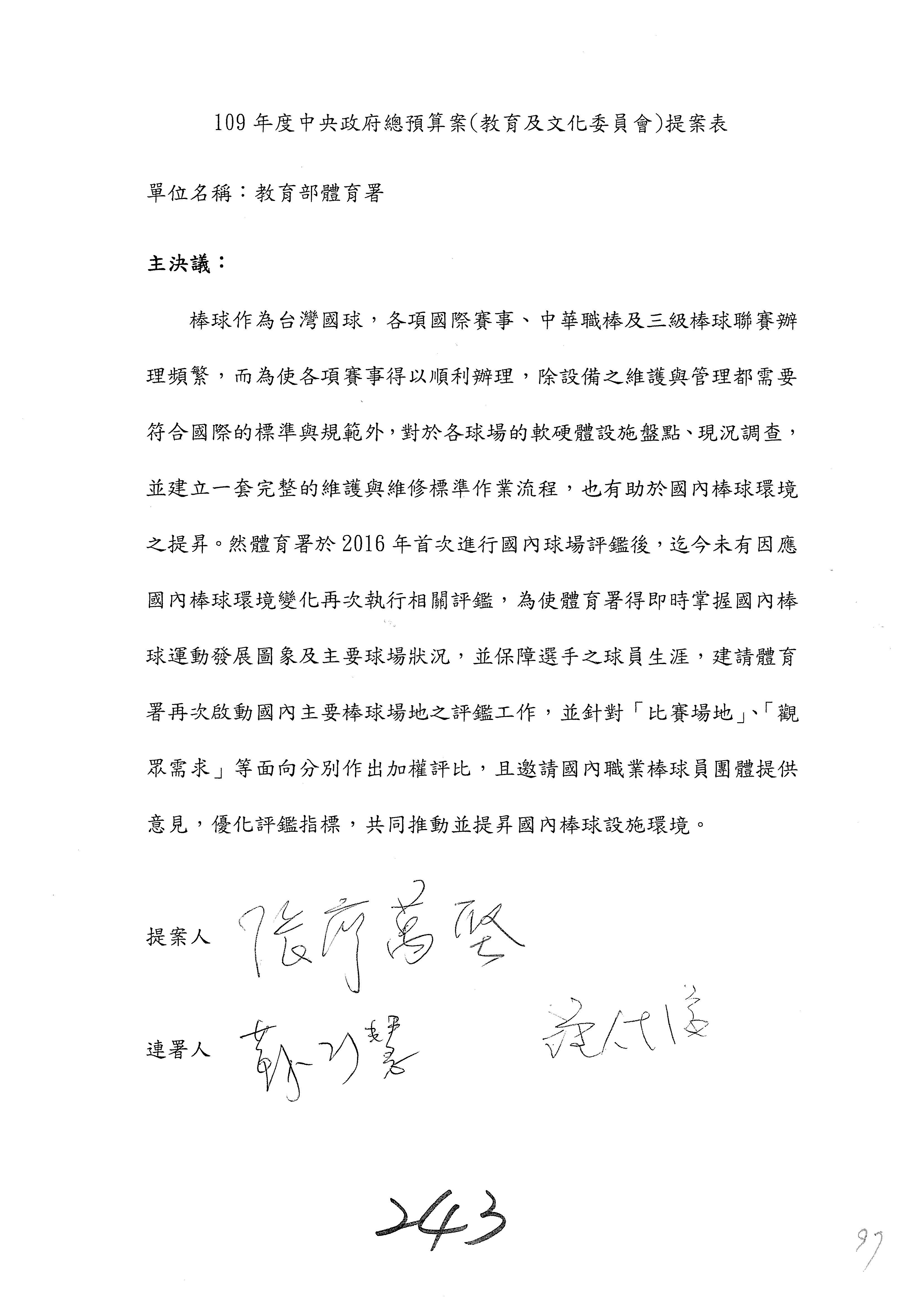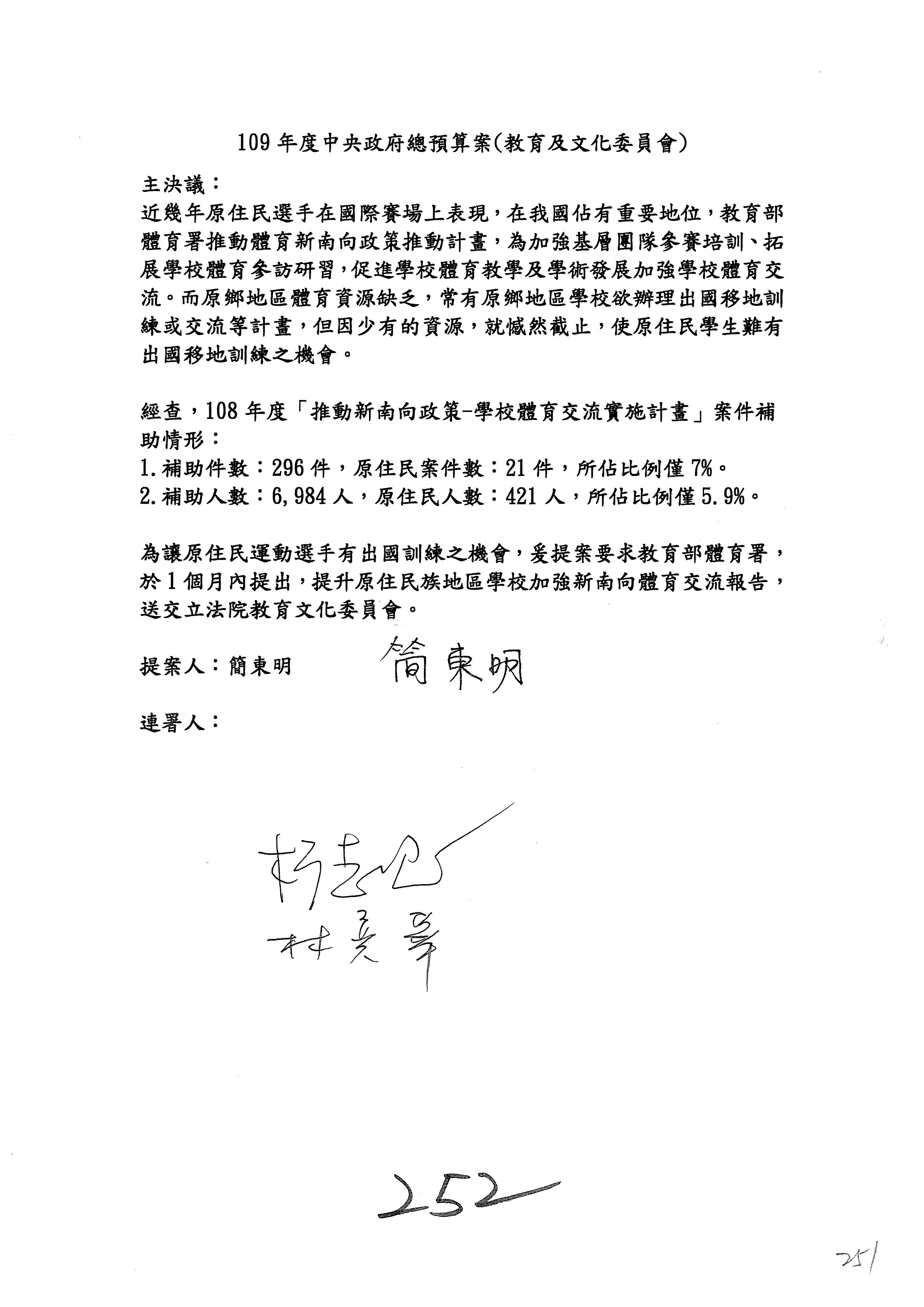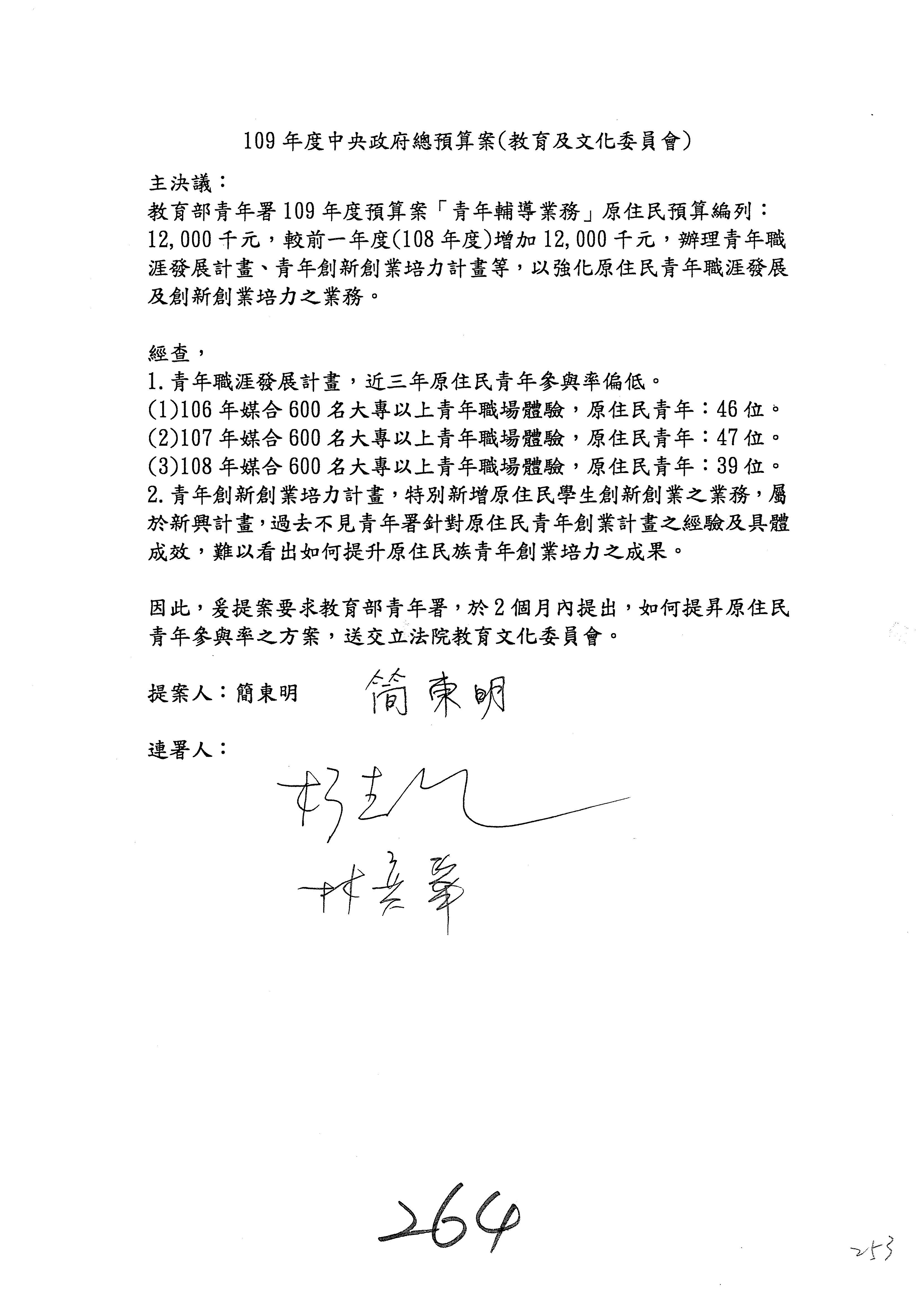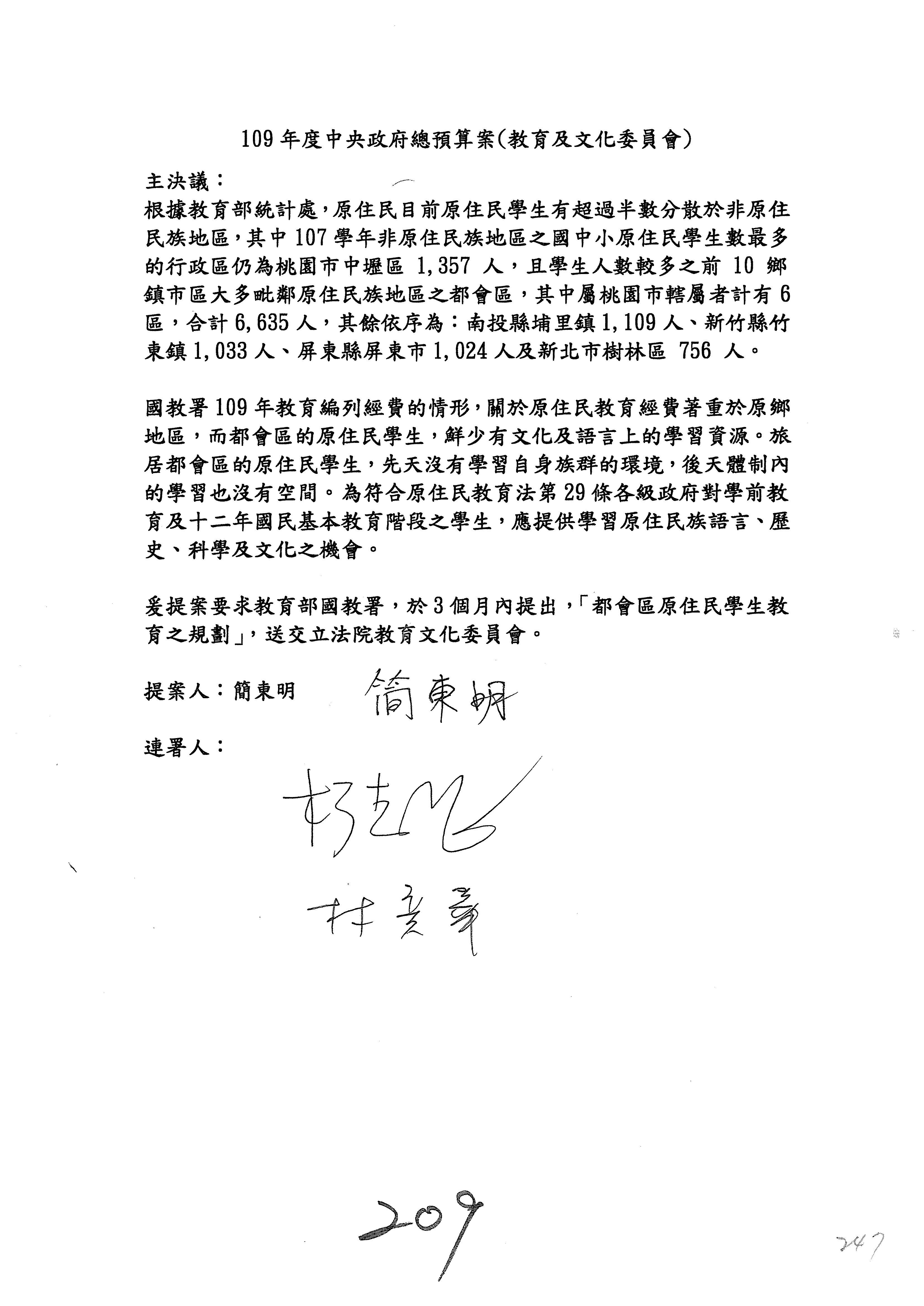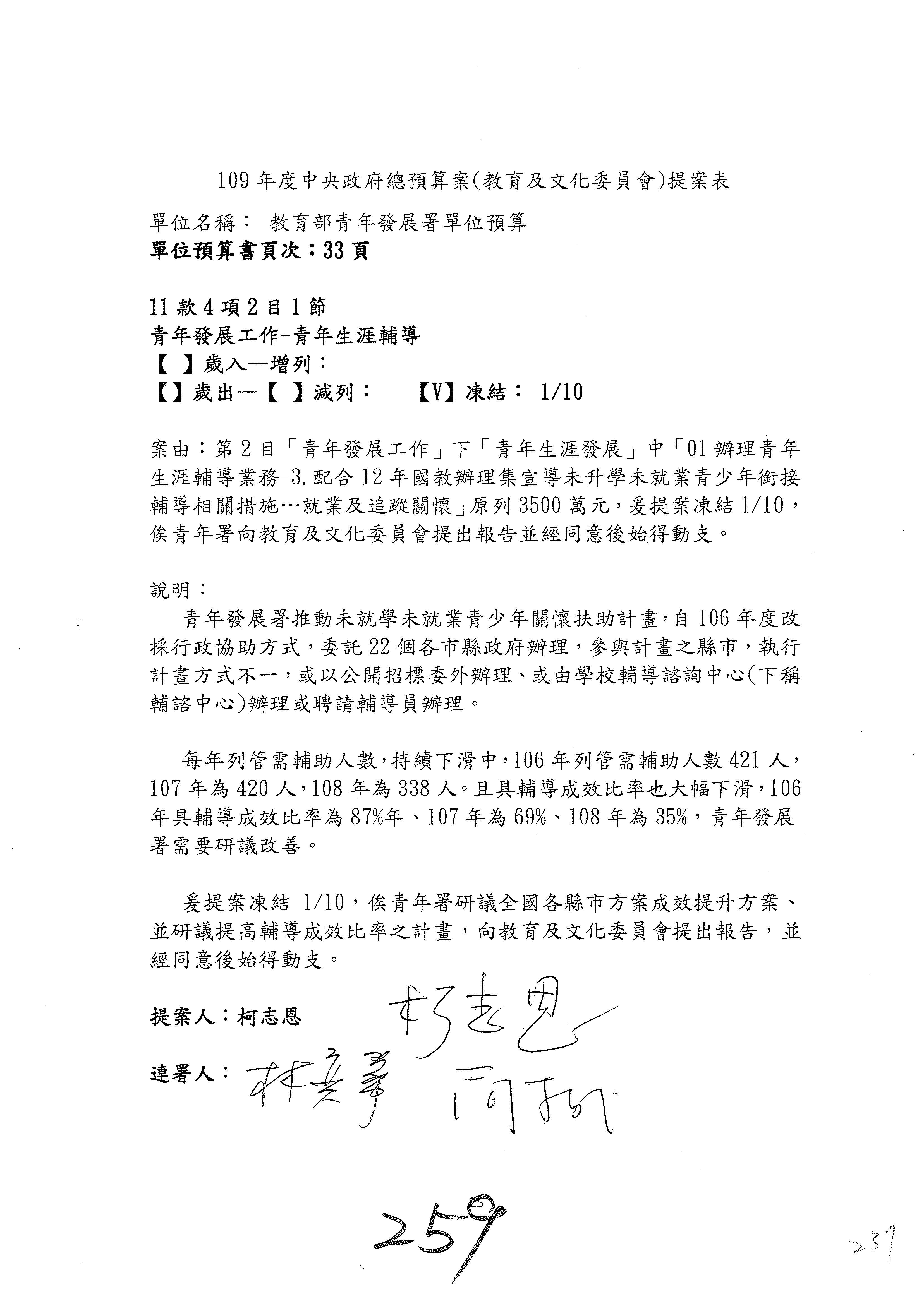 主席:好,最後一句修改為「爰提案要求教育部於三個月內向本院教委會提出書面報告」,修正通過。