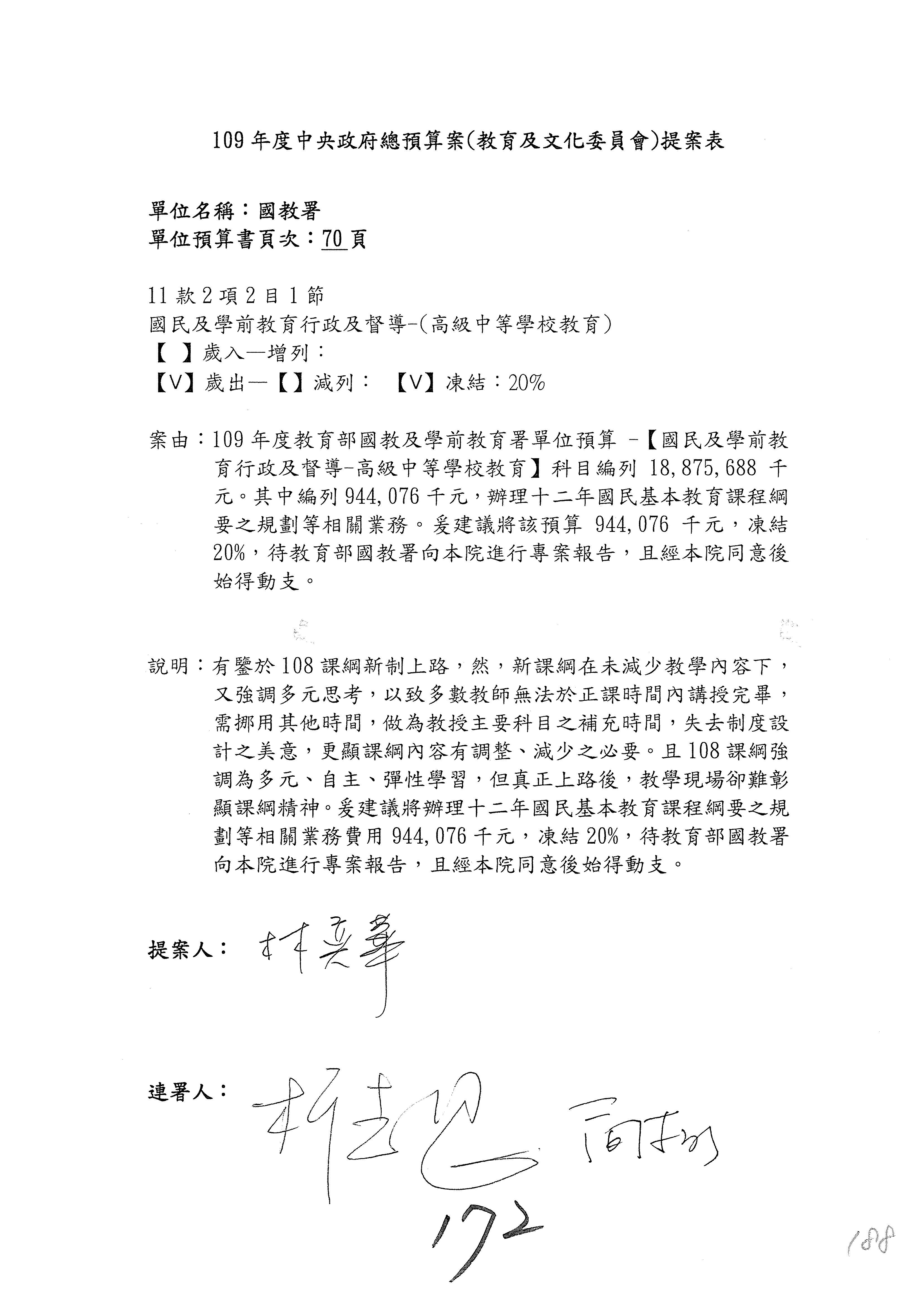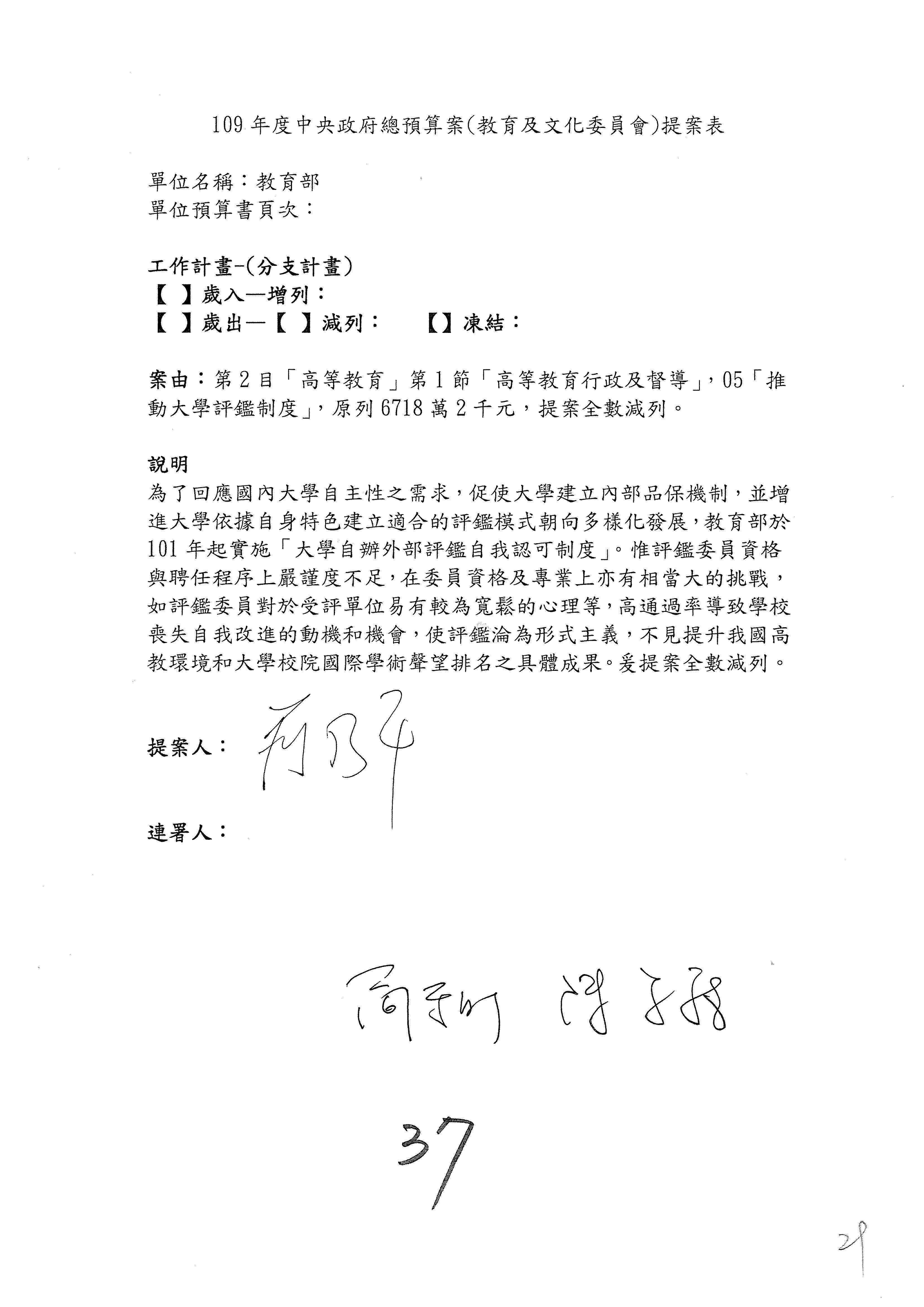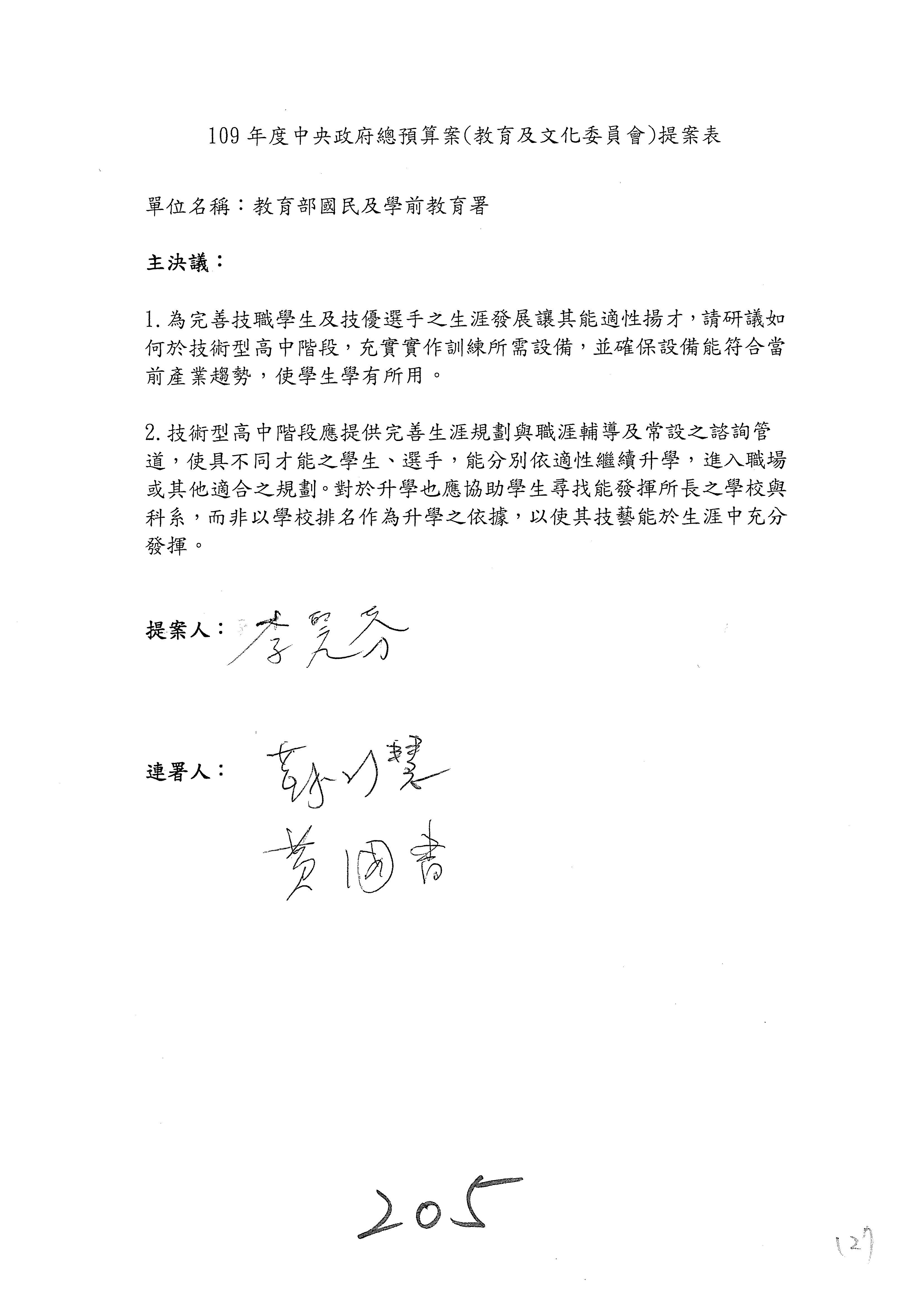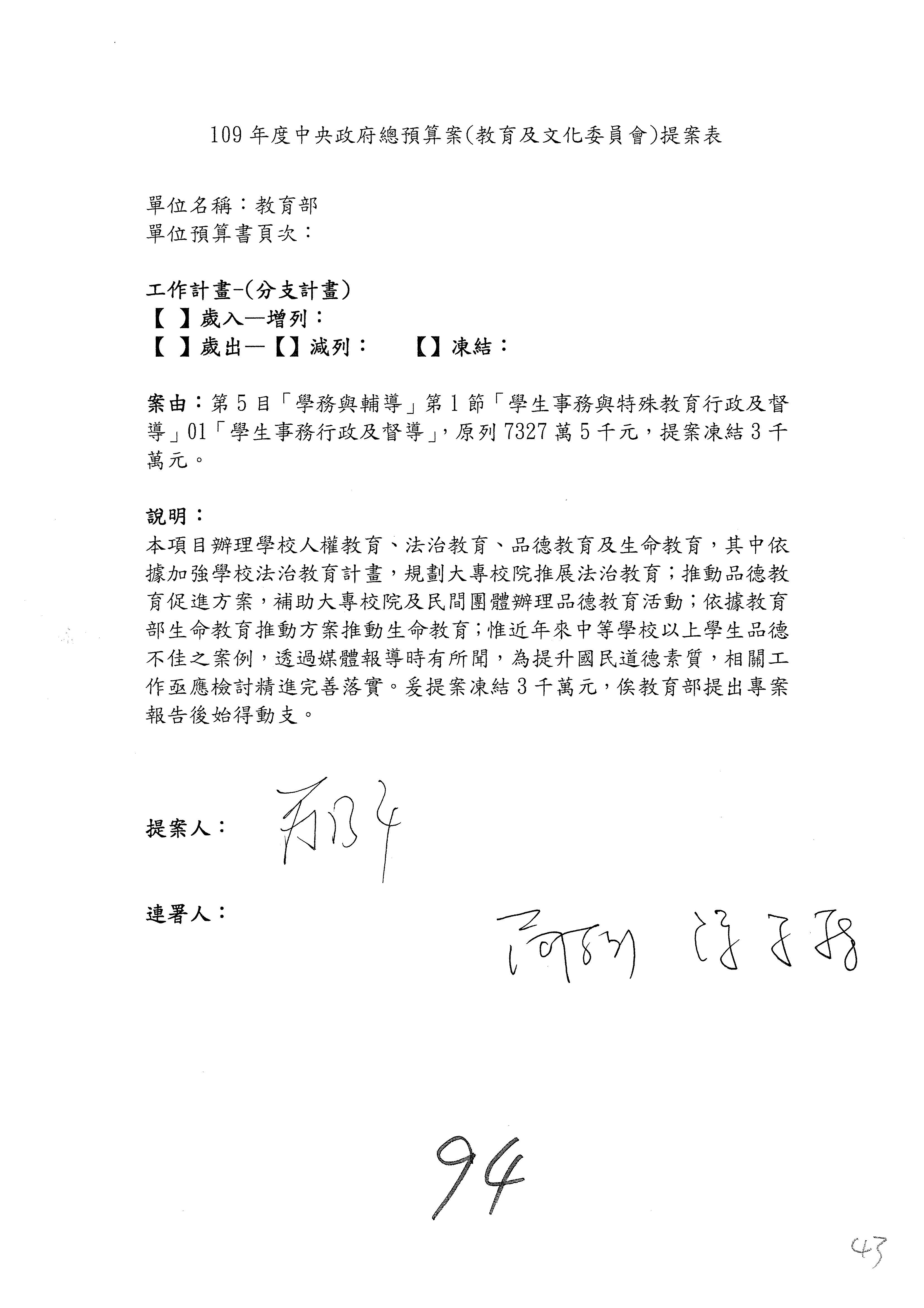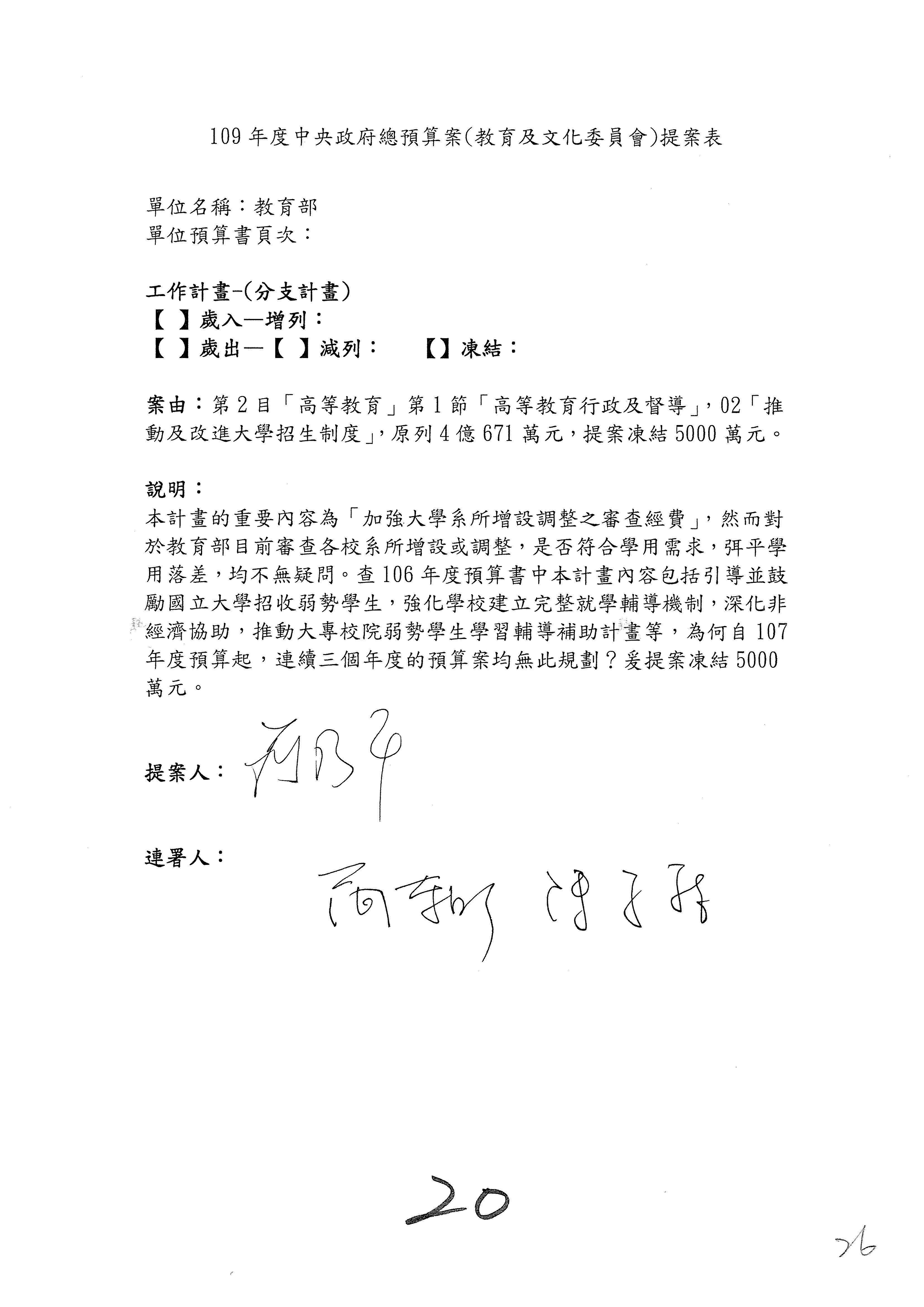 主席:好,最後一句修改為「爰提案要求教育部於三個月內向本院教委會提出書面報告」,修正通過。