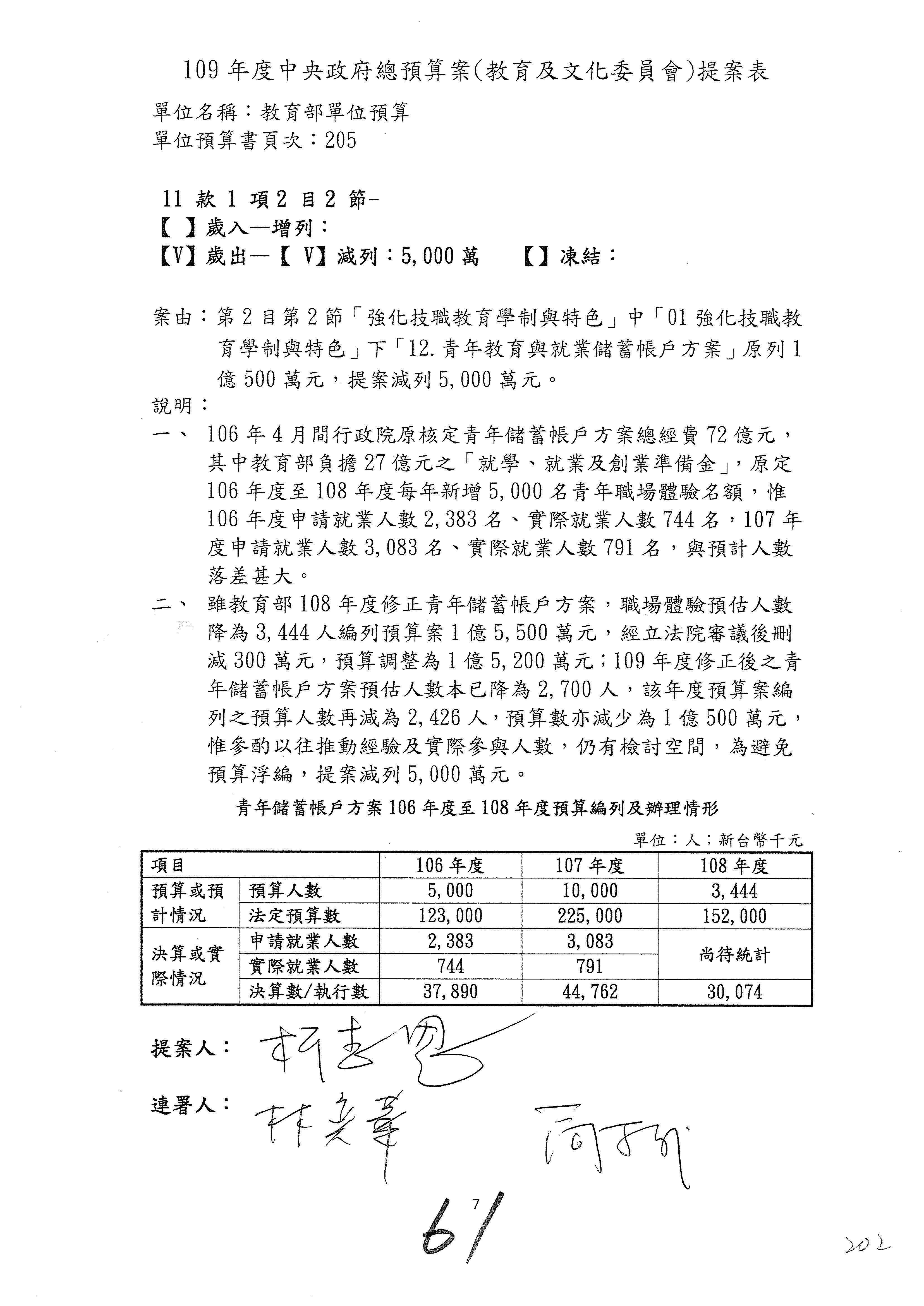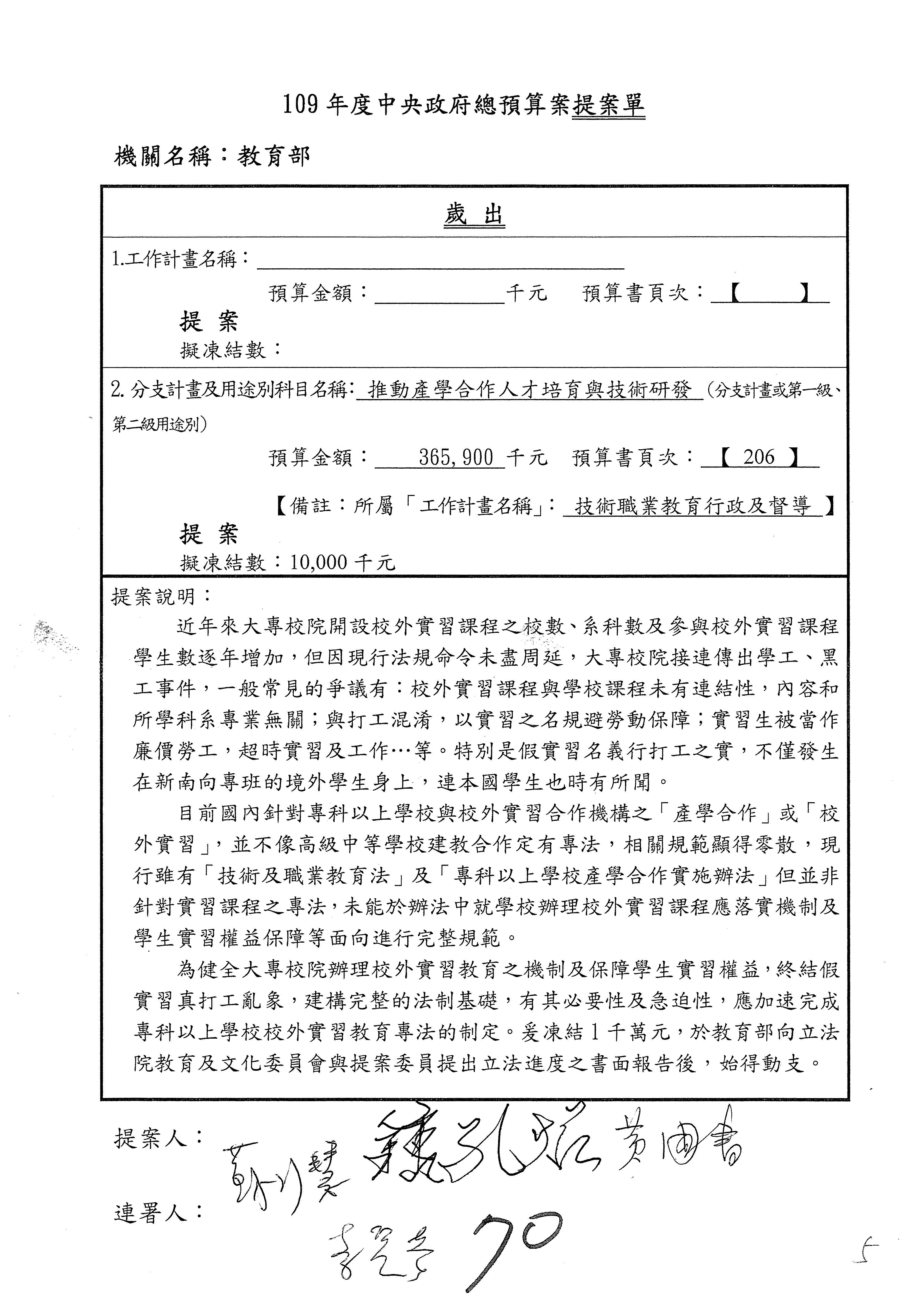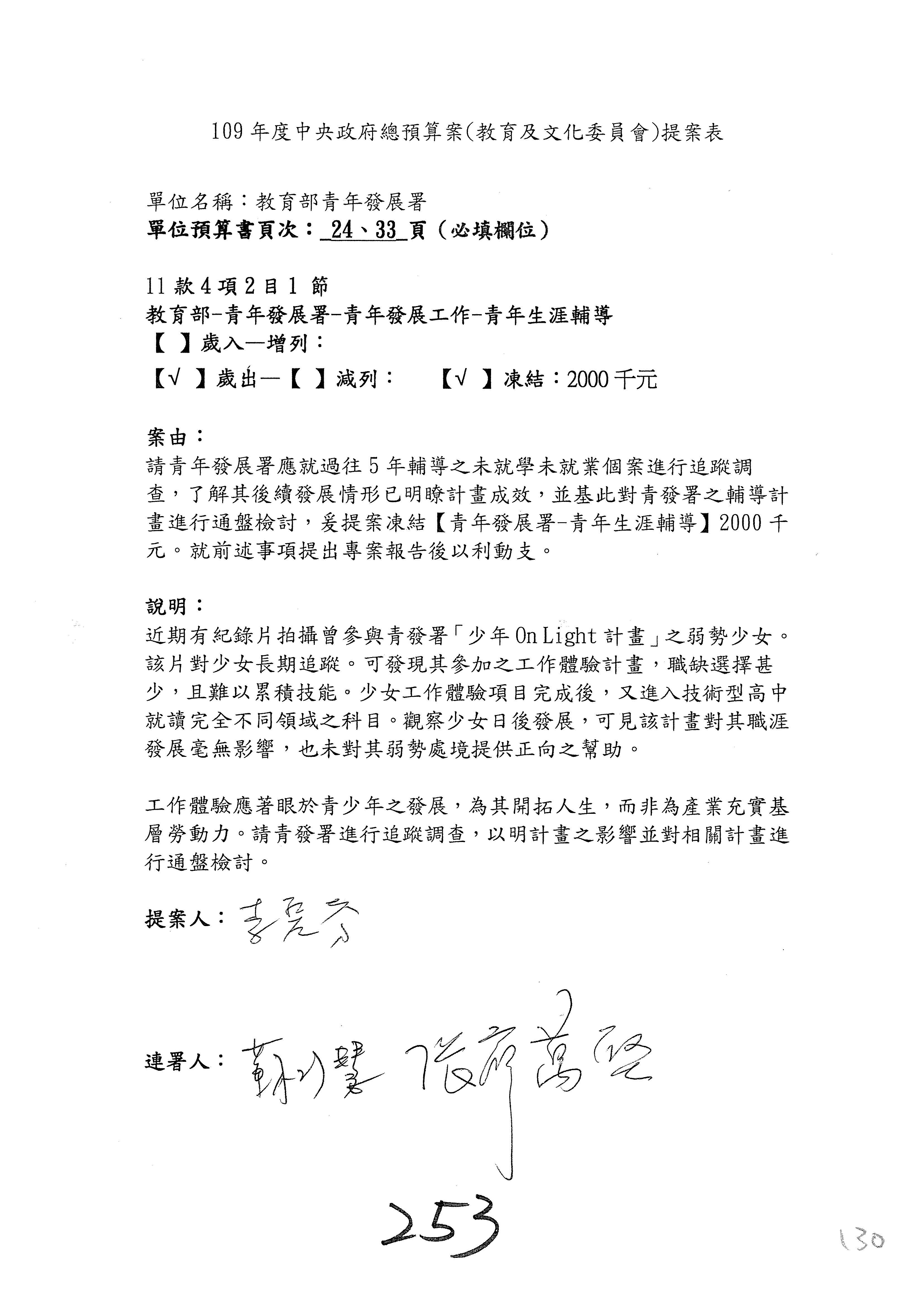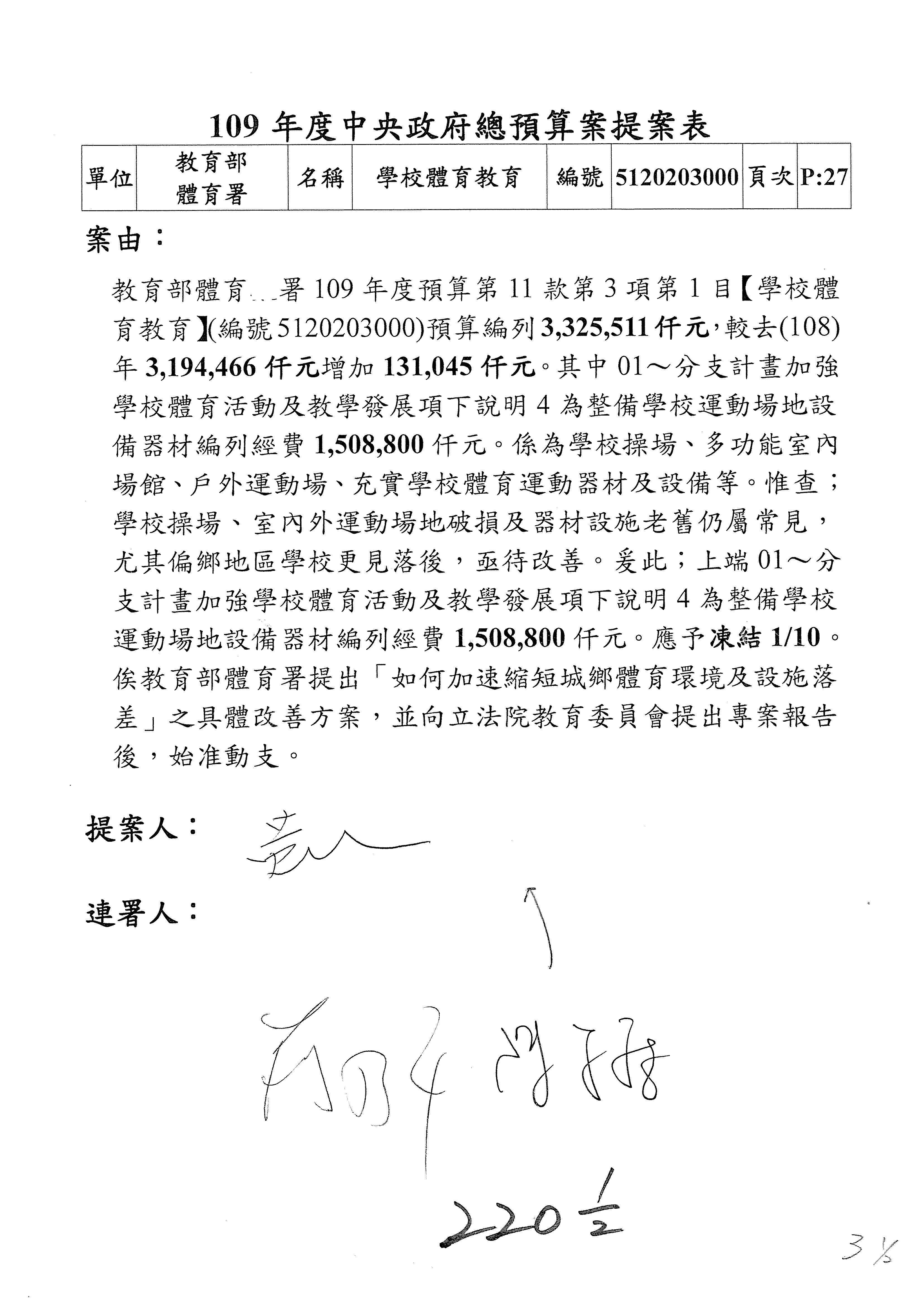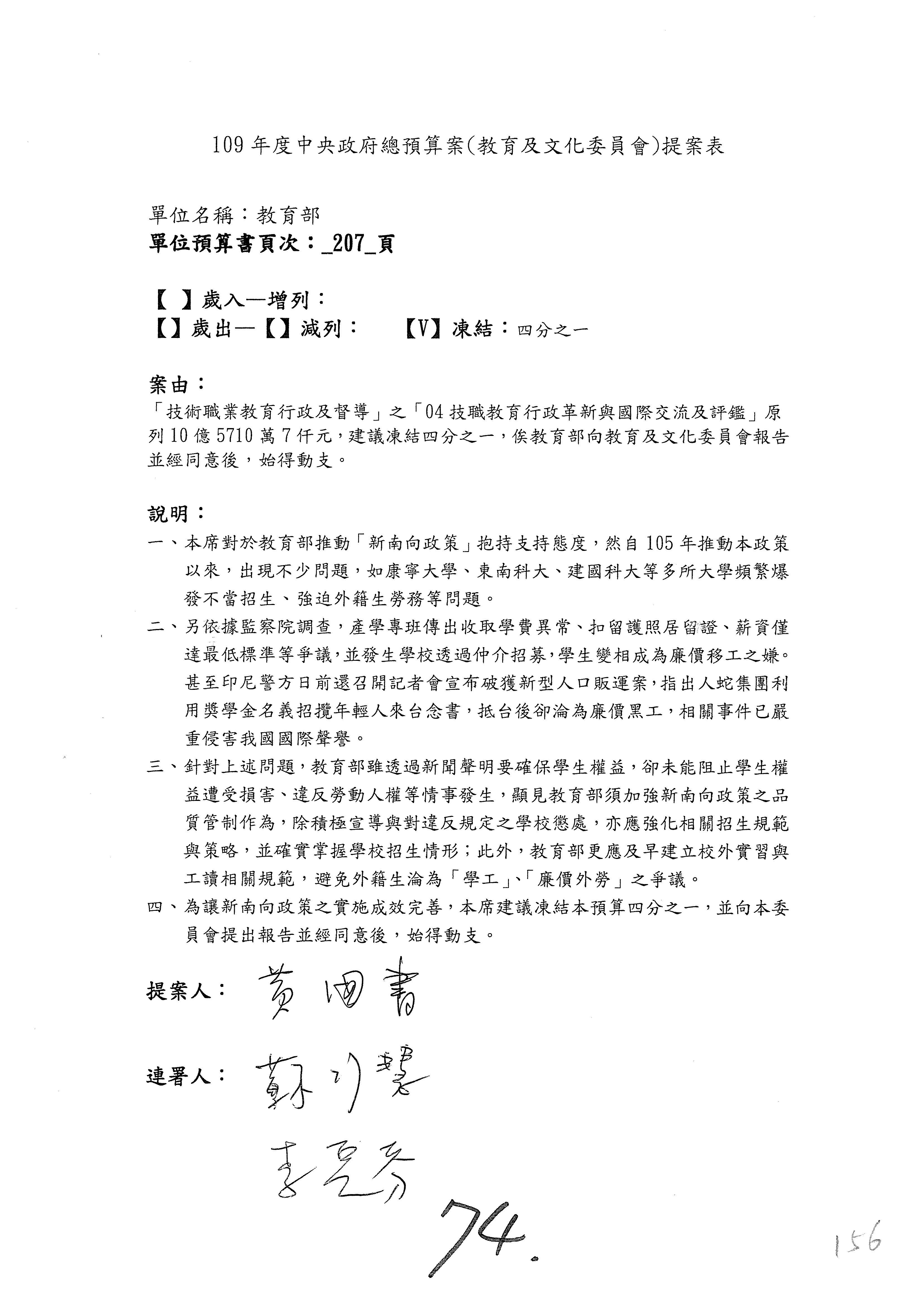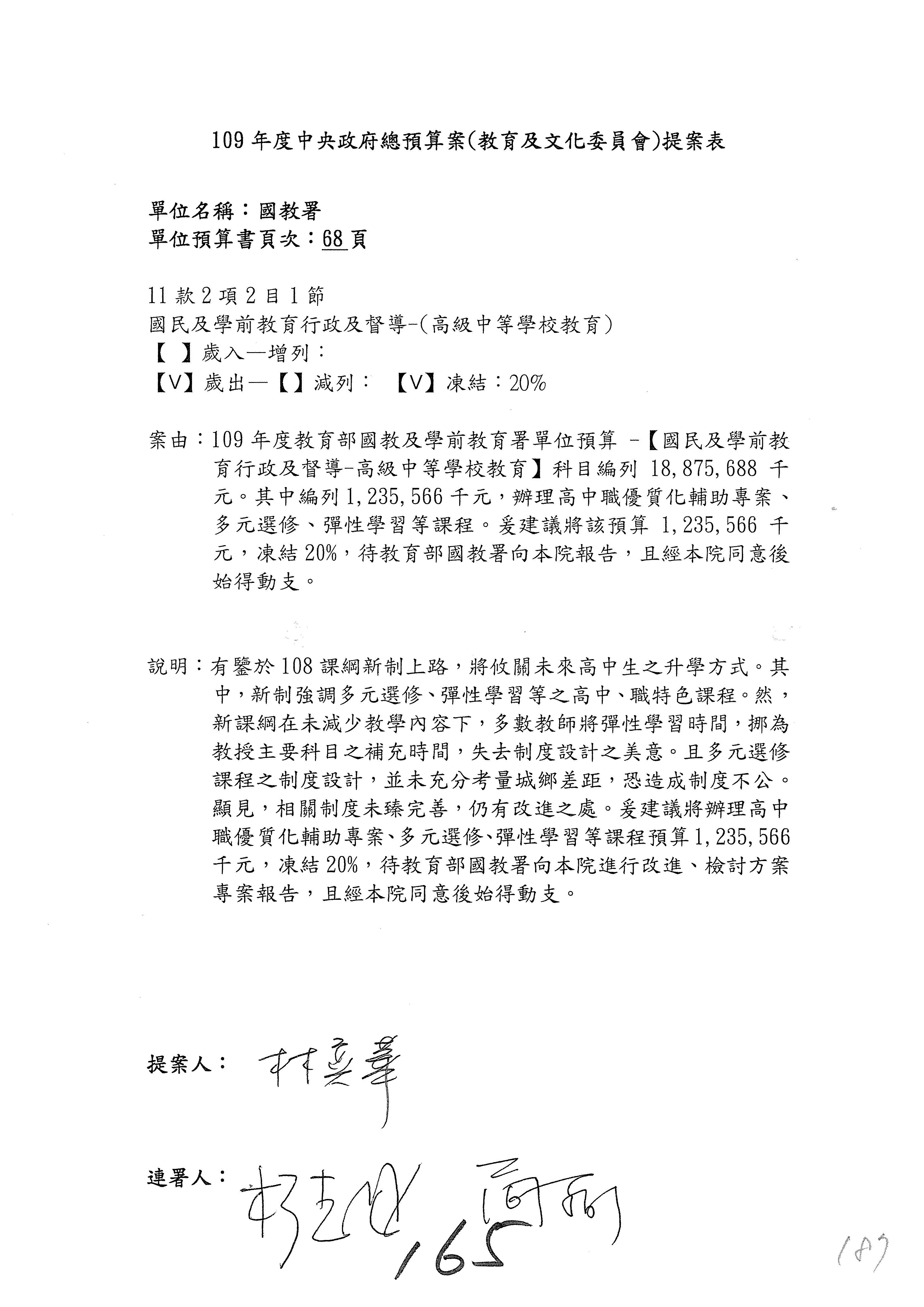 主席:好,最後一句修改為「爰提案要求教育部於三個月內向本院教委會提出書面報告」,修正通過。