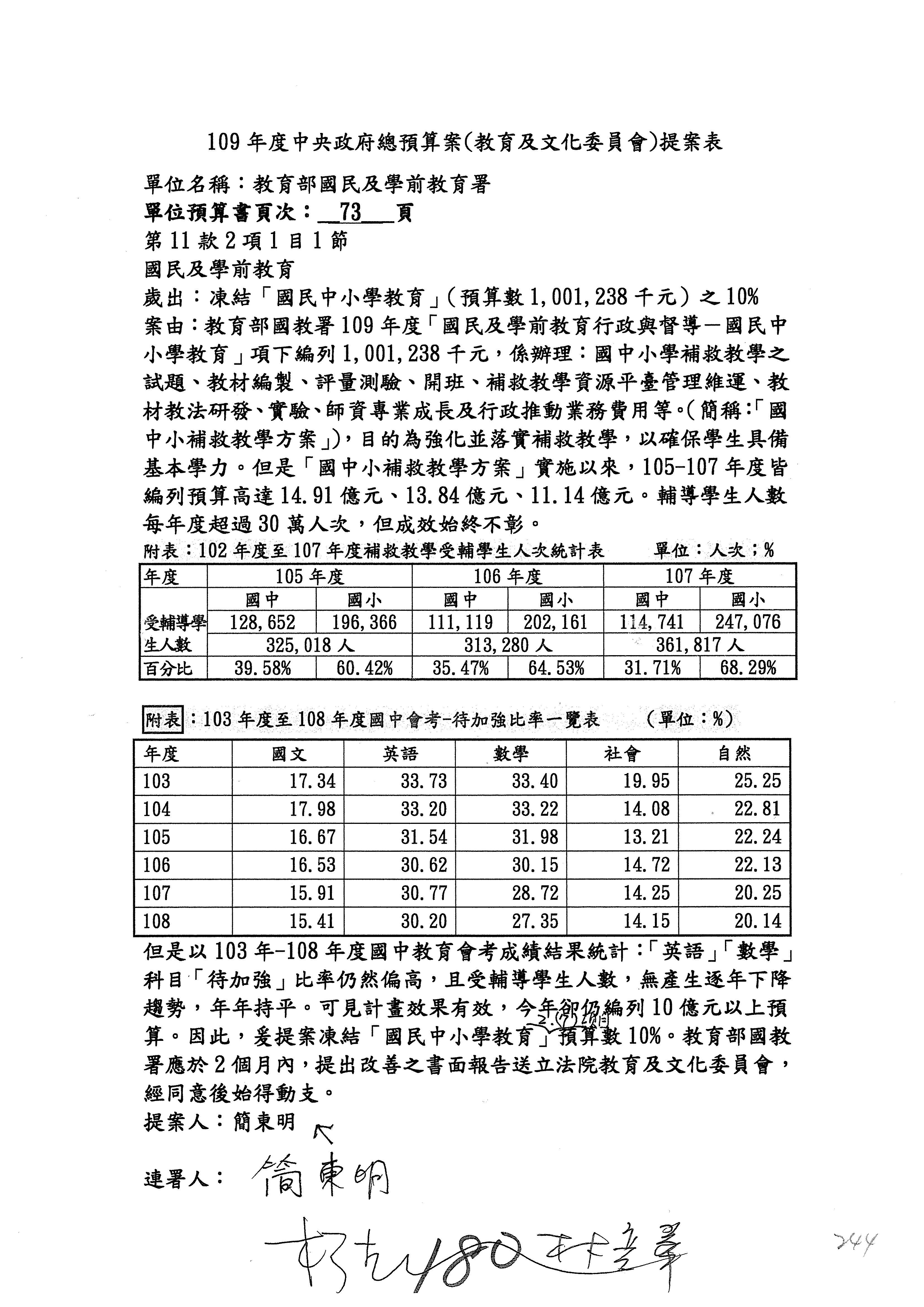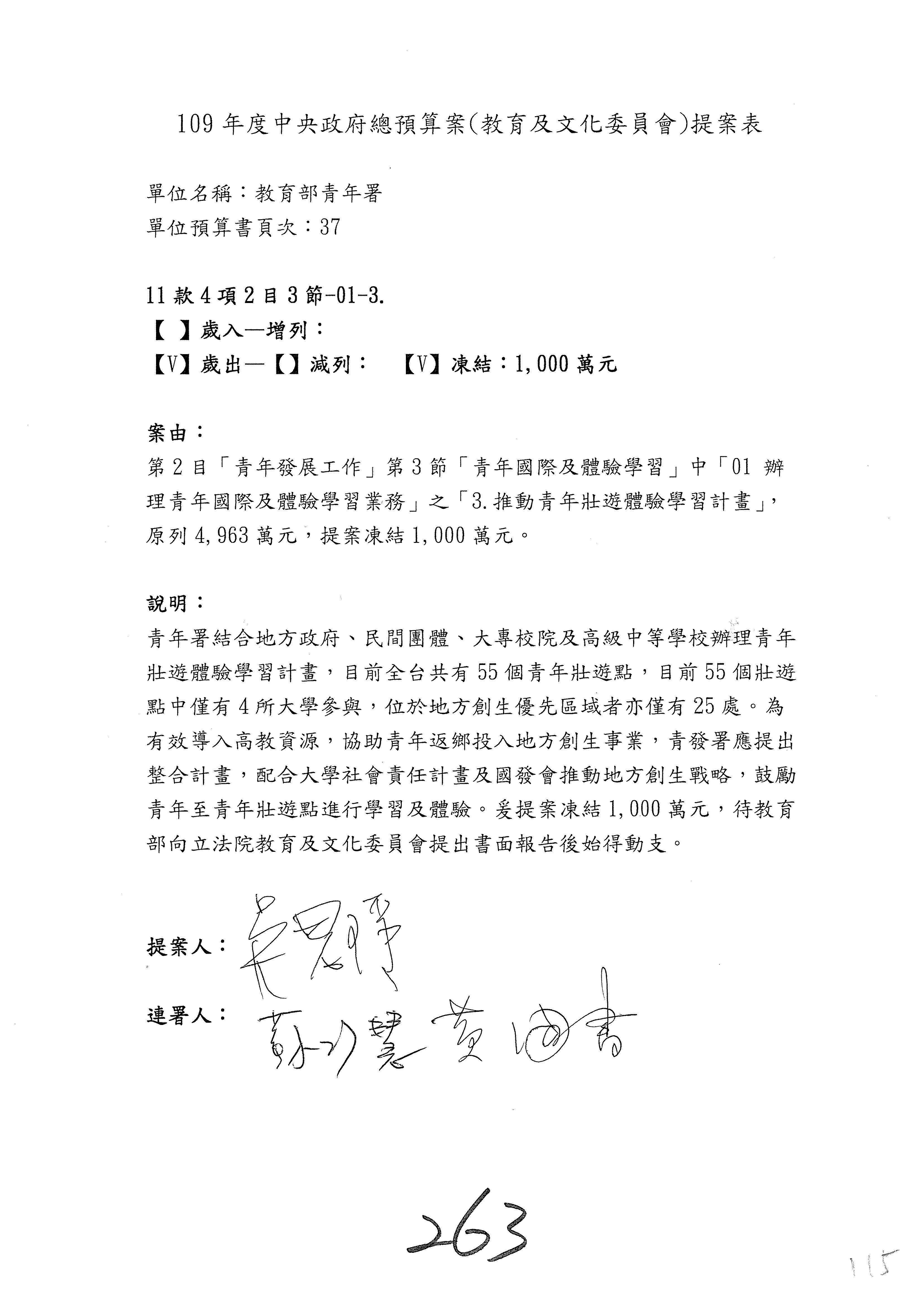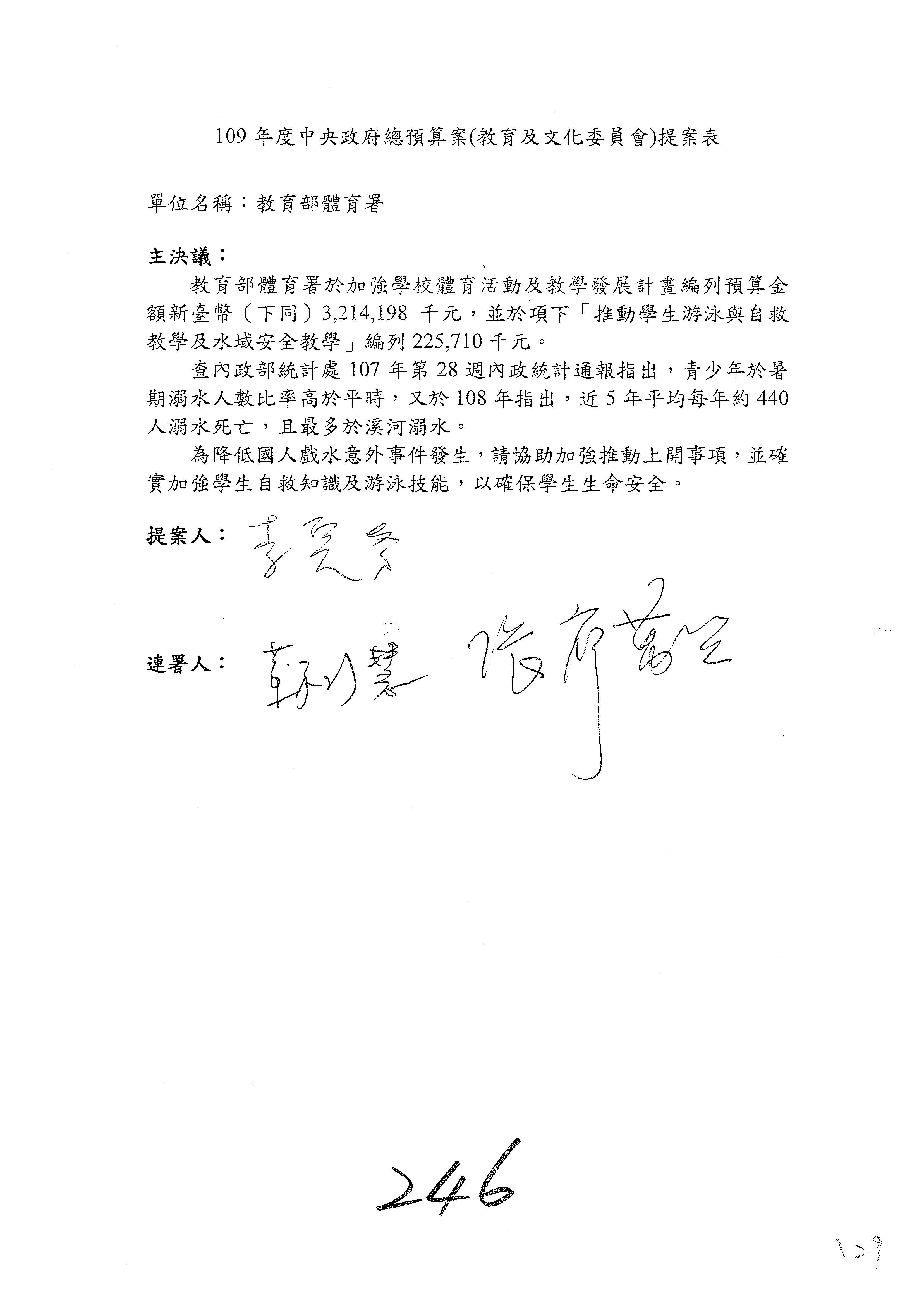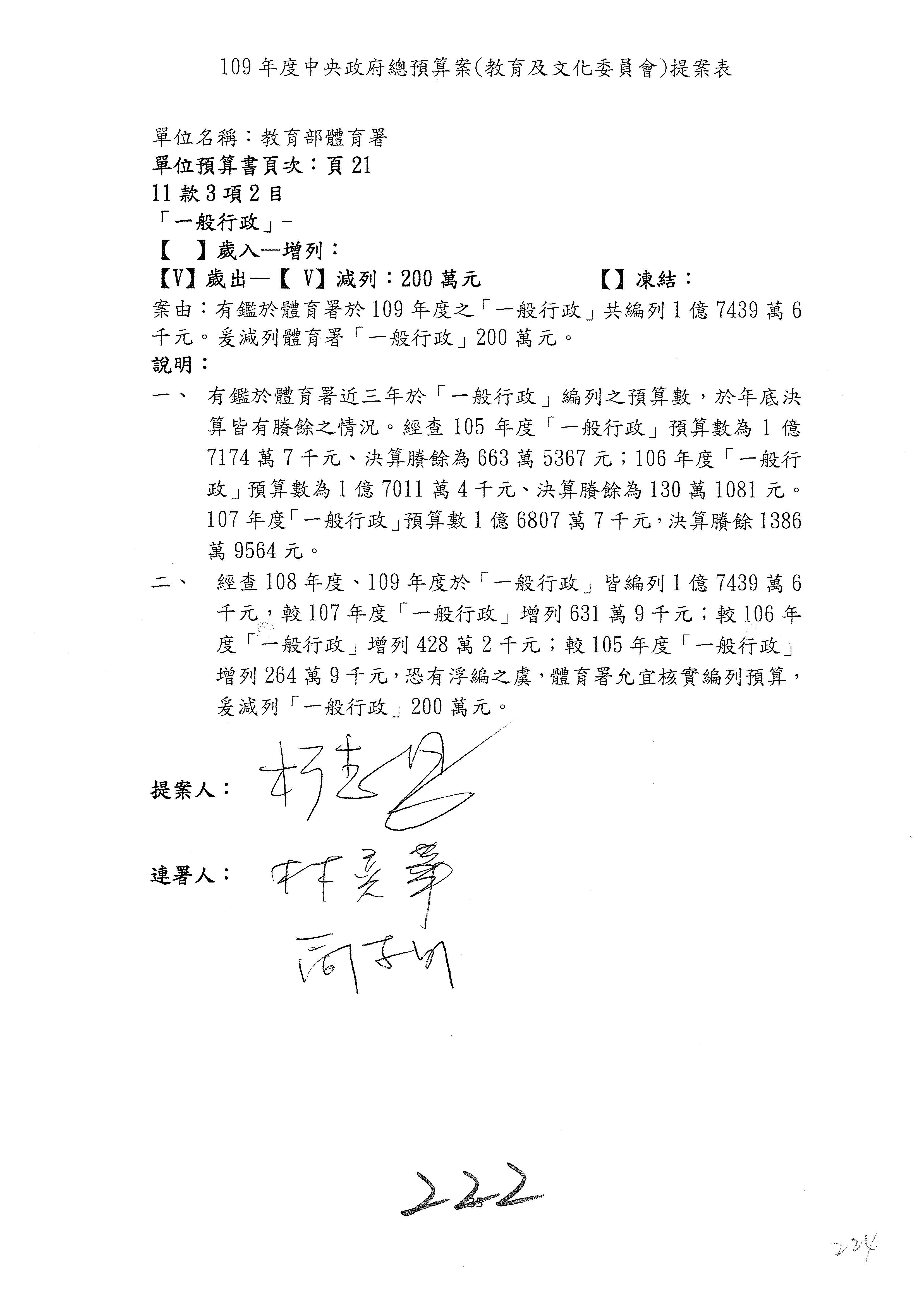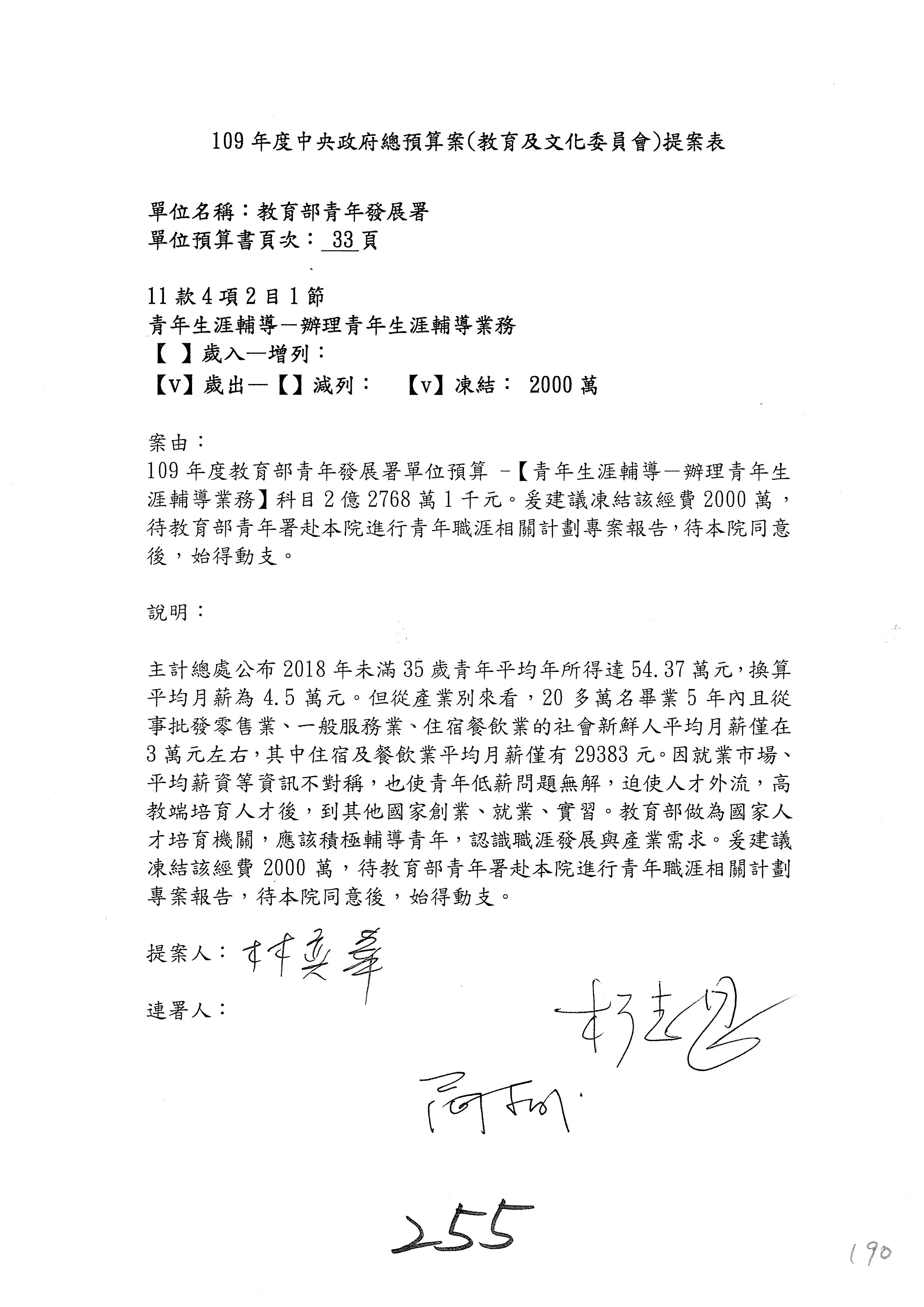 主席:好,最後一句修改為「爰提案要求教育部於三個月內向本院教委會提出書面報告」,修正通過。