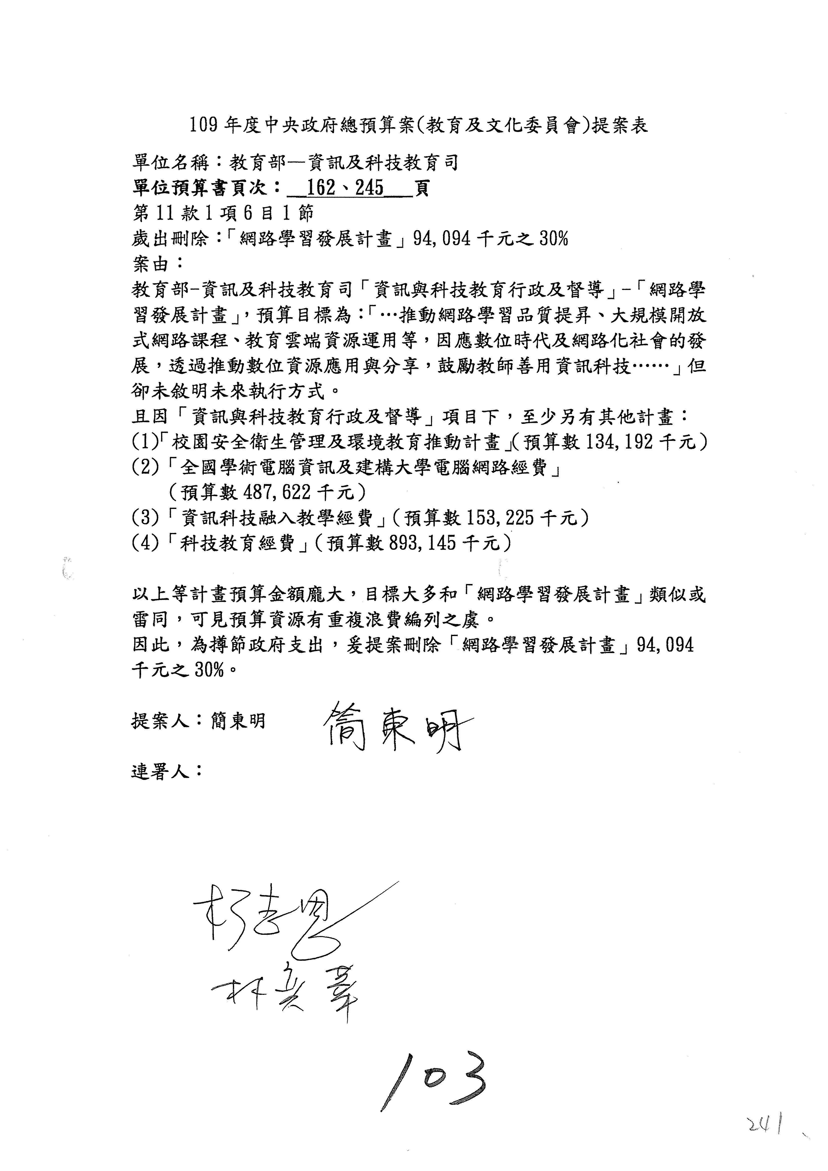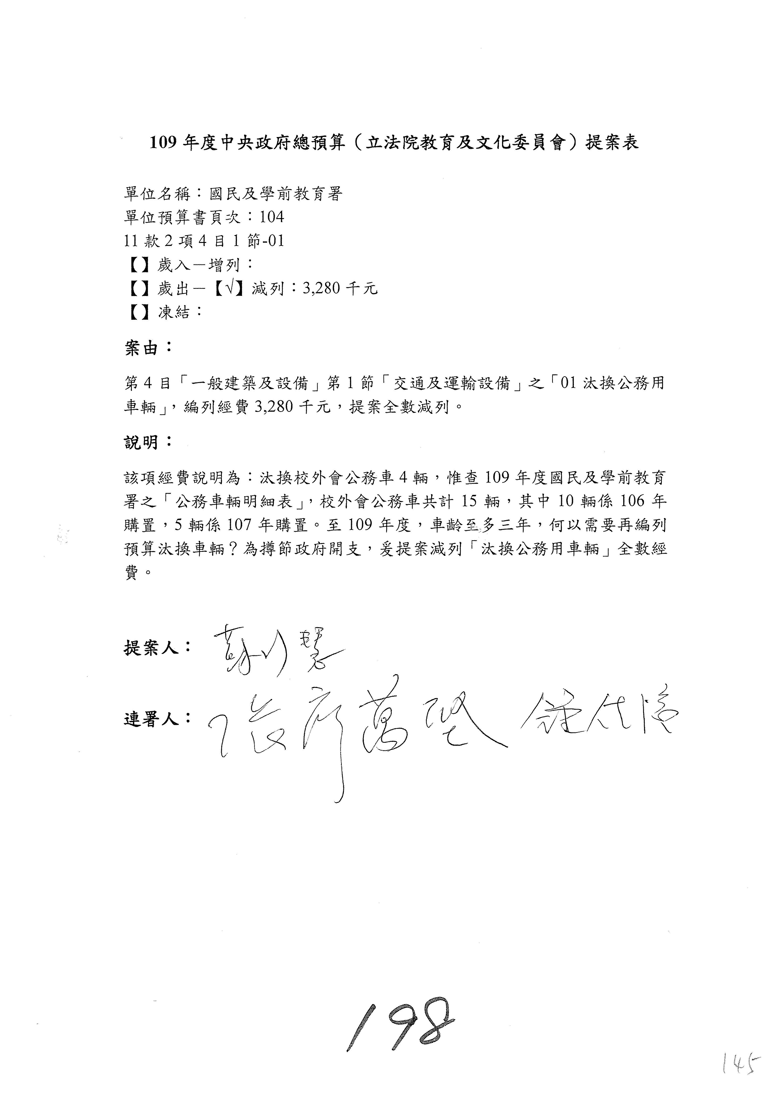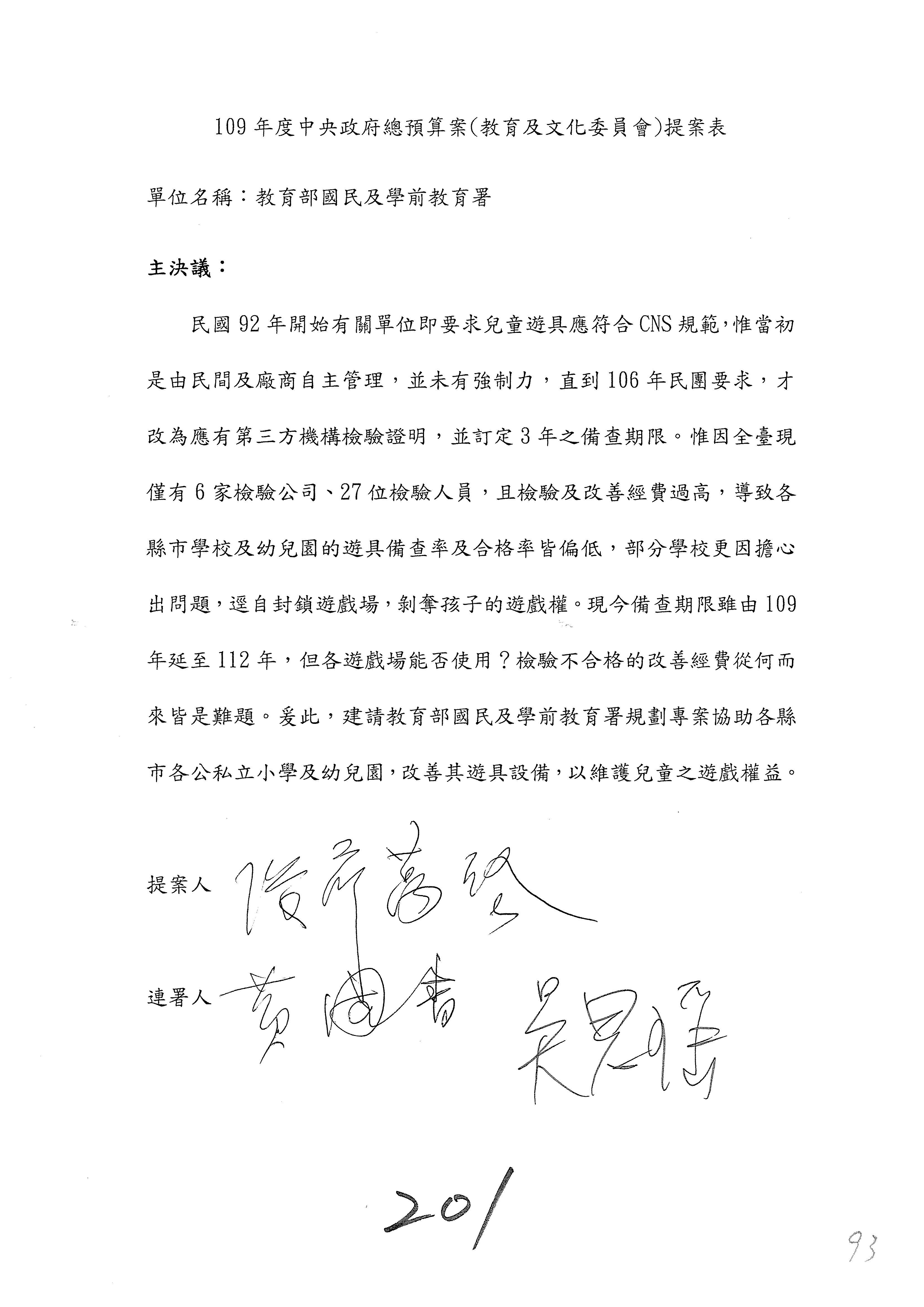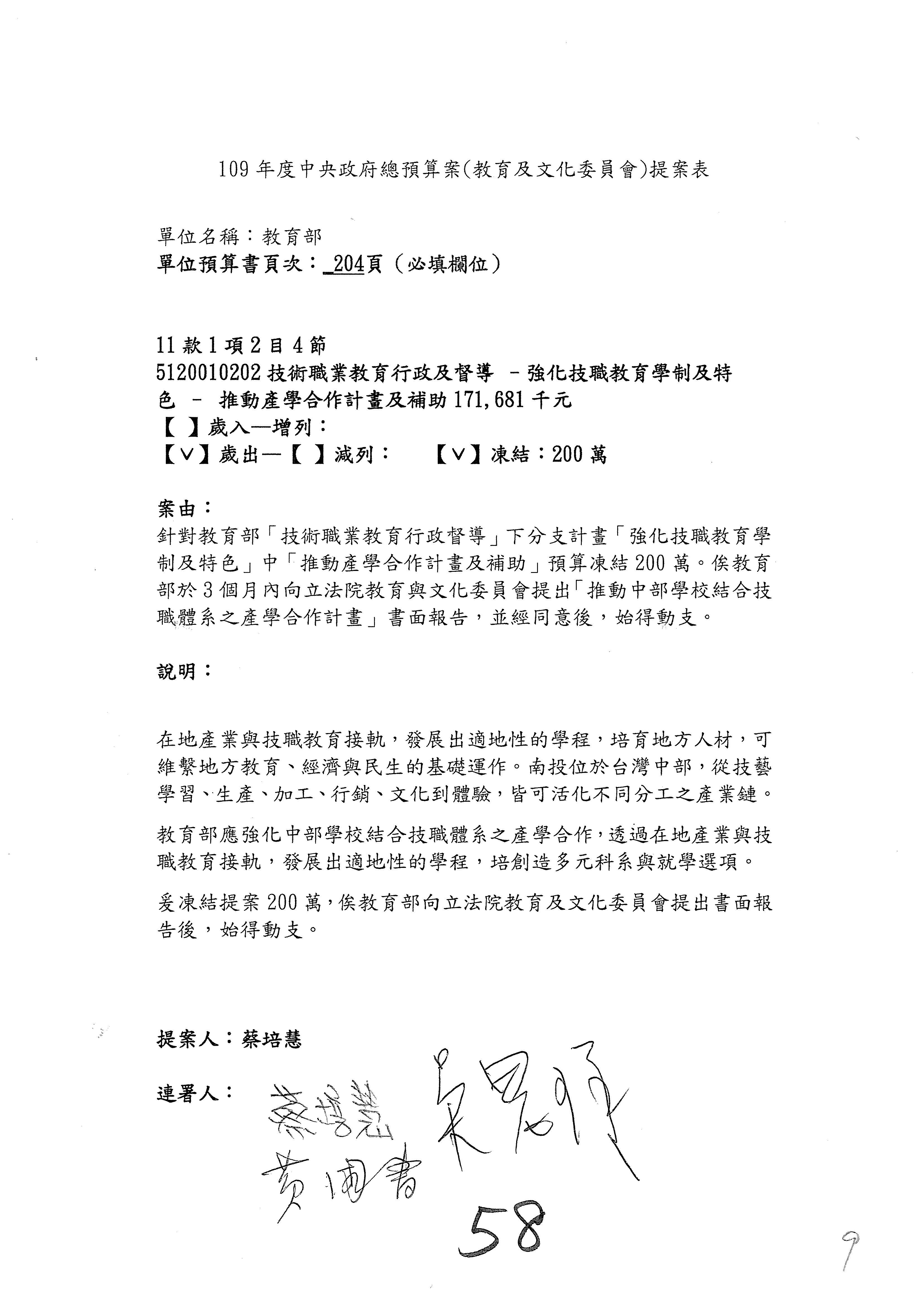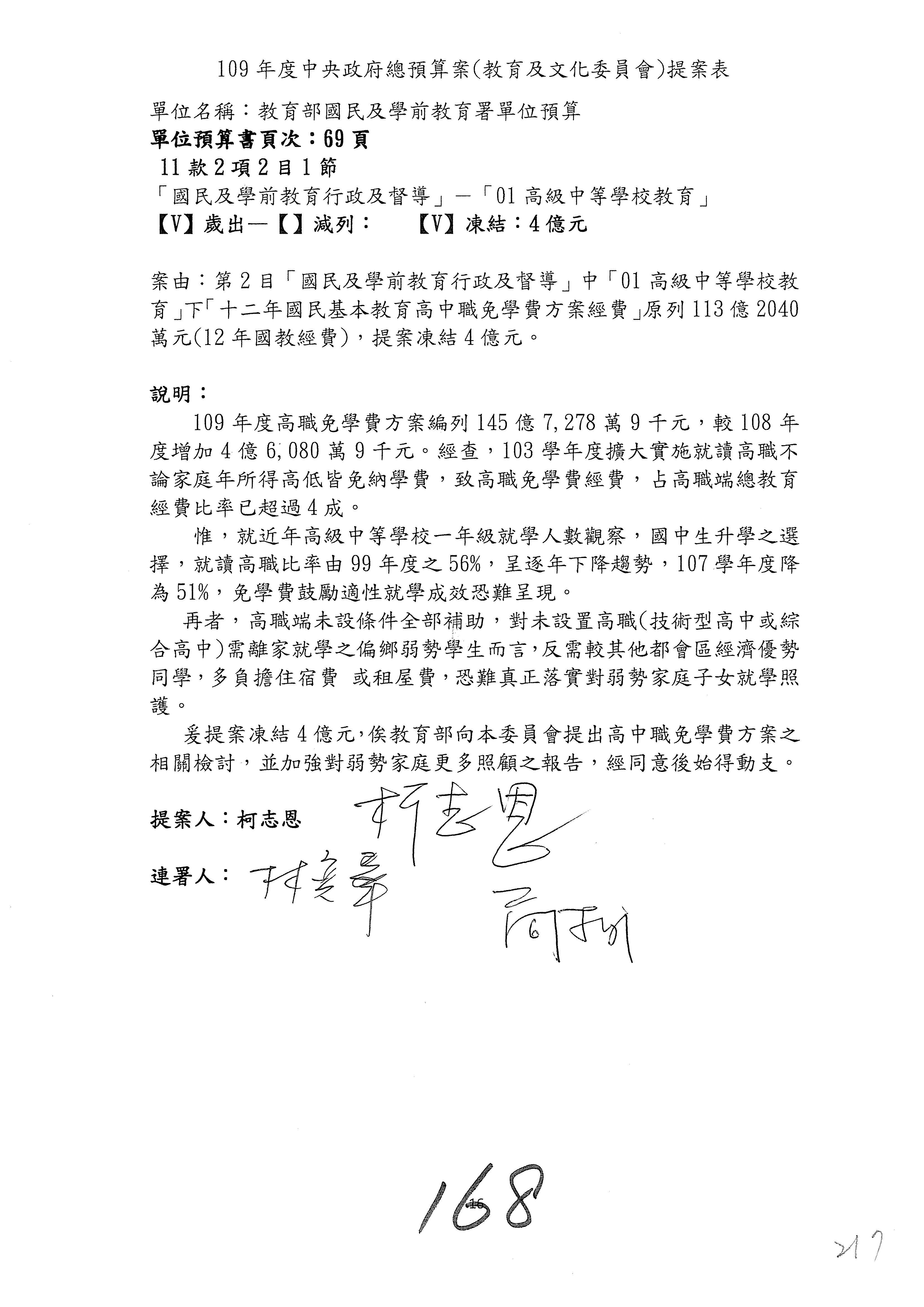 主席:好,最後一句修改為「爰提案要求教育部於三個月內向本院教委會提出書面報告」,修正通過。