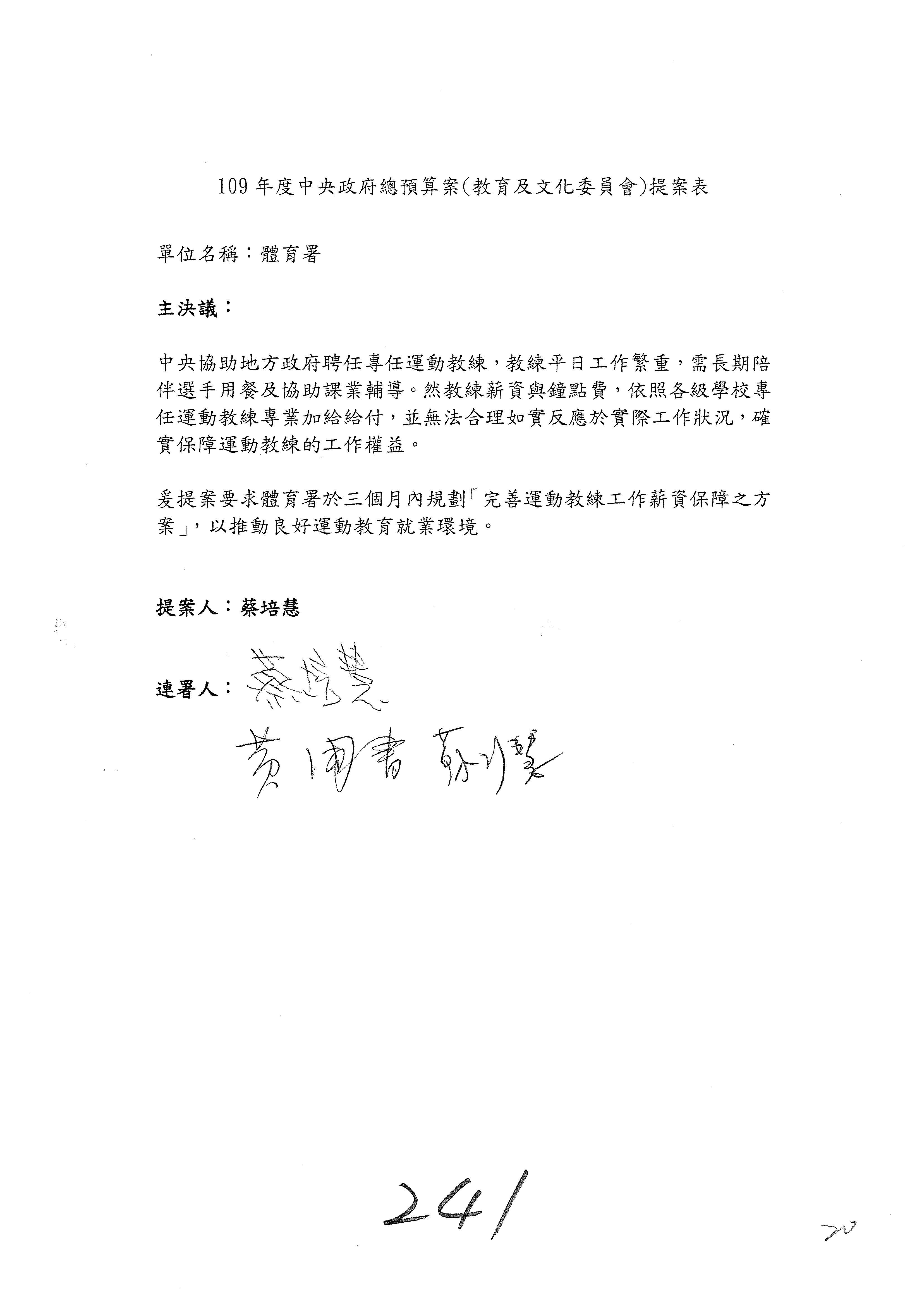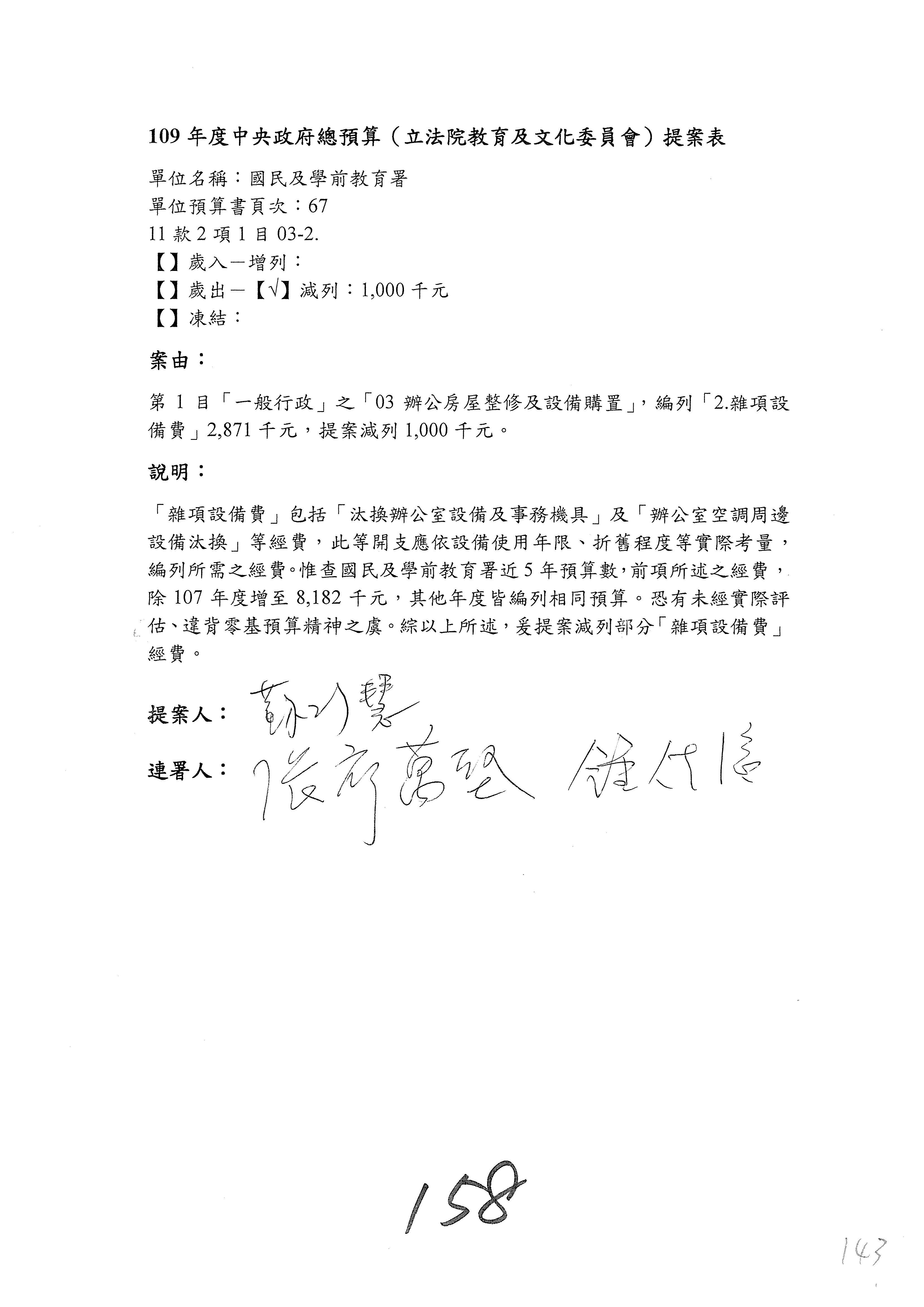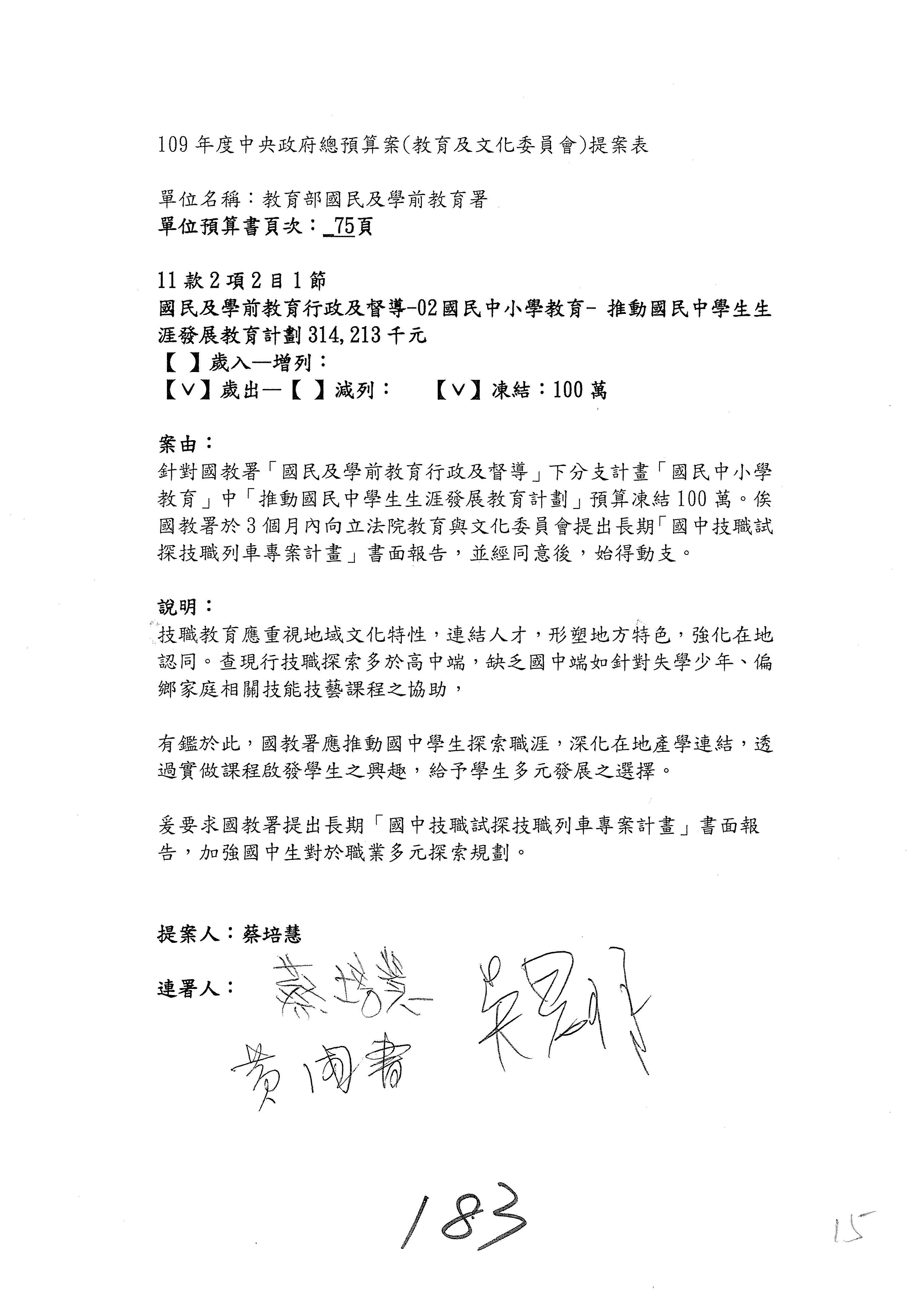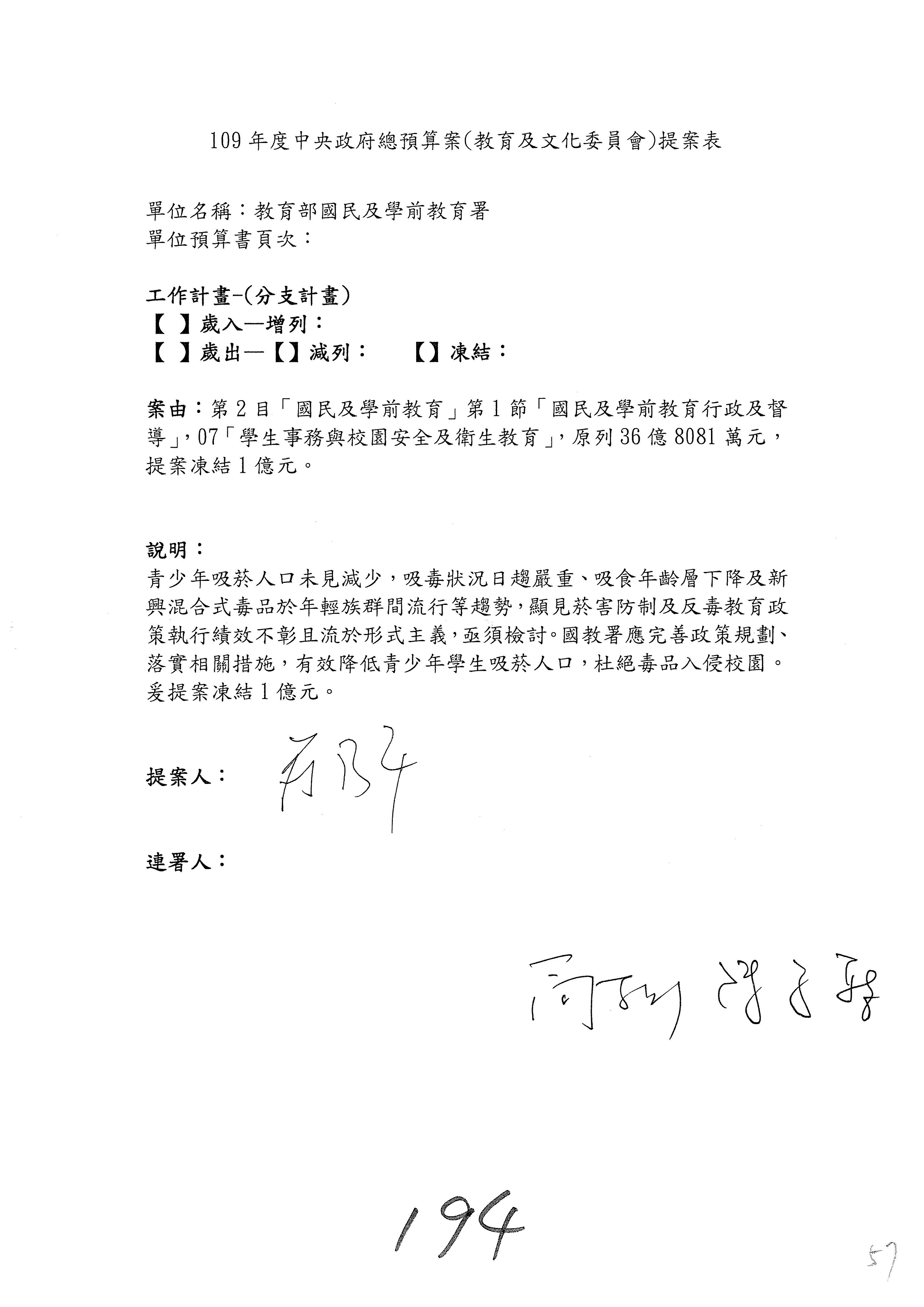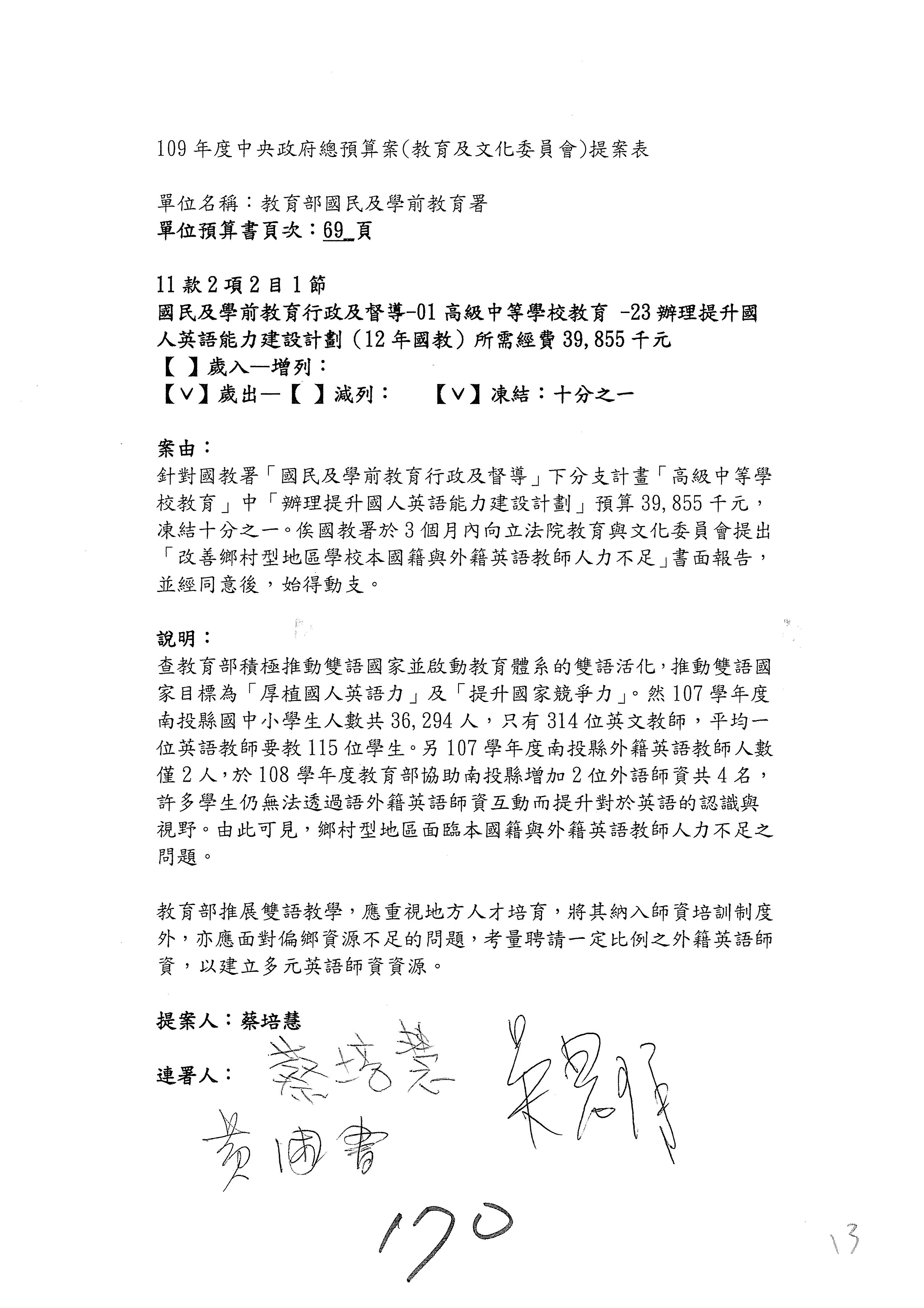 主席:好,最後一句修改為「爰提案要求教育部於三個月內向本院教委會提出書面報告」,修正通過。