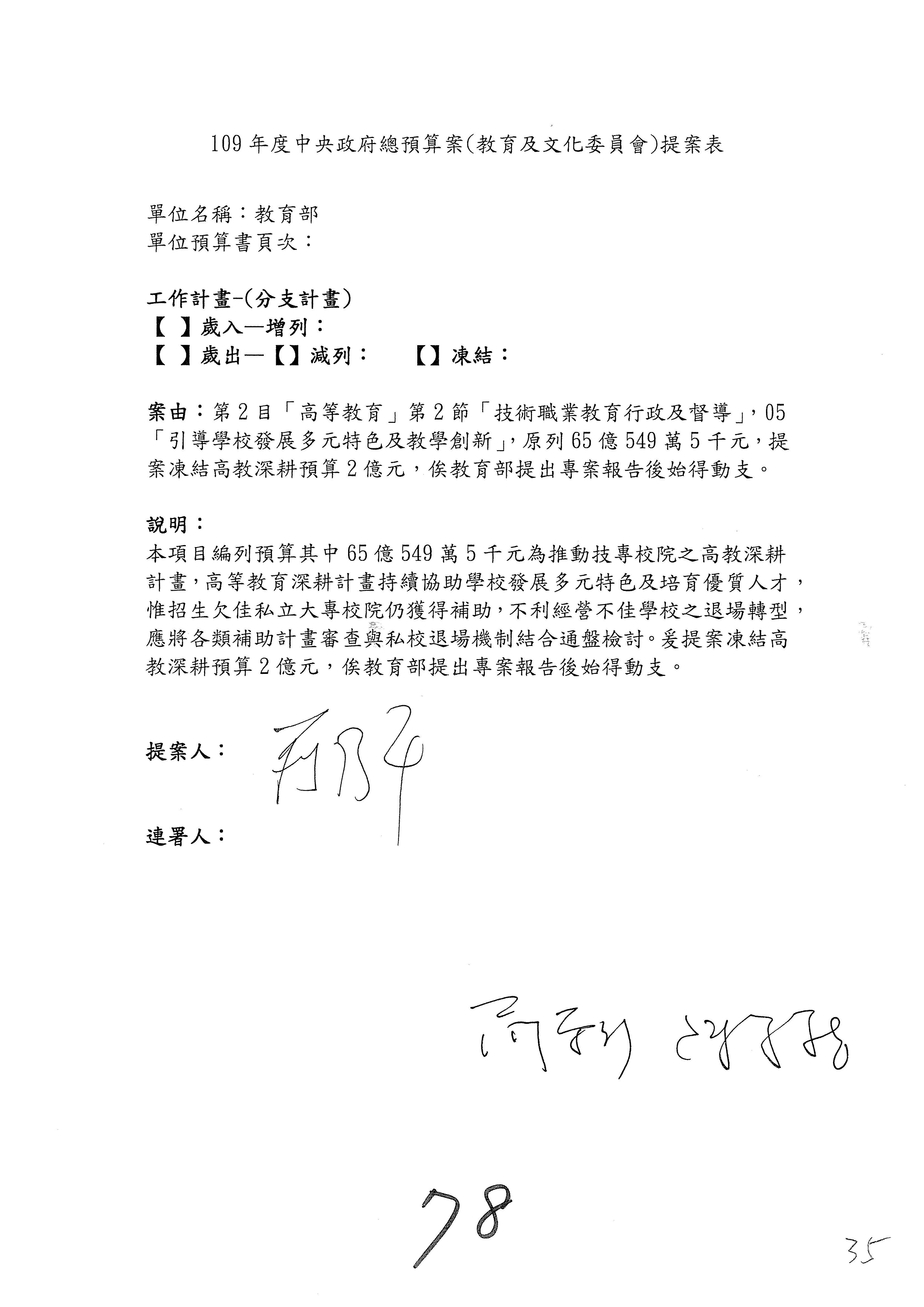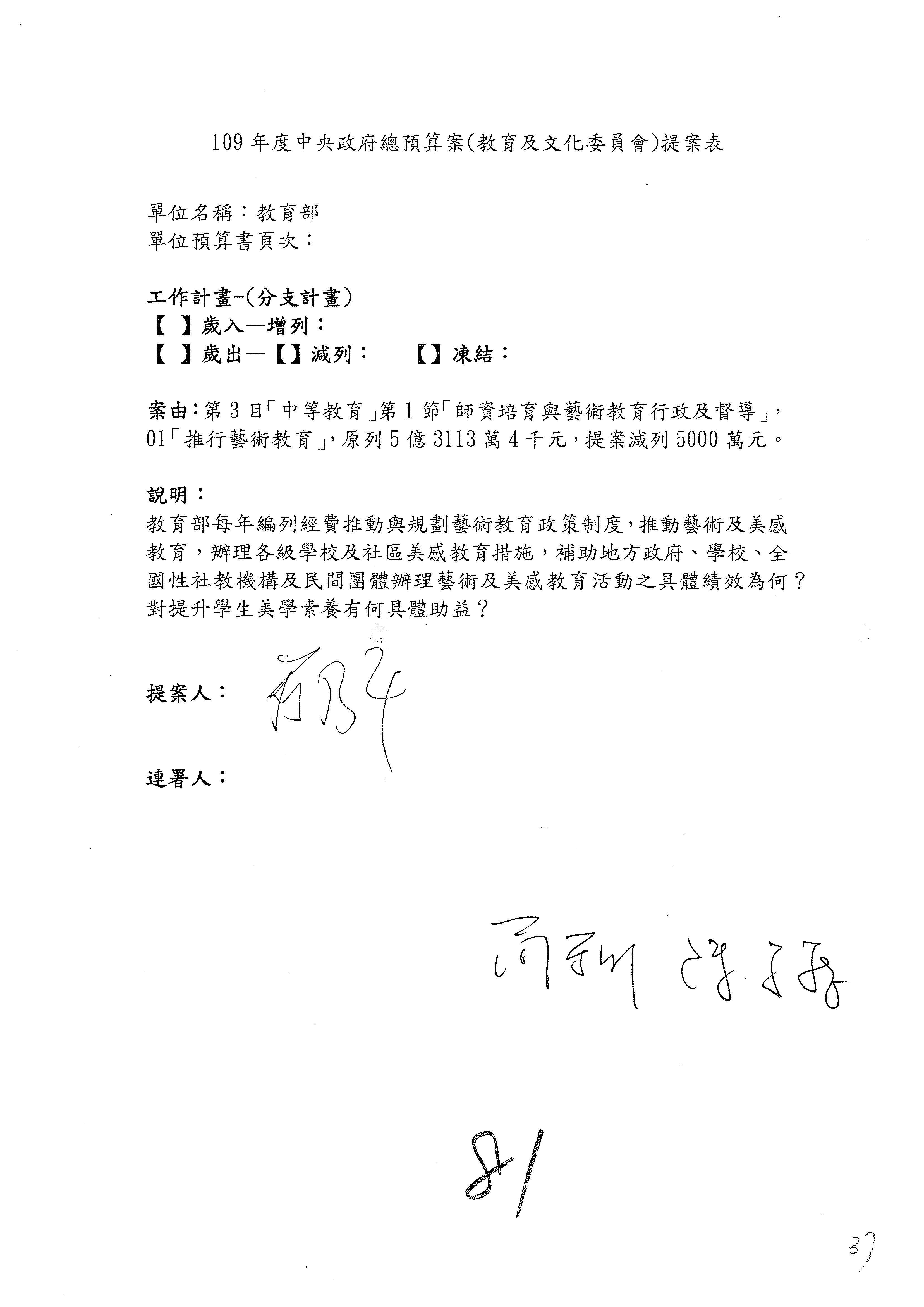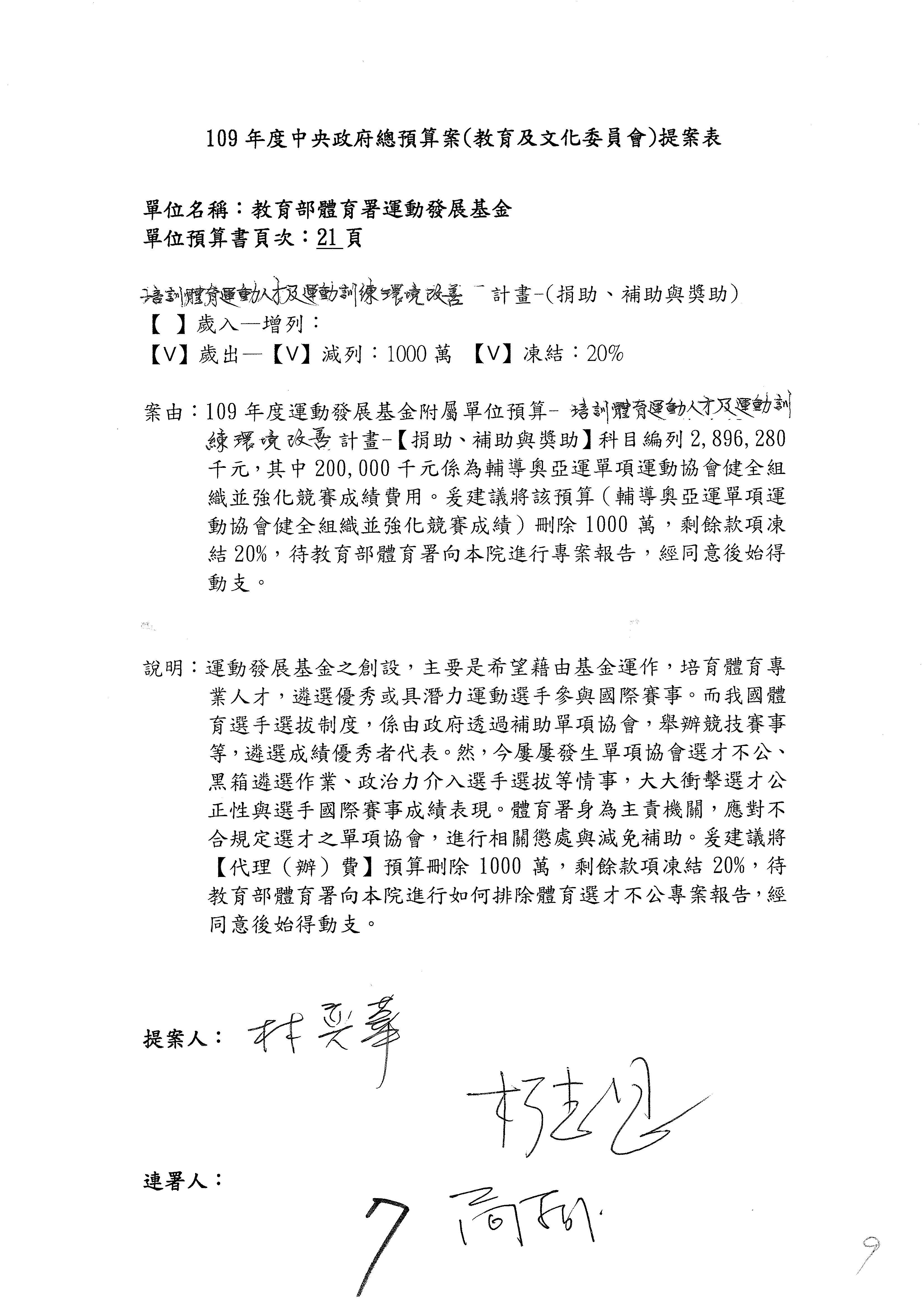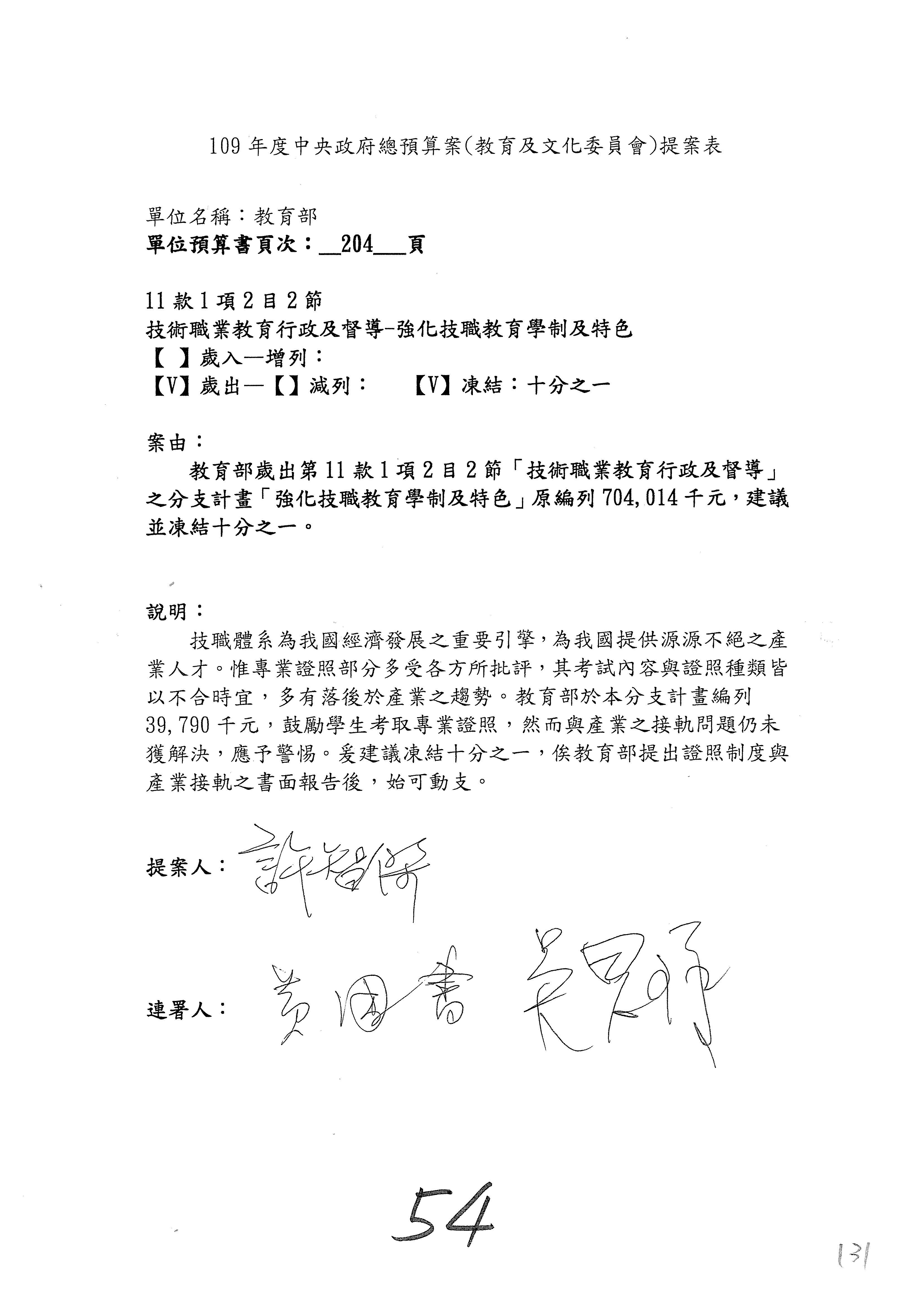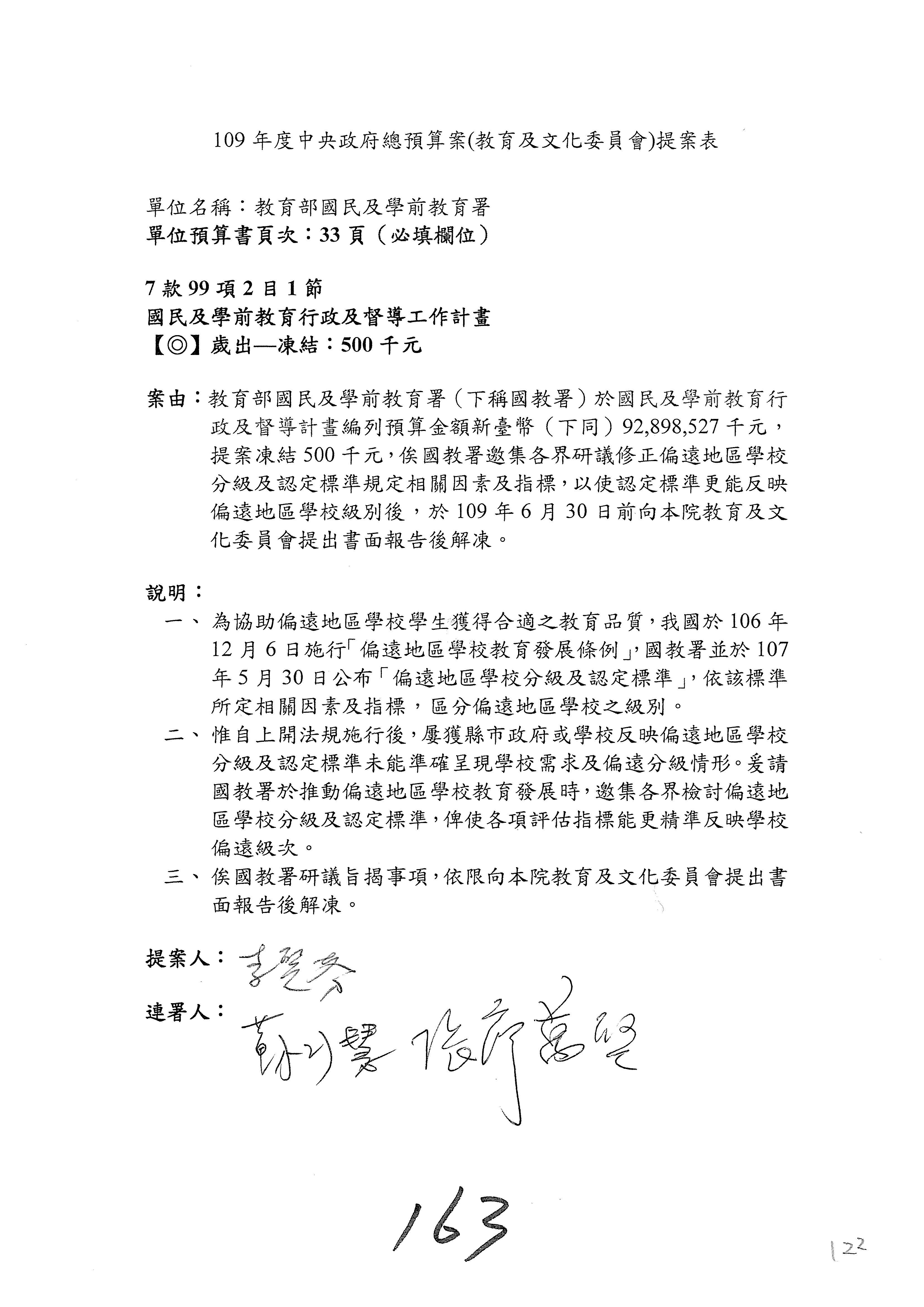 早上原本保留第31案,決議減列500萬元,凍結500萬元,提出書面報告後解凍。