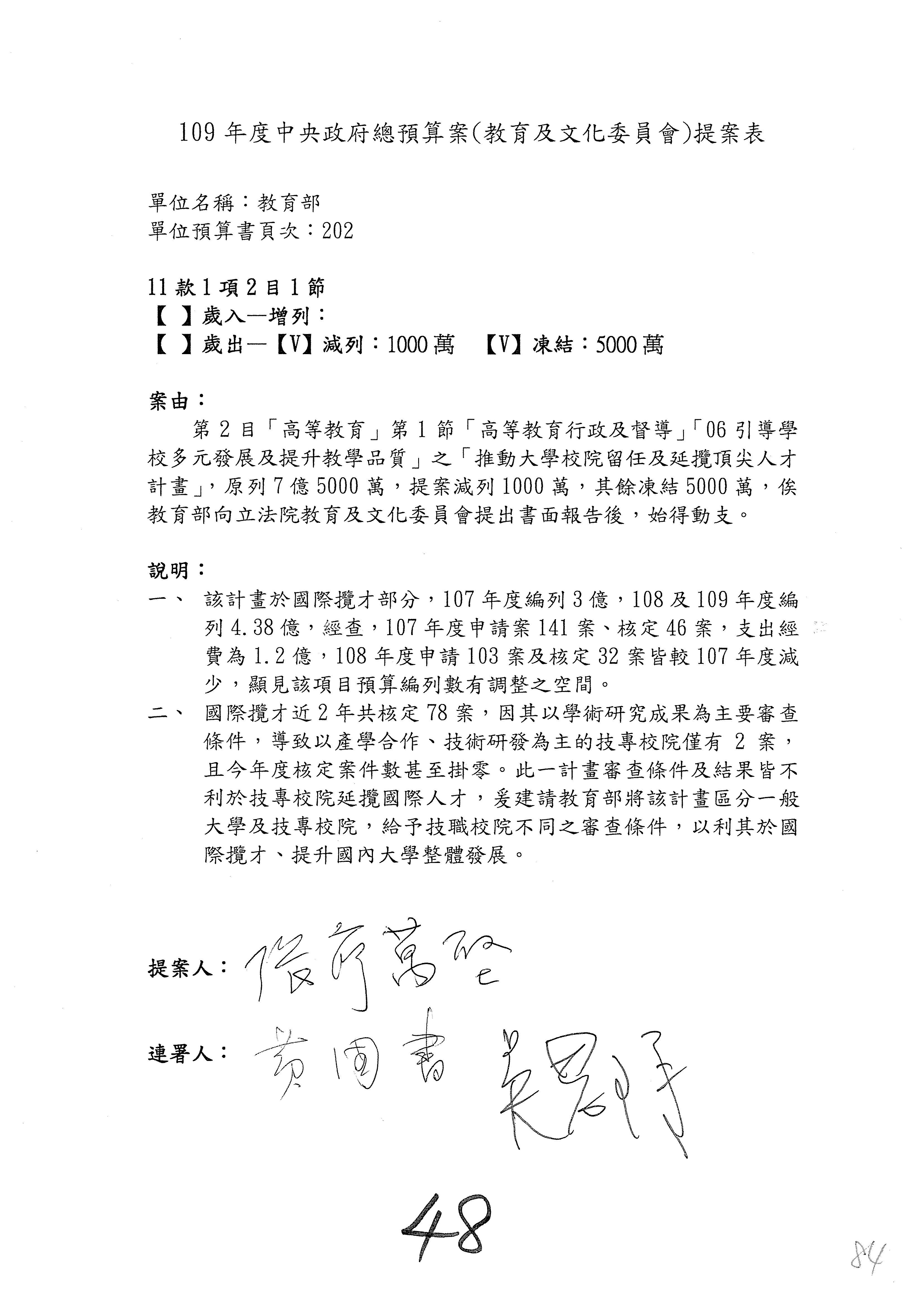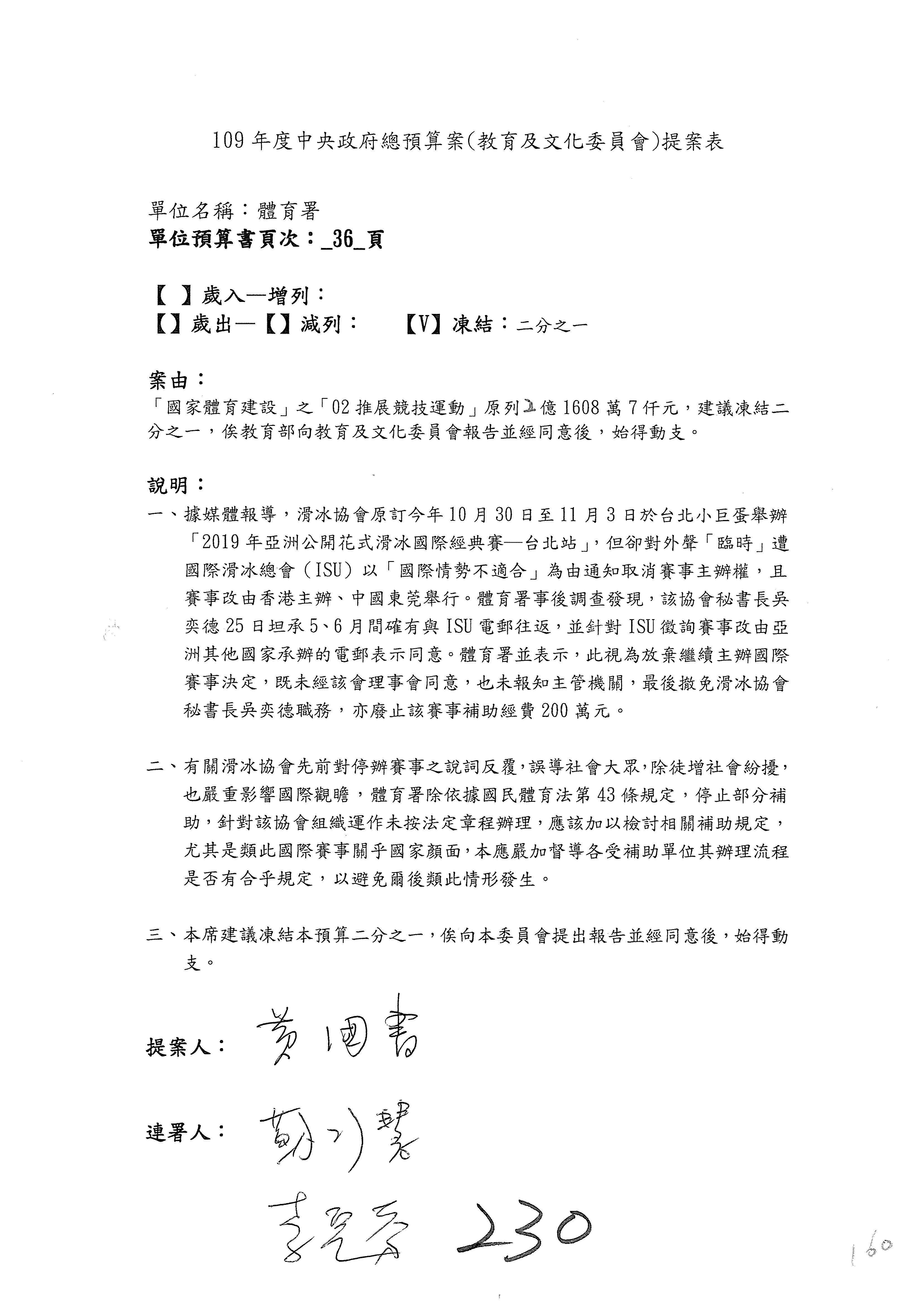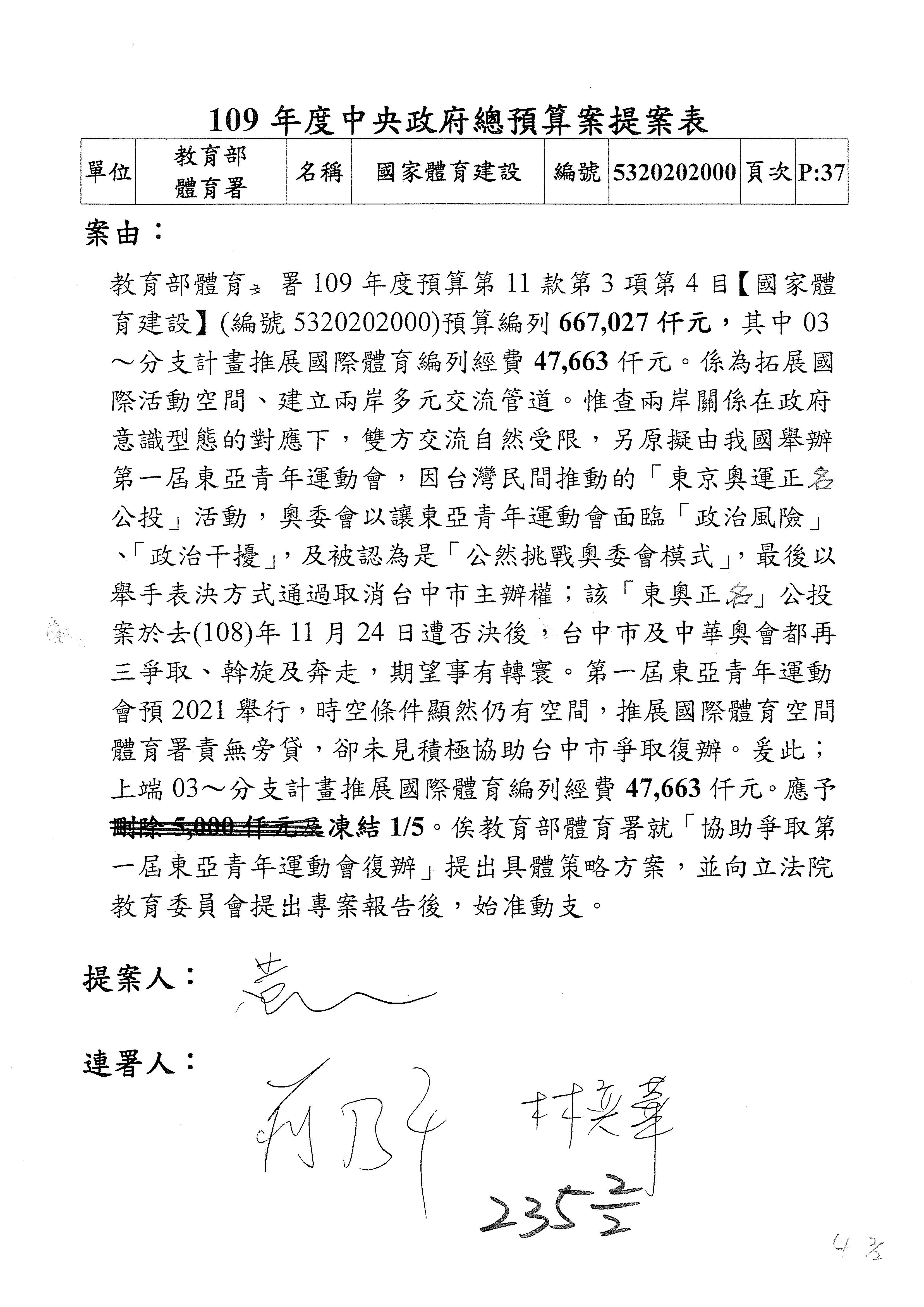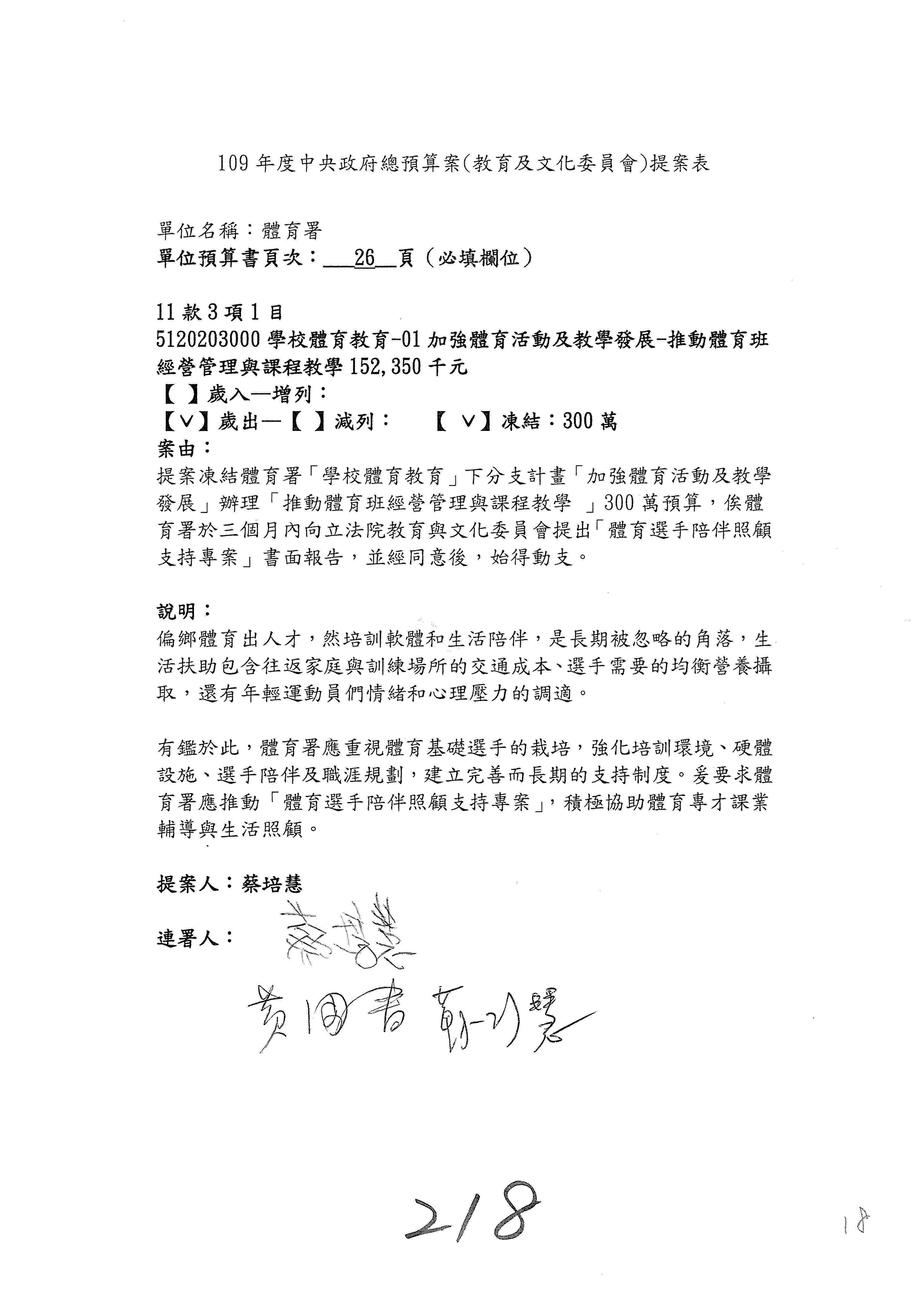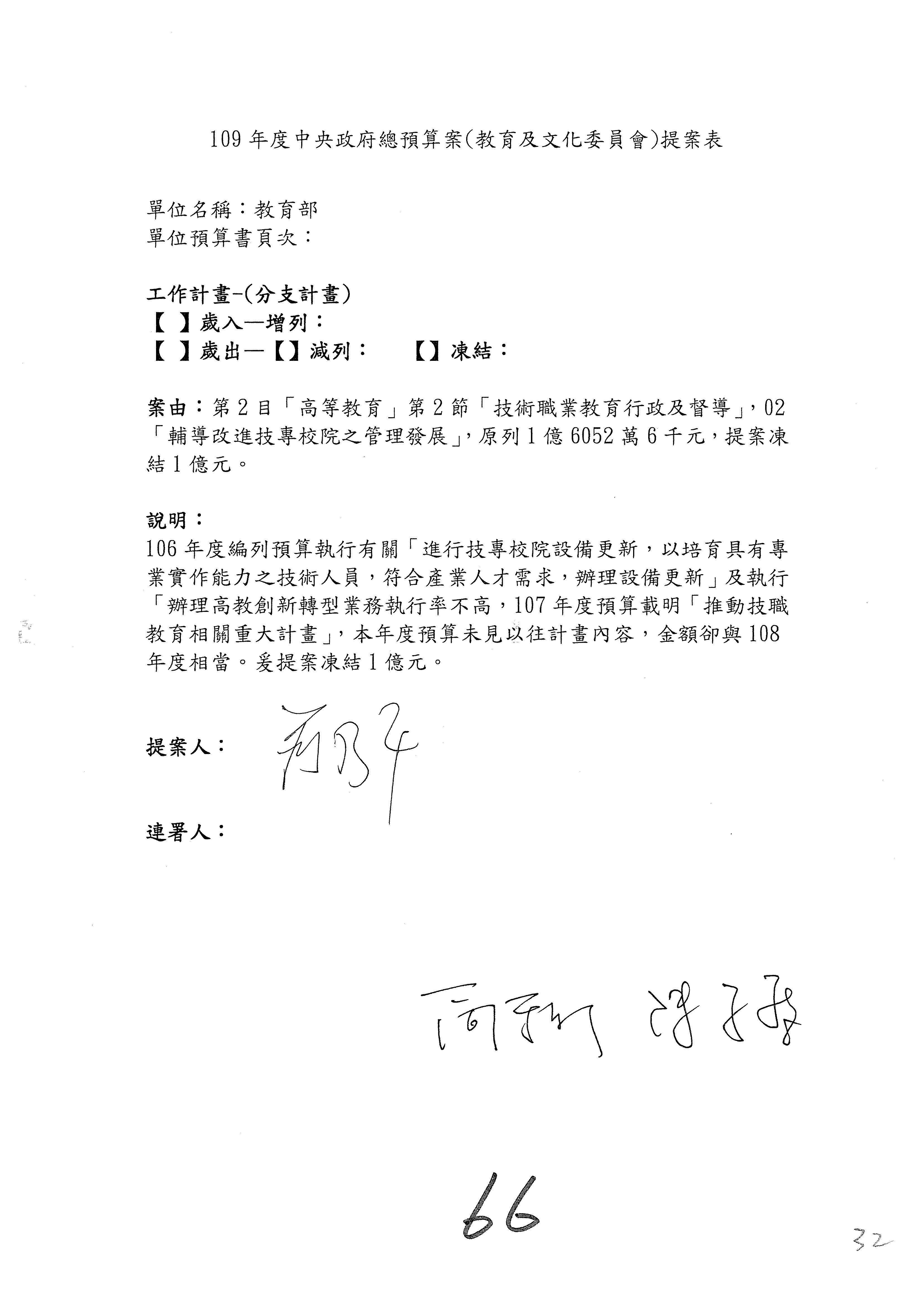 早上原本保留第31案,決議減列500萬元,凍結500萬元,提出書面報告後解凍。
