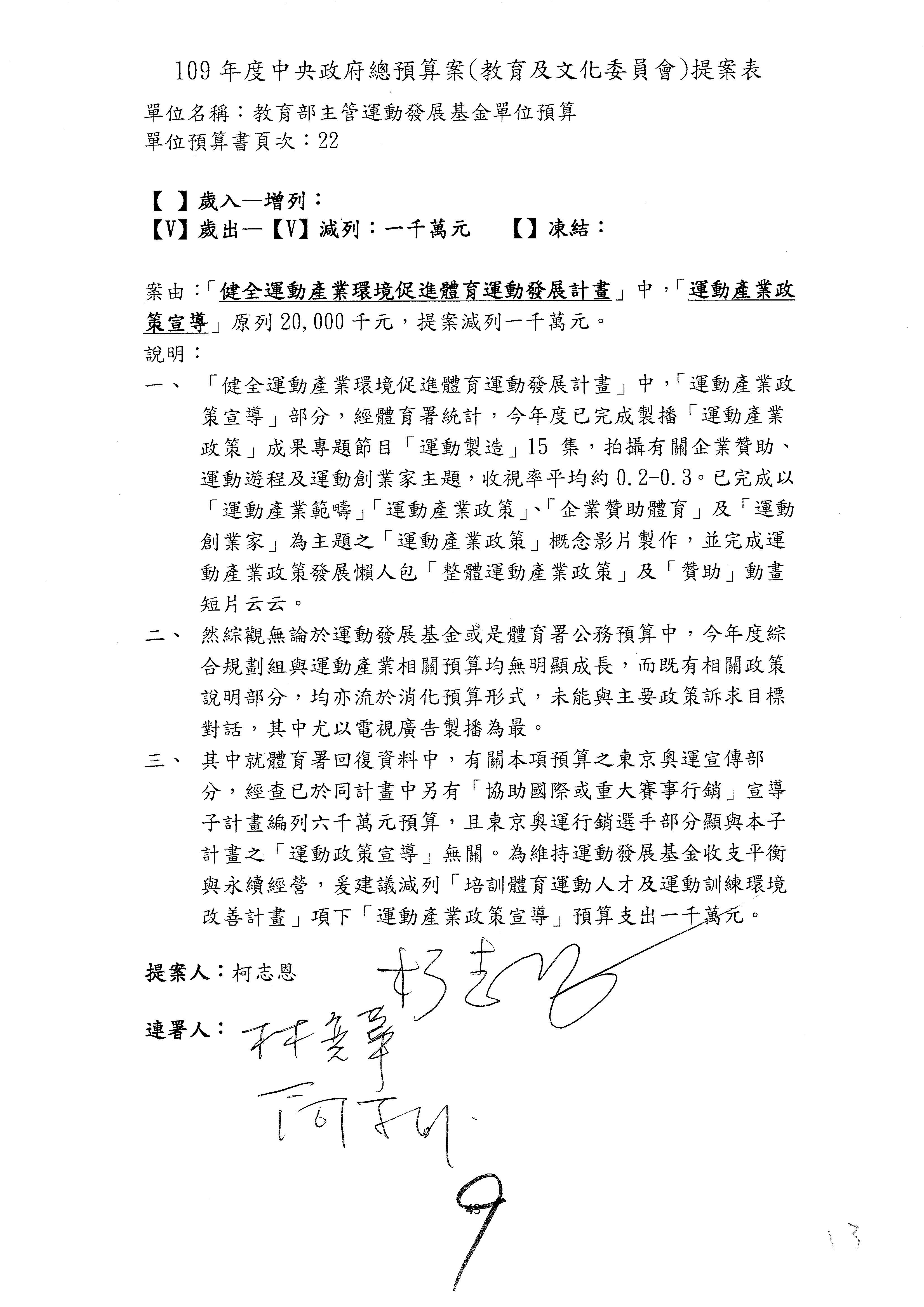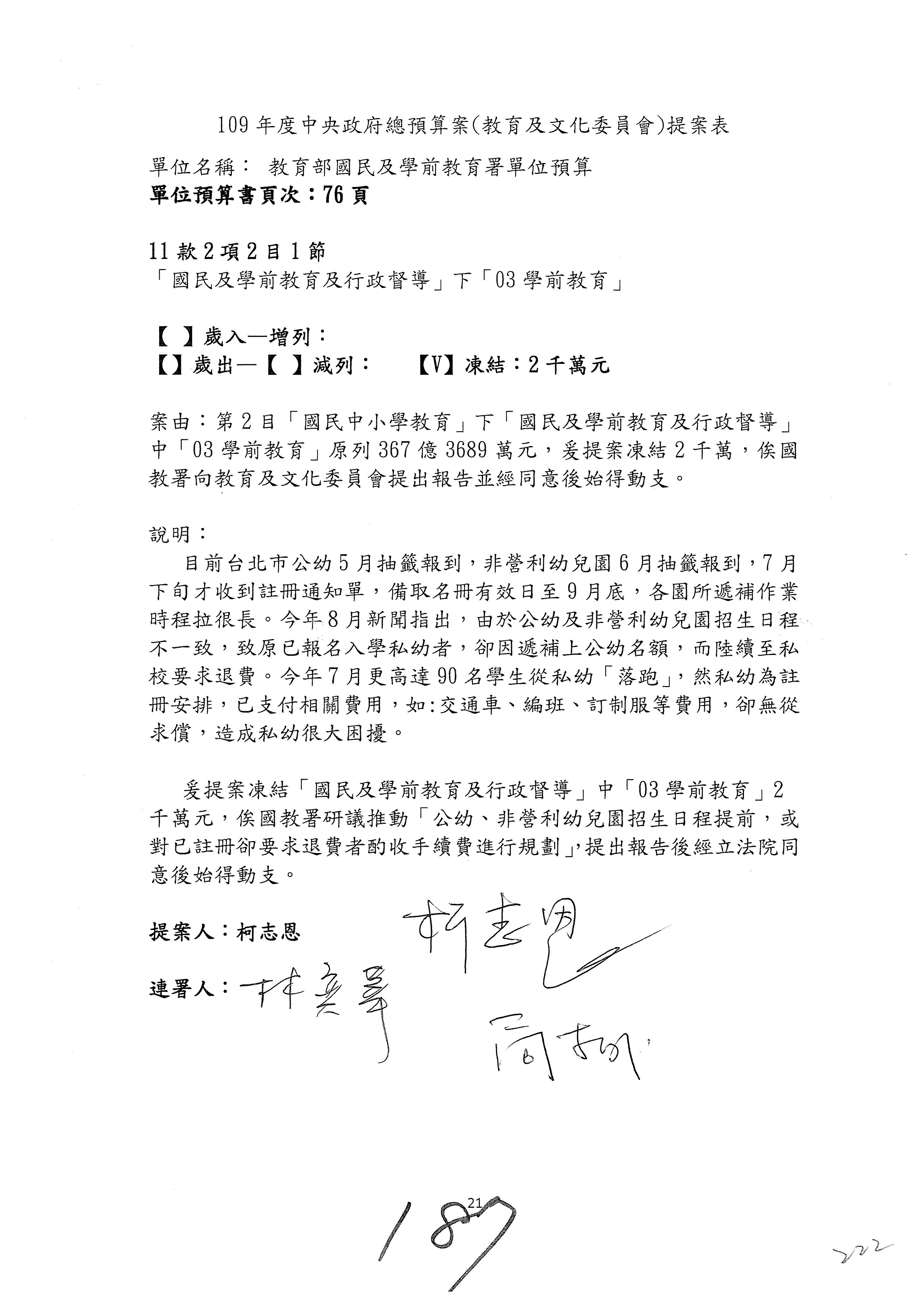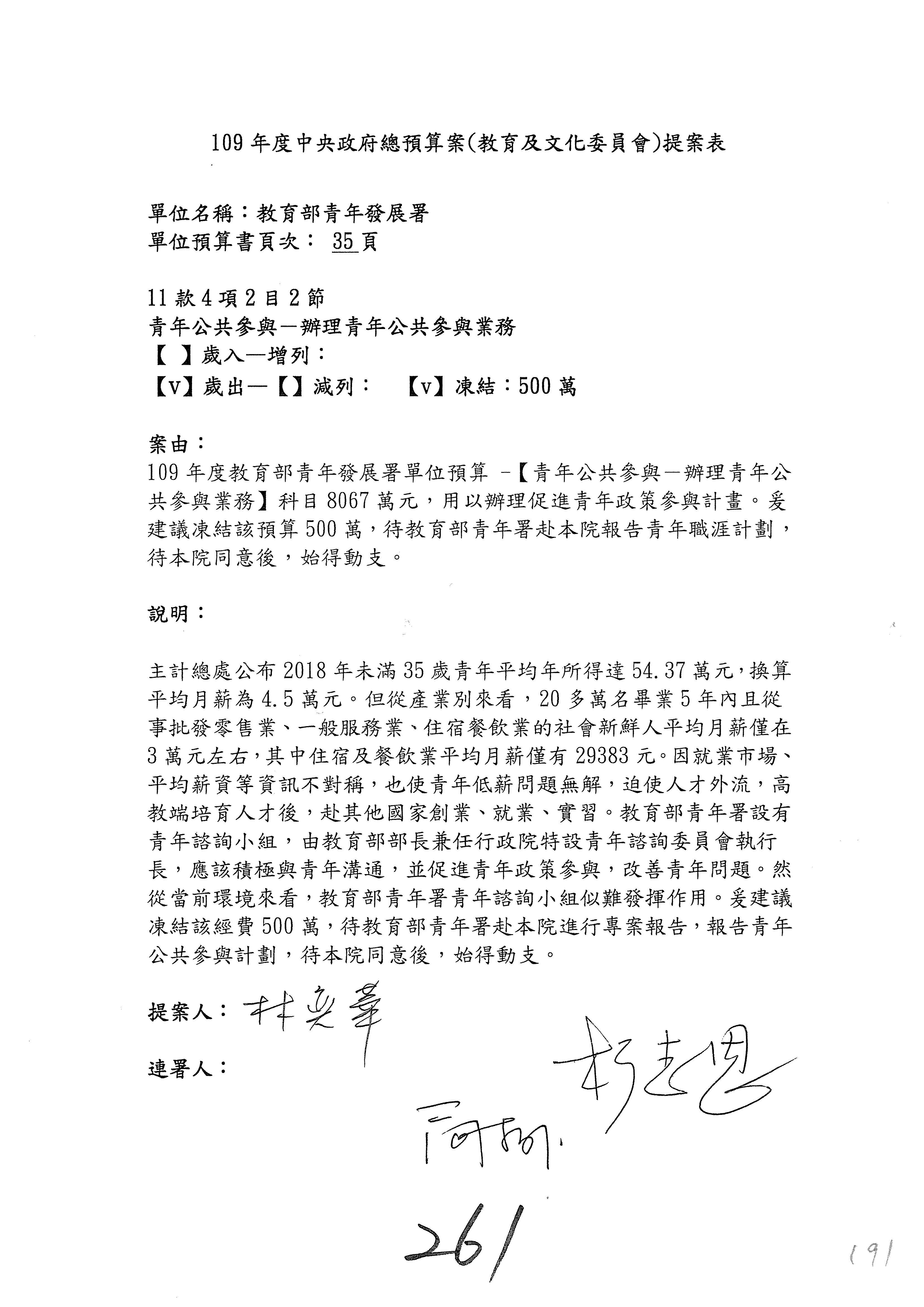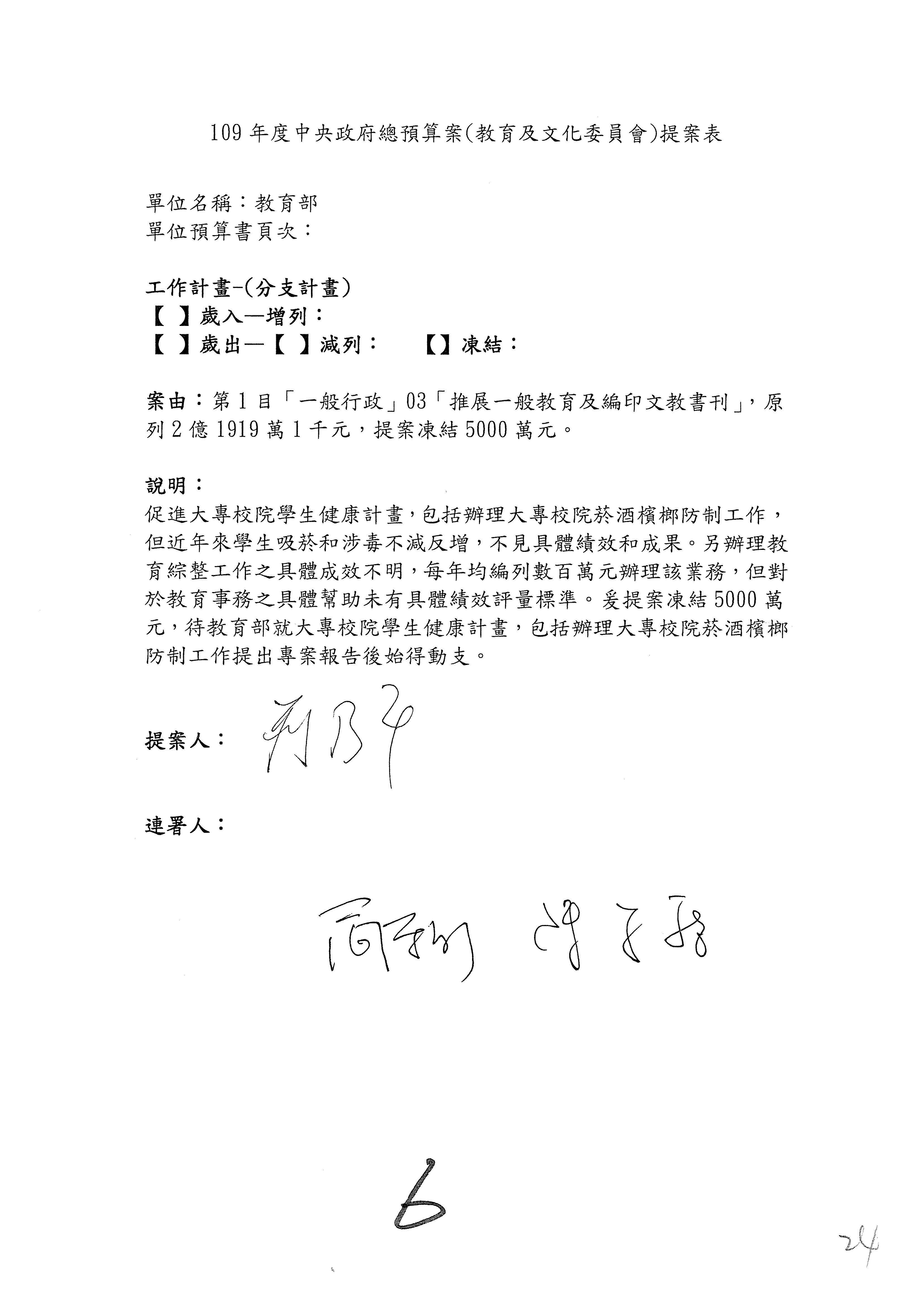 早上原本保留第31案,決議減列500萬元,凍結500萬元,提出書面報告後解凍。