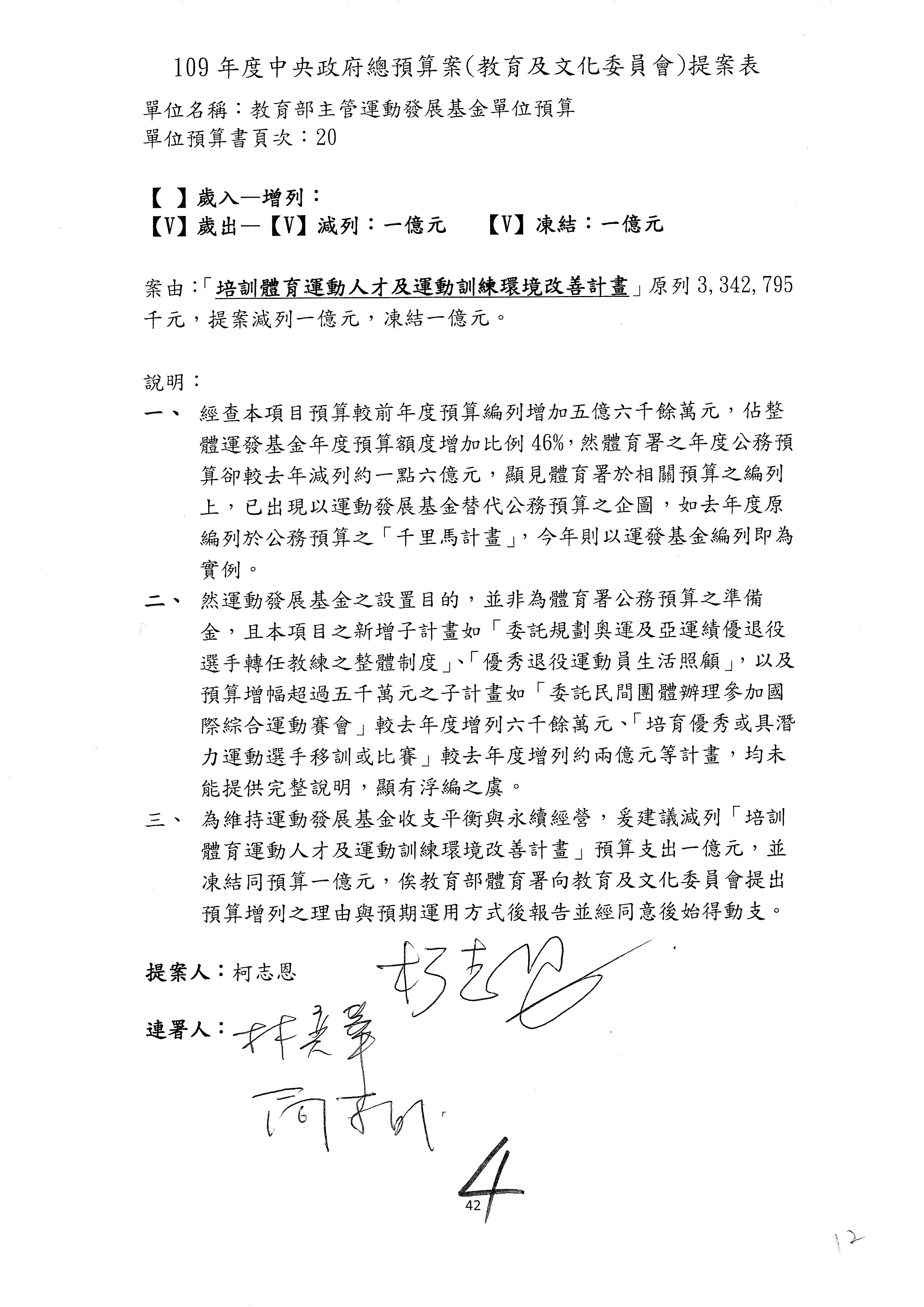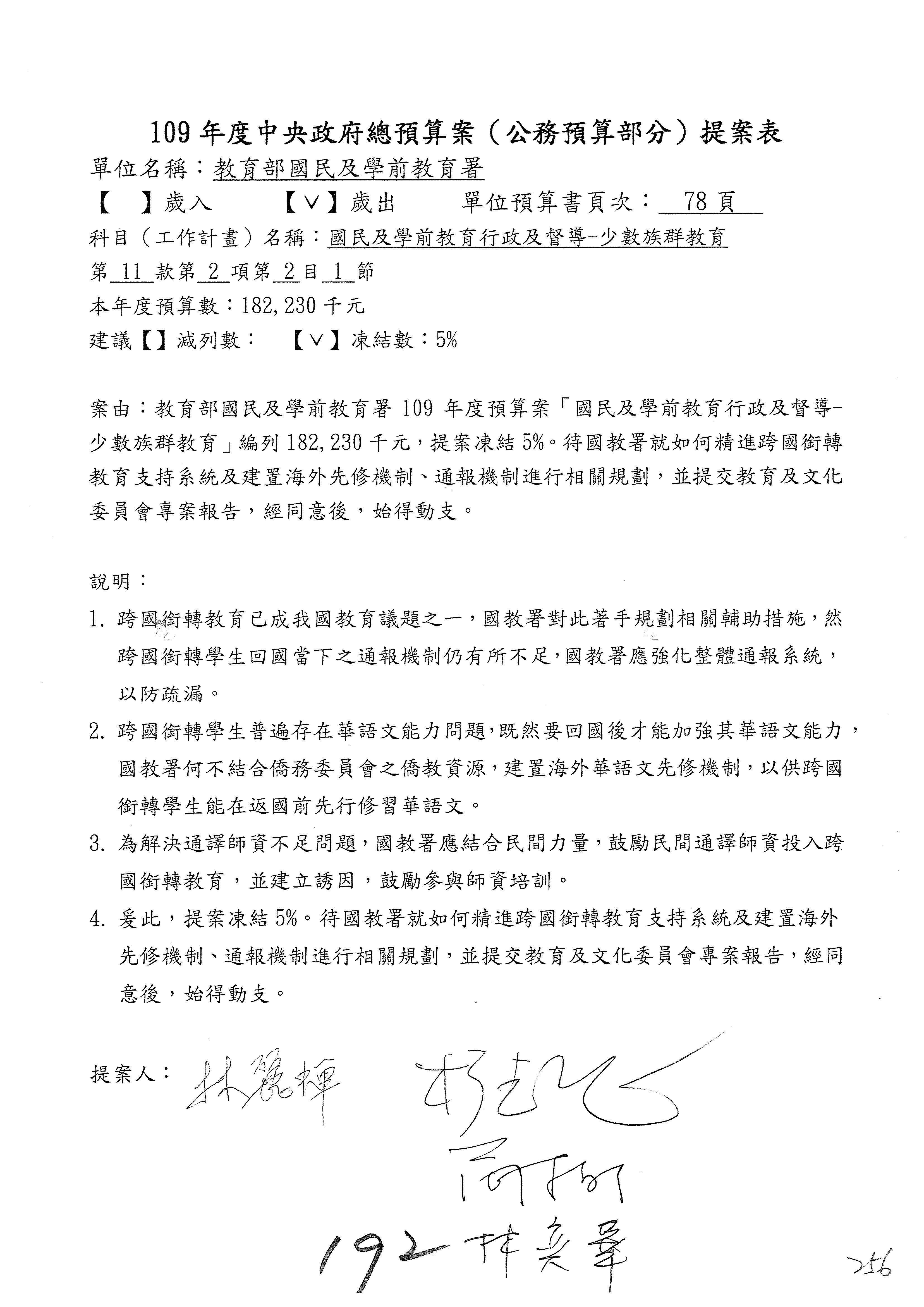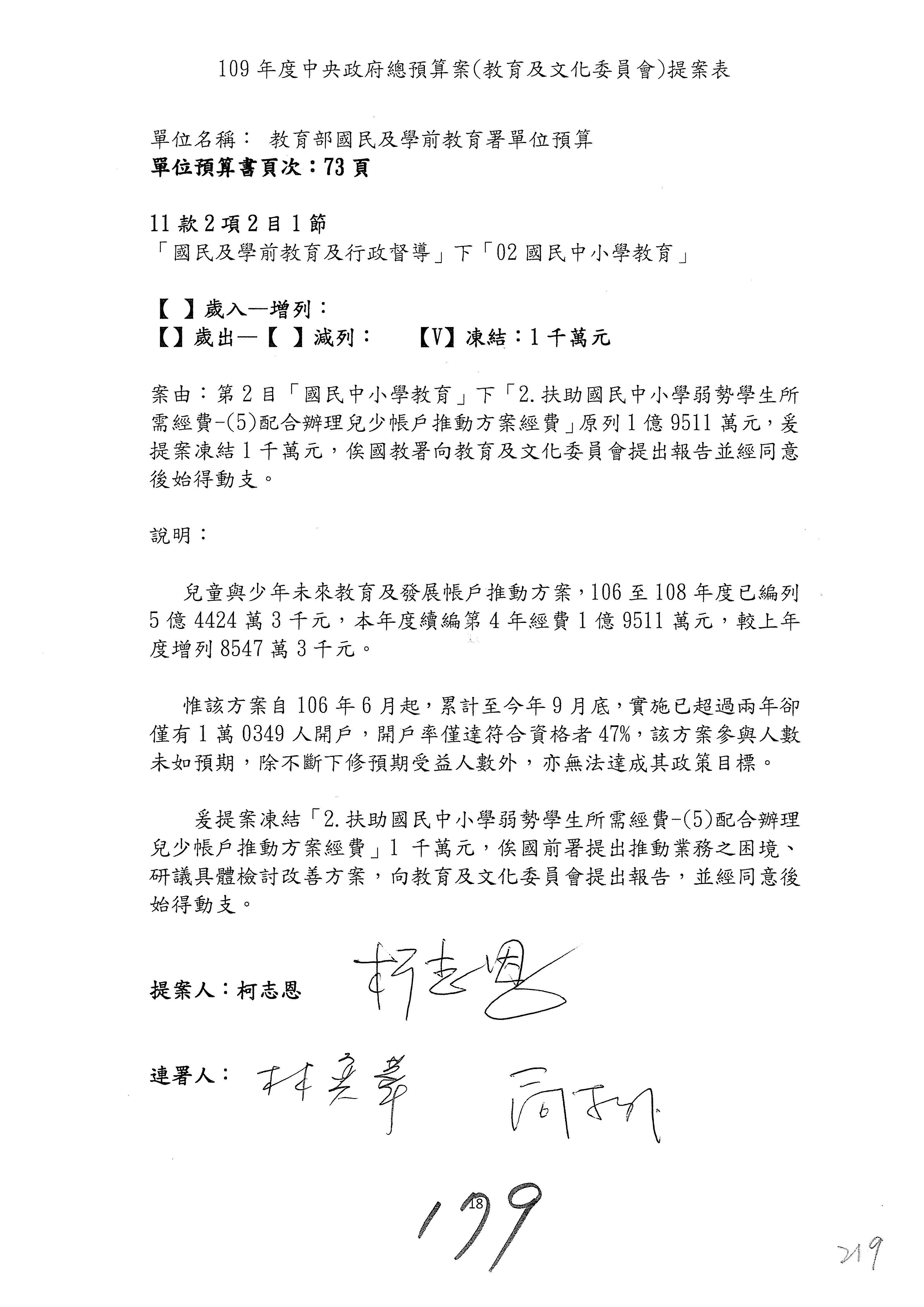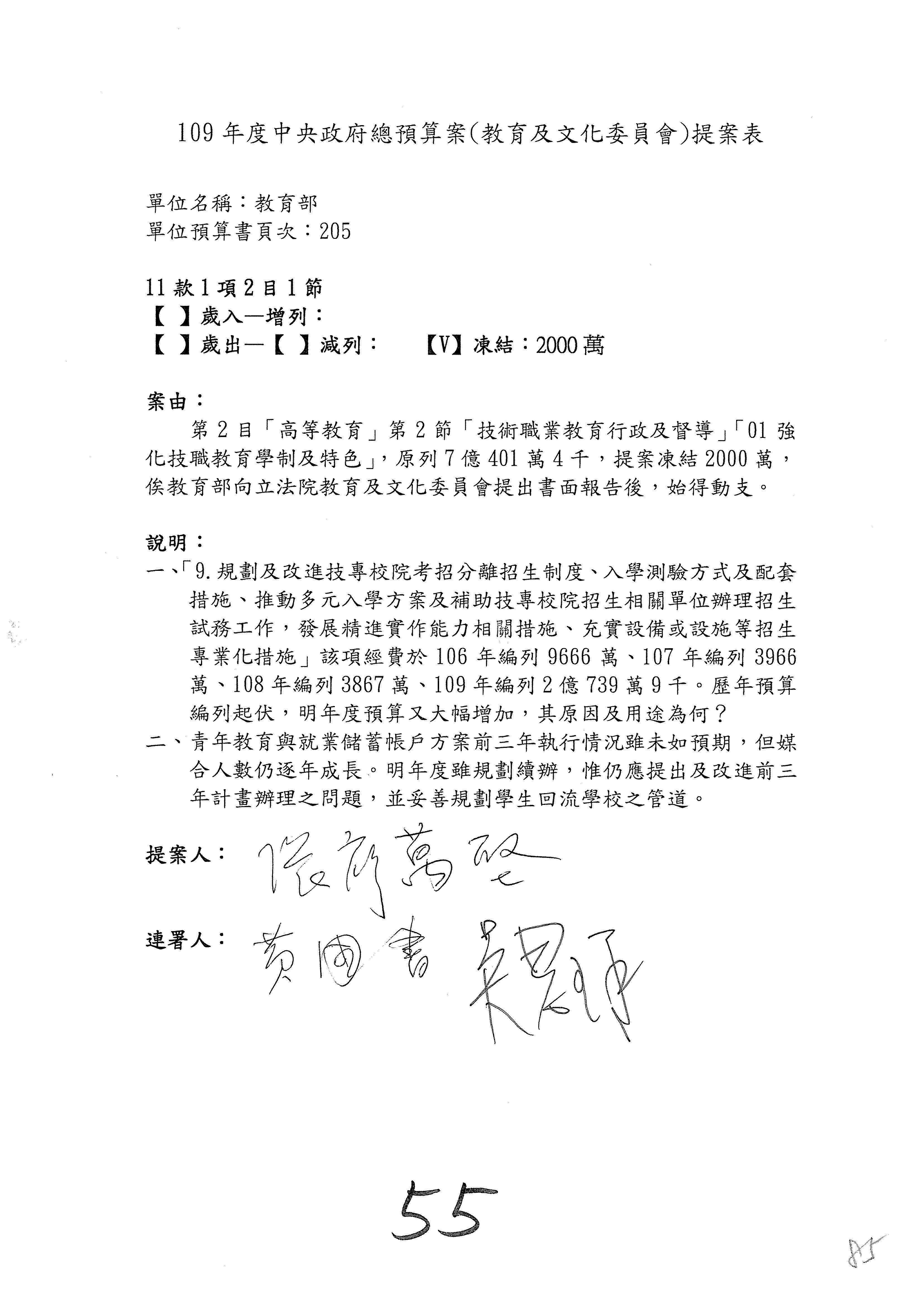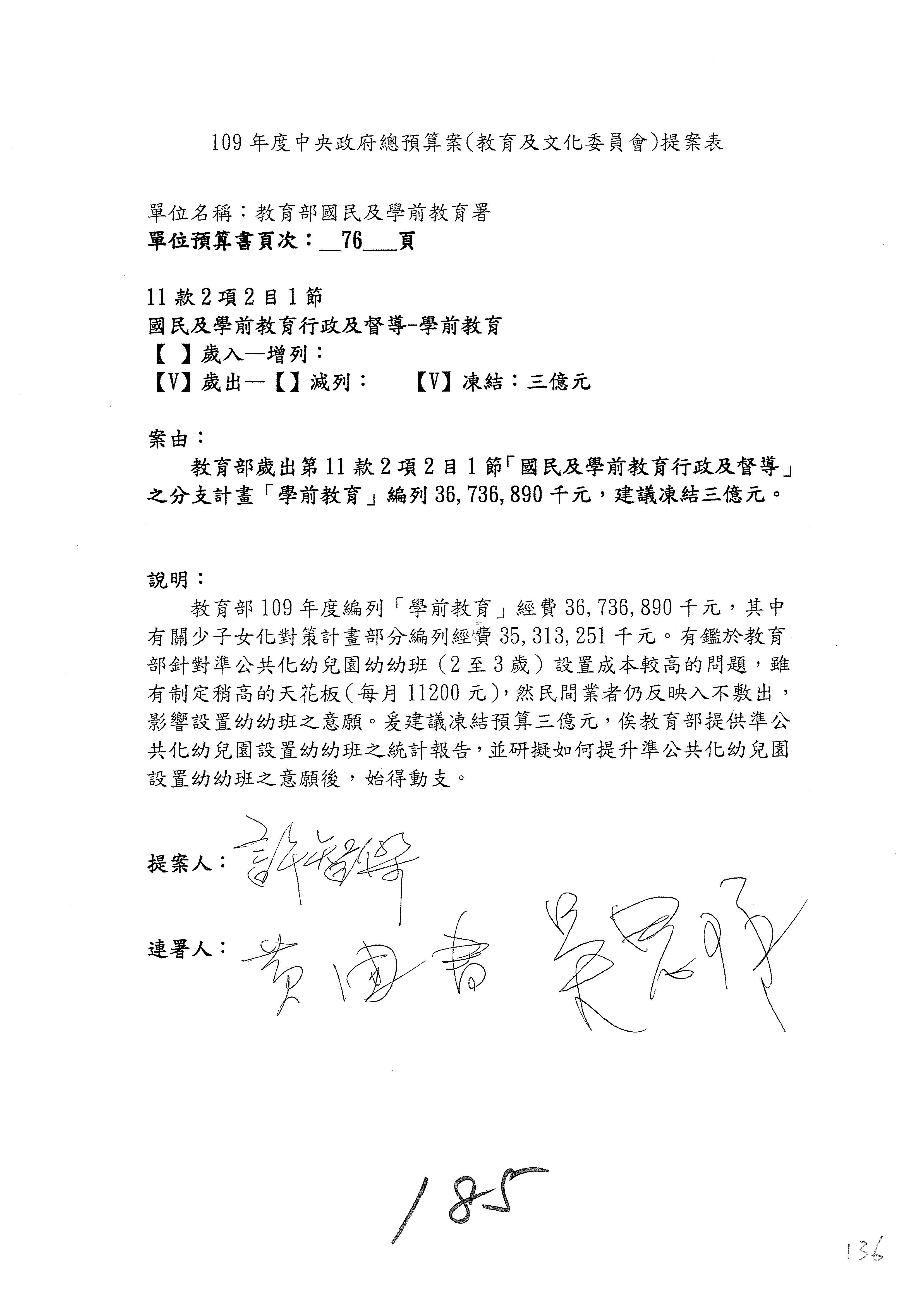 早上原本保留第31案,決議減列500萬元,凍結500萬元,提出書面報告後解凍。
