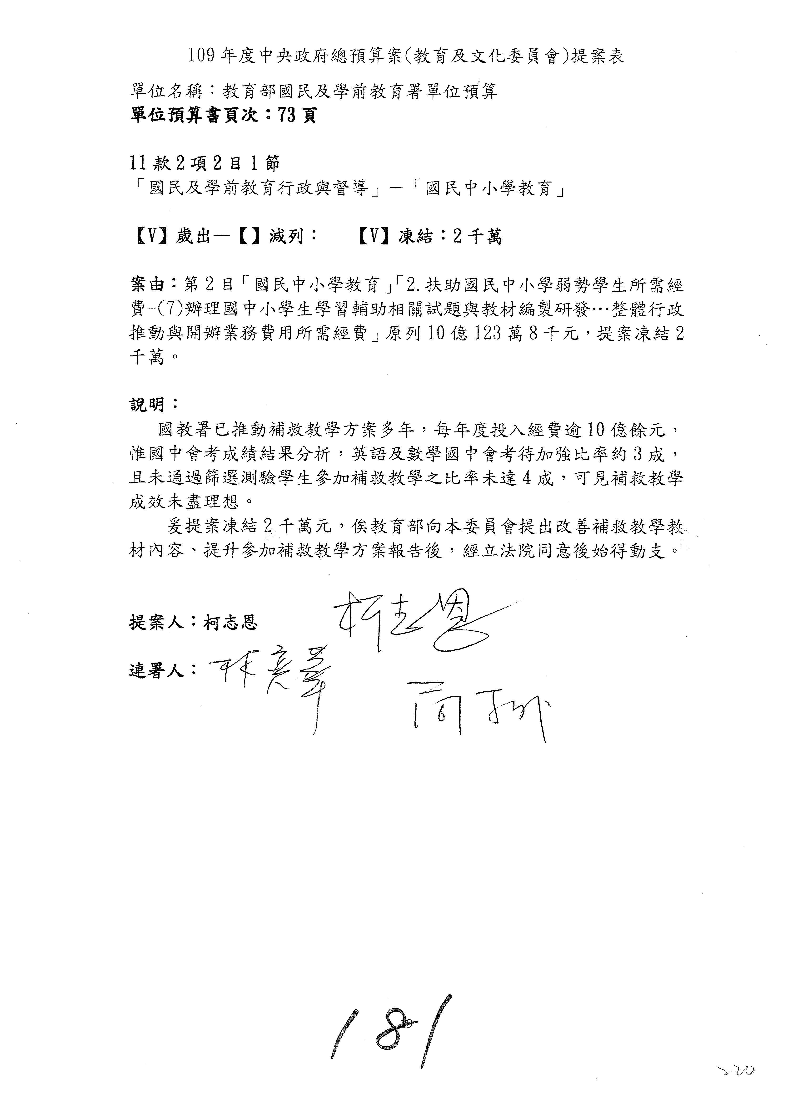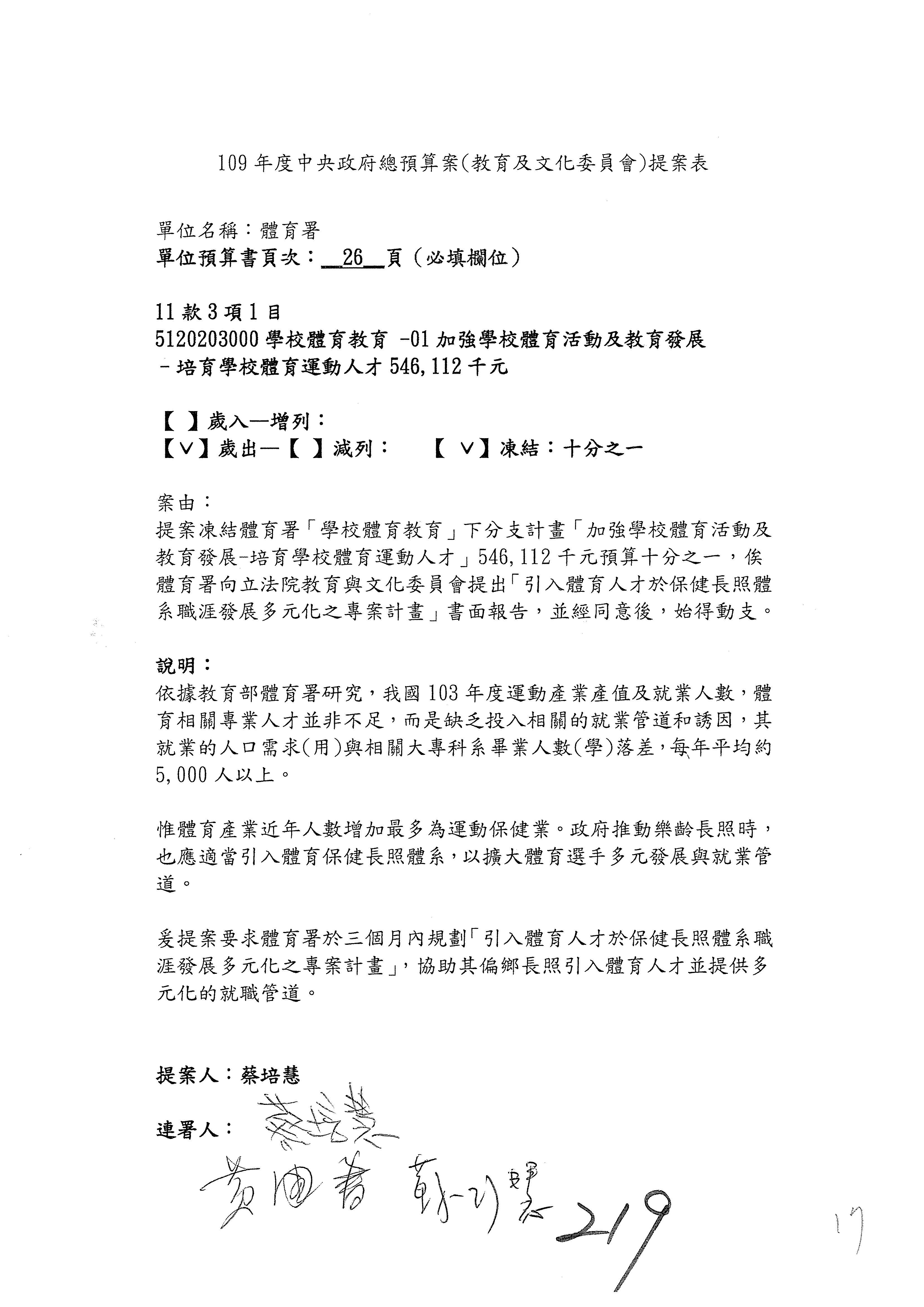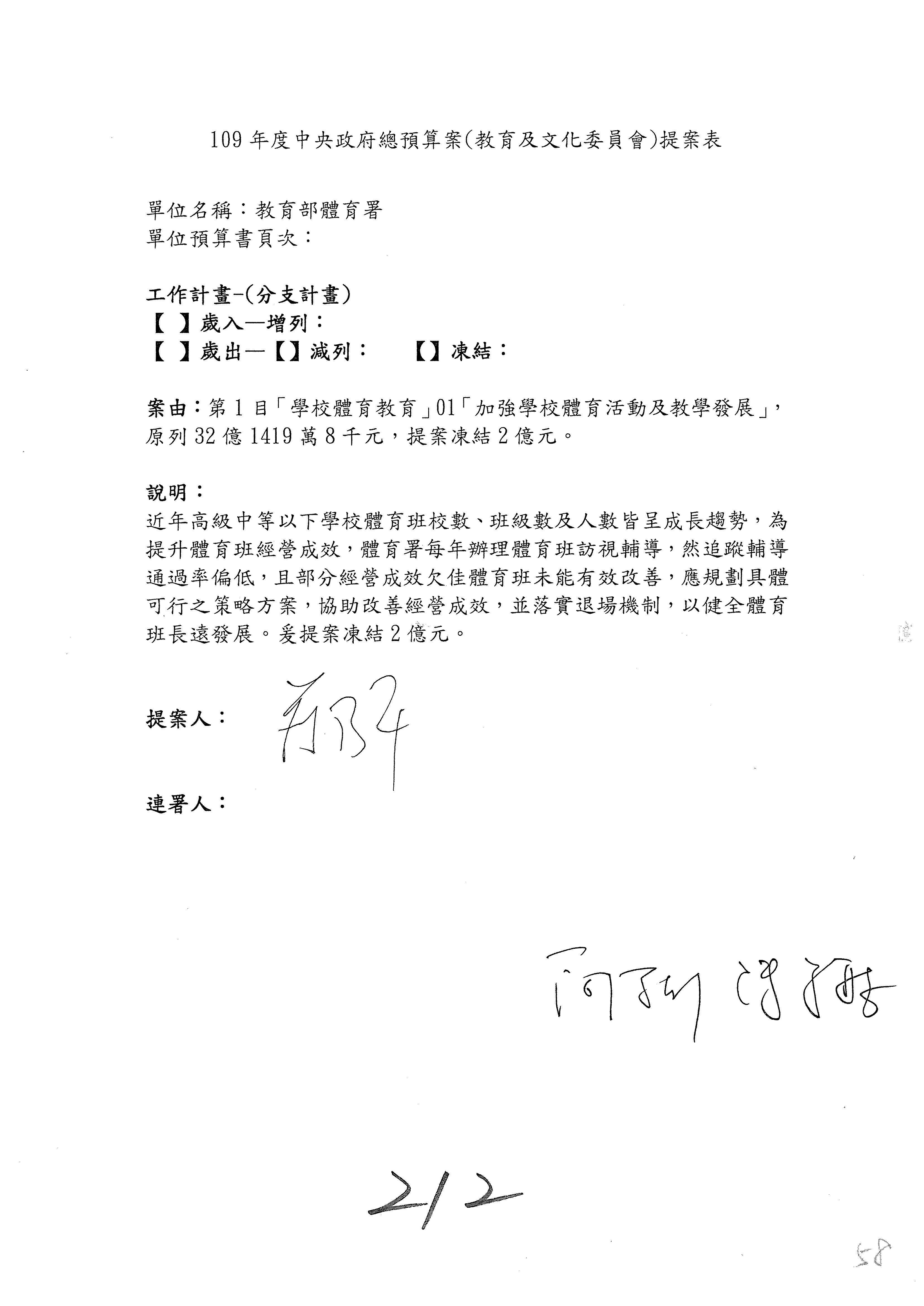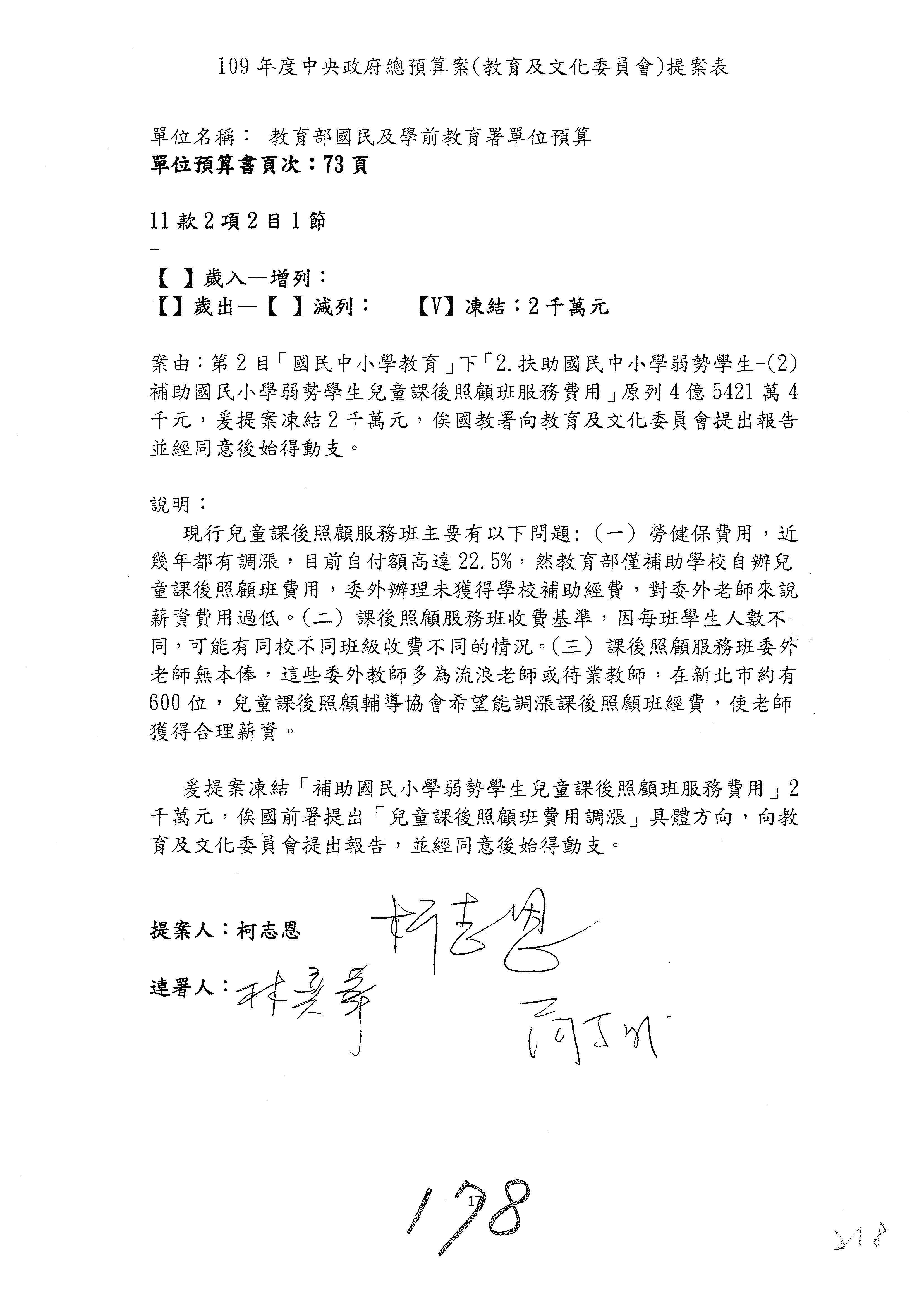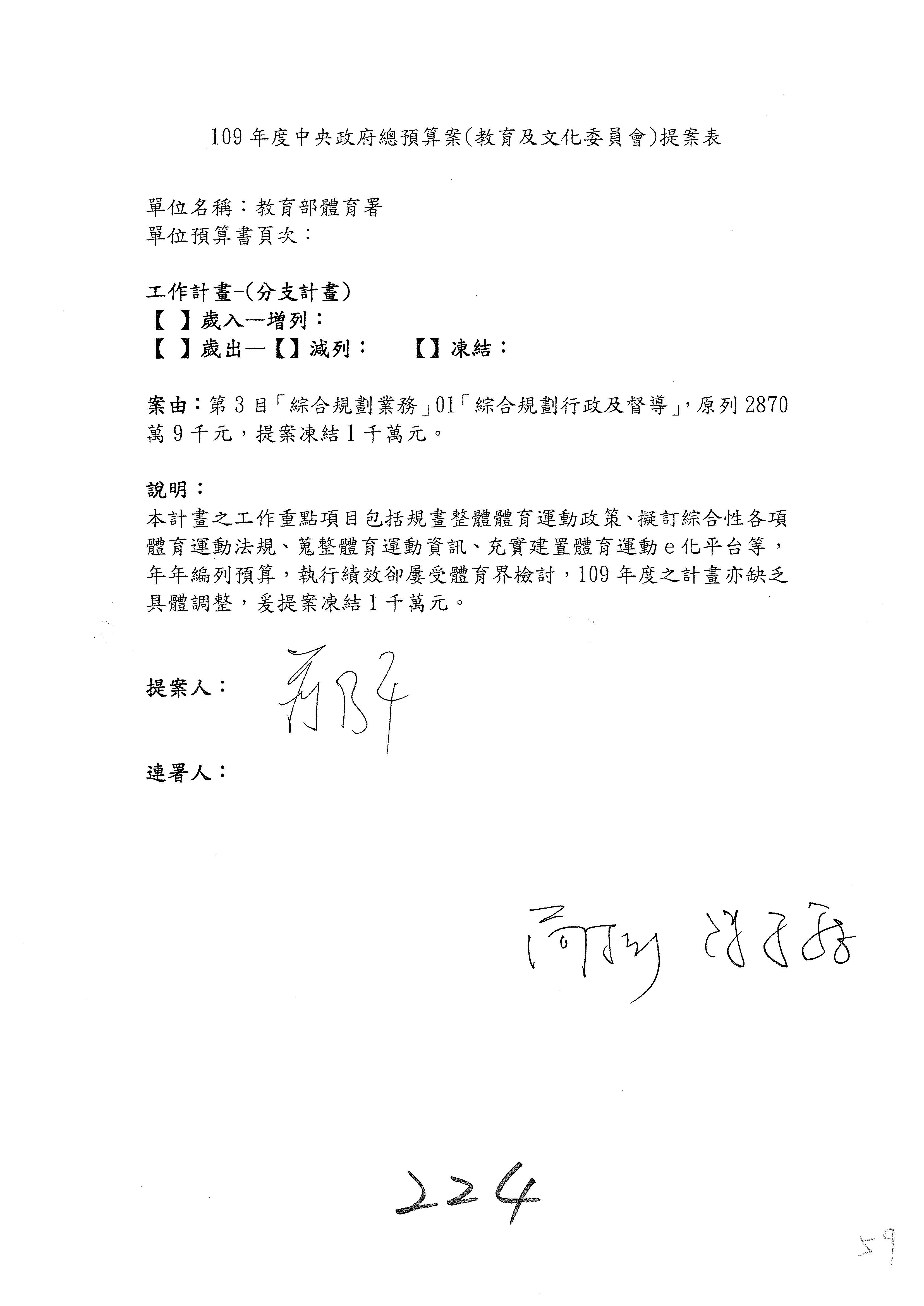 早上原本保留第31案,決議減列500萬元,凍結500萬元,提出書面報告後解凍。